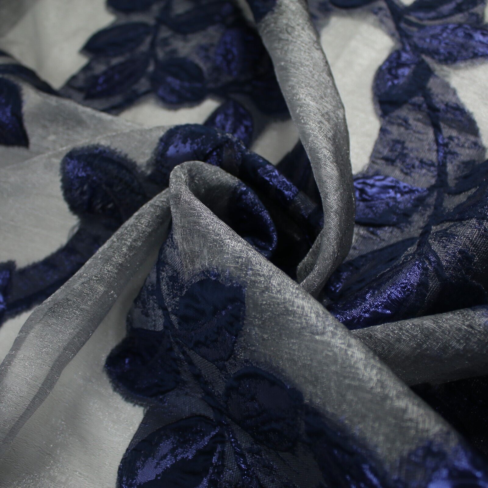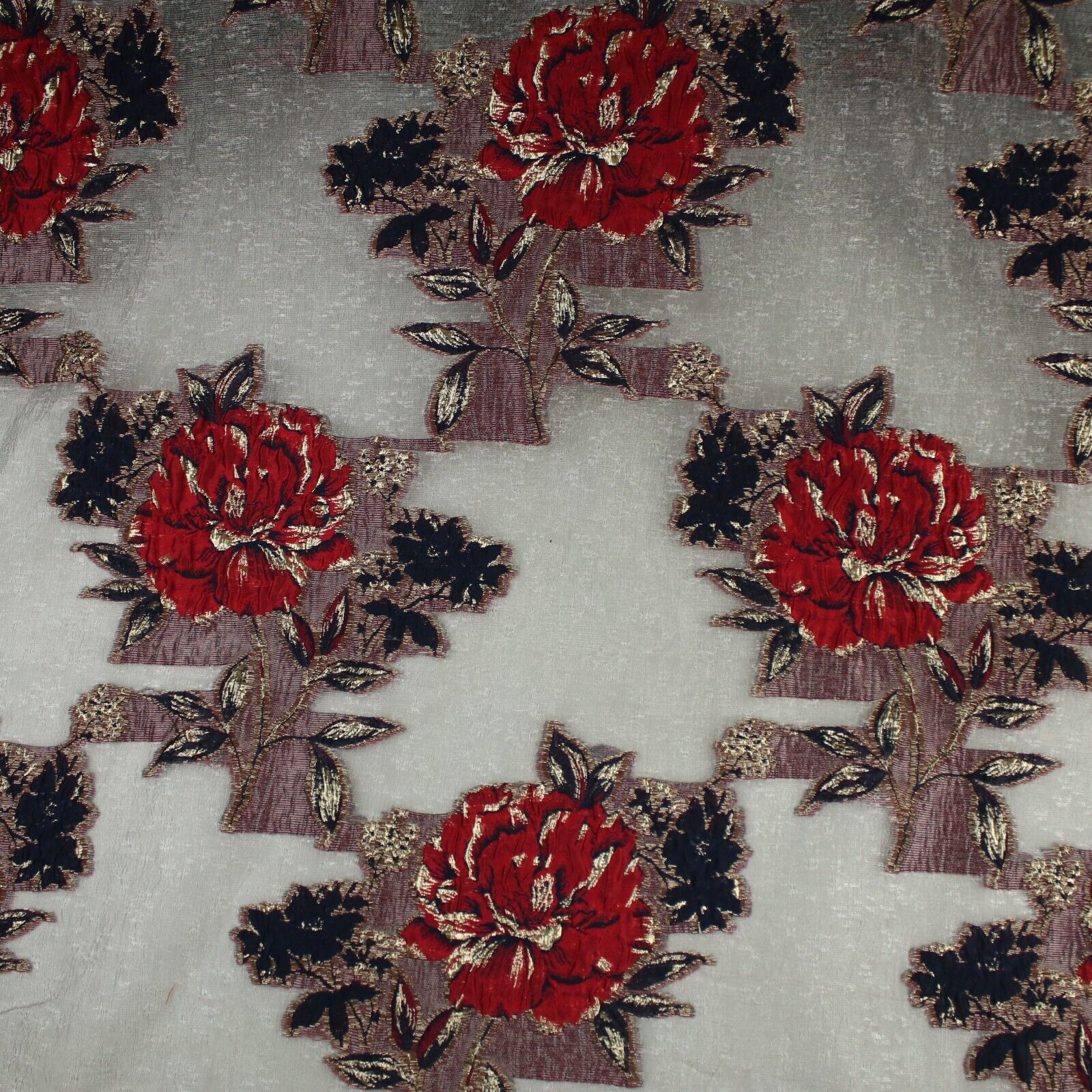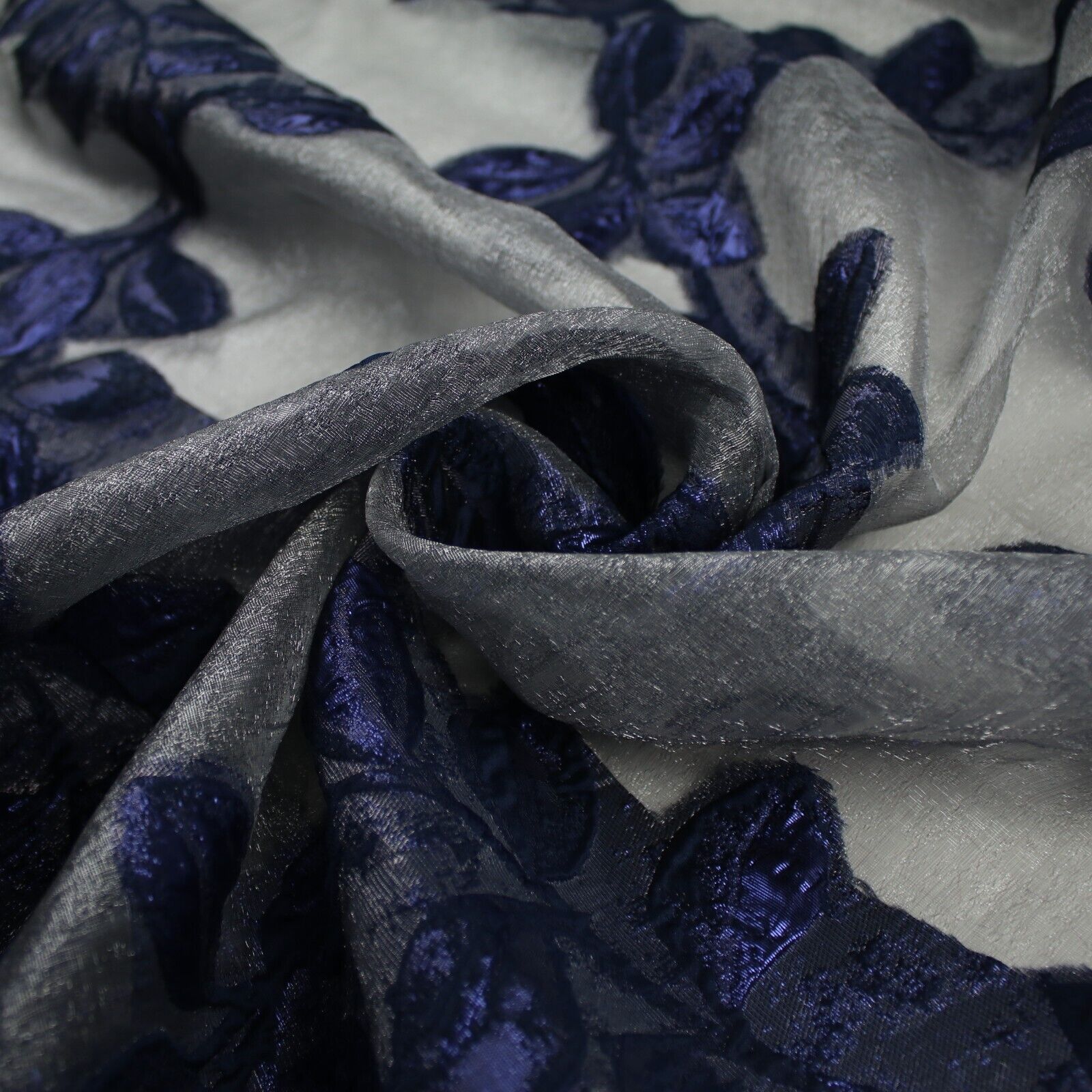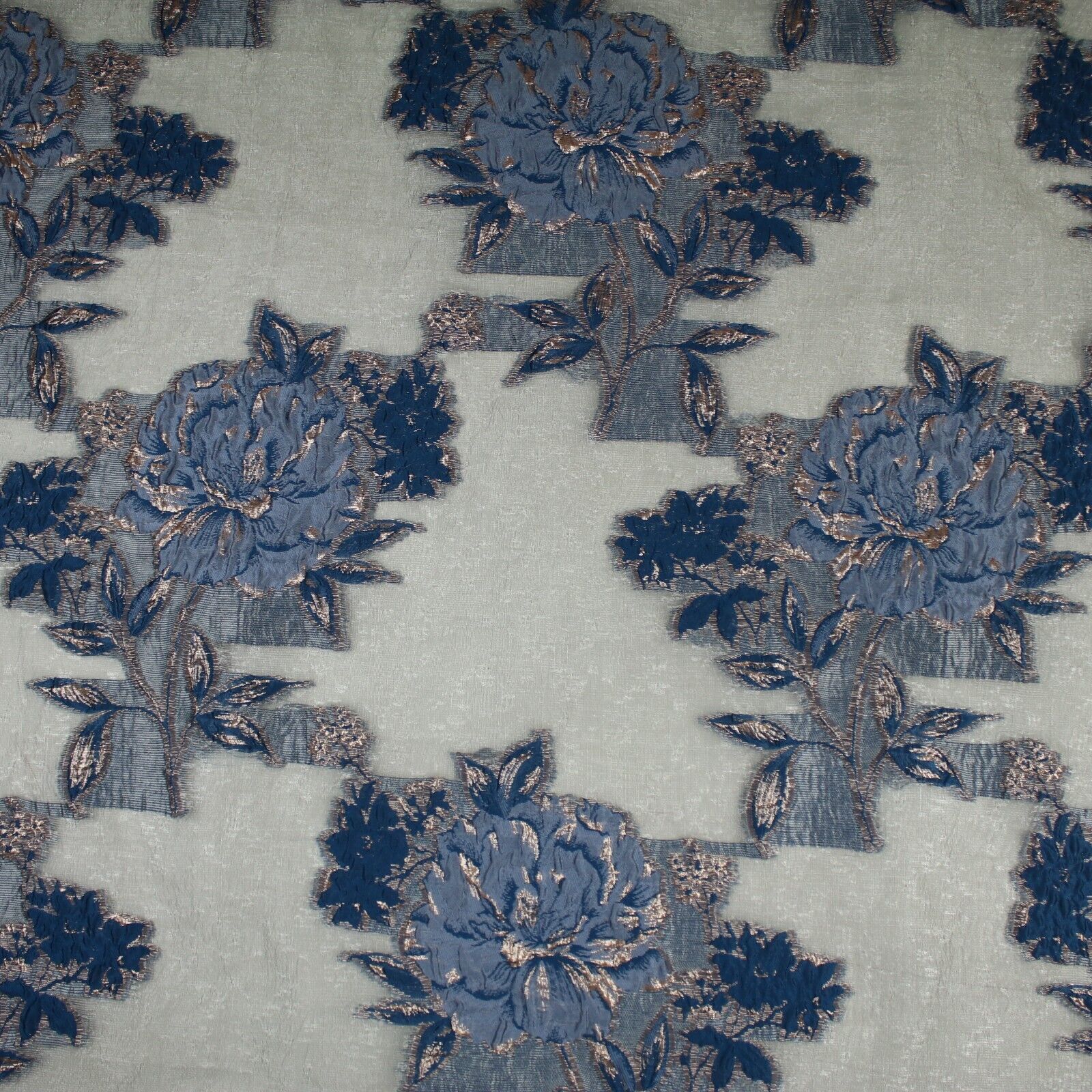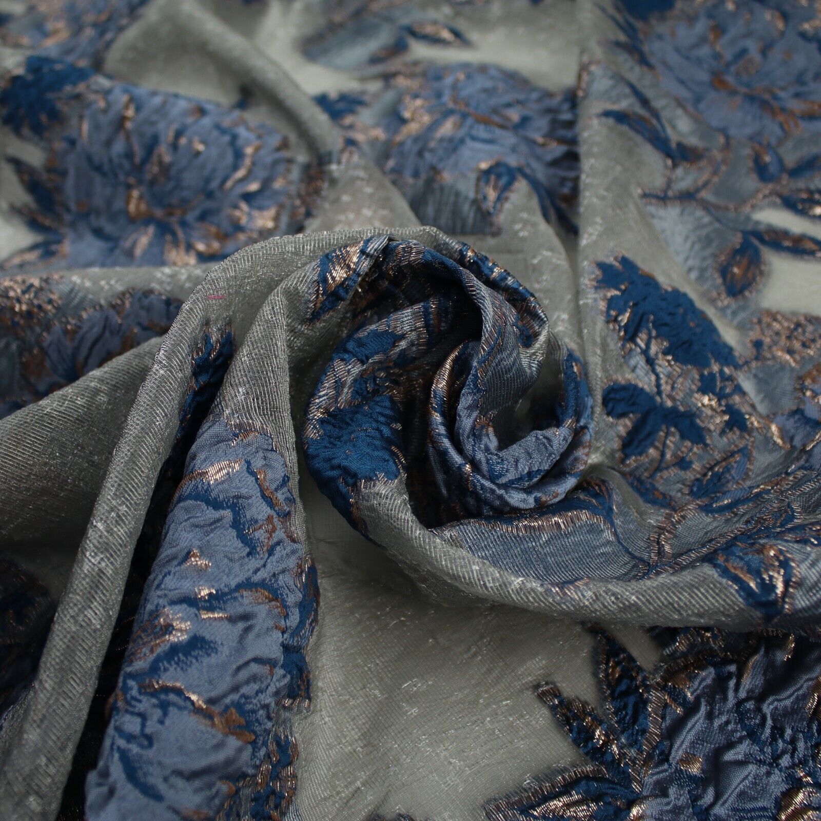 5 Designs - Grey Organza Base Large Flower Textured Brocade Jacquard Fabric 58"