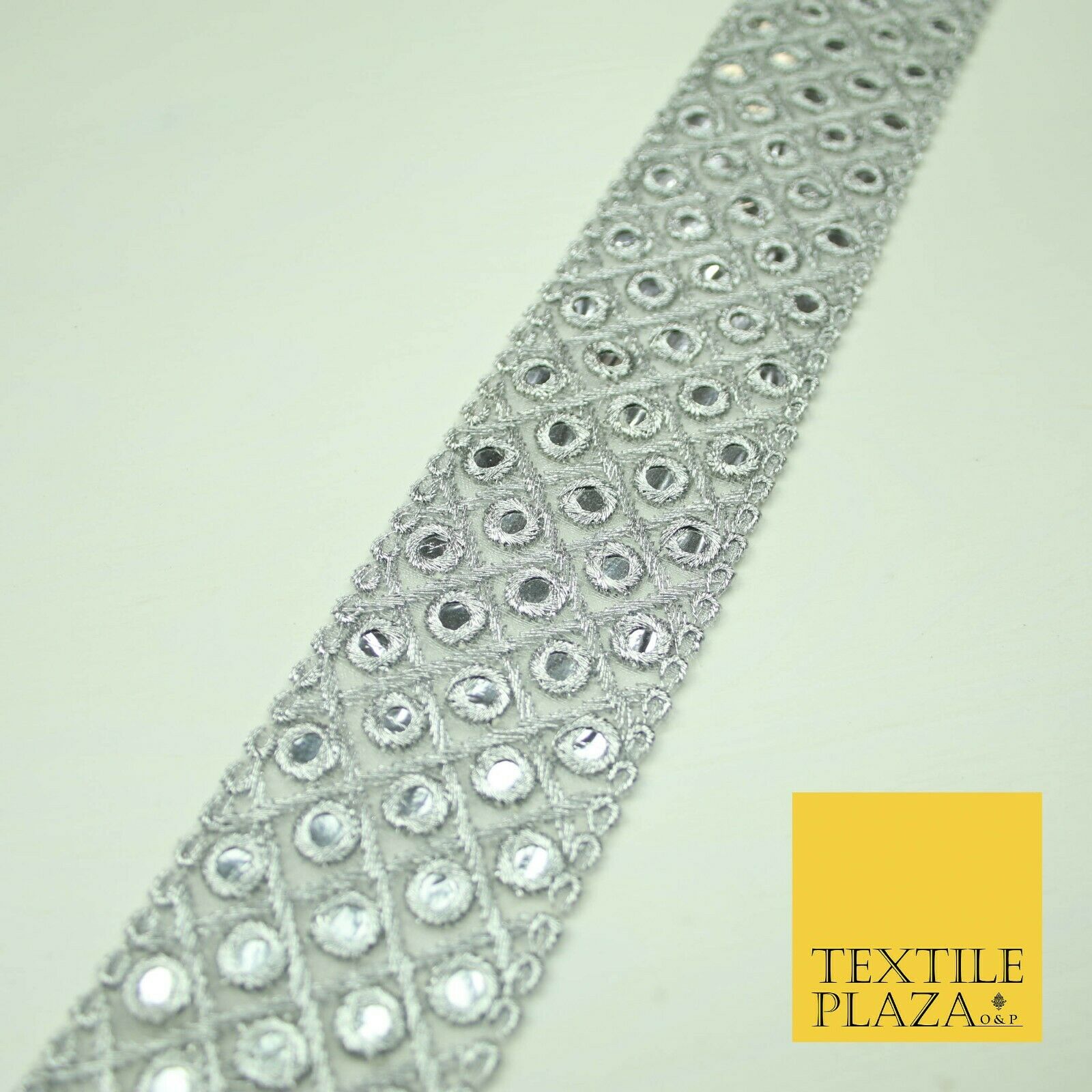 5cm wide Gold Silver Mirror Effect Trimming Ribbon Border Lace Ethnic Gota