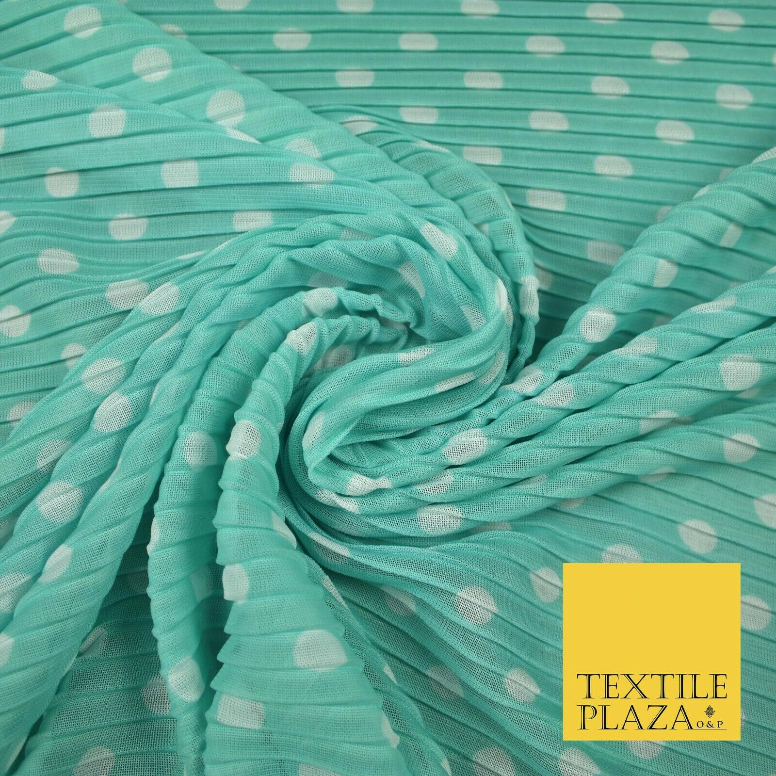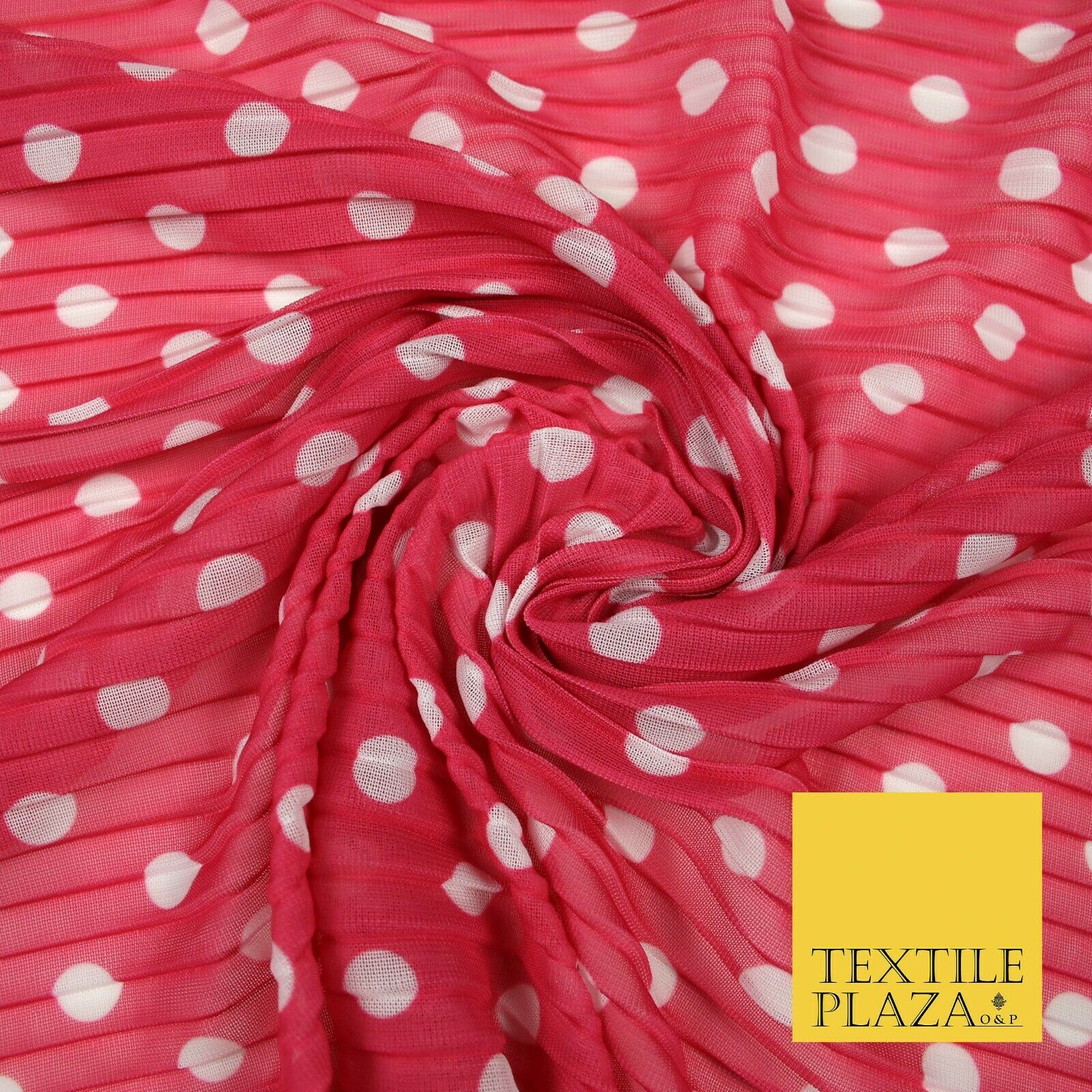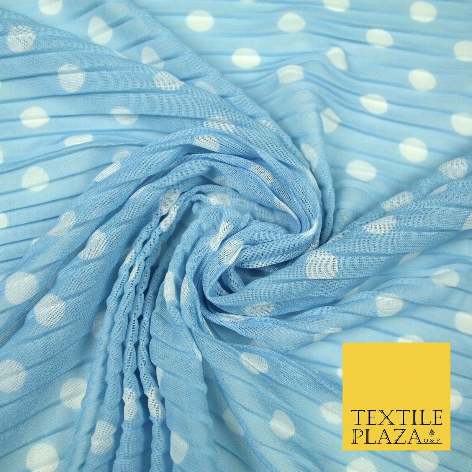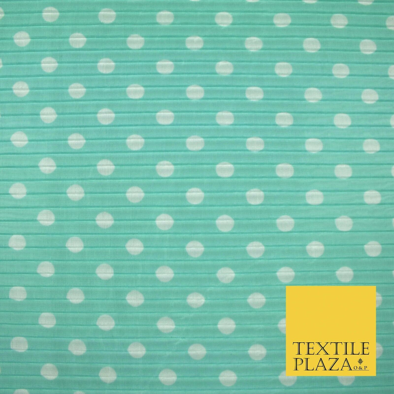 6 COLOURS 1cm White Spotted Printed Pleated Plisse Georgette Stretch Fabric 58"