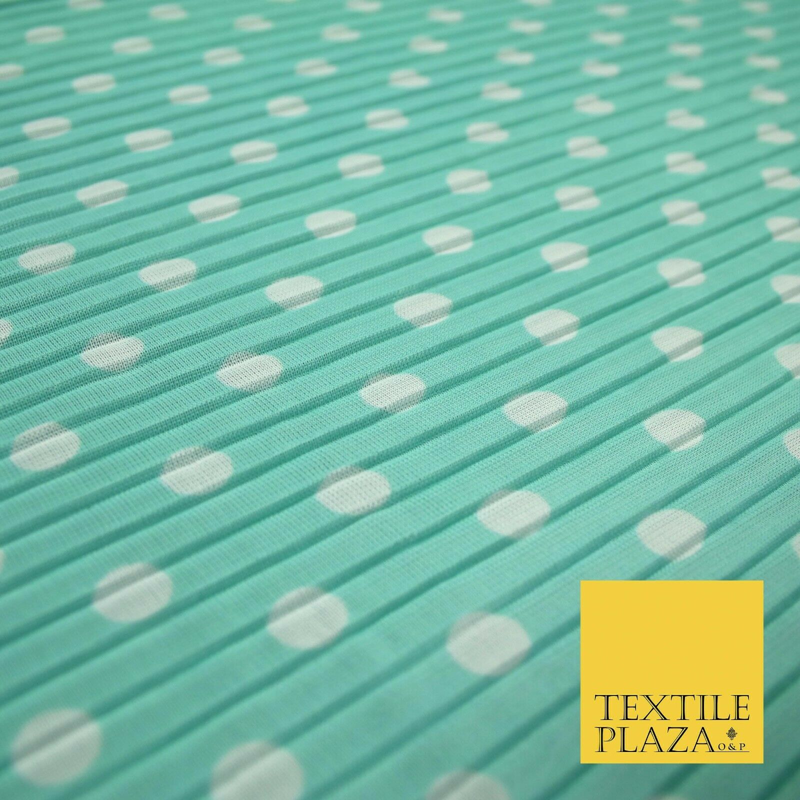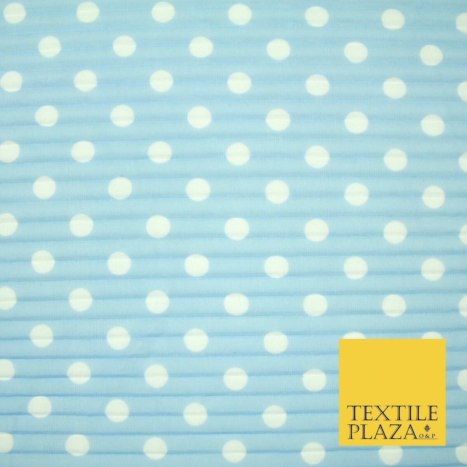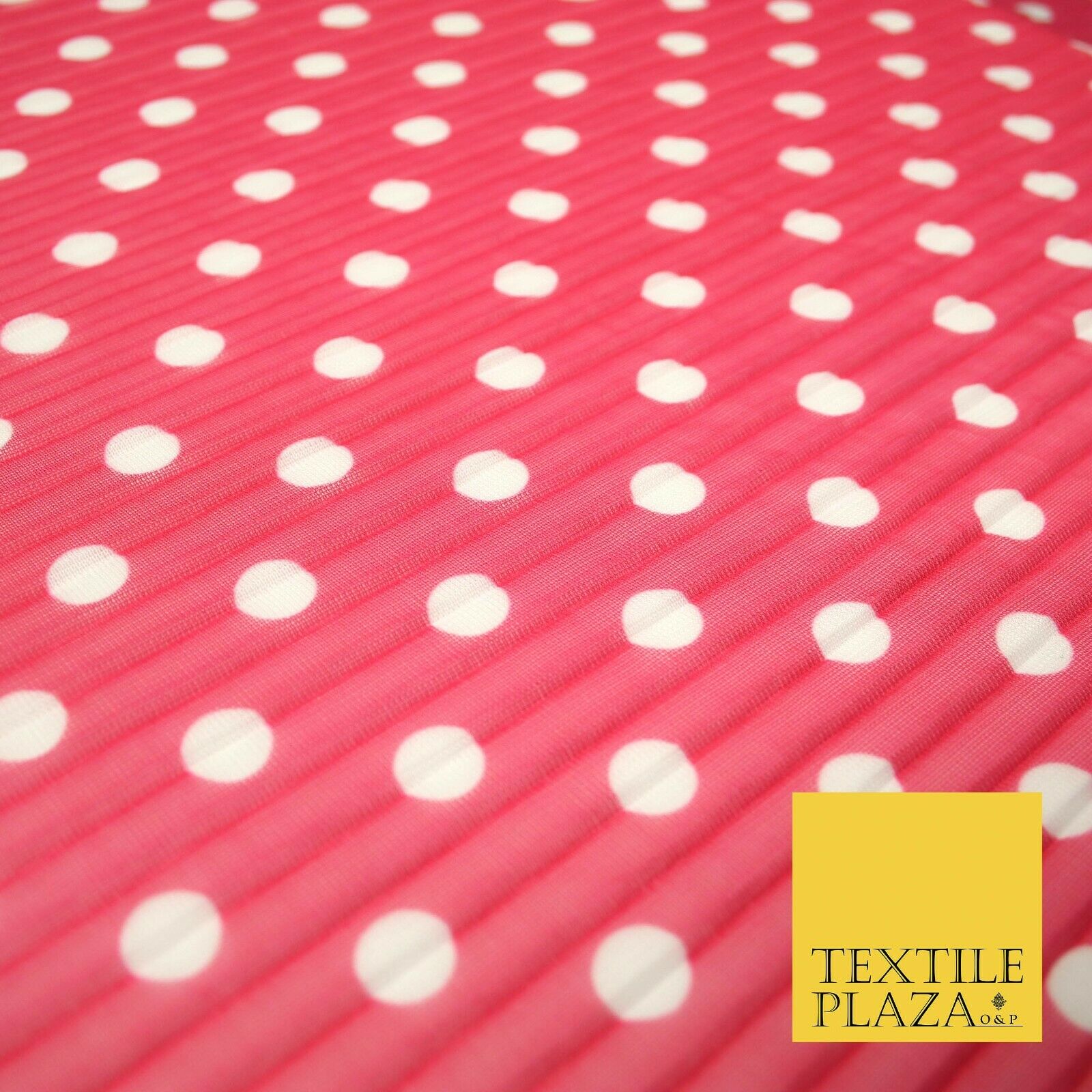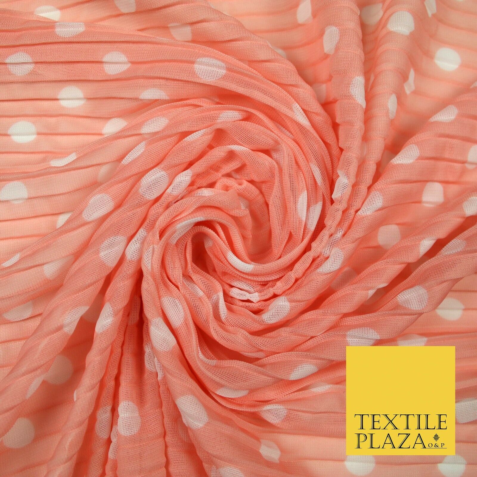 6 COLOURS 1cm White Spotted Printed Pleated Plisse Georgette Stretch Fabric 58"