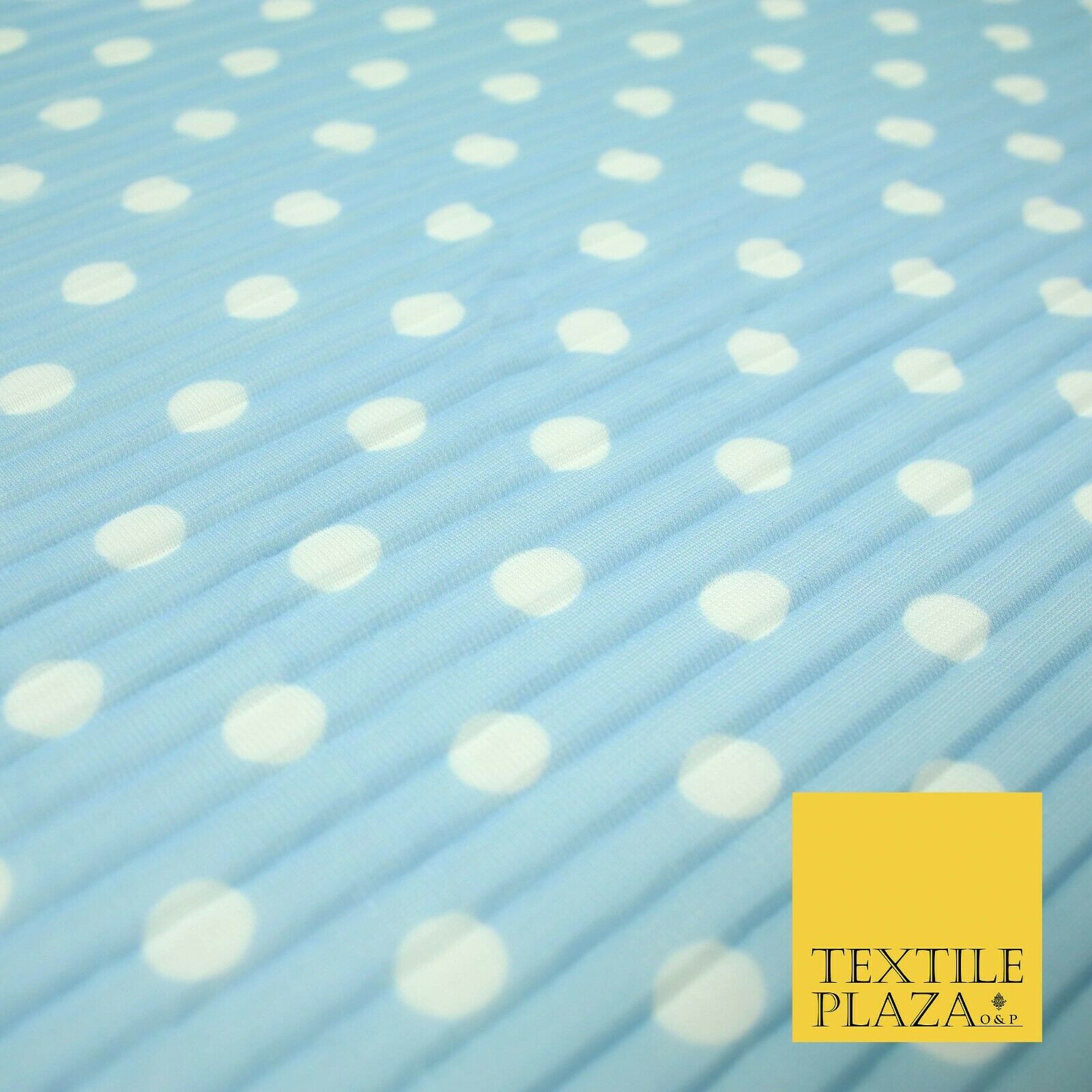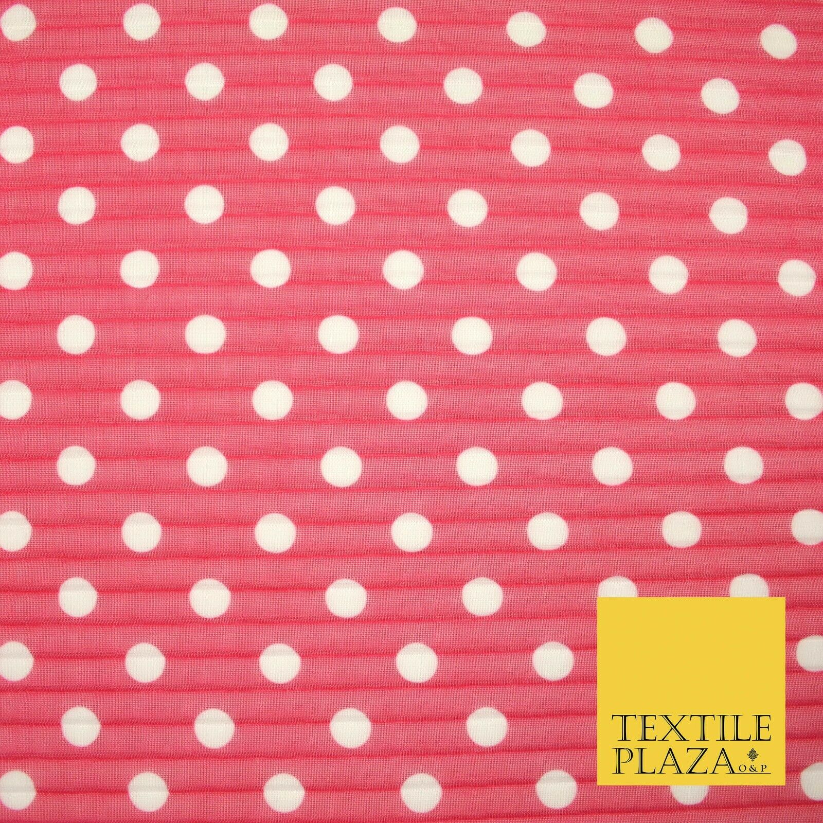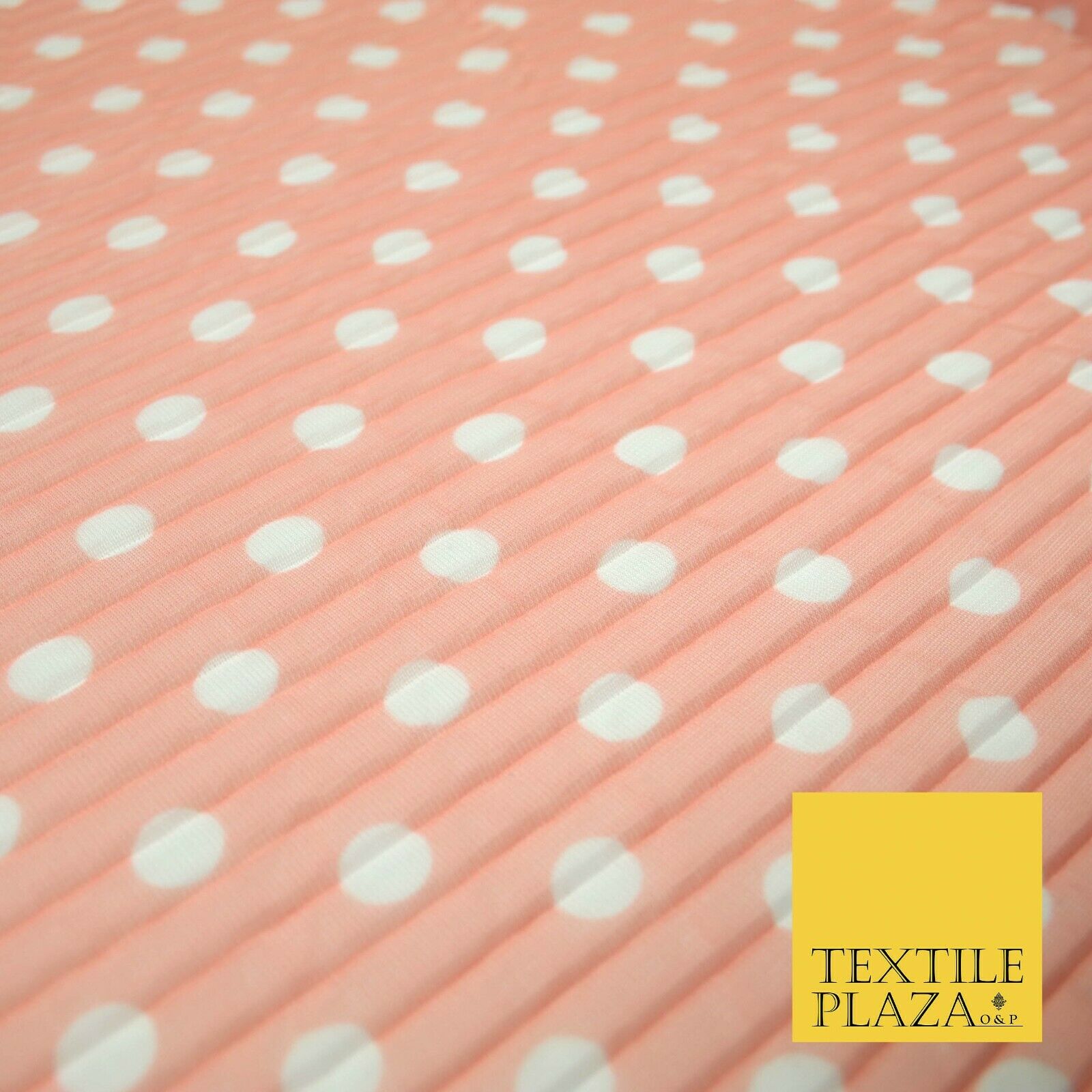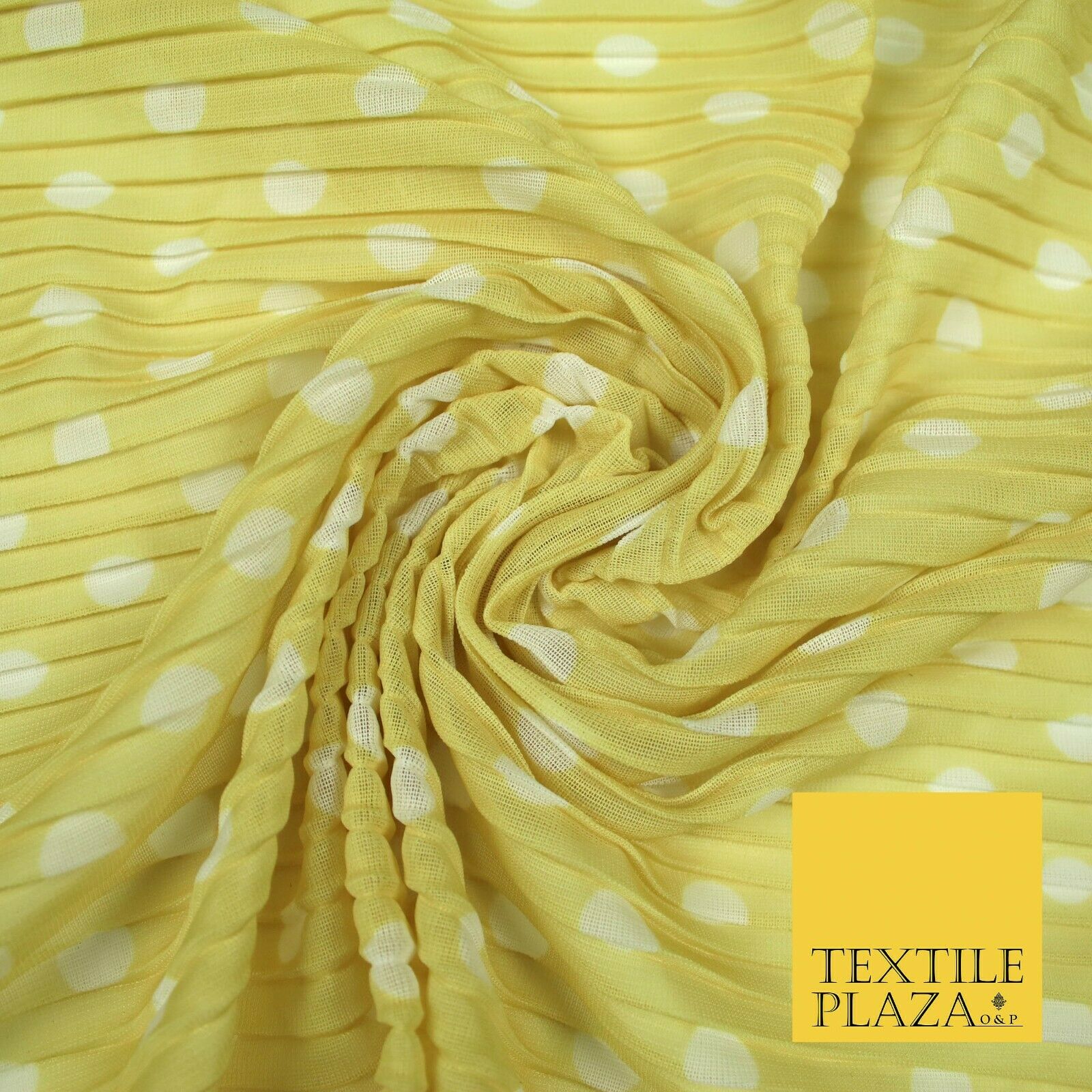 6 COLOURS 1cm White Spotted Printed Pleated Plisse Georgette Stretch Fabric 58"