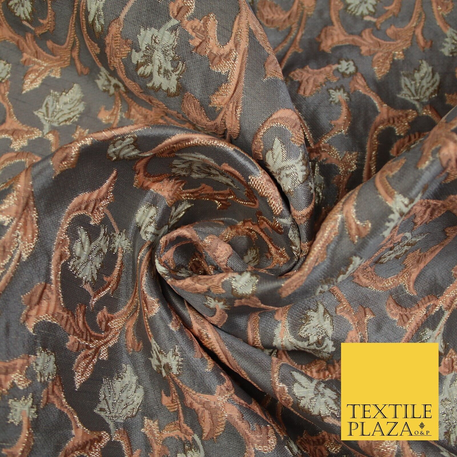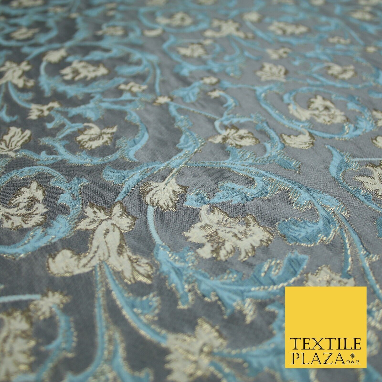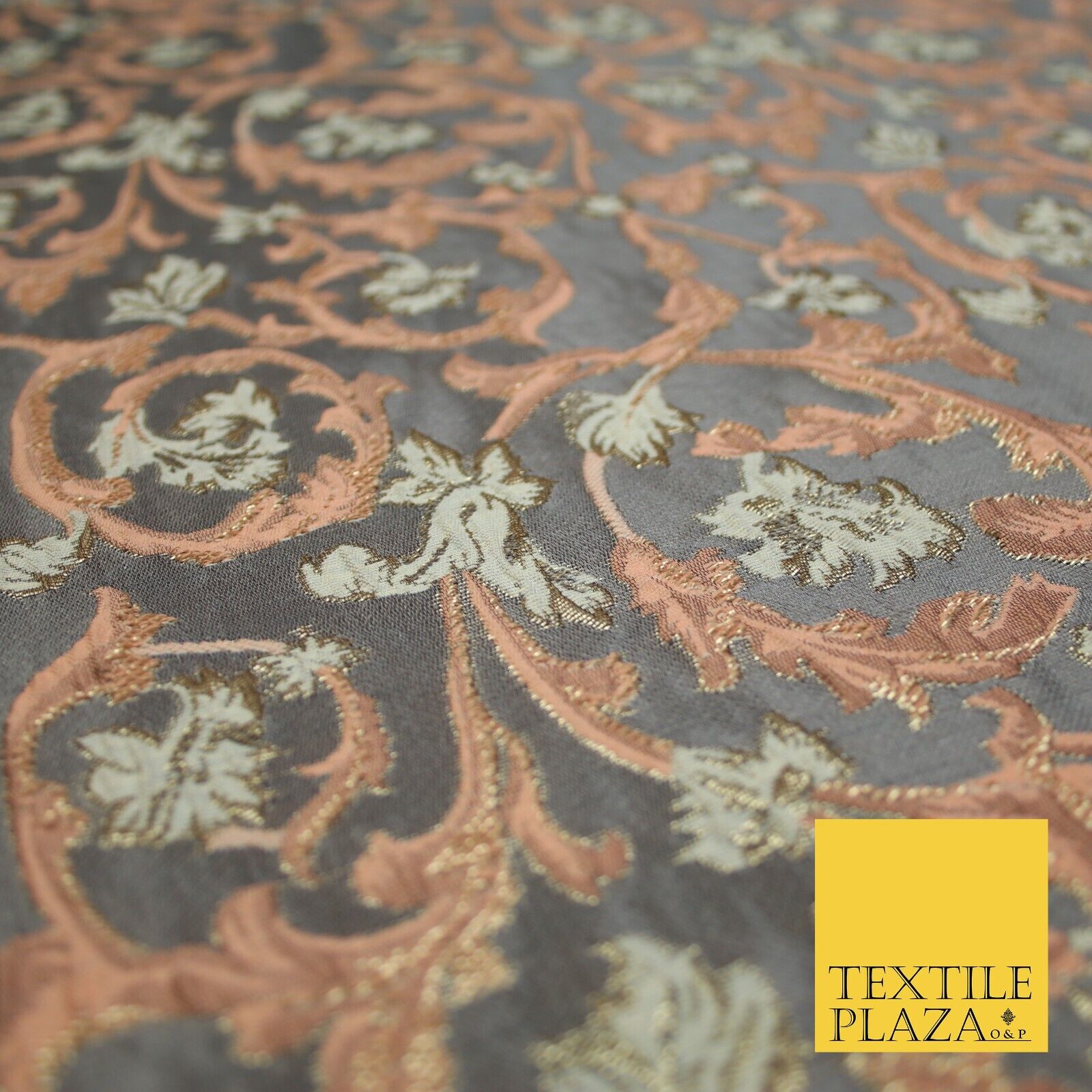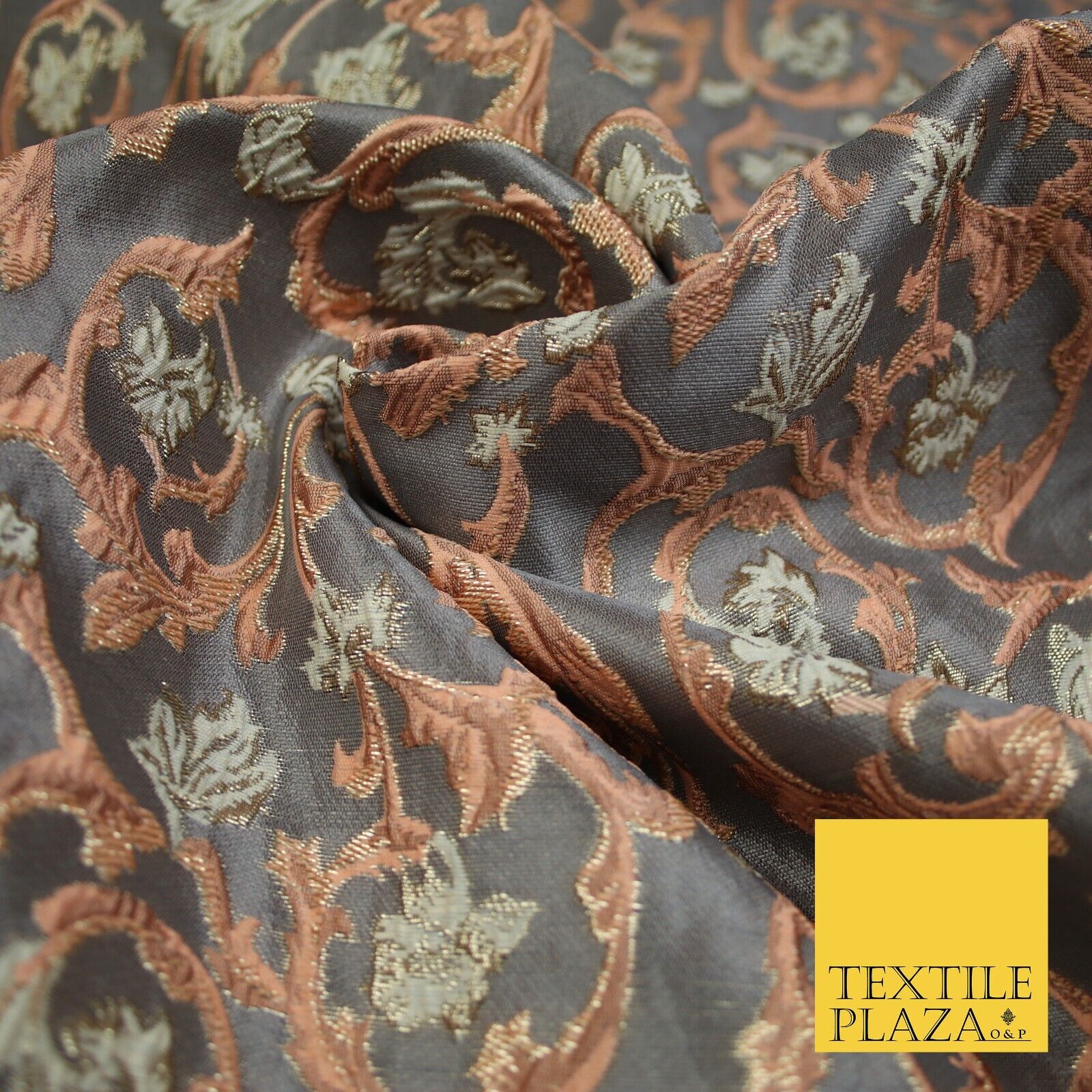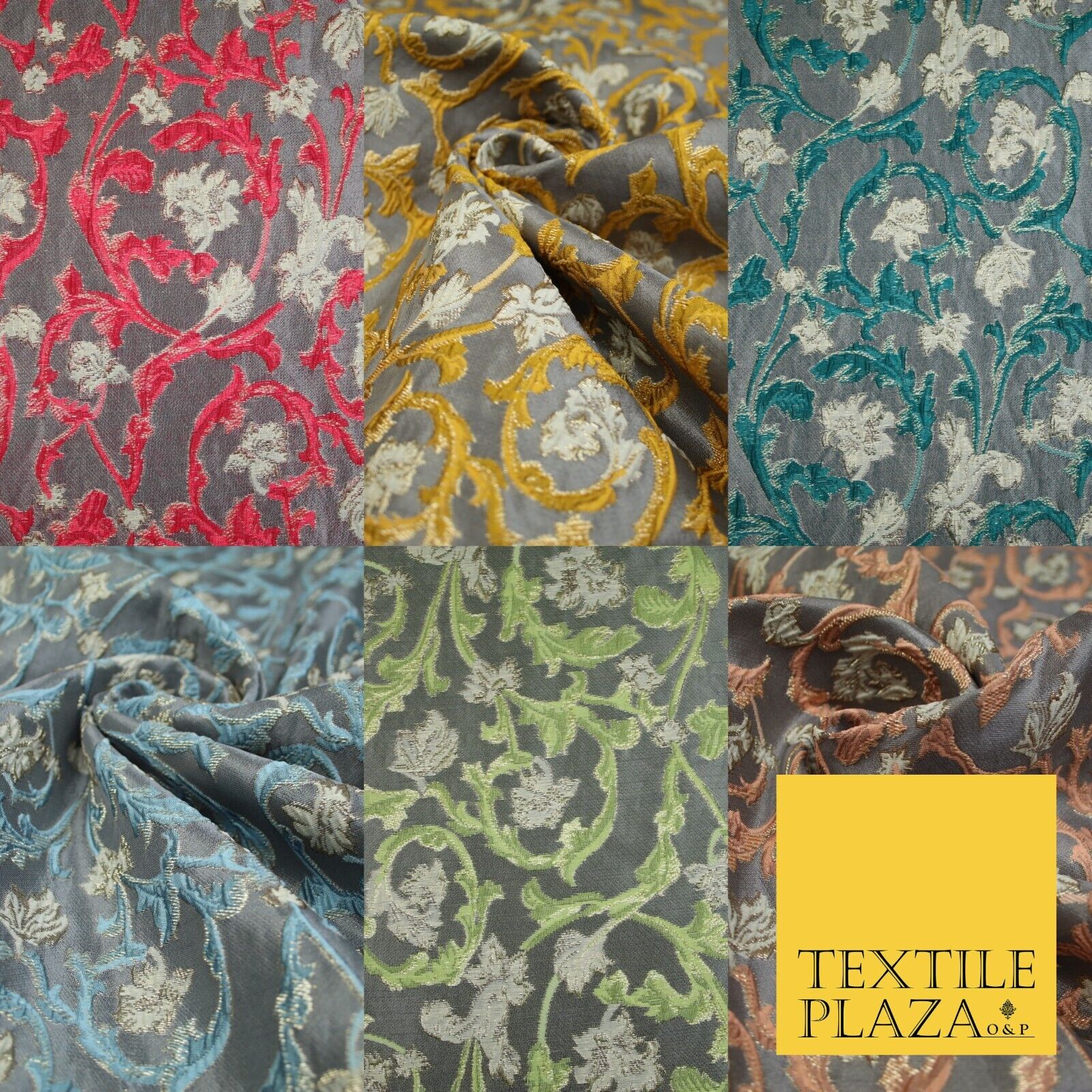 6 COLOURS Grey Ornamental Floral Vine Textured Brocade Jacquard Dress Fabric 59"