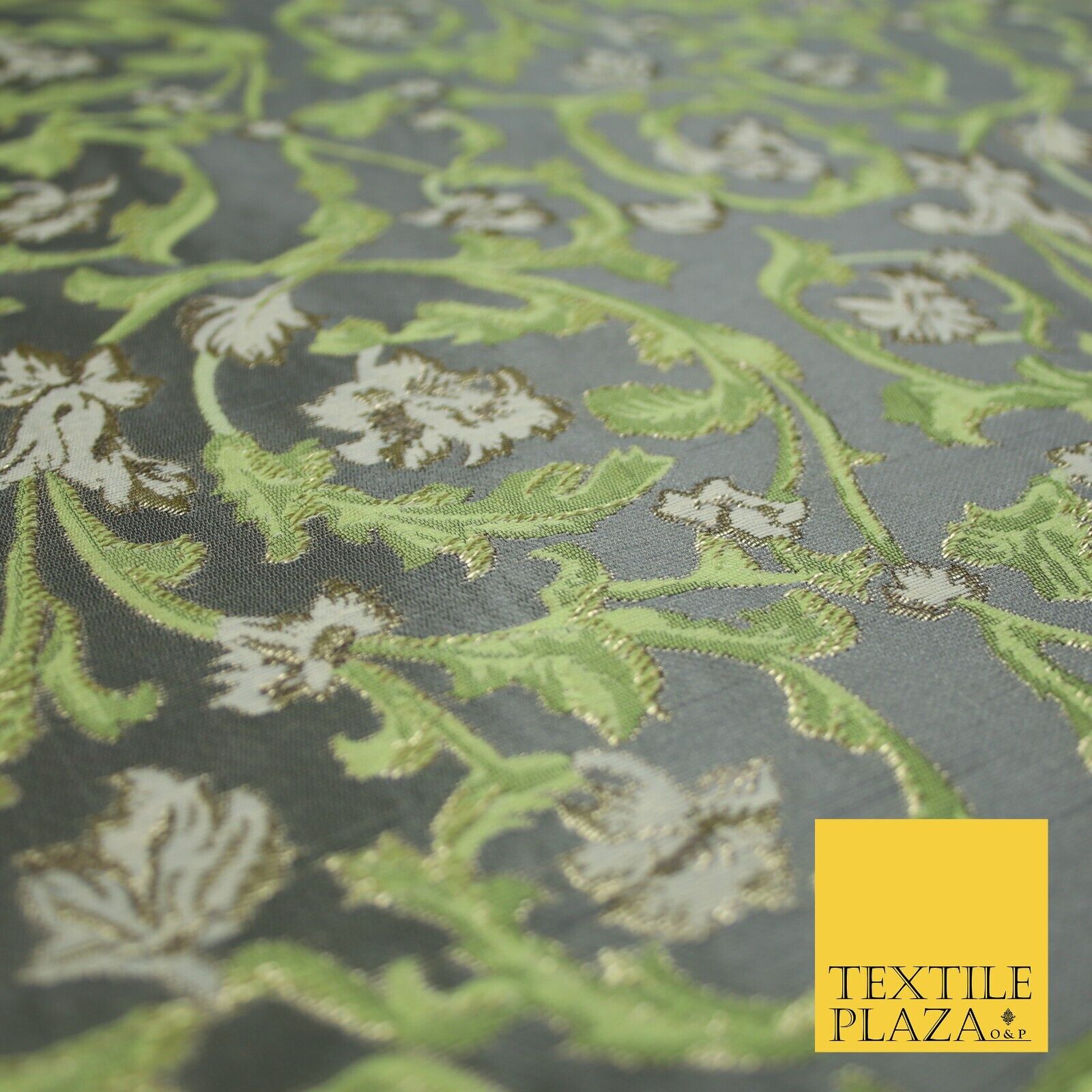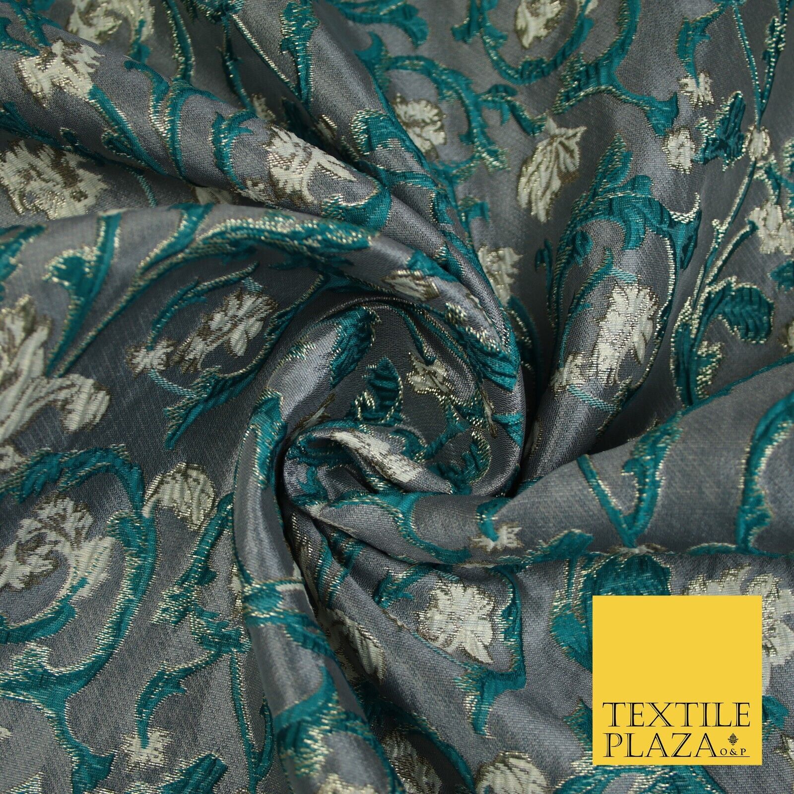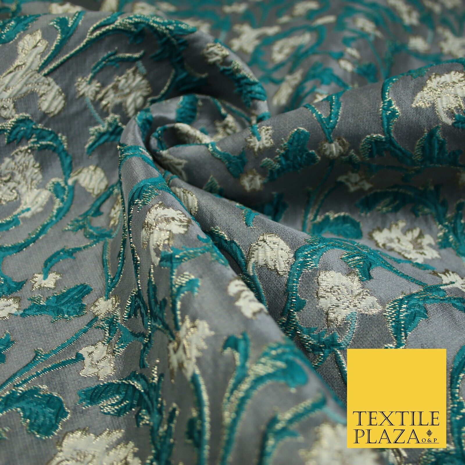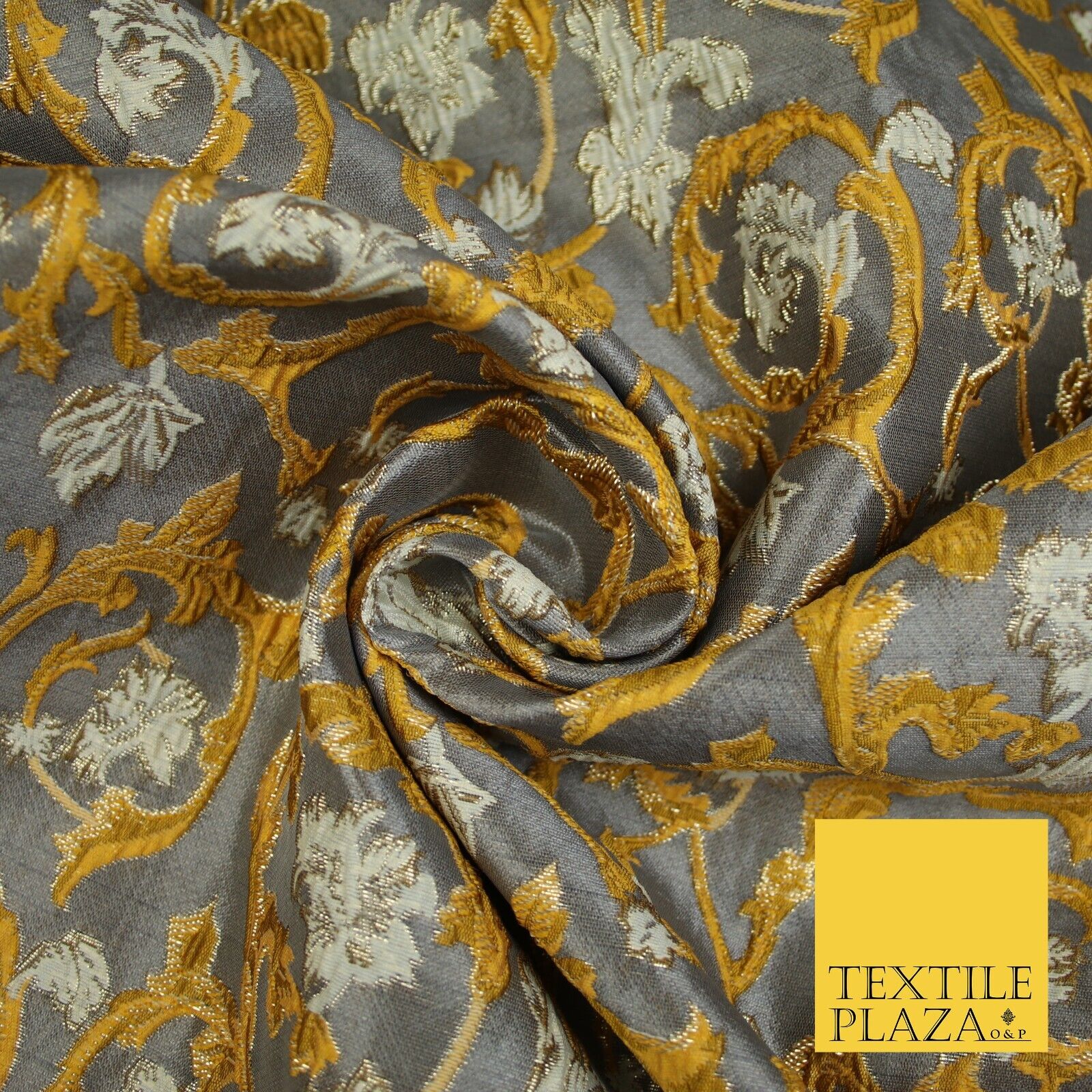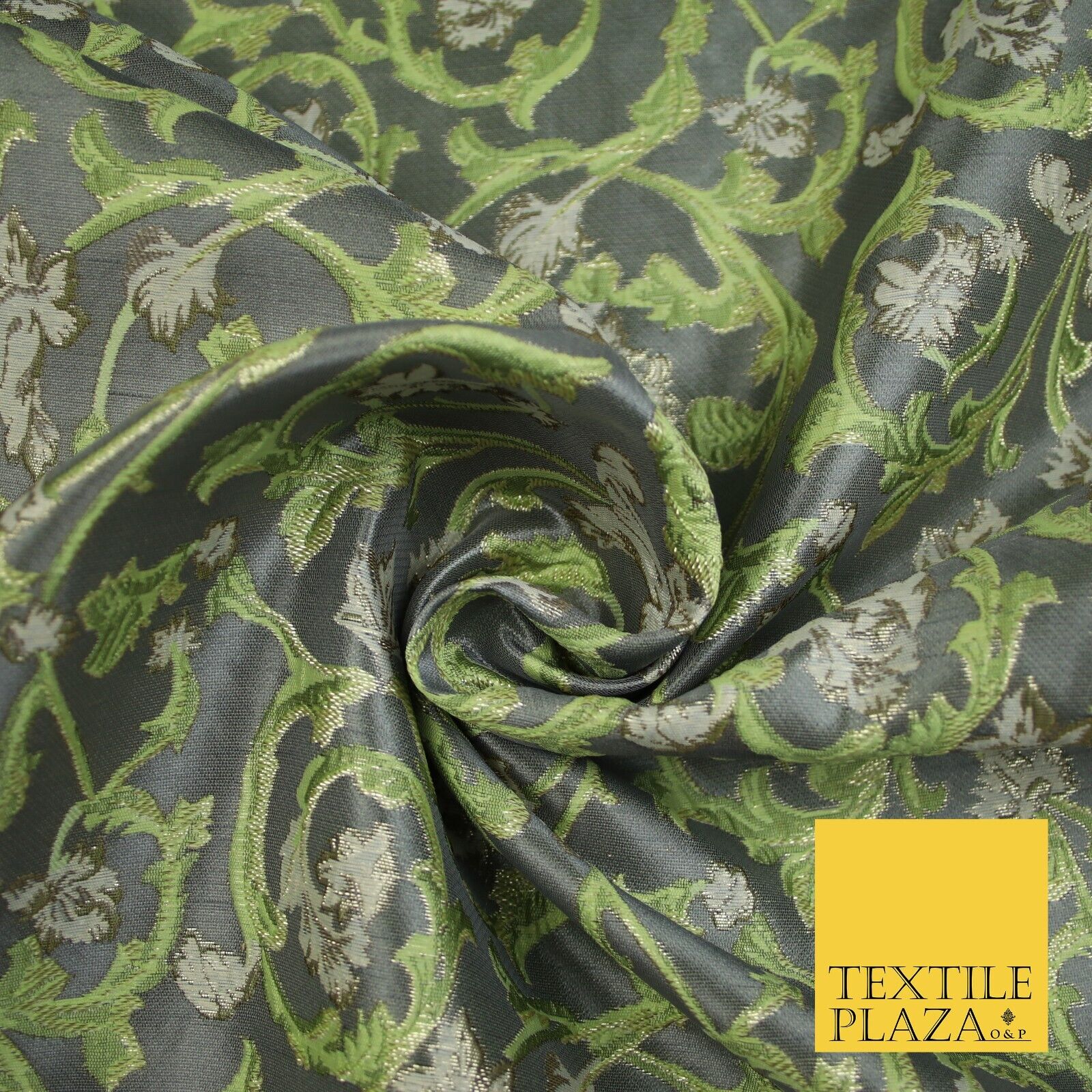 6 COLOURS Grey Ornamental Floral Vine Textured Brocade Jacquard Dress Fabric 59"