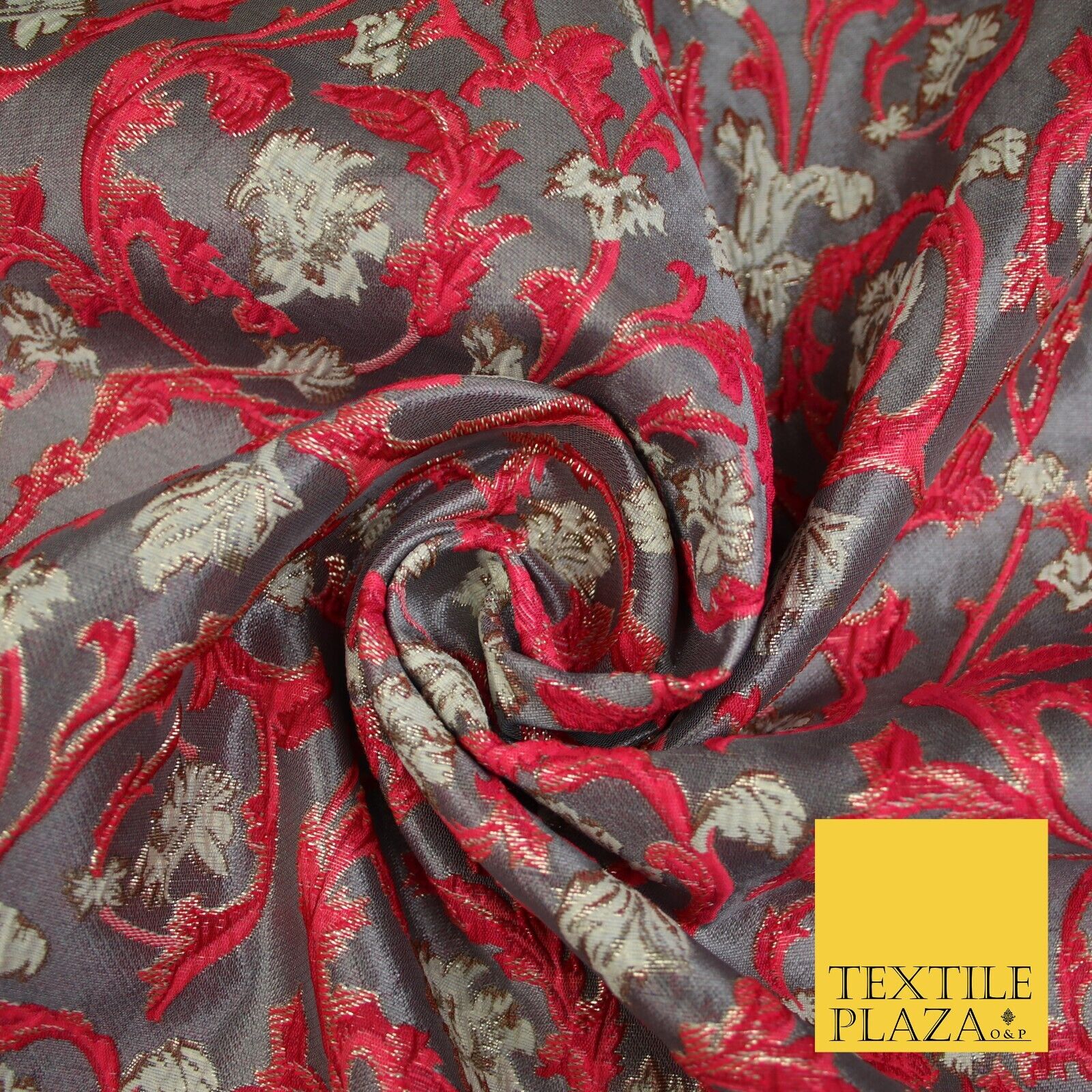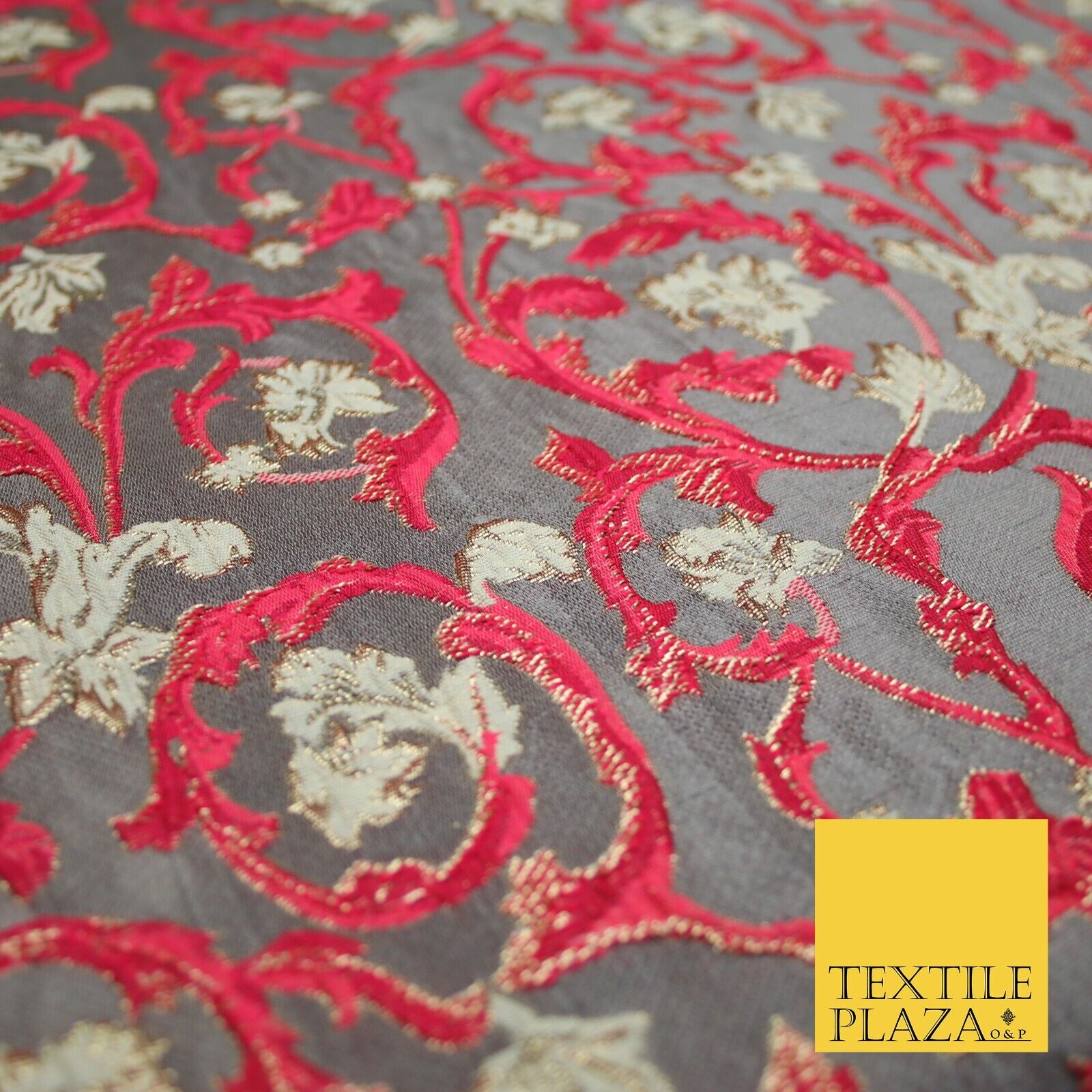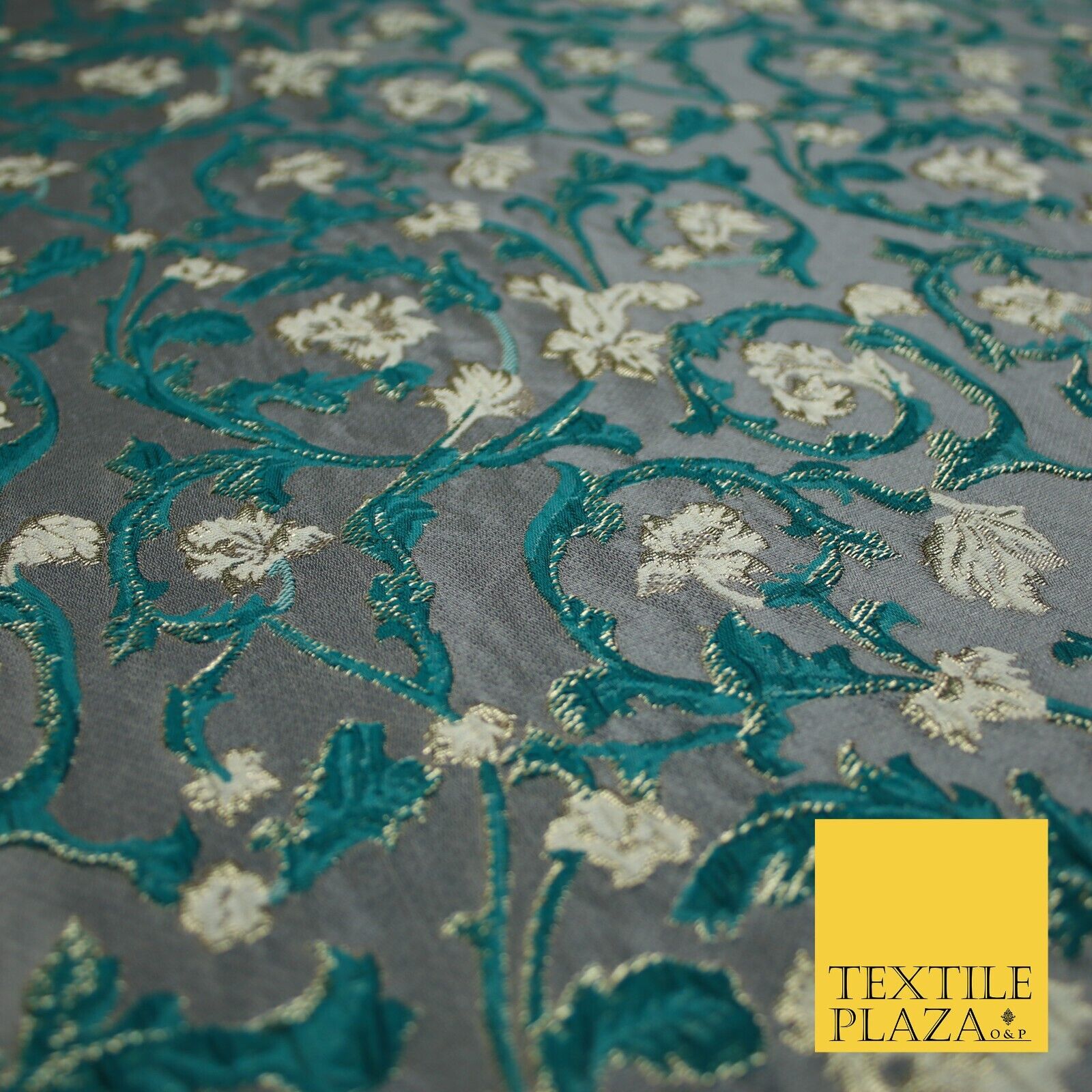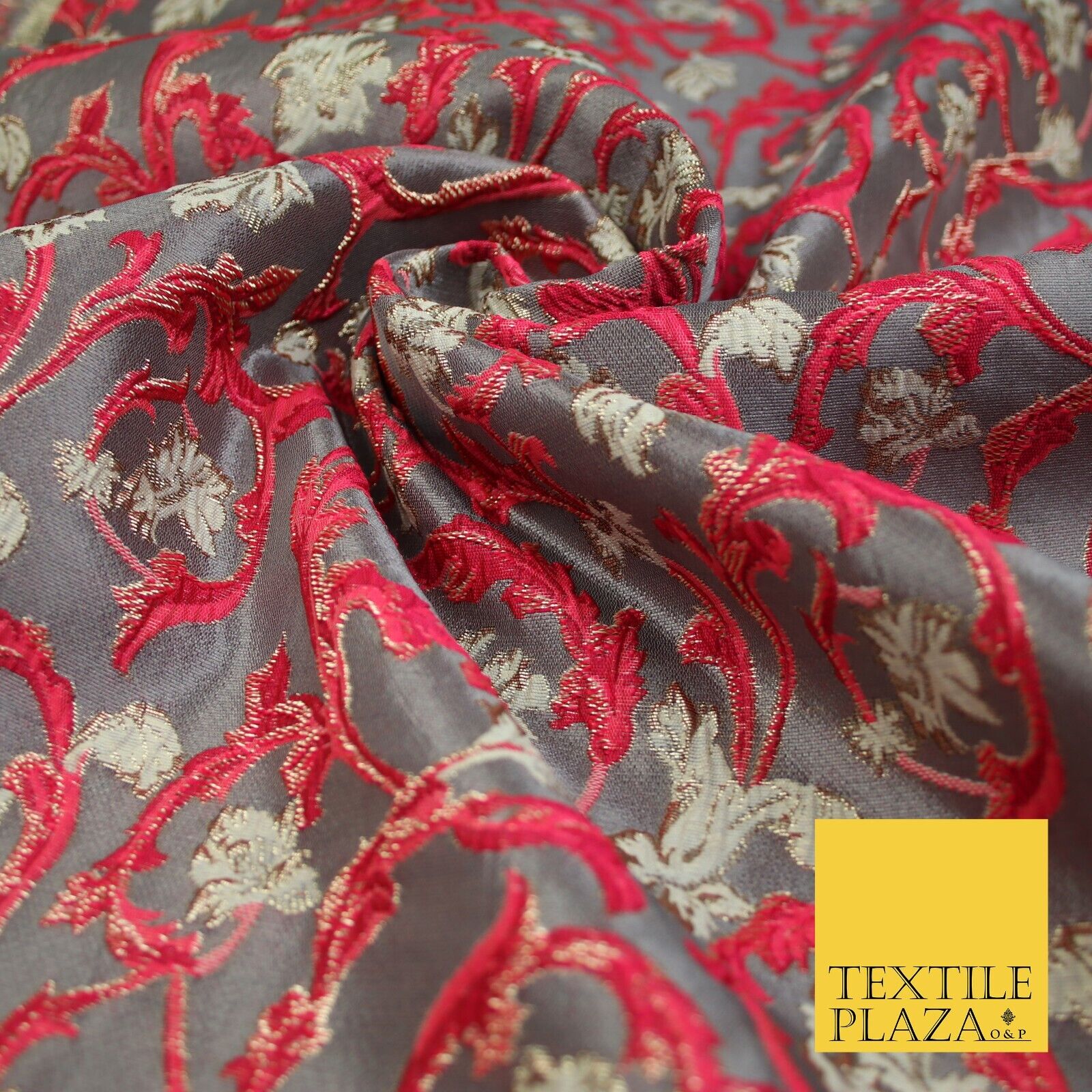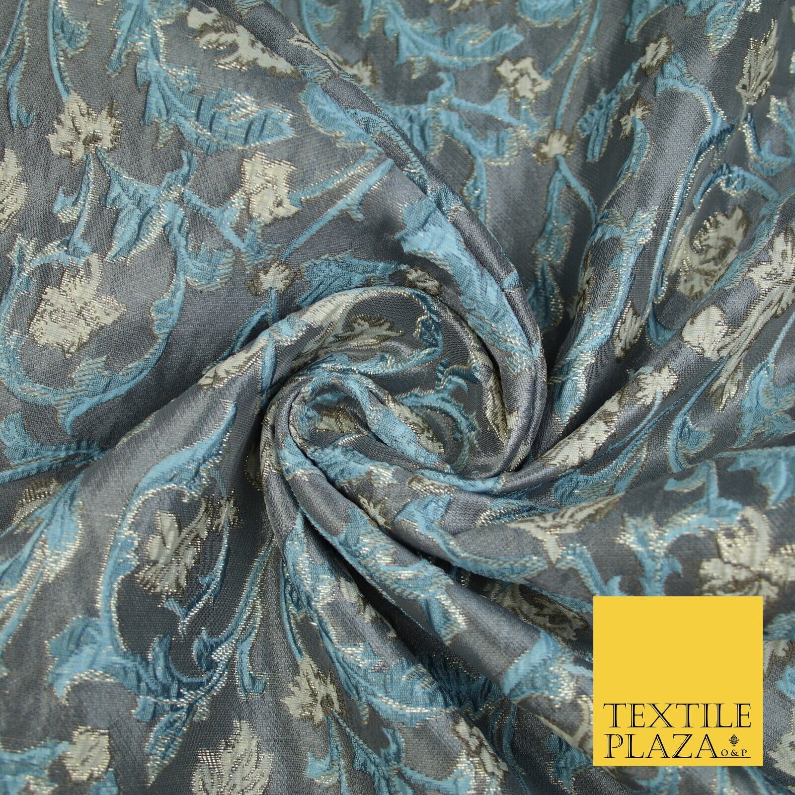 6 COLOURS Grey Ornamental Floral Vine Textured Brocade Jacquard Dress Fabric 59"