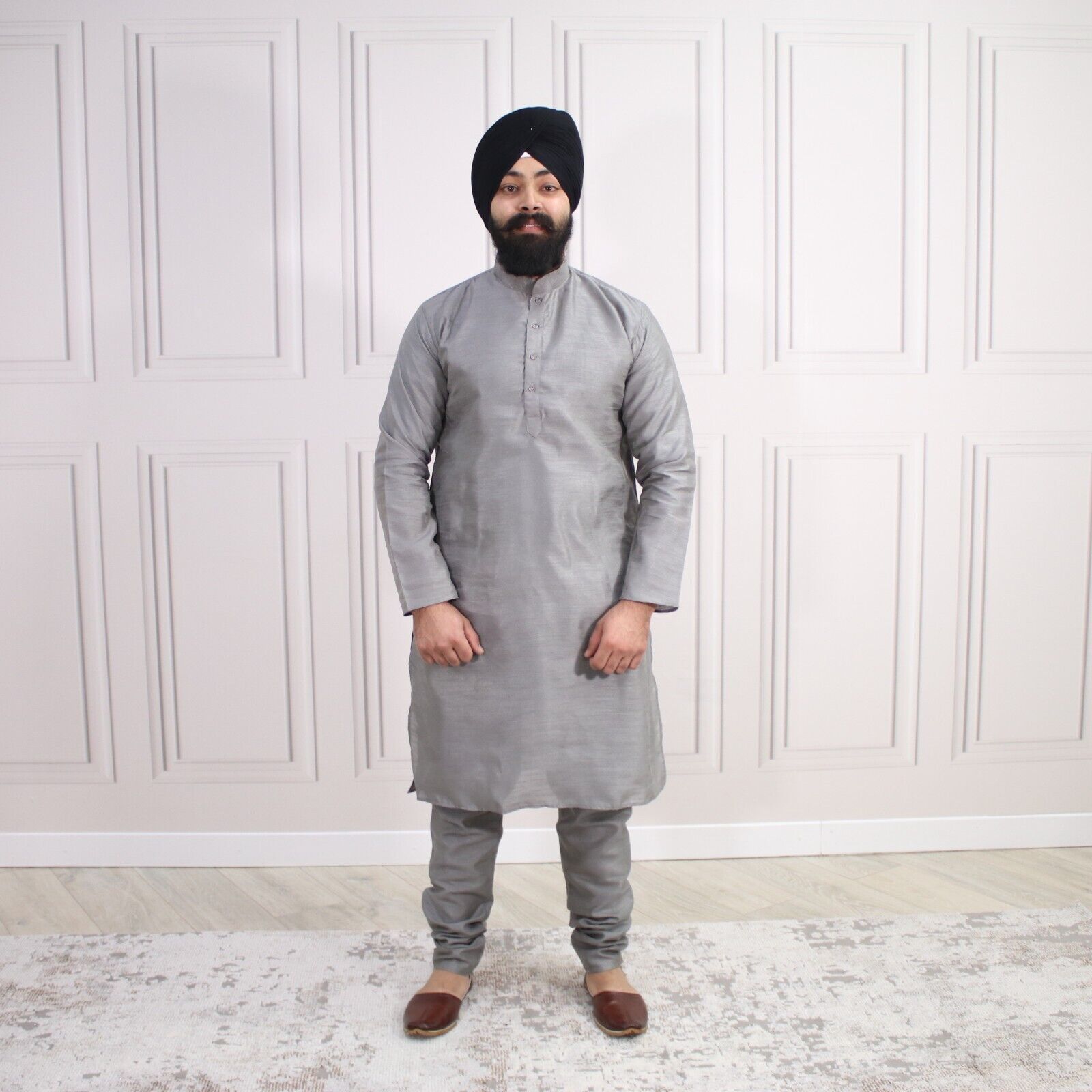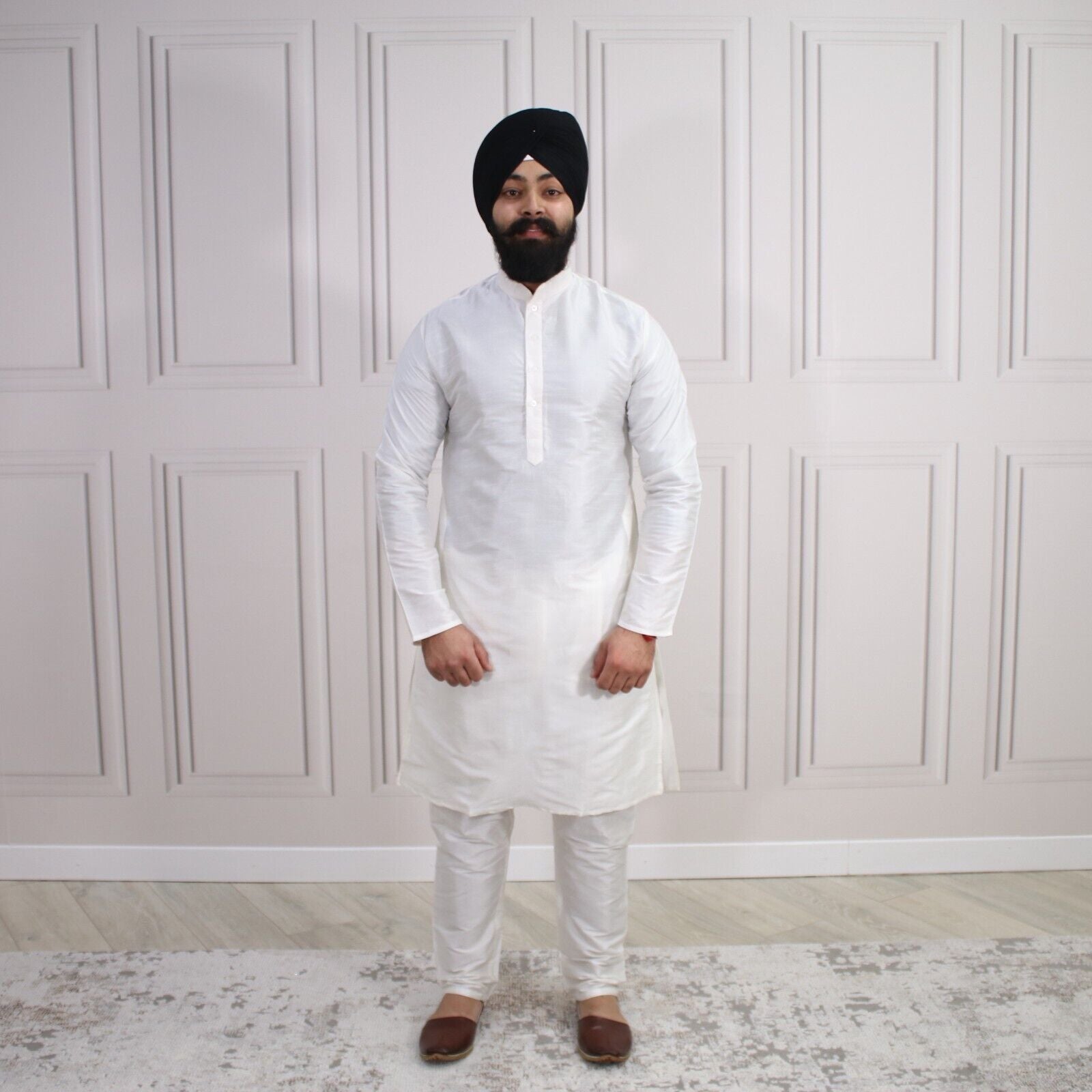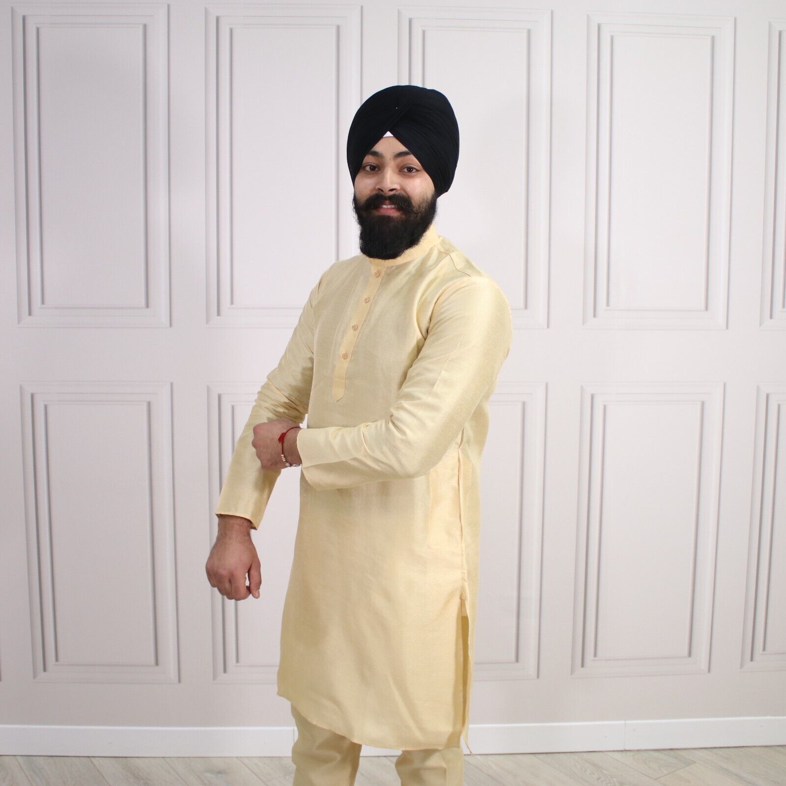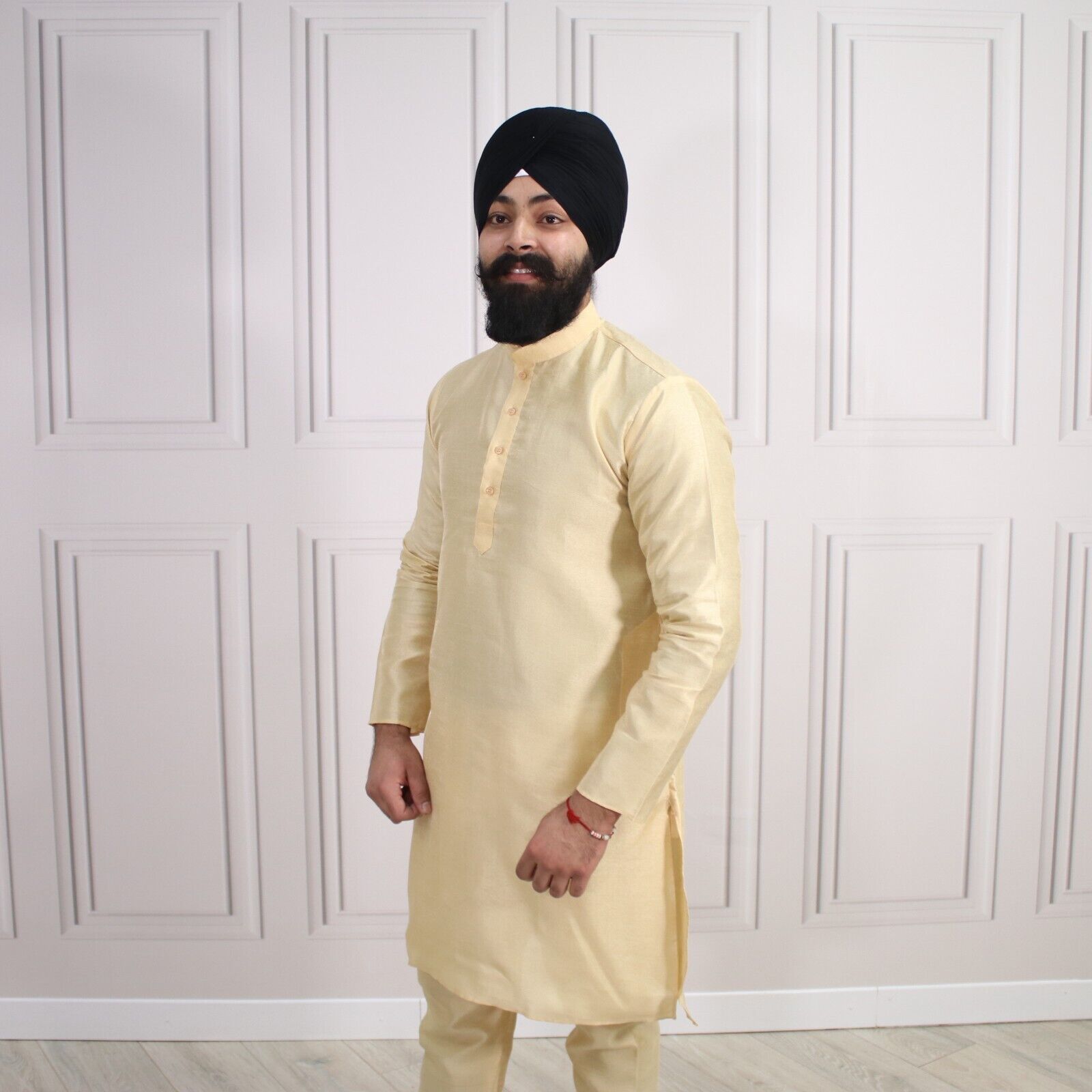 6 COLOURS - Mens Nehru Kurta Pajama Raw Silk Indian Punjabi Asian Jago Sangeet