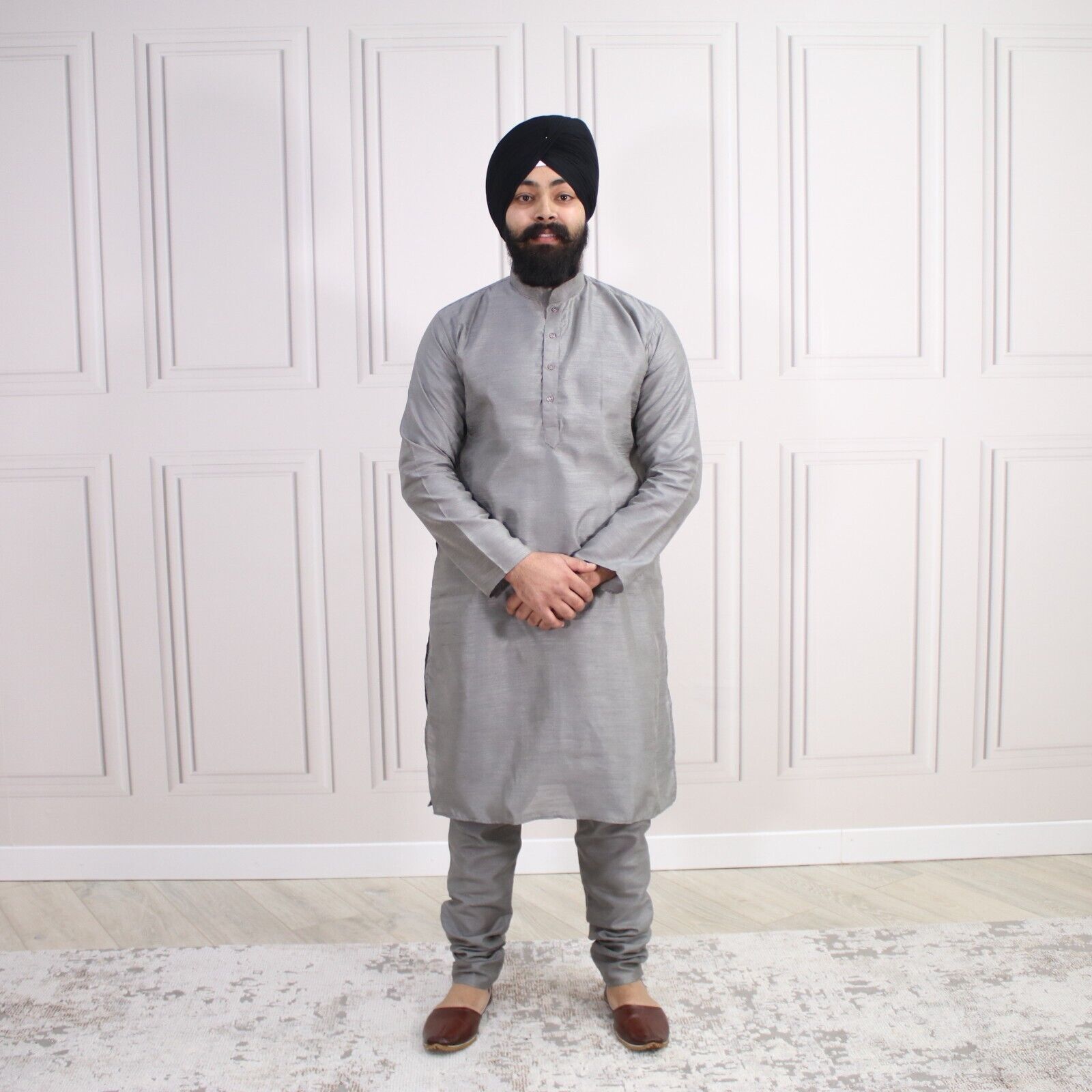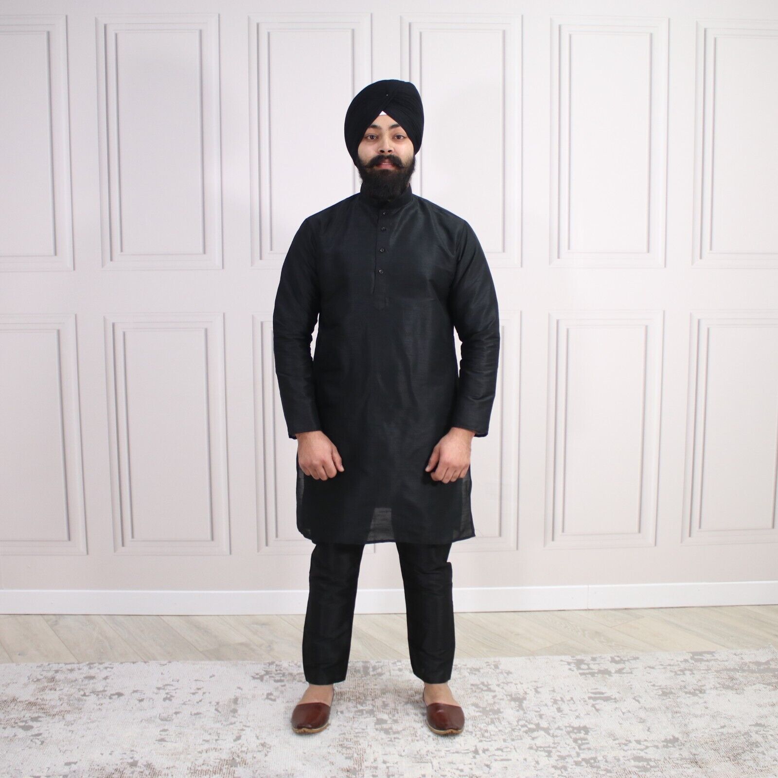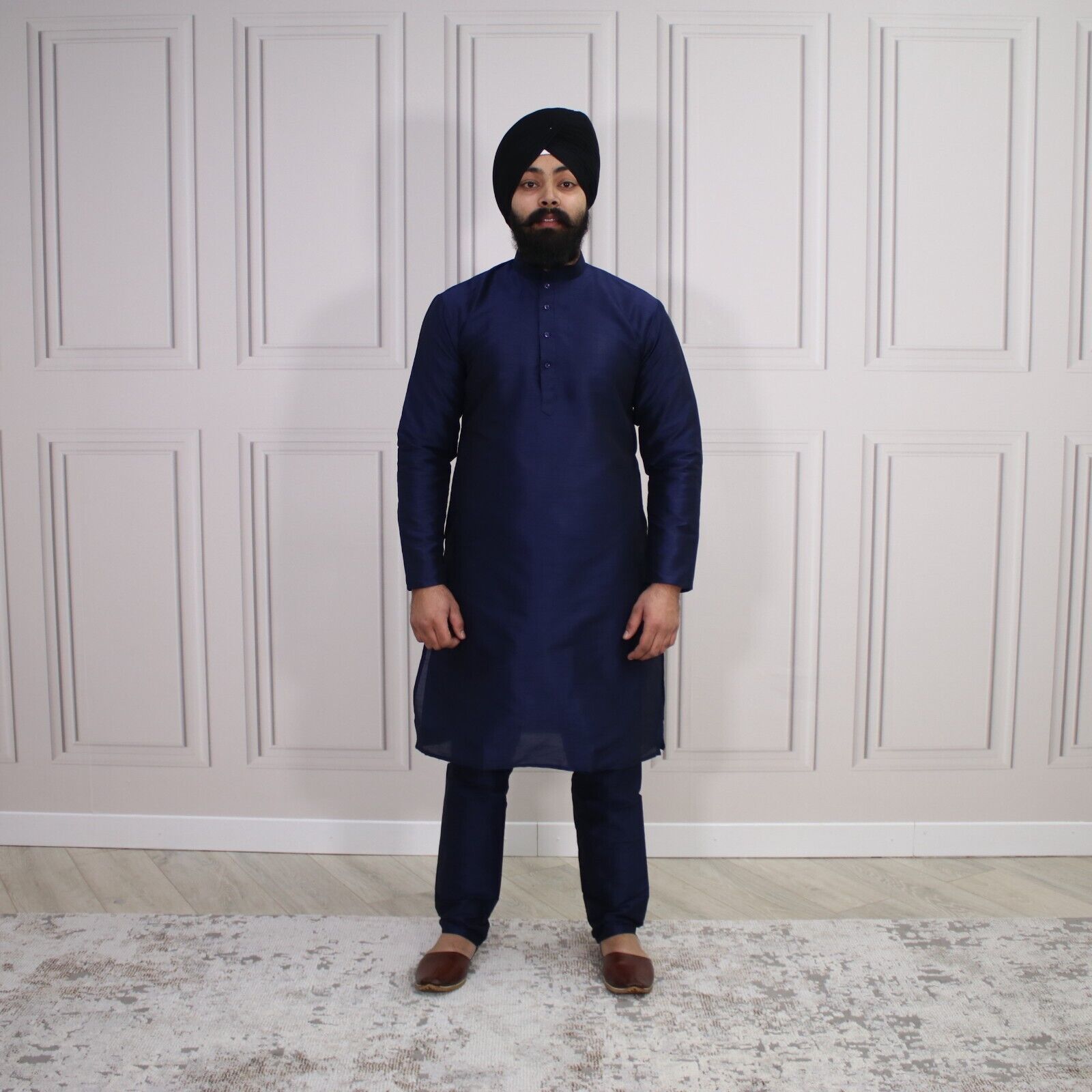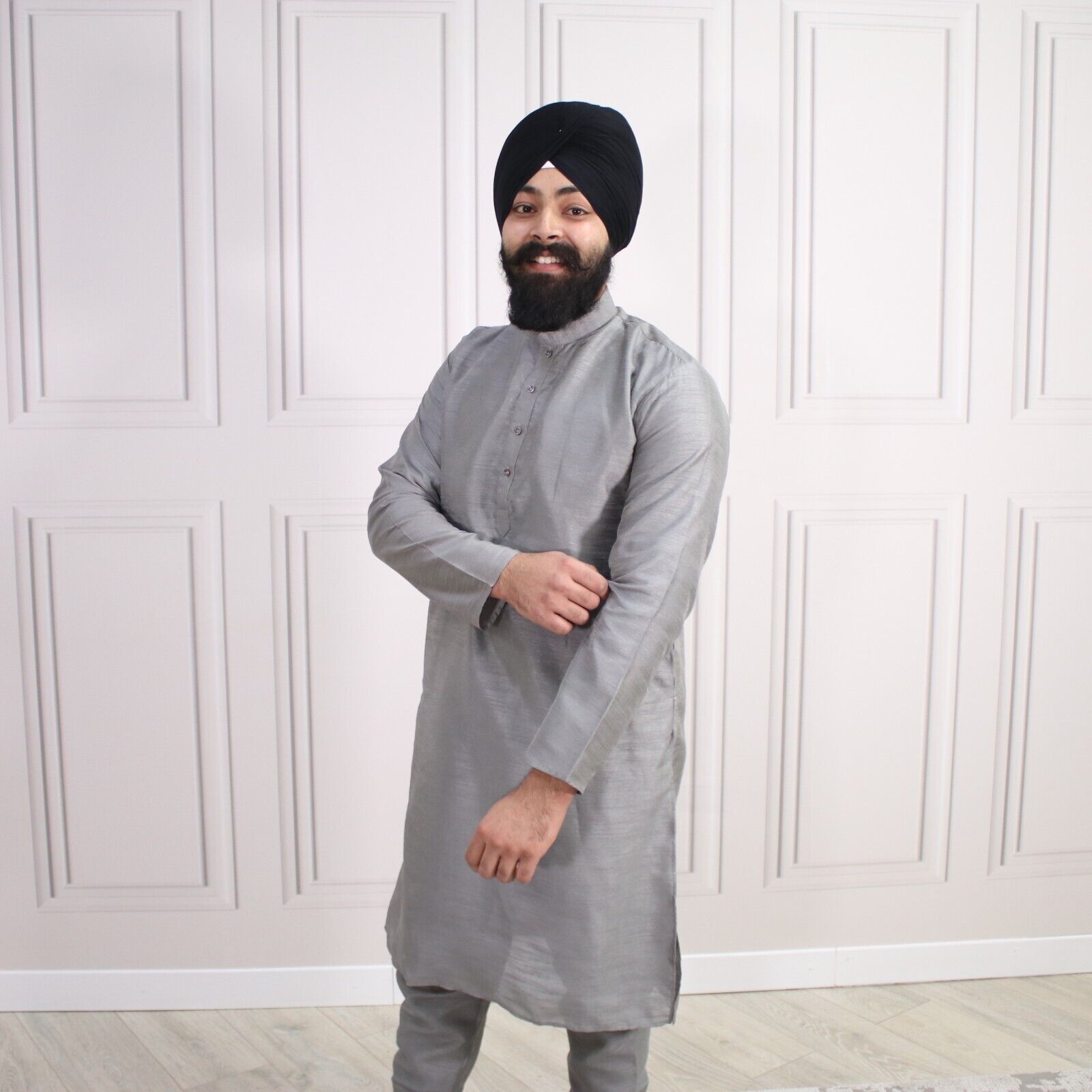 6 COLOURS - Mens Nehru Kurta Pajama Raw Silk Indian Punjabi Asian Jago Sangeet