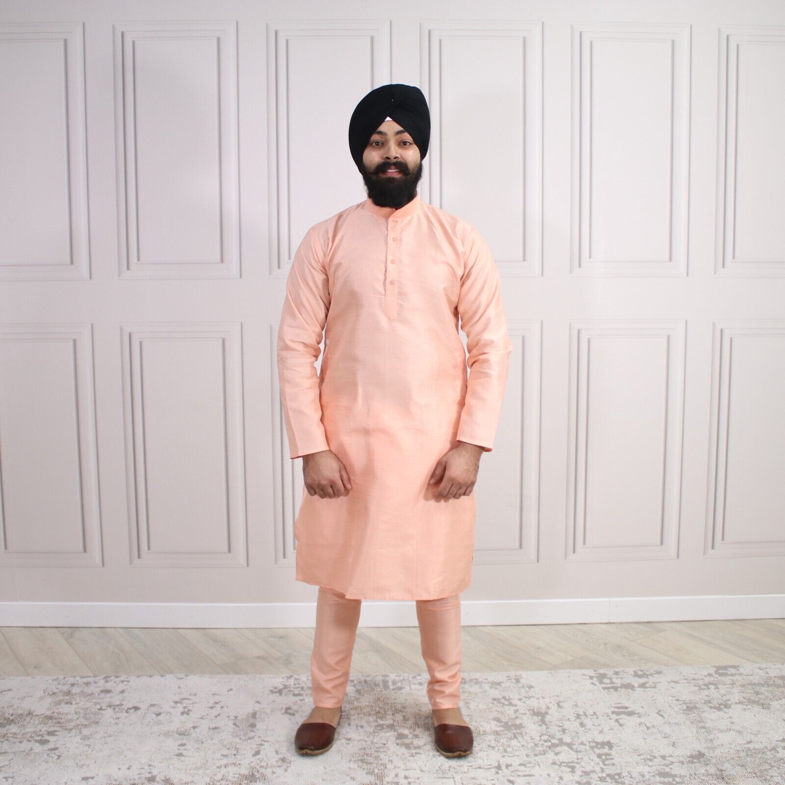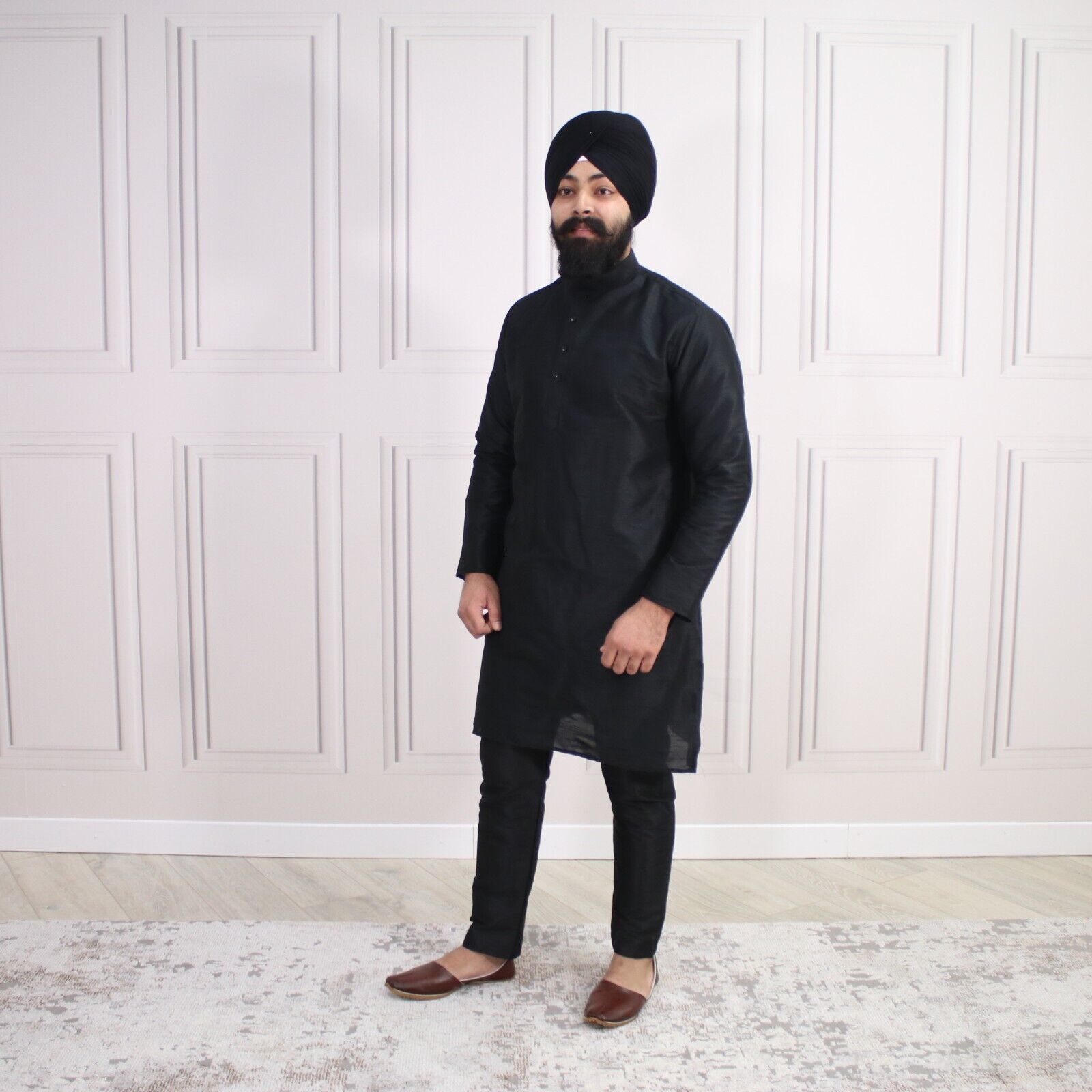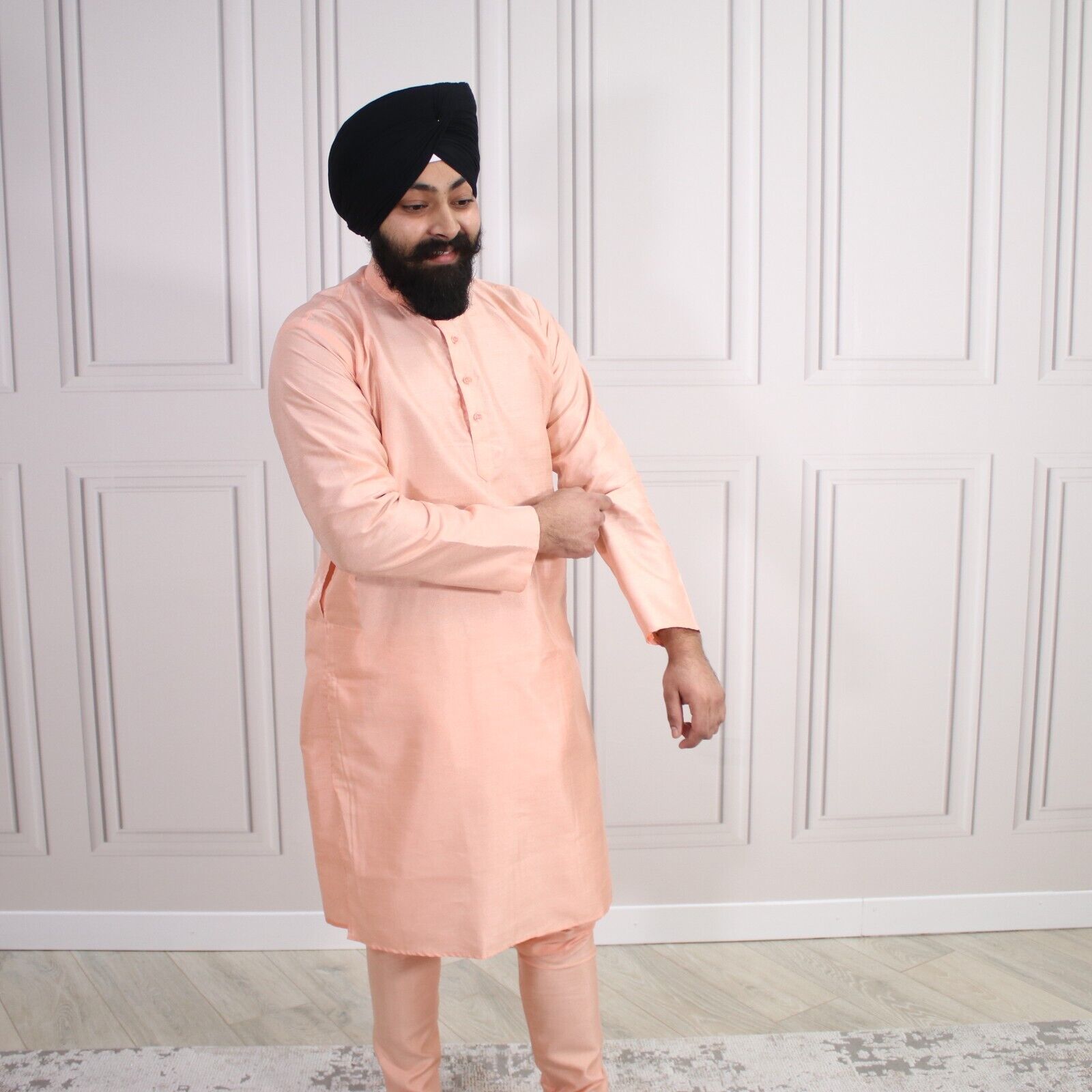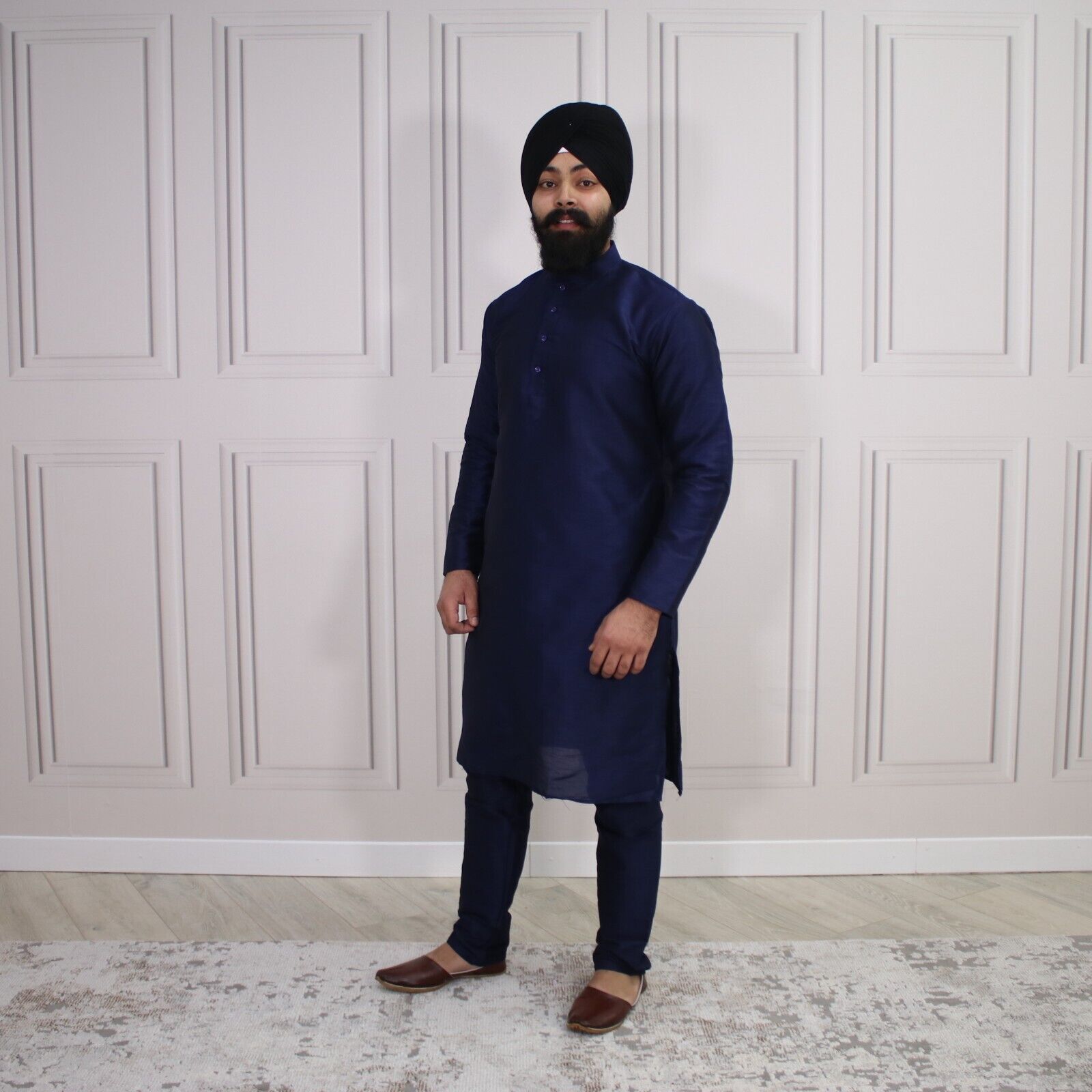 6 COLOURS - Mens Nehru Kurta Pajama Raw Silk Indian Punjabi Asian Jago Sangeet
