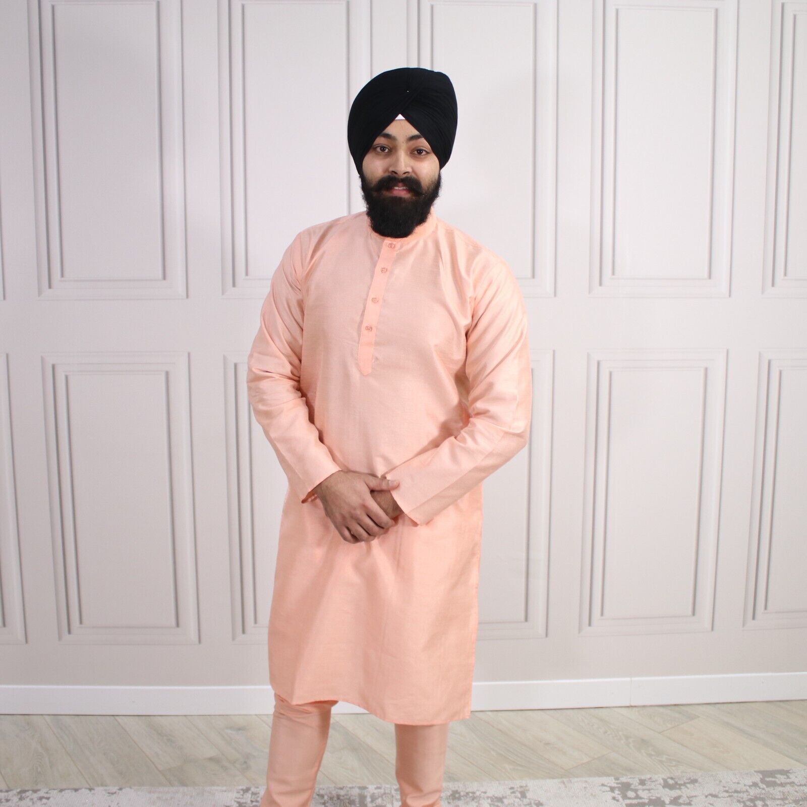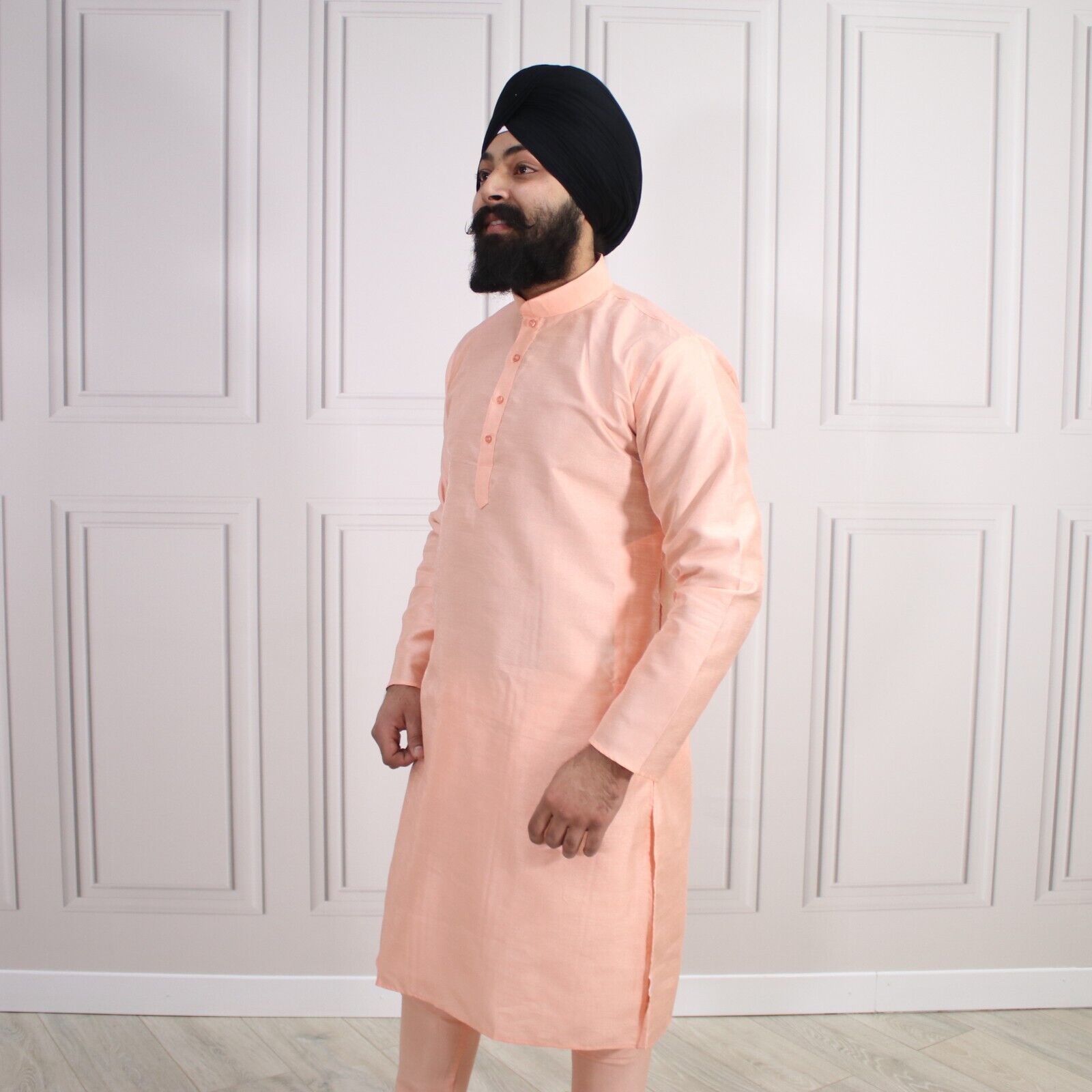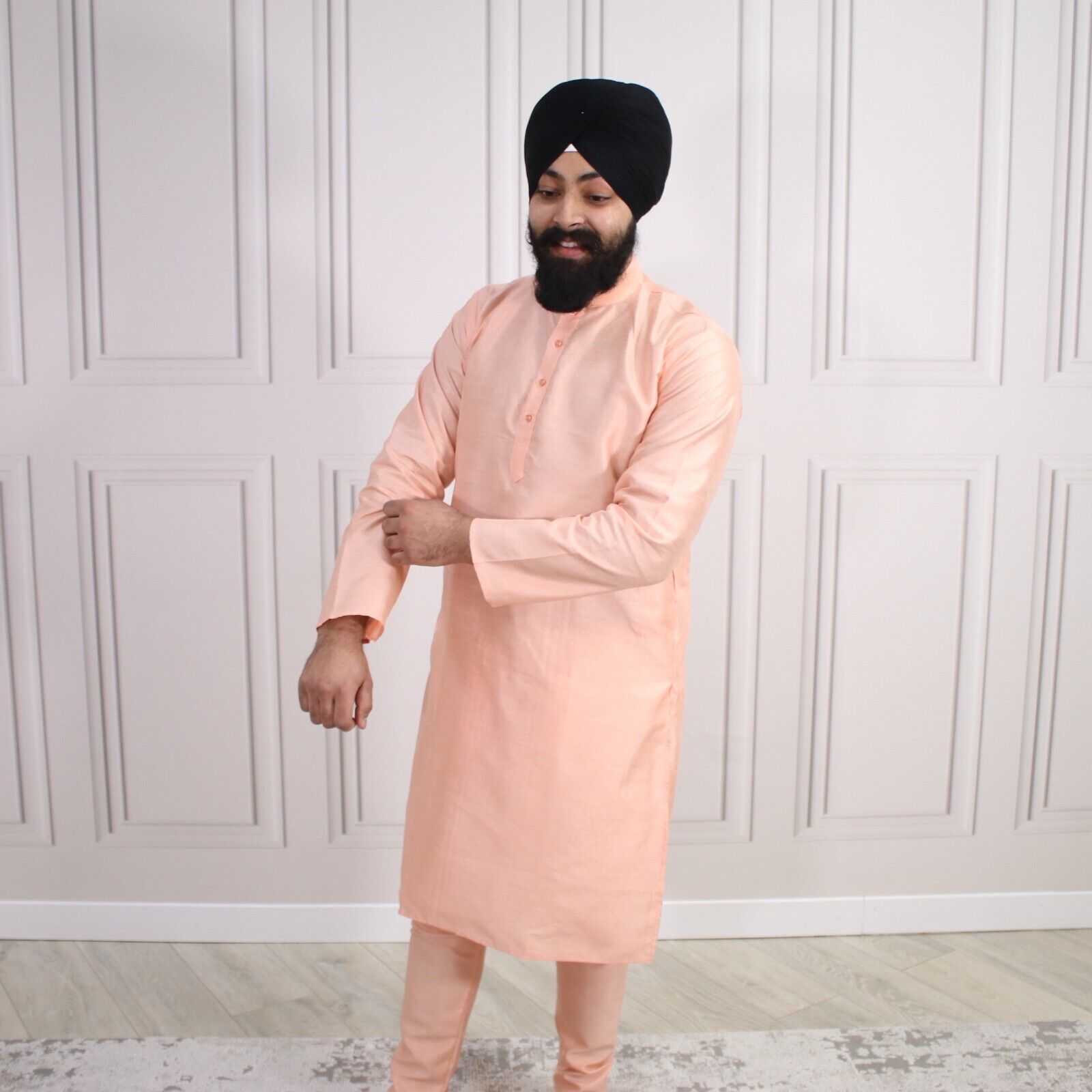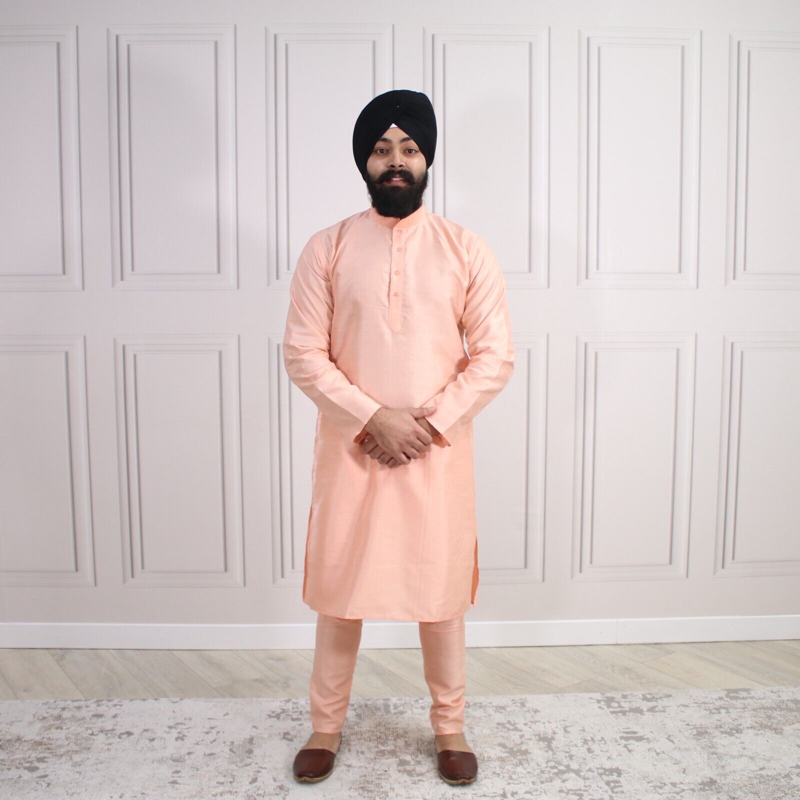 6 COLOURS - Mens Nehru Kurta Pajama Raw Silk Indian Punjabi Asian Jago Sangeet