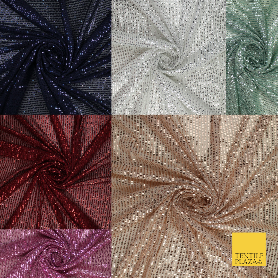 6 COLOURS - Sequin Stripe Sparkly Shiny Stretch Mesh Net Tulle Dress Fabric 48"