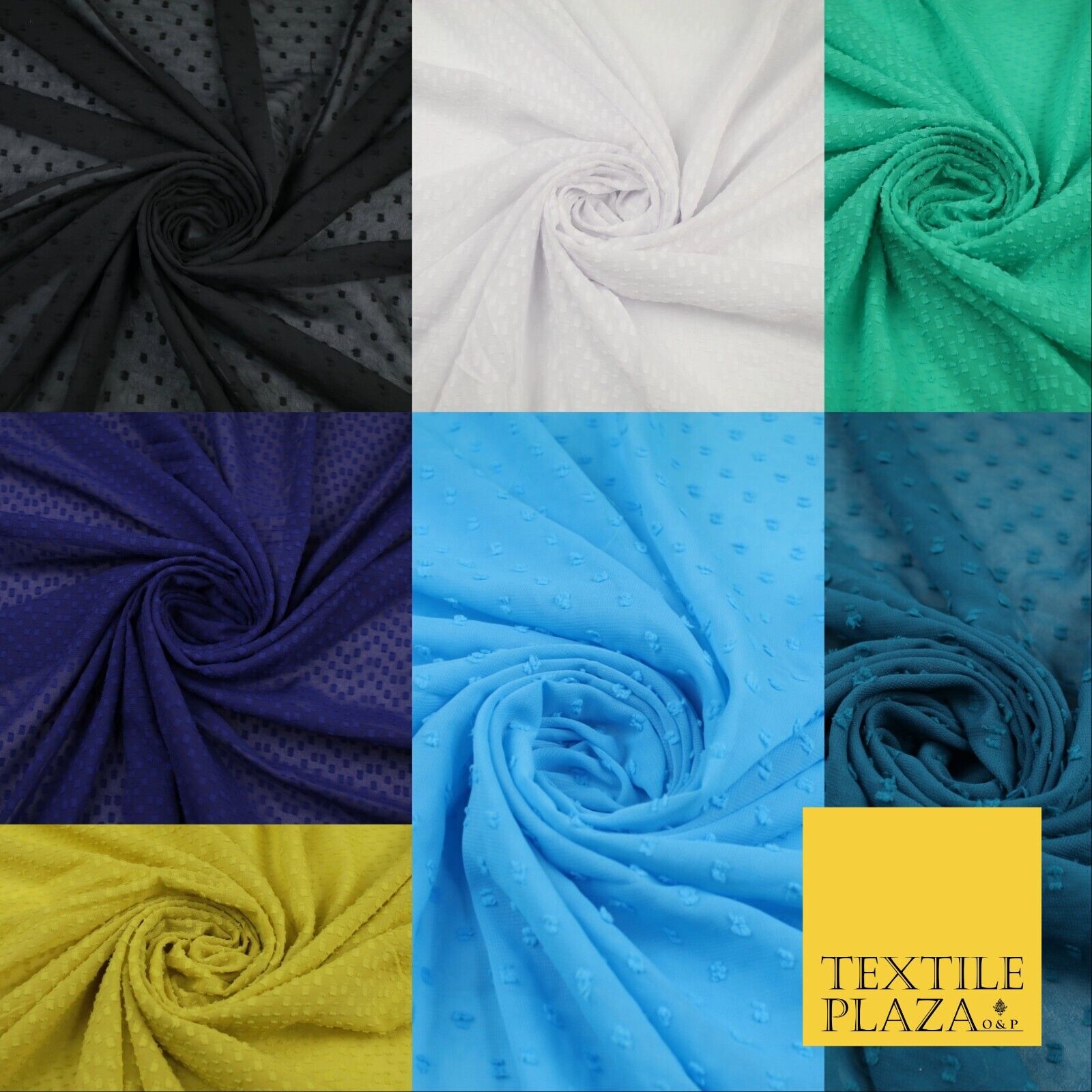 7 COLOURS - Swiss Knot Dot Dobby Sheer Georgette Chiffon Dress Fabric 56"