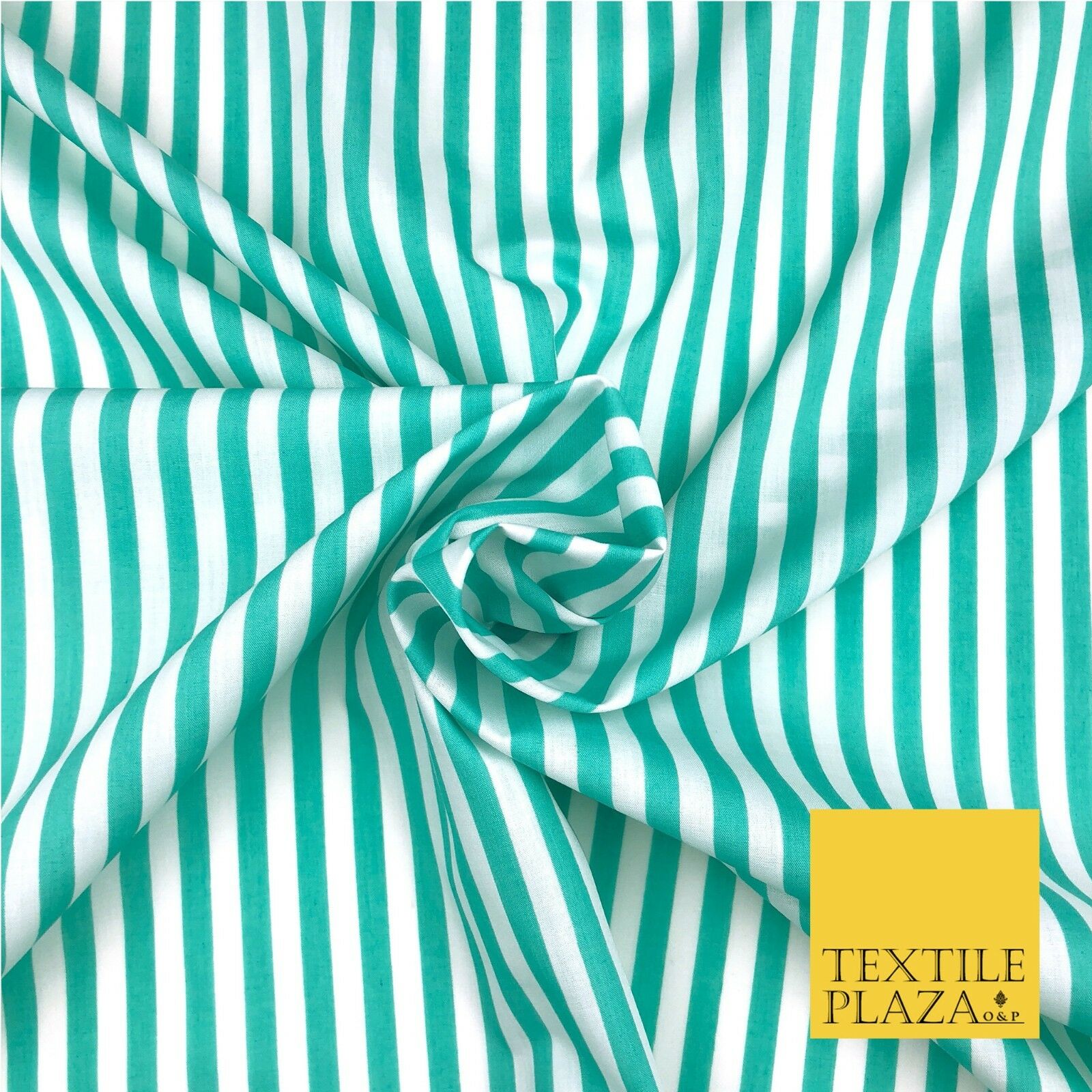 7mm Mint Green & White Stripe Poly Cotton Fabric Lines Dress Craft - RB575