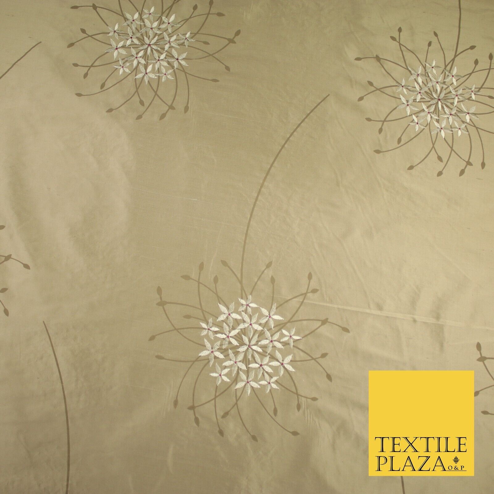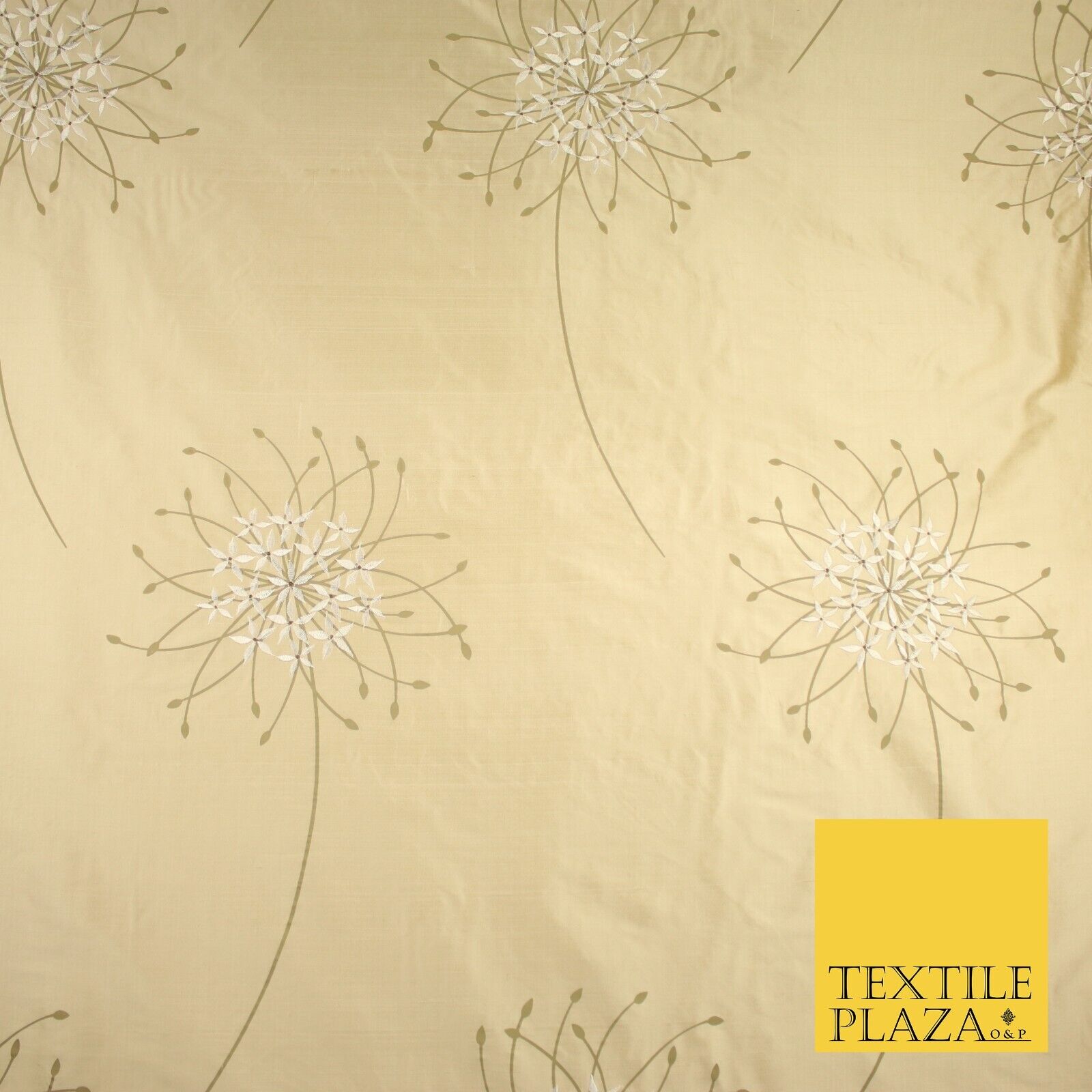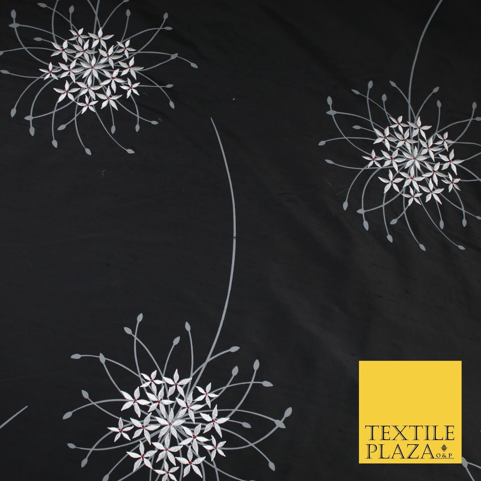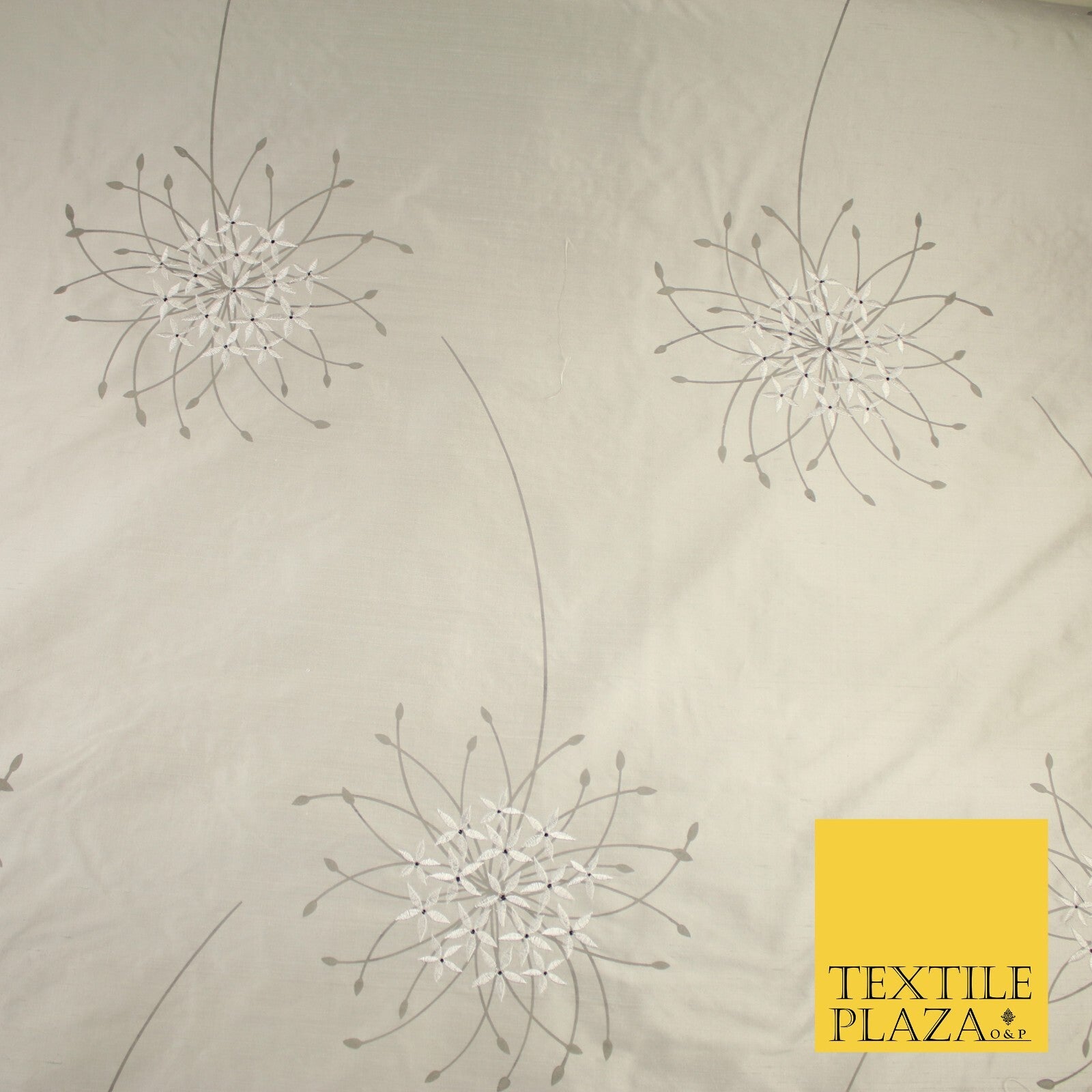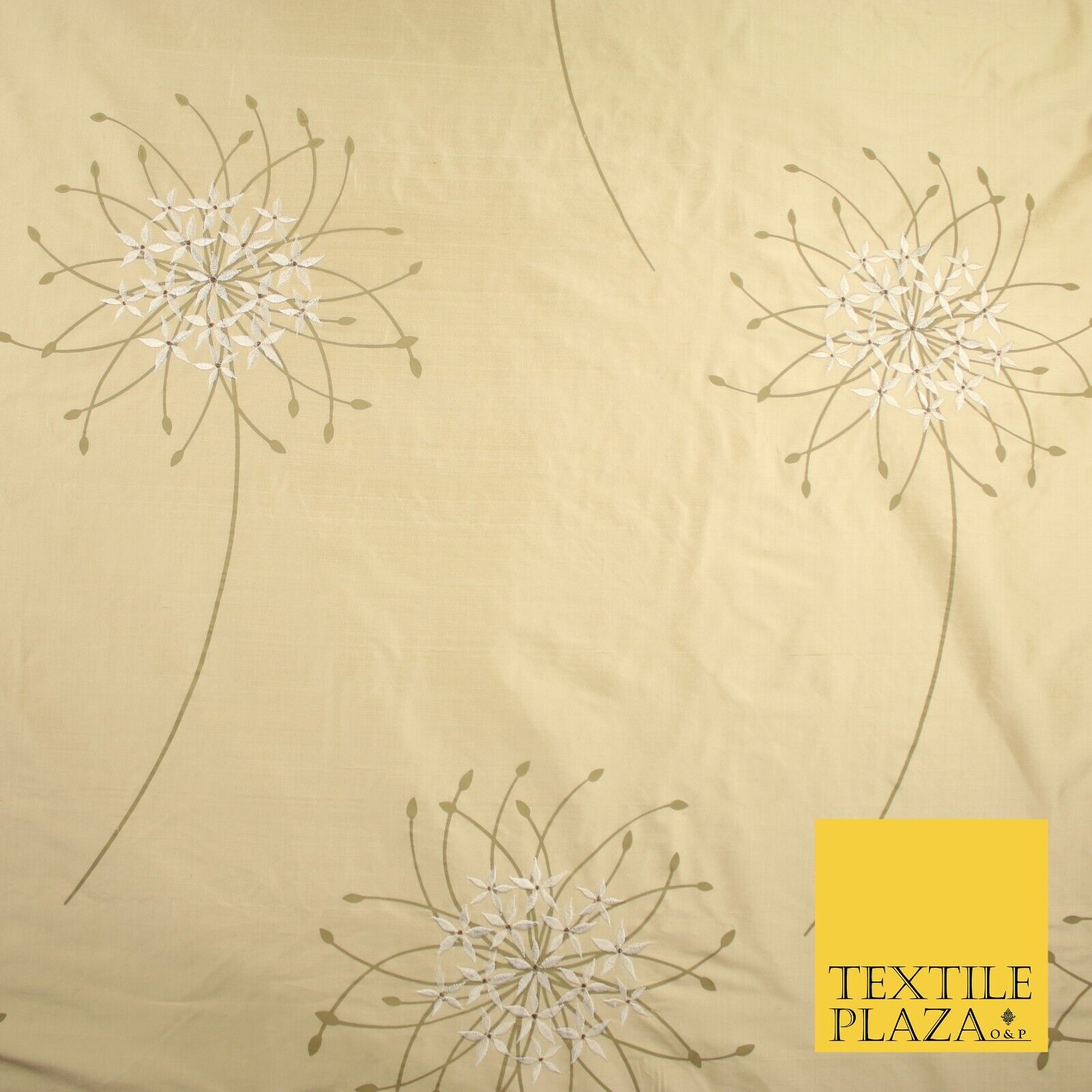 8 COLOURS - Fryetts Luxury Oversized Dandelion Embroidered 100% PURE SILK Fabric