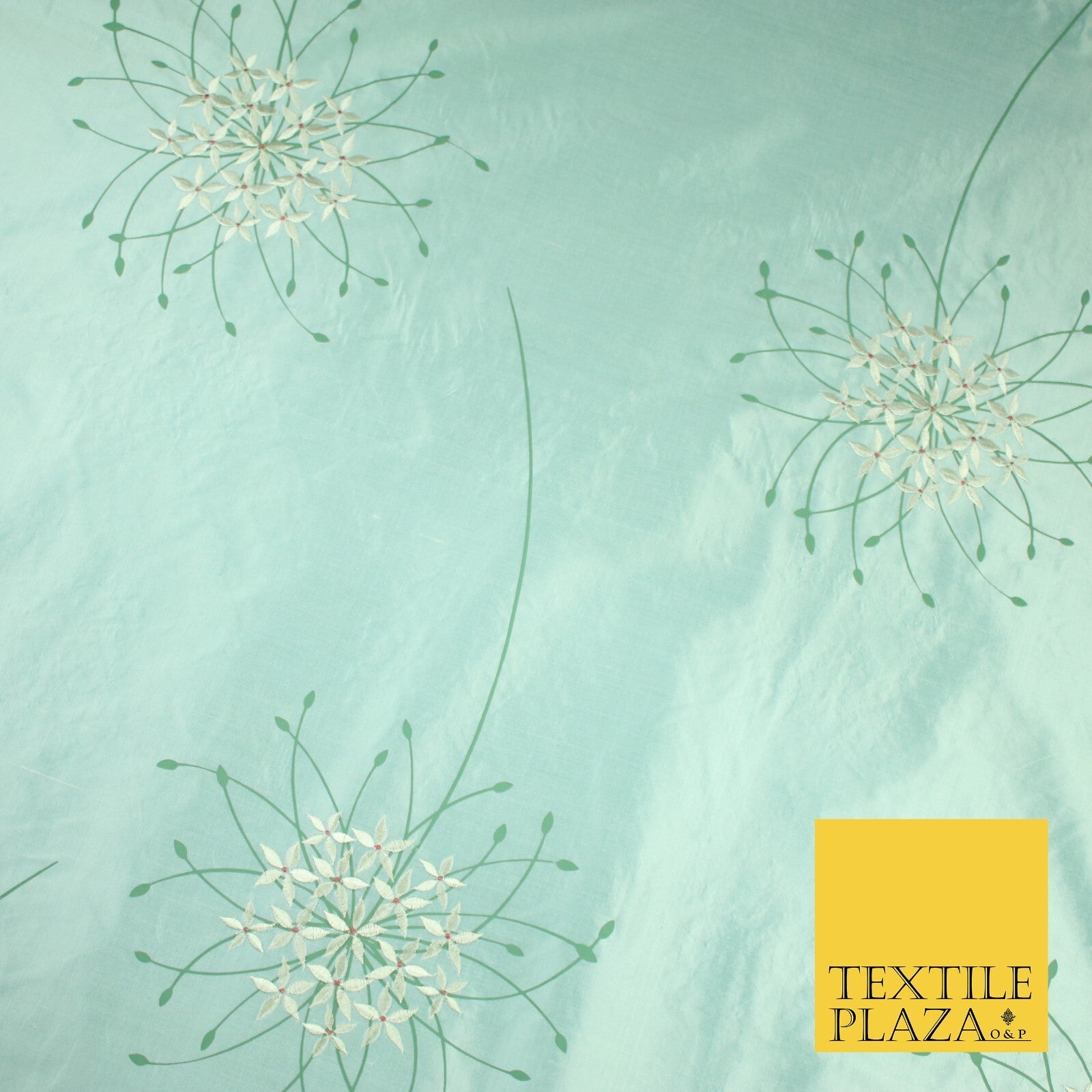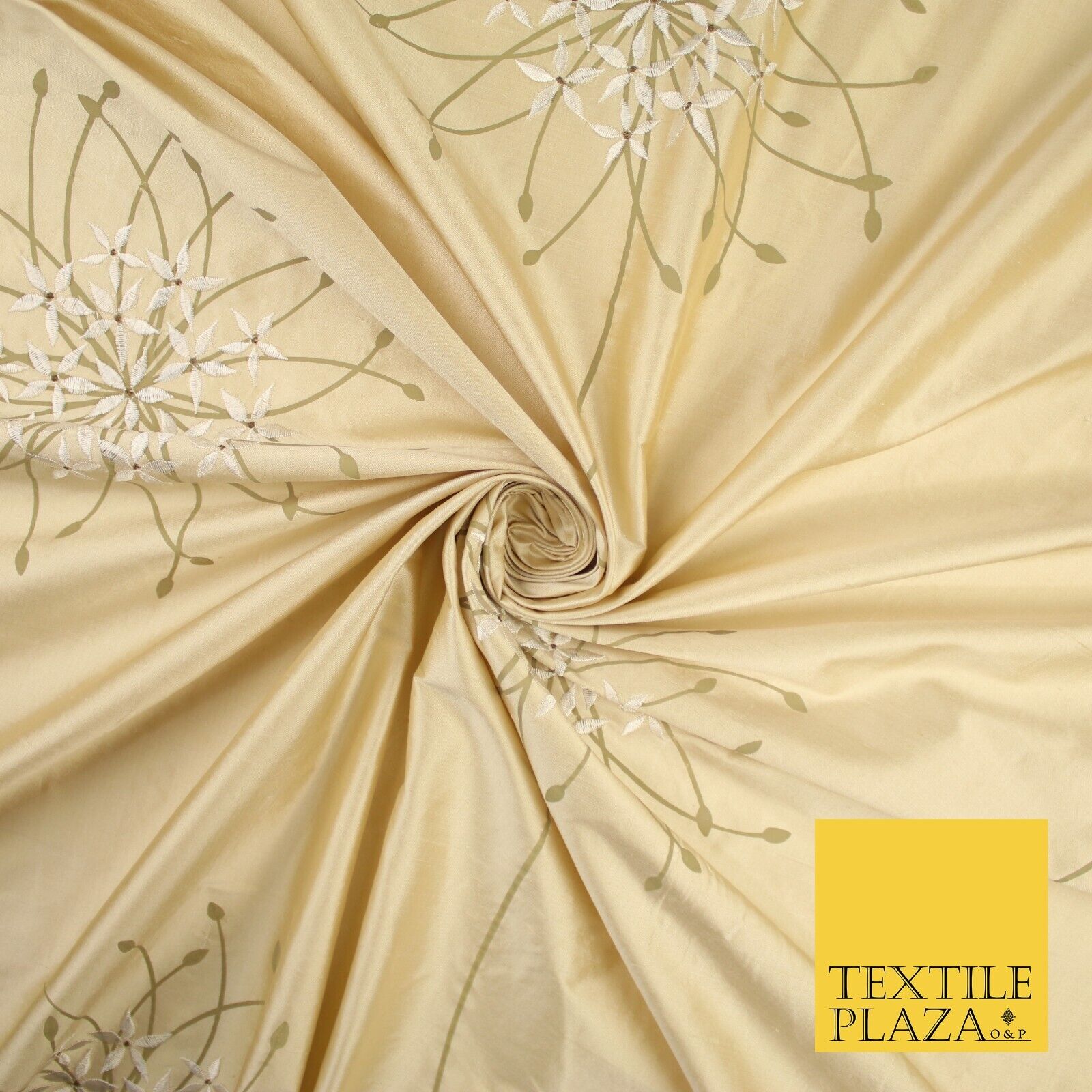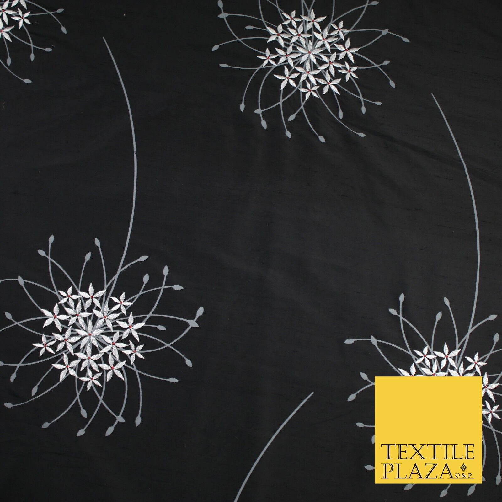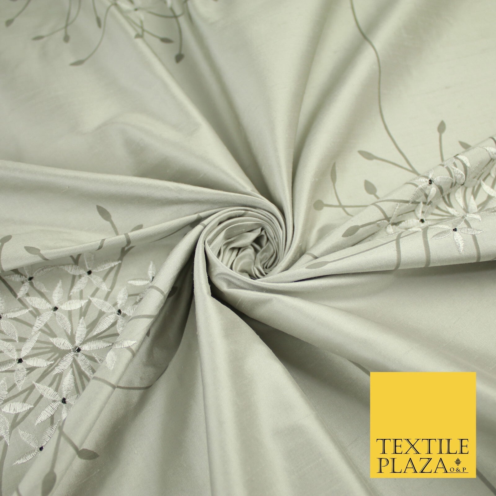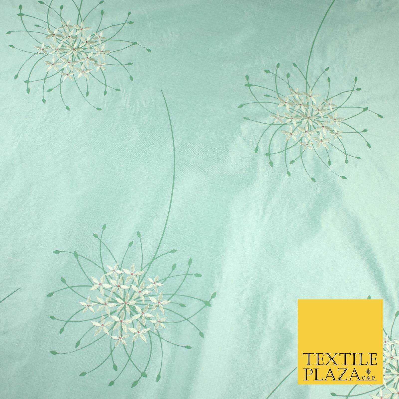 8 COLOURS - Fryetts Luxury Oversized Dandelion Embroidered 100% PURE SILK Fabric