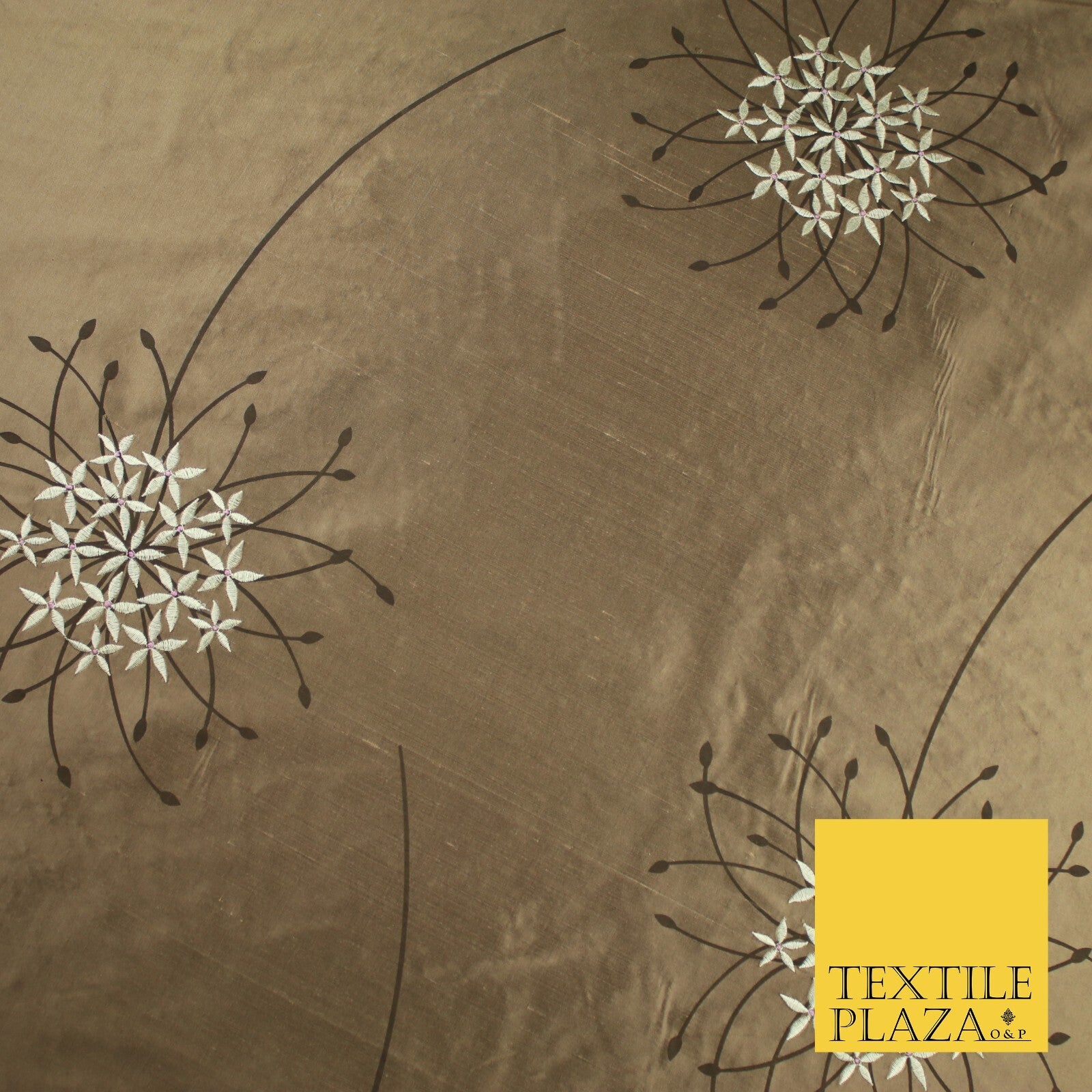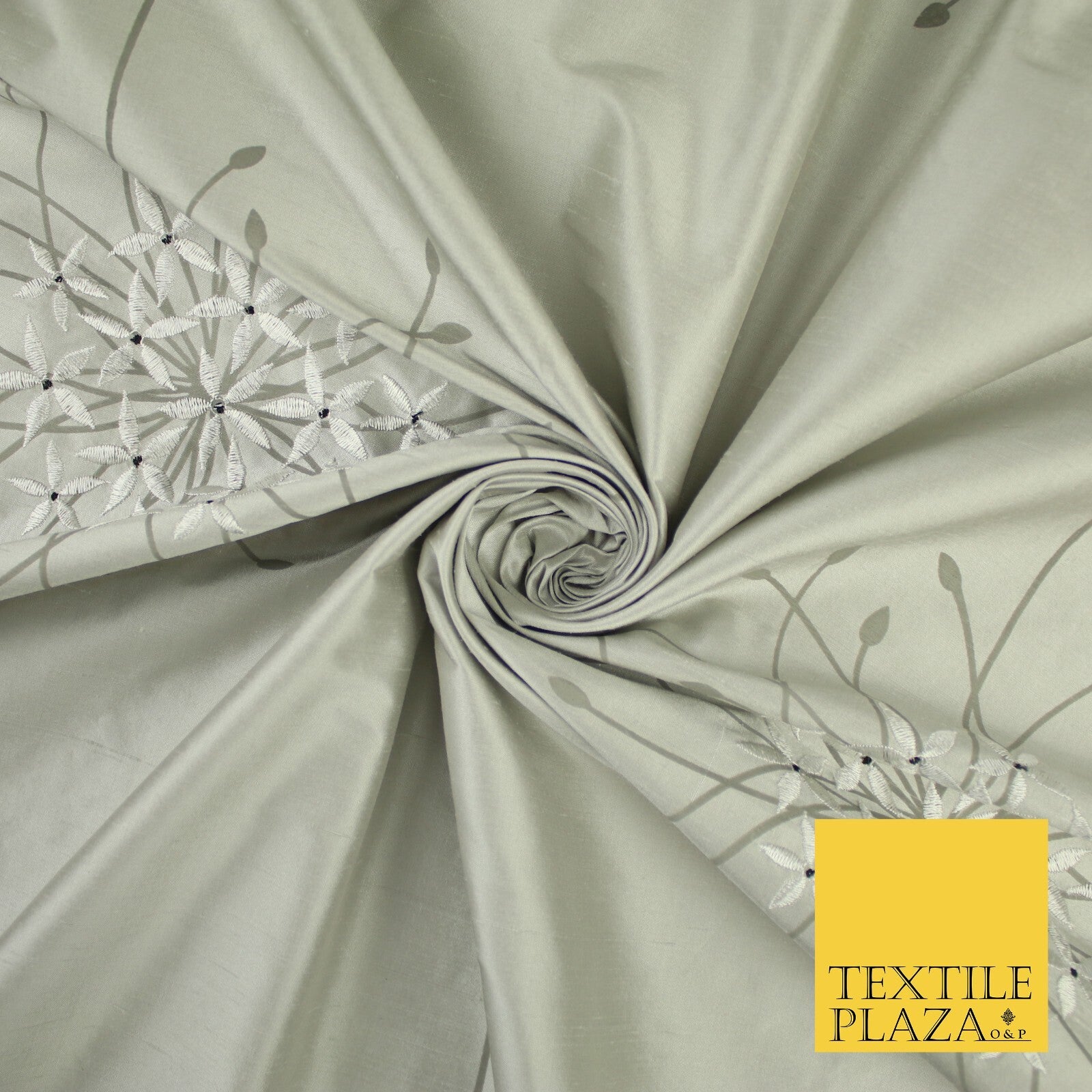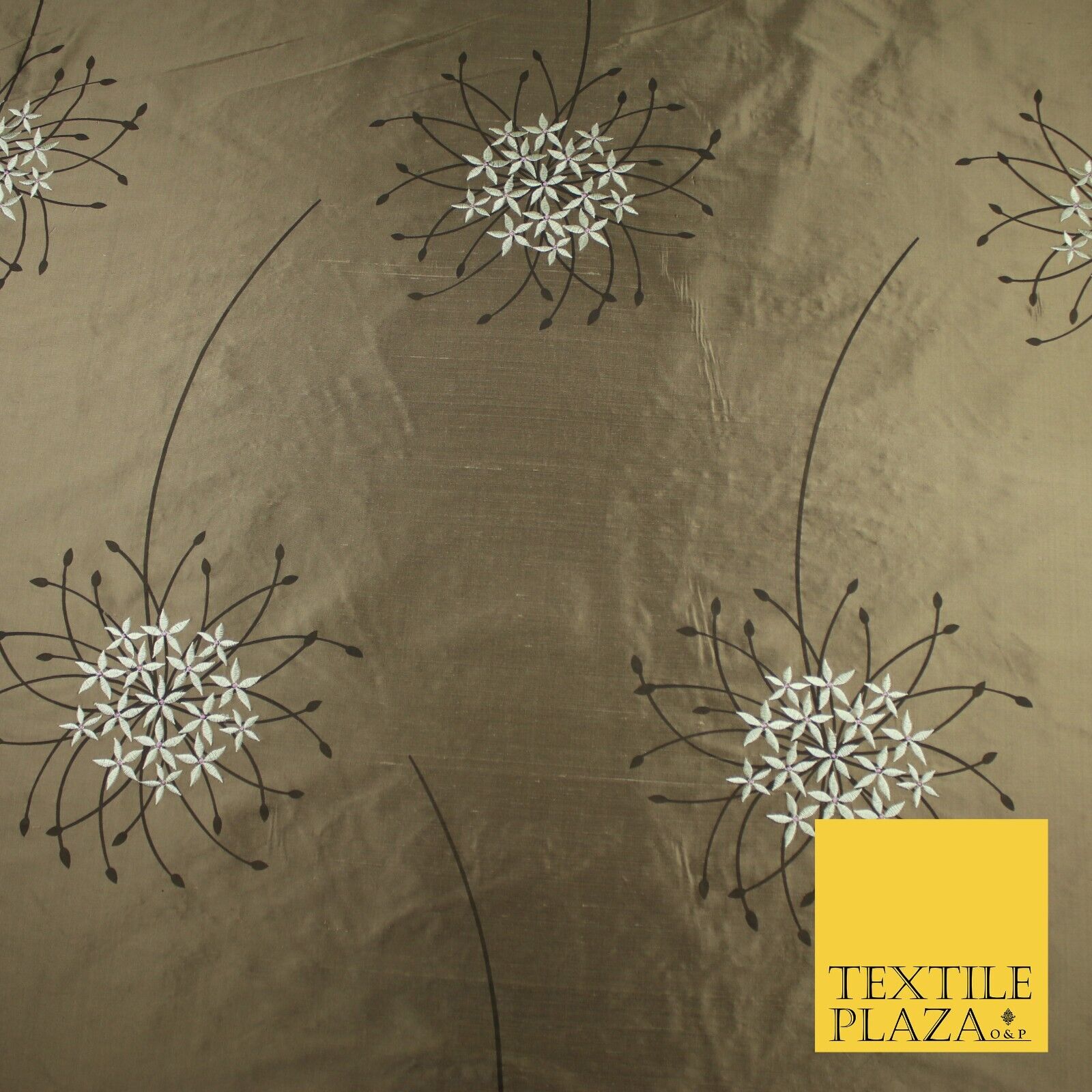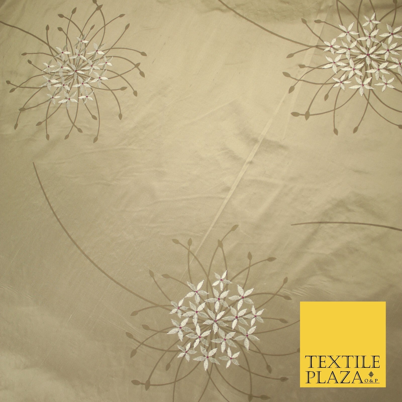 8 COLOURS - Fryetts Luxury Oversized Dandelion Embroidered 100% PURE SILK Fabric