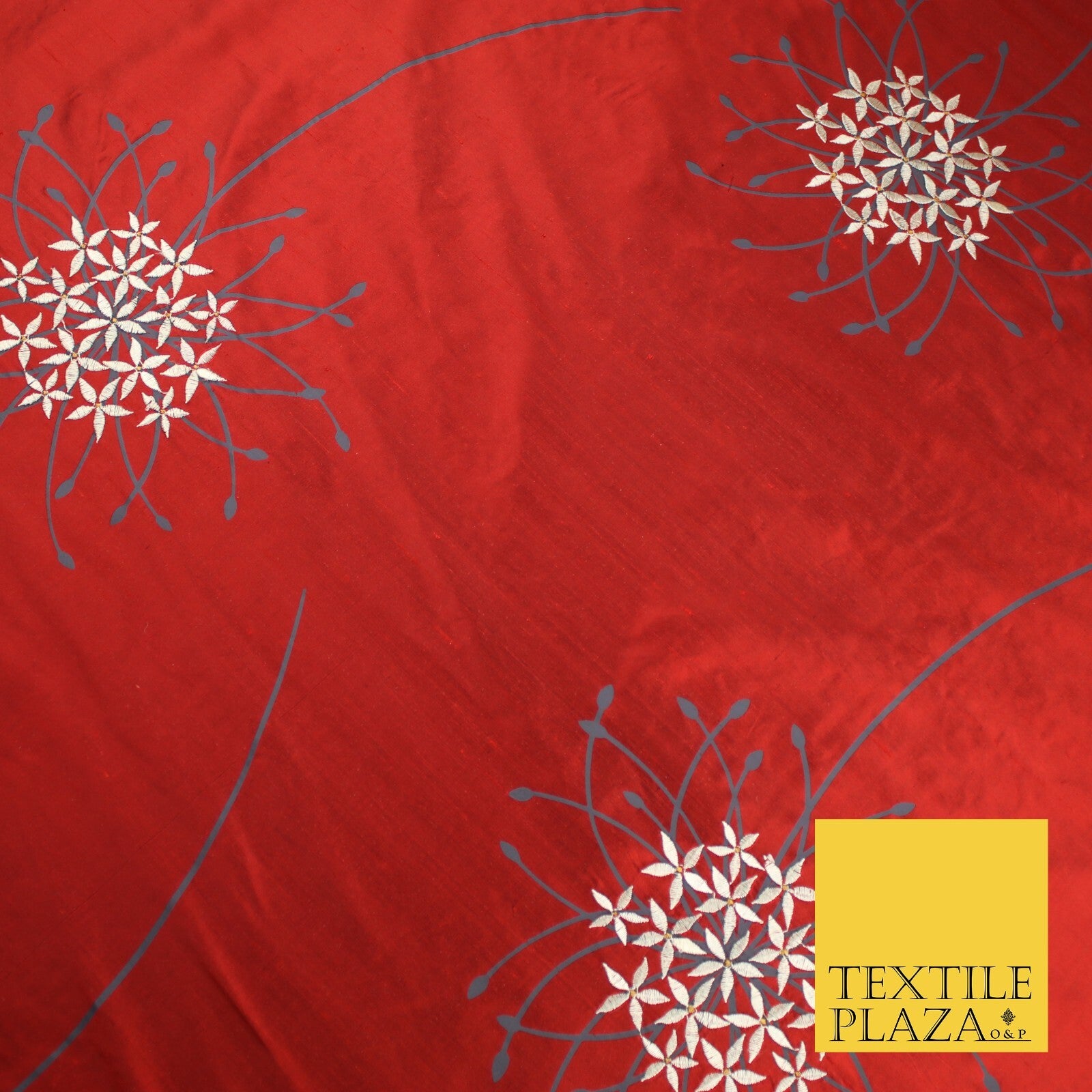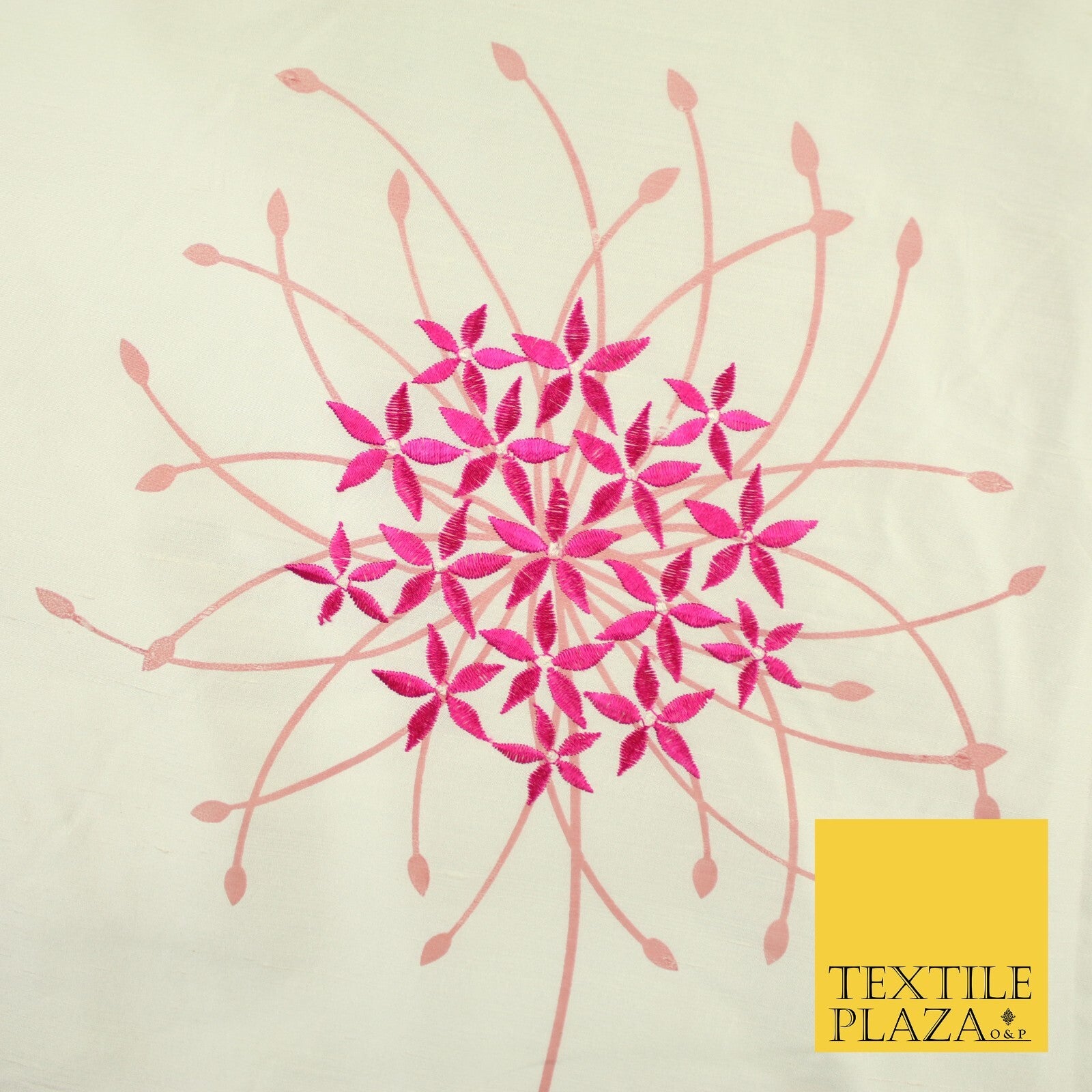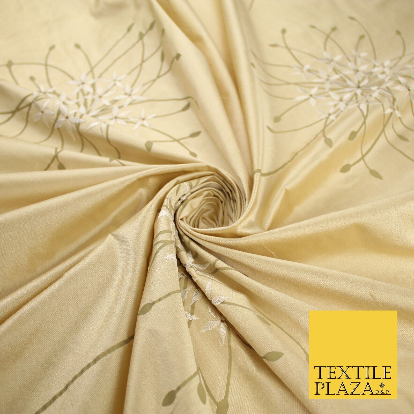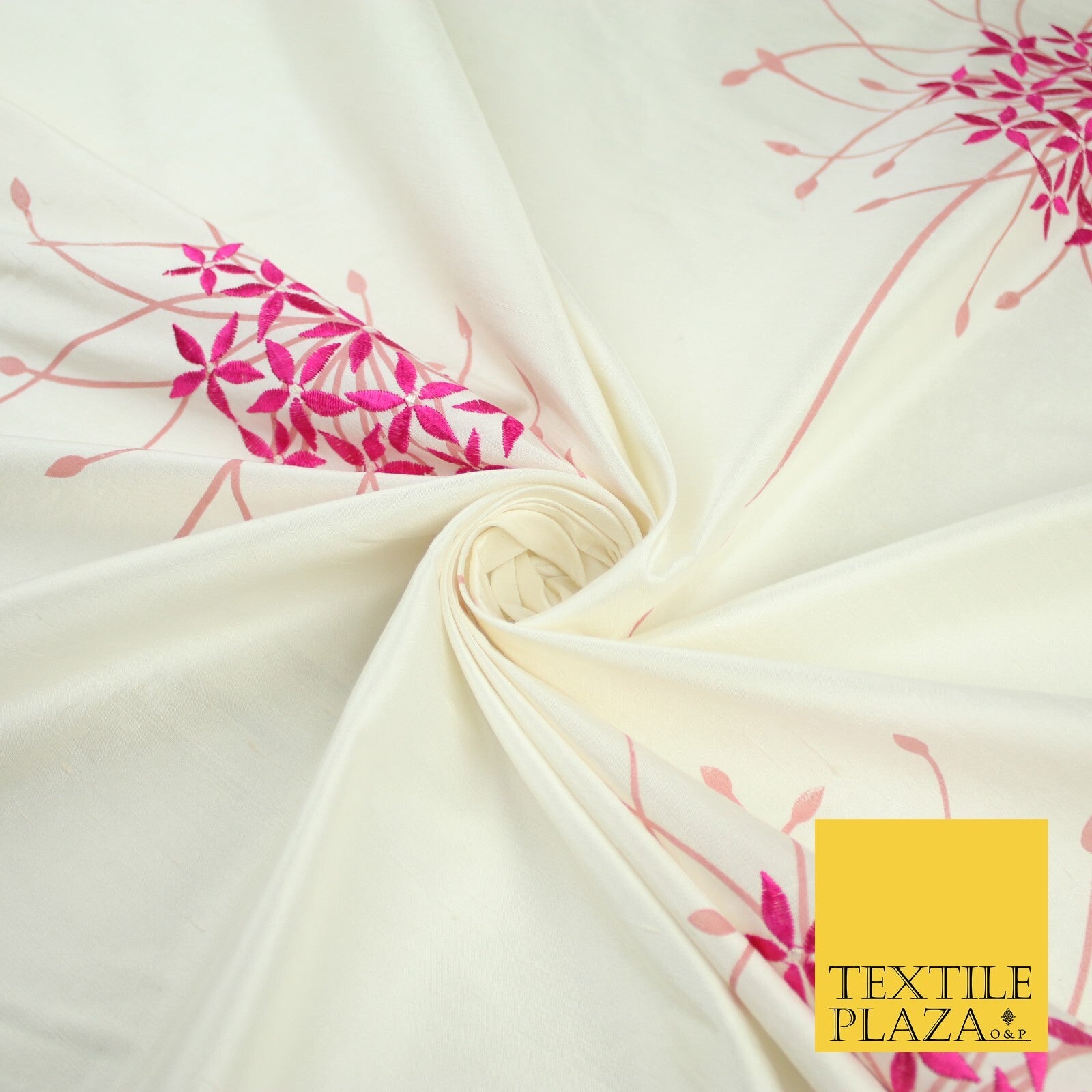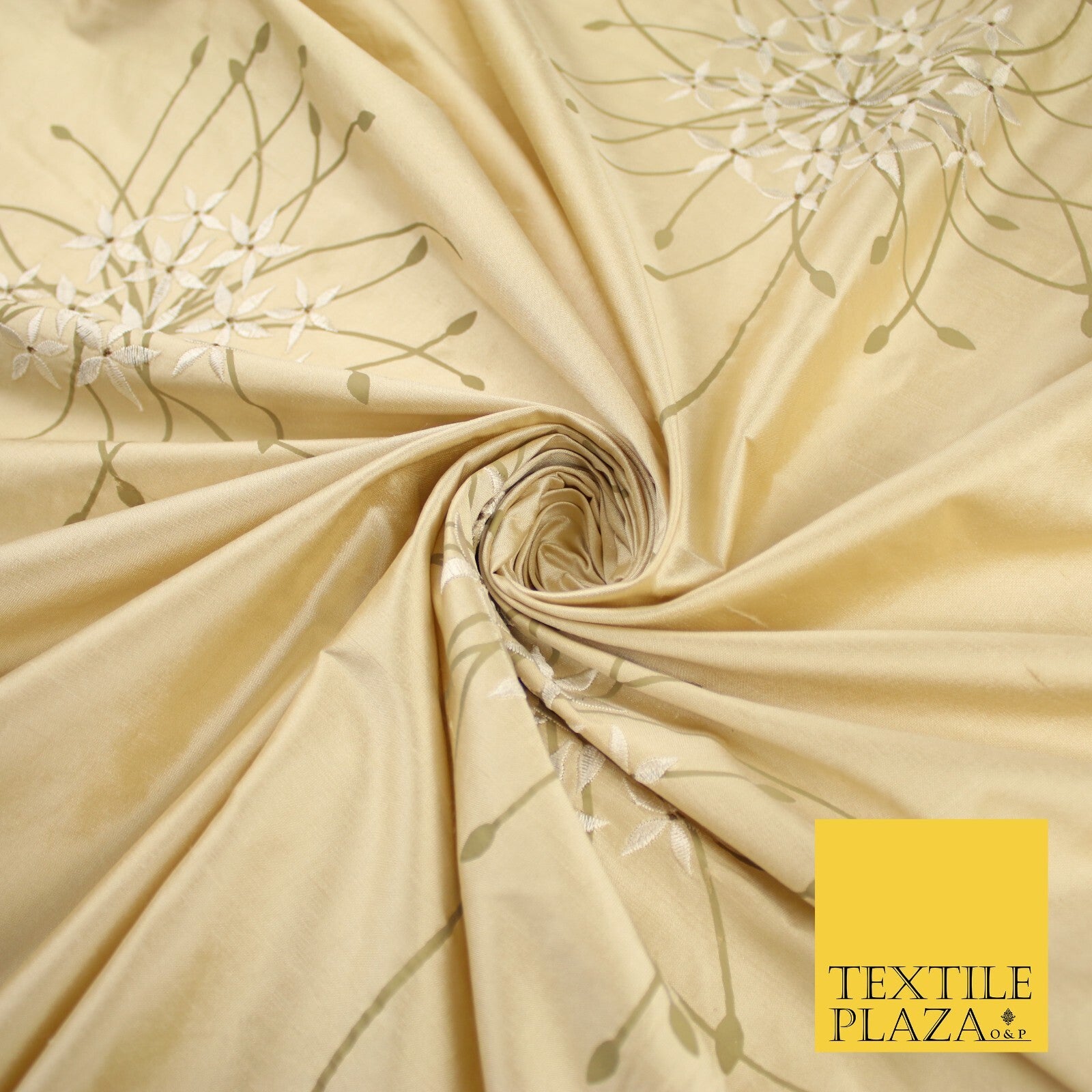 8 COLOURS - Fryetts Luxury Oversized Dandelion Embroidered 100% PURE SILK Fabric