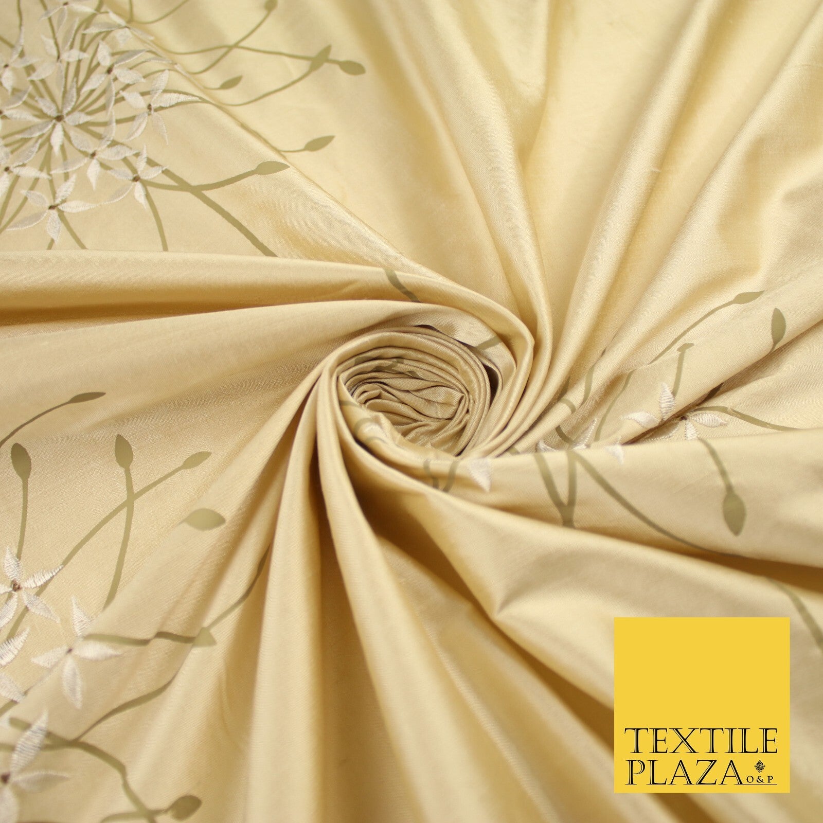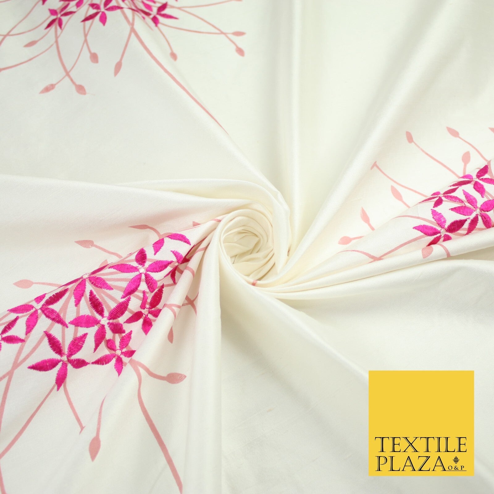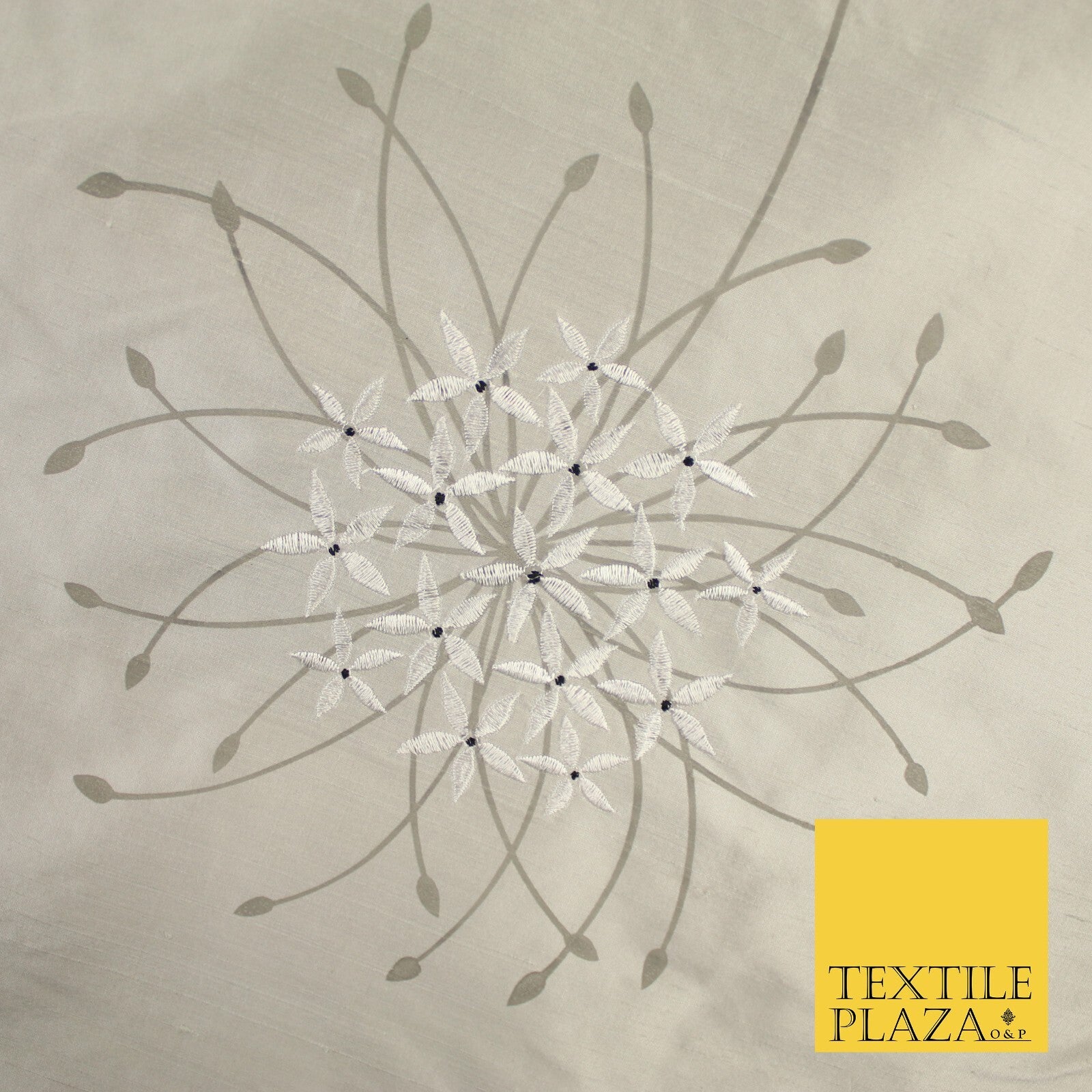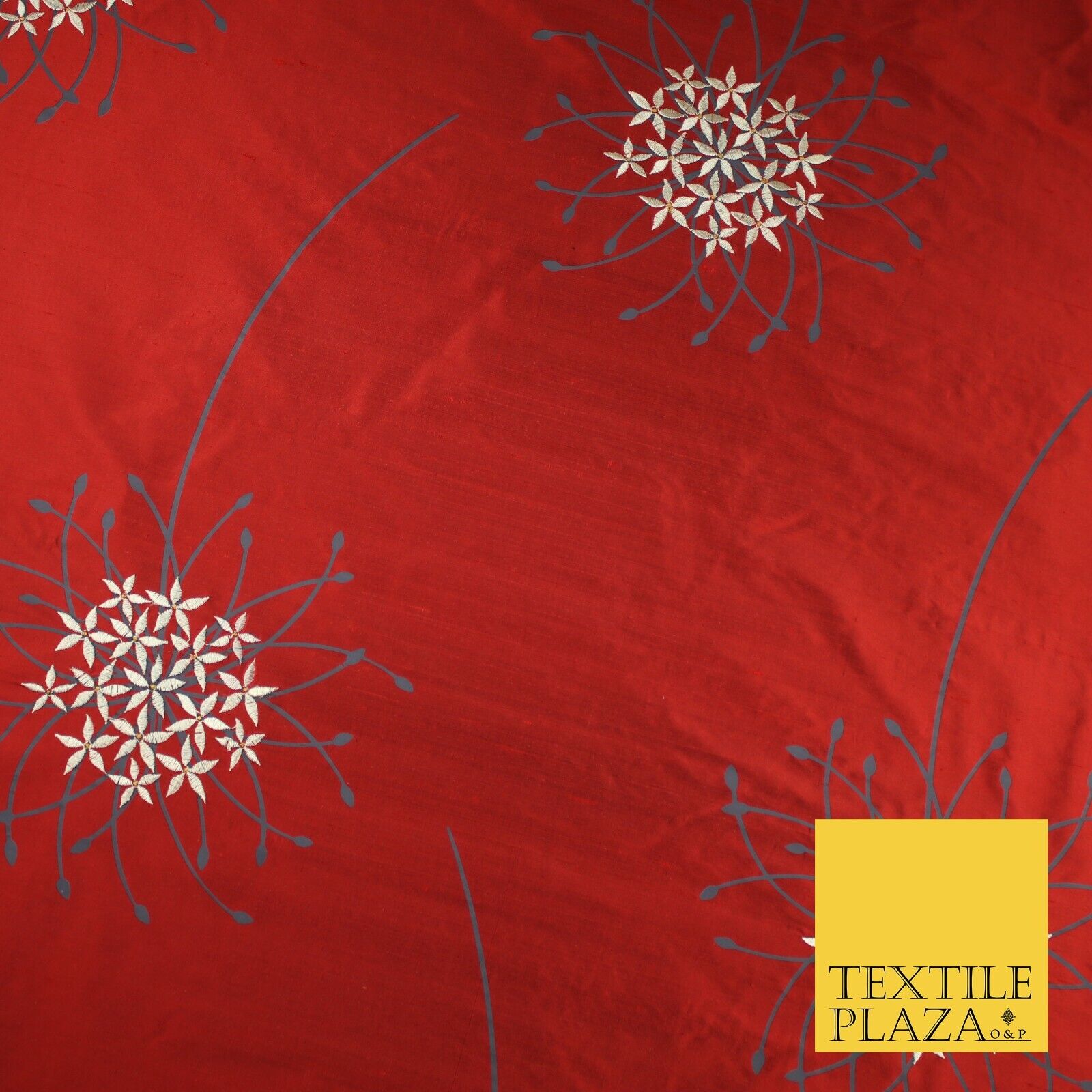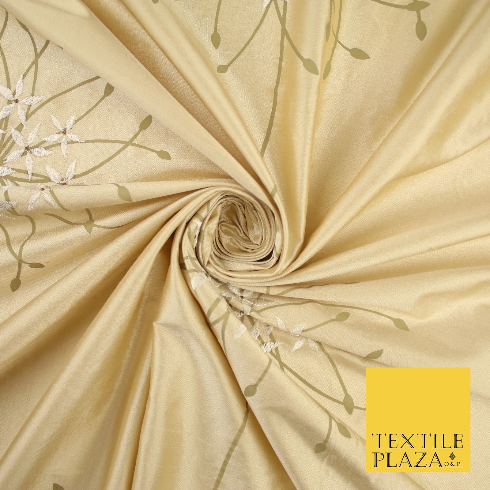 8 COLOURS - Fryetts Luxury Oversized Dandelion Embroidered 100% PURE SILK Fabric