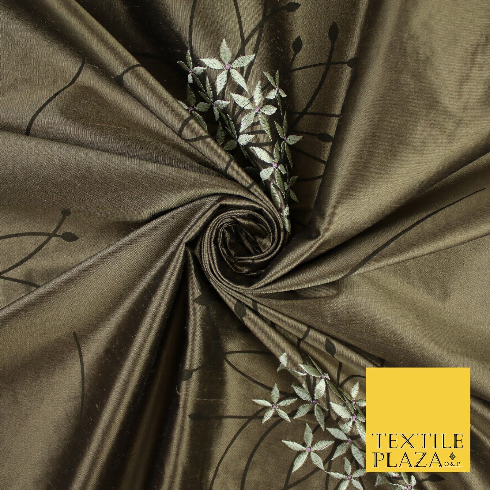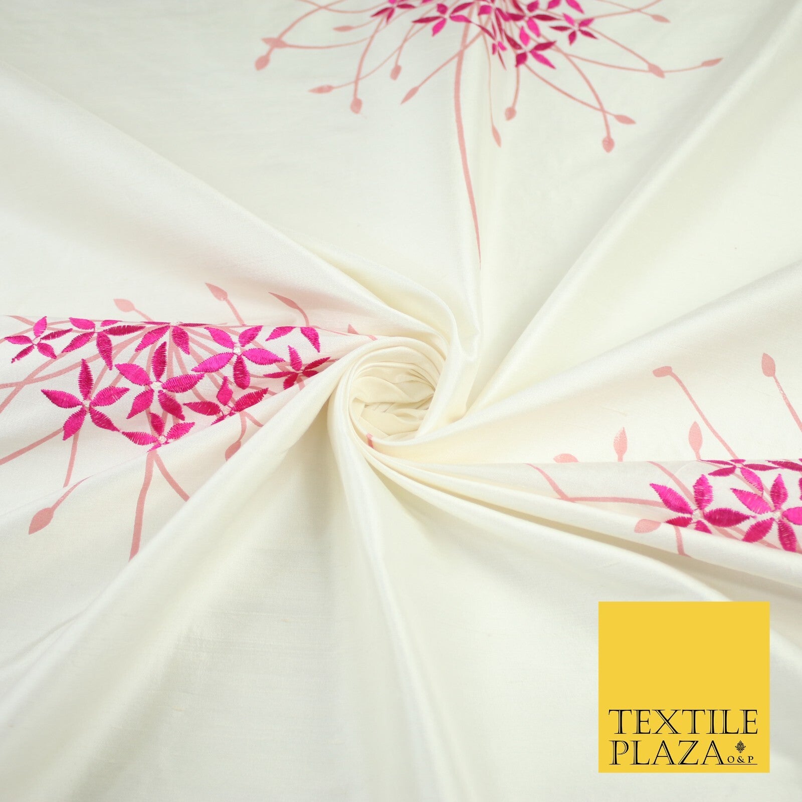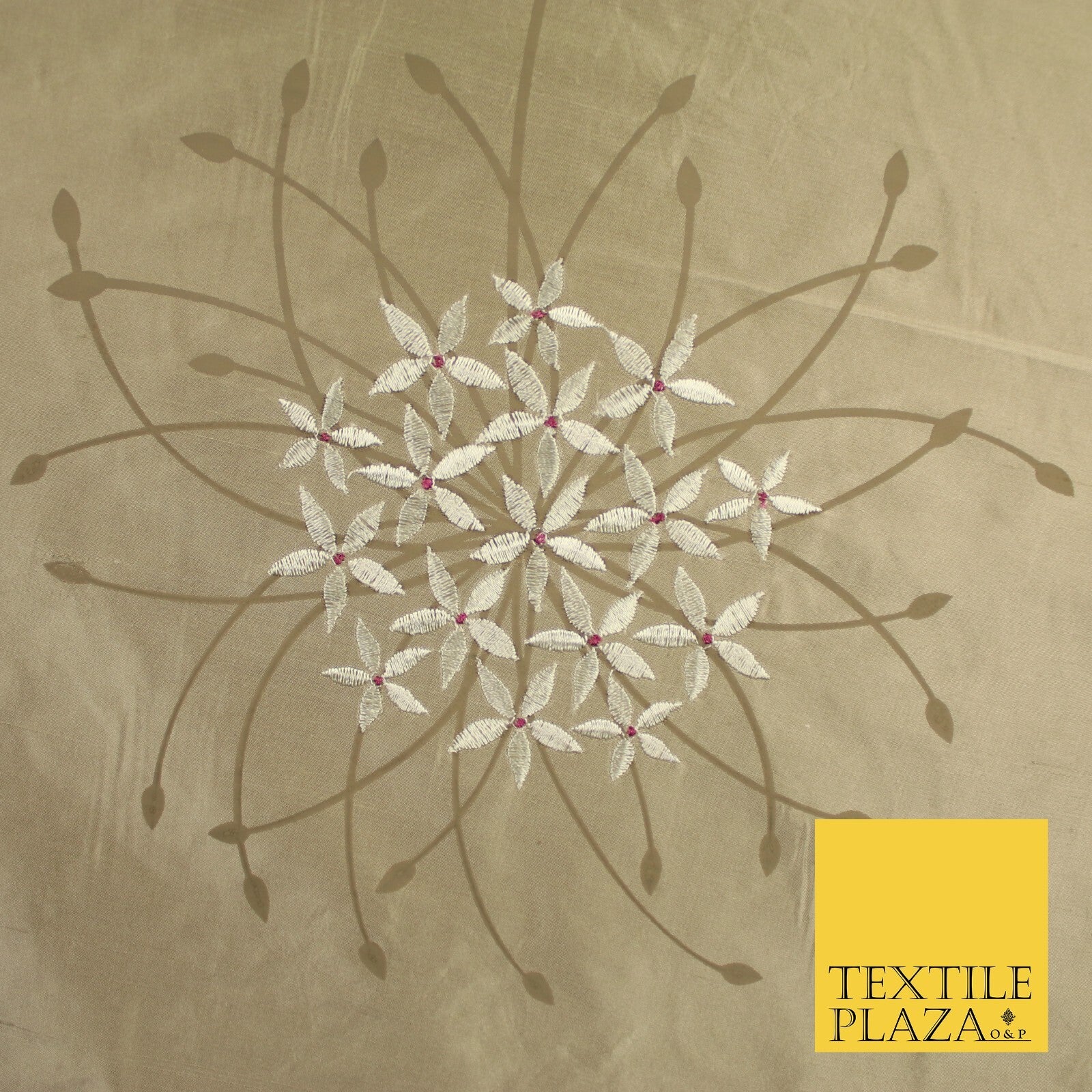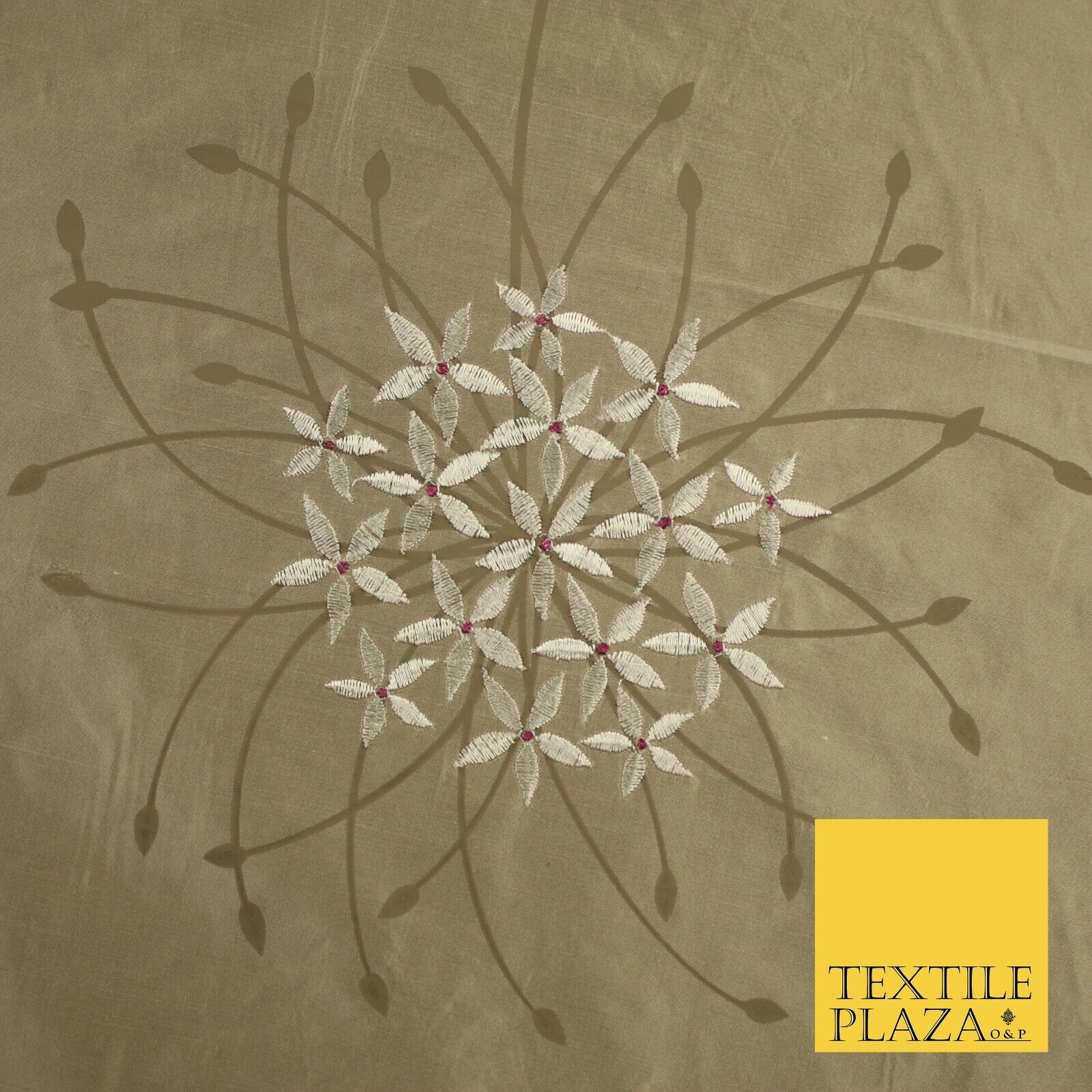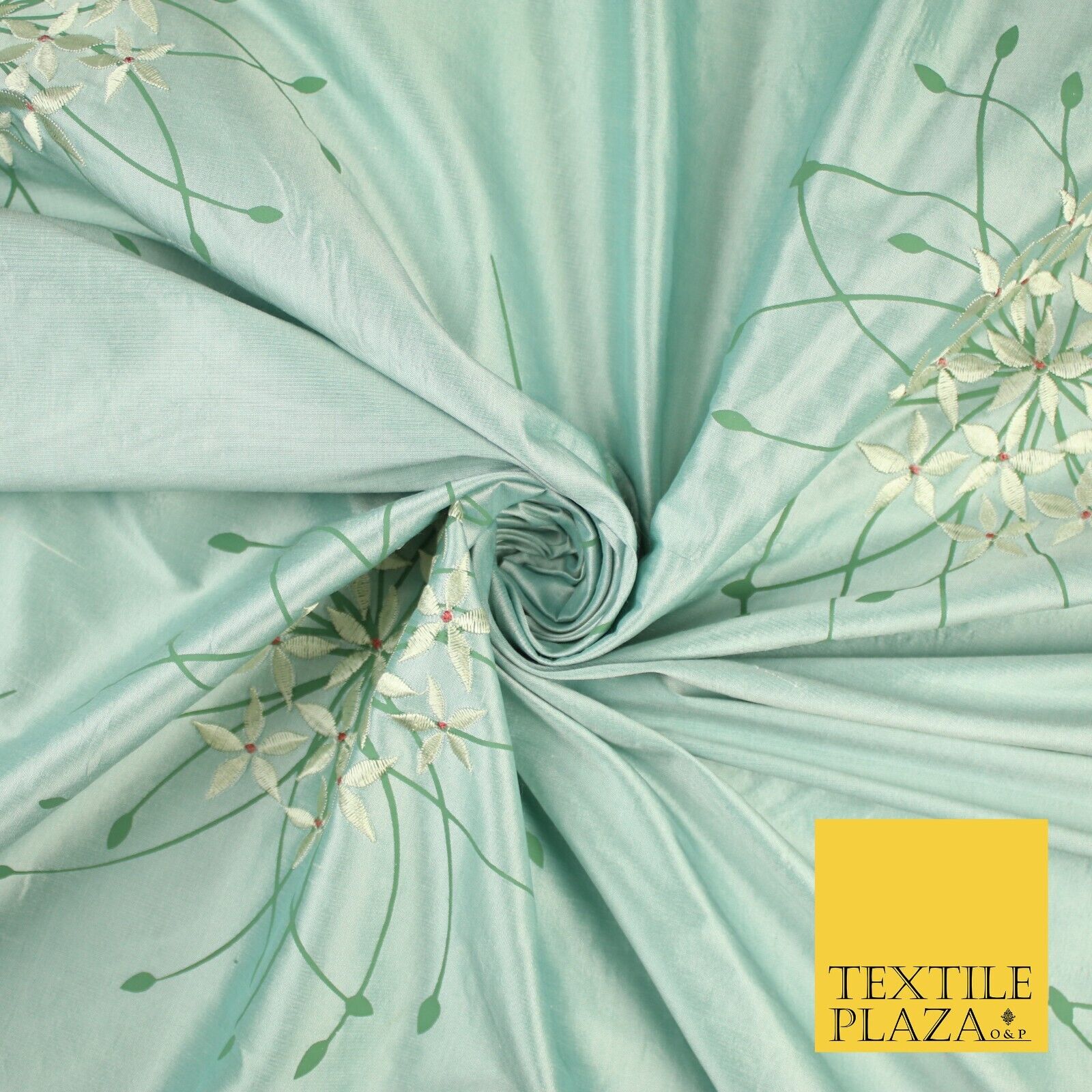 8 COLOURS - Fryetts Luxury Oversized Dandelion Embroidered 100% PURE SILK Fabric