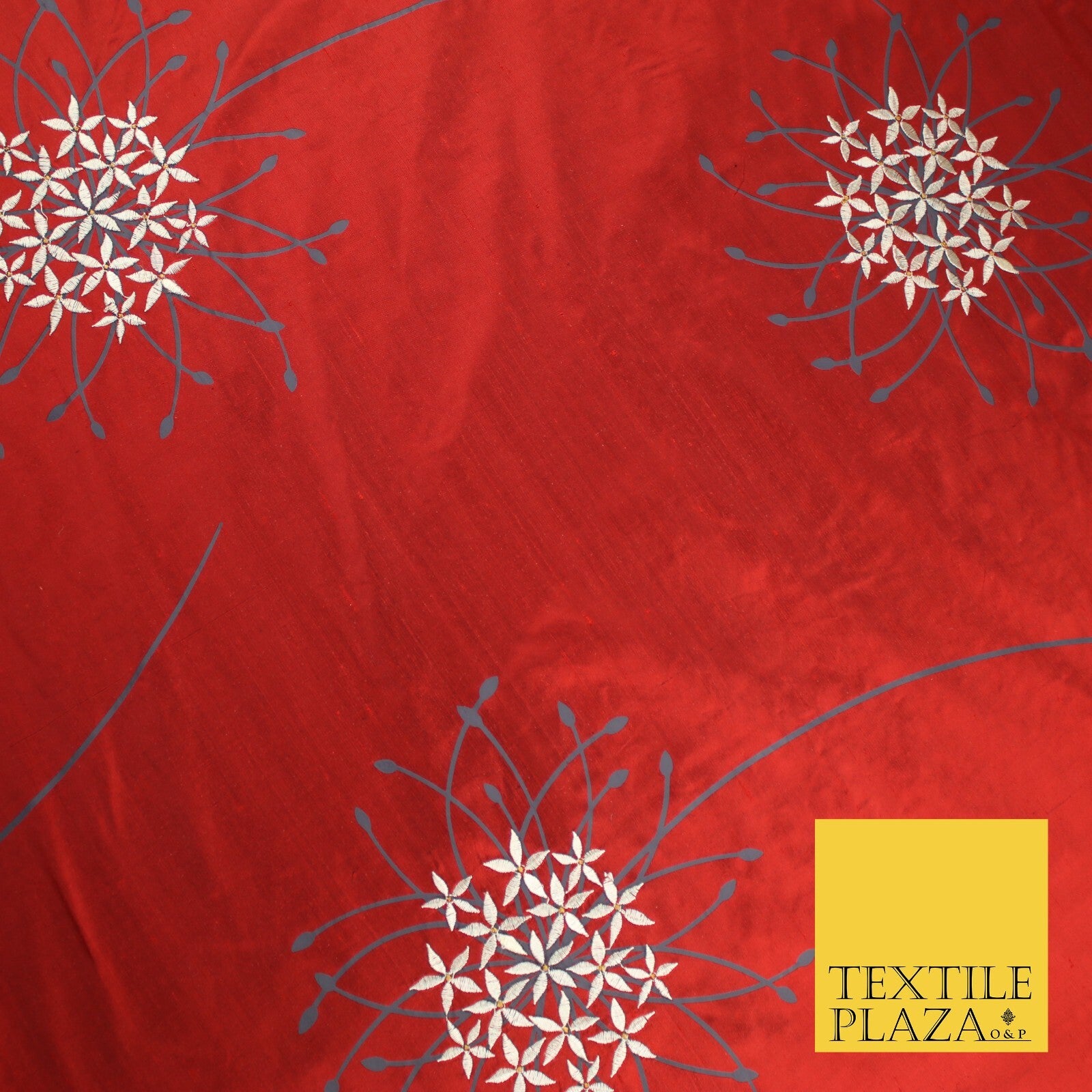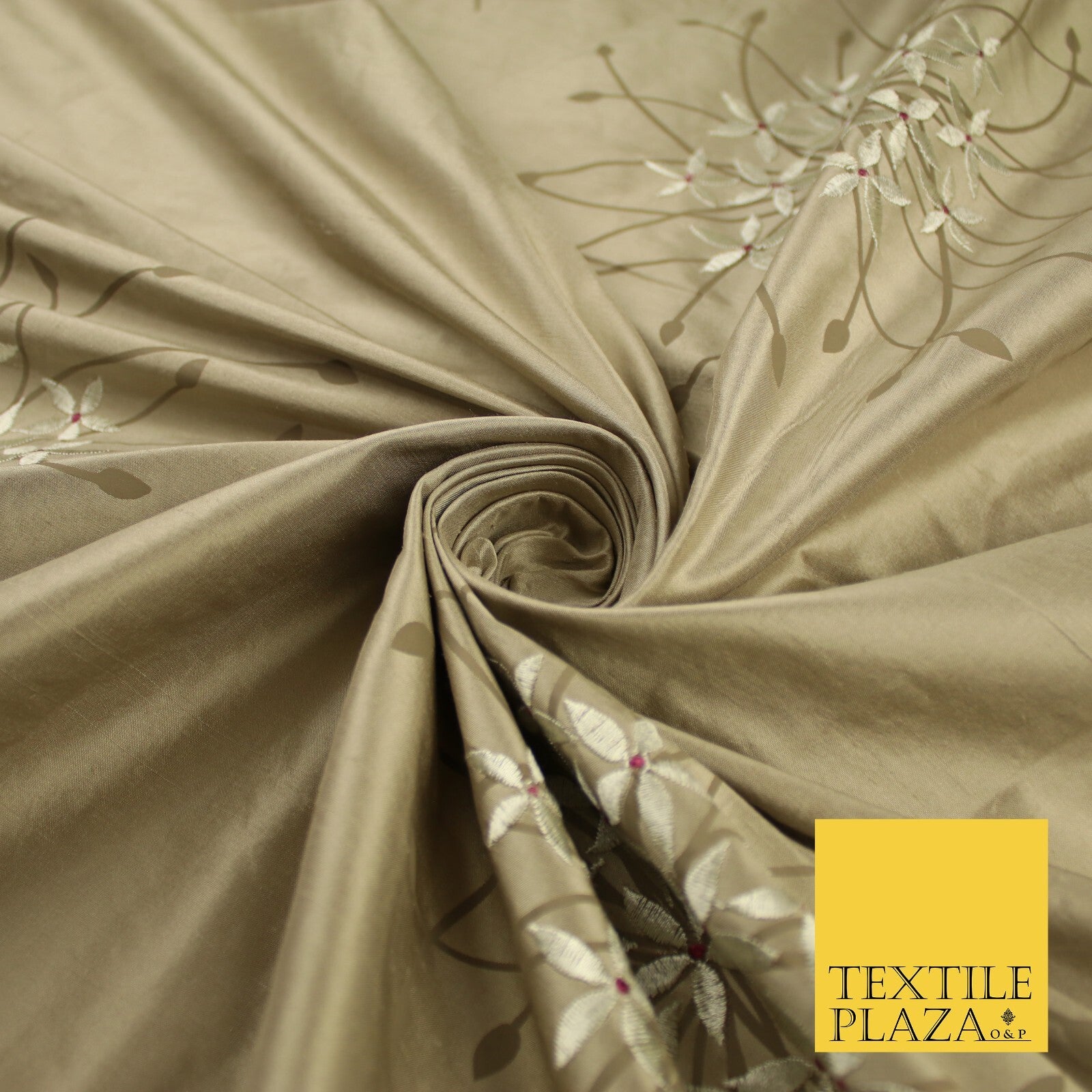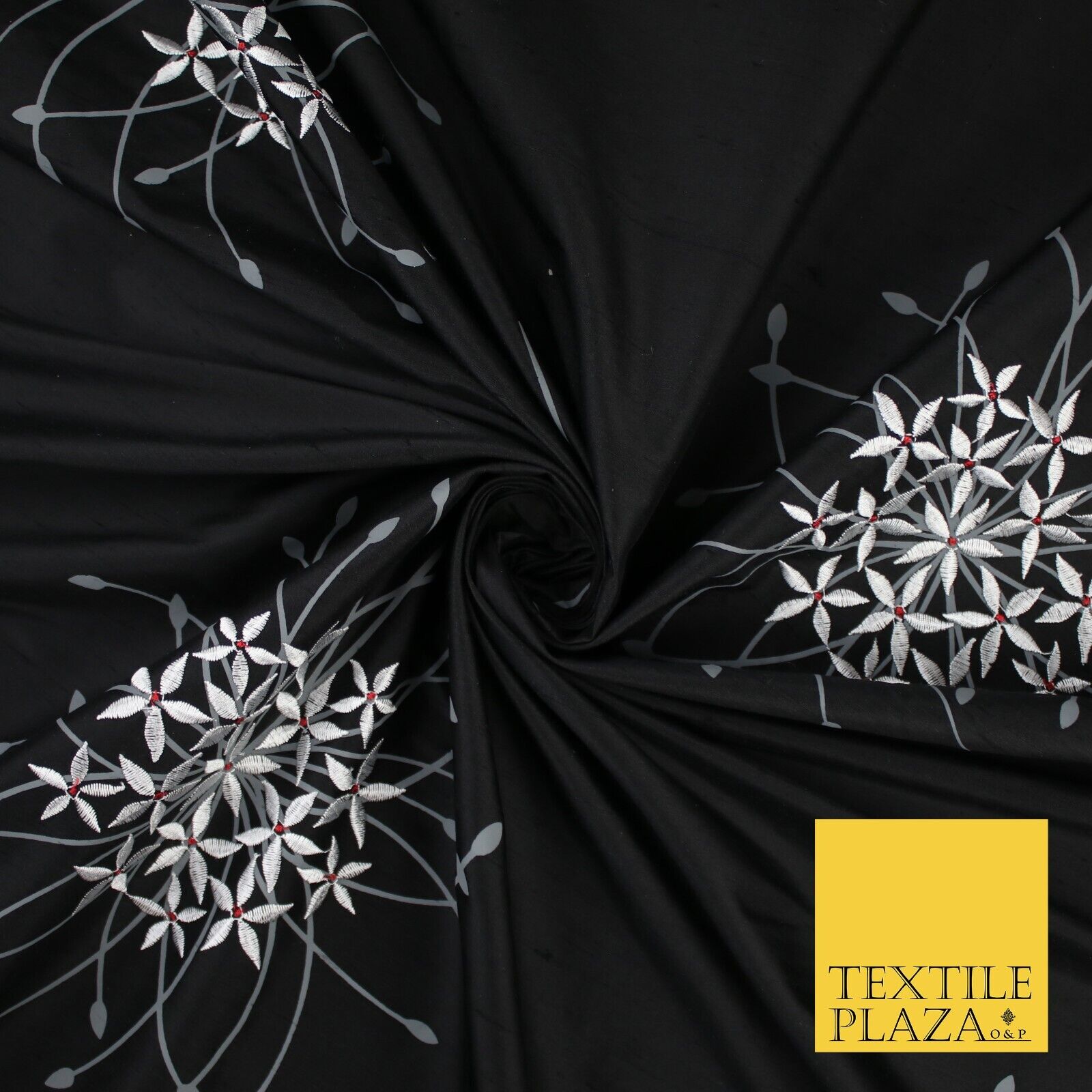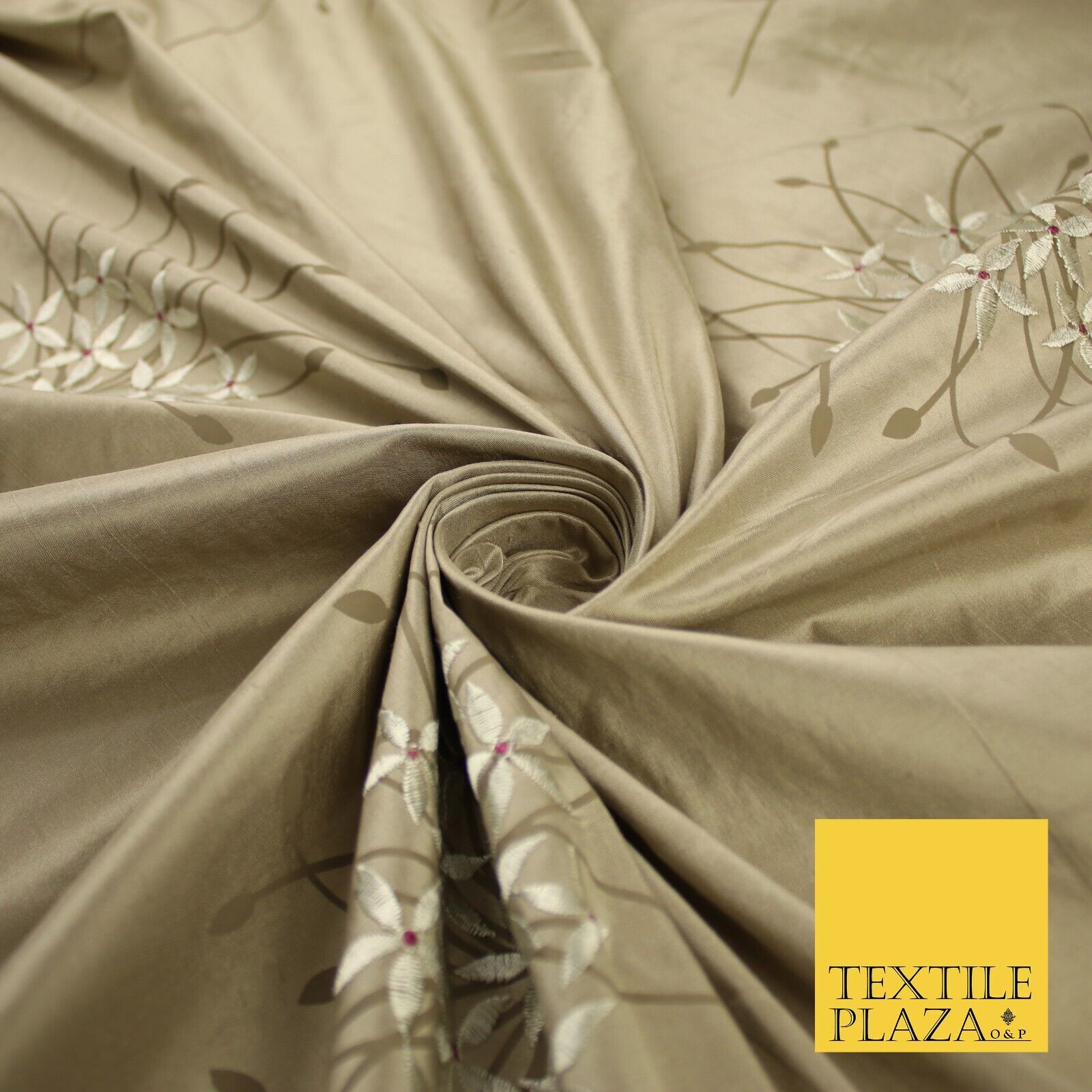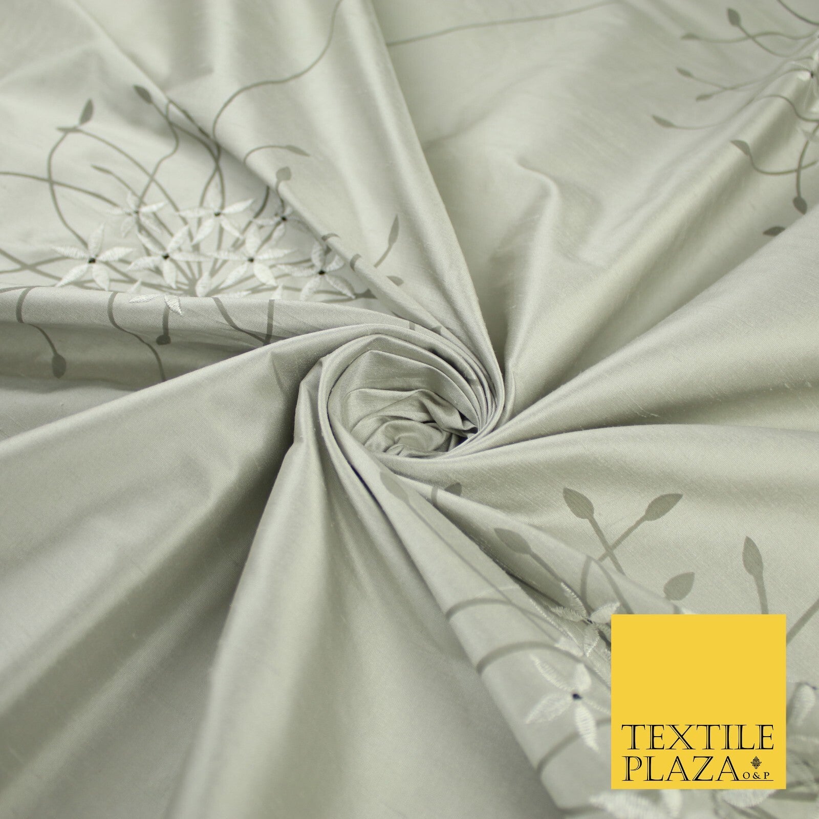 8 COLOURS - Fryetts Luxury Oversized Dandelion Embroidered 100% PURE SILK Fabric