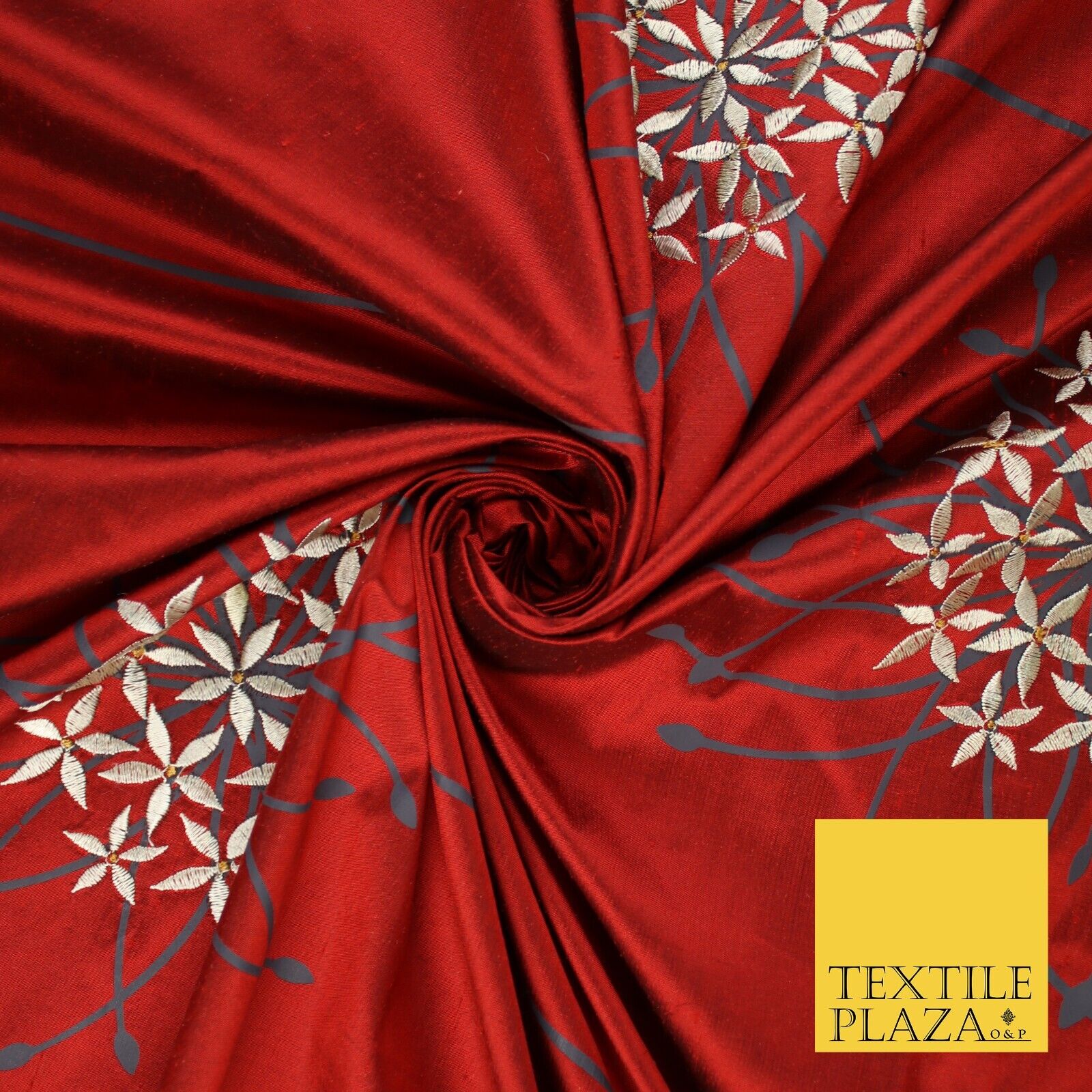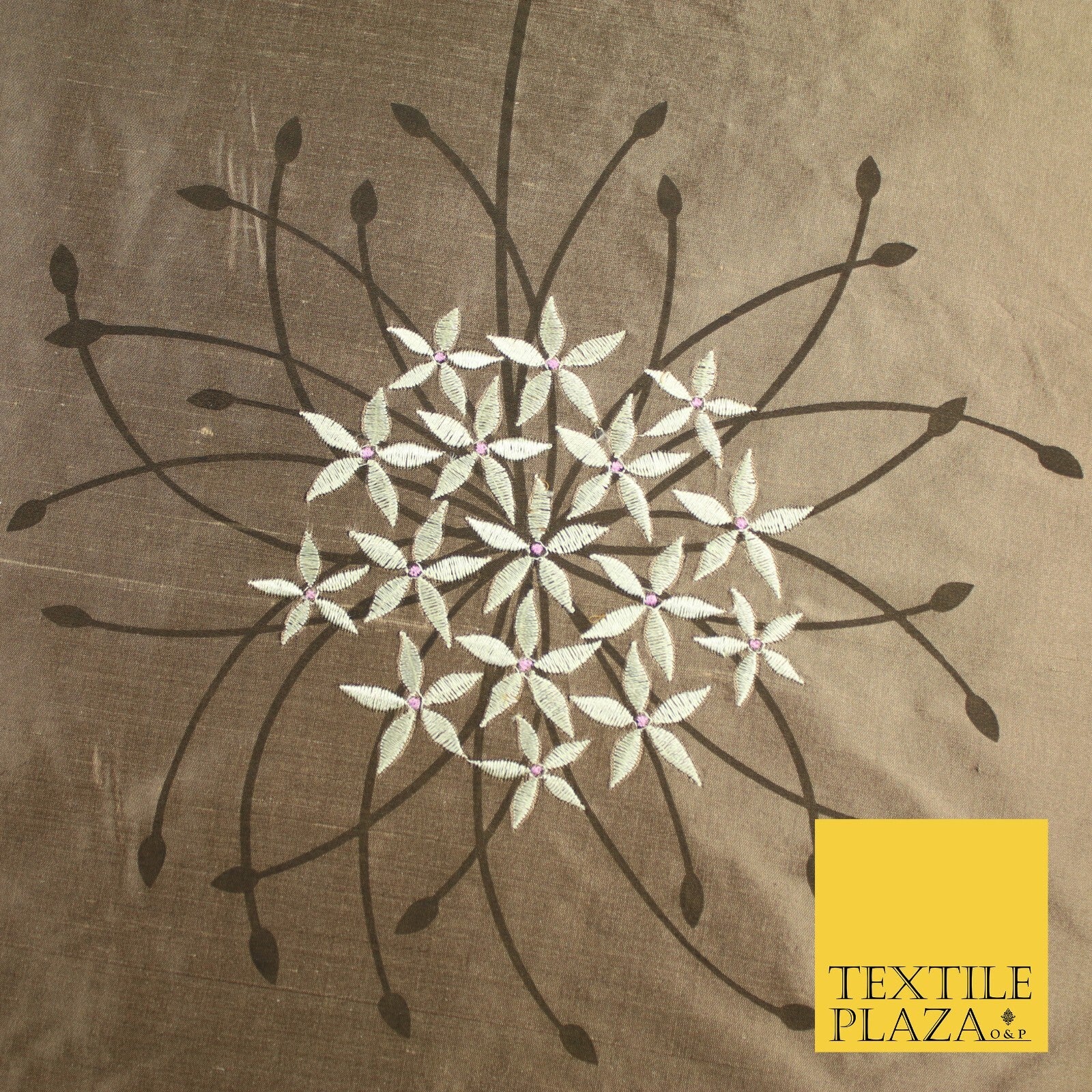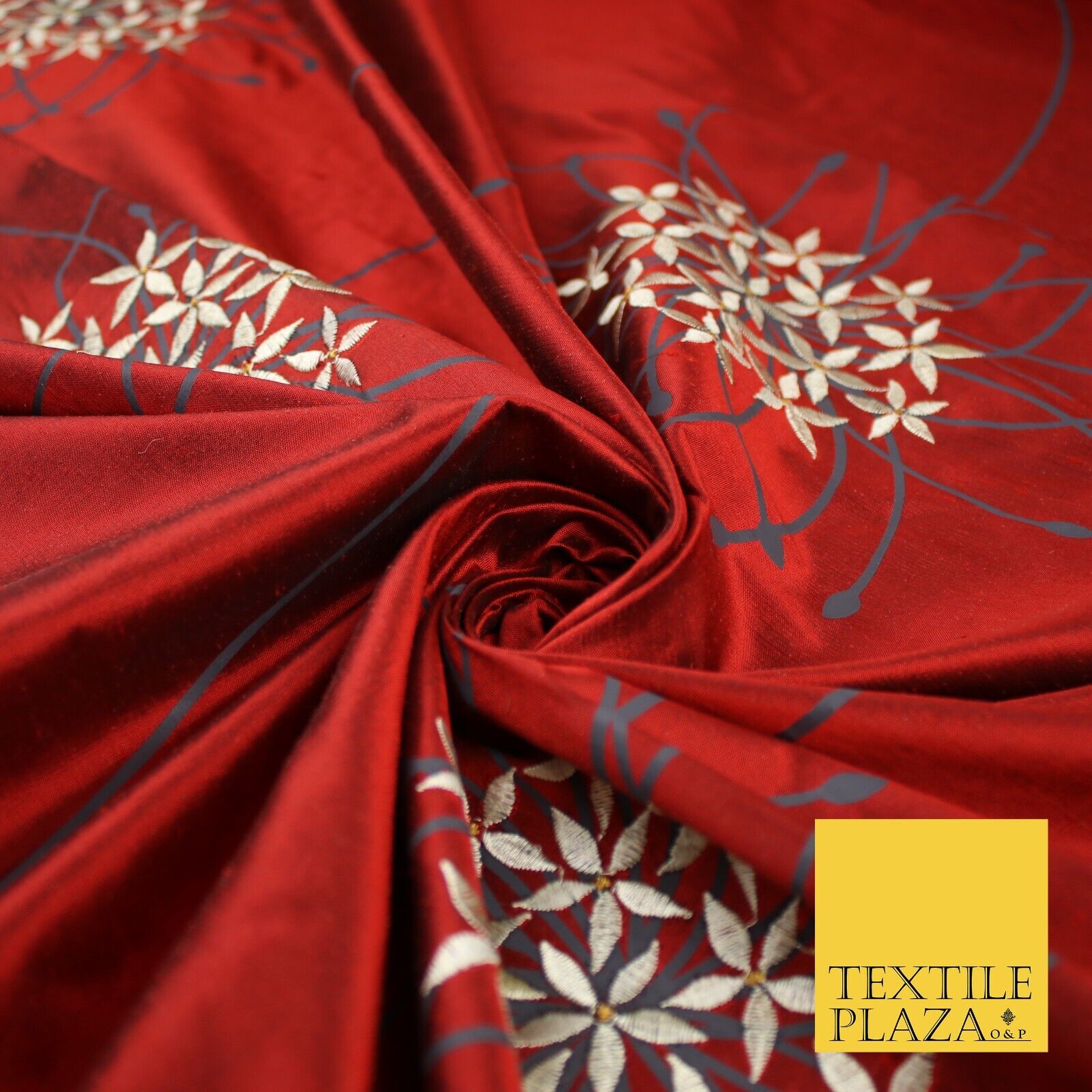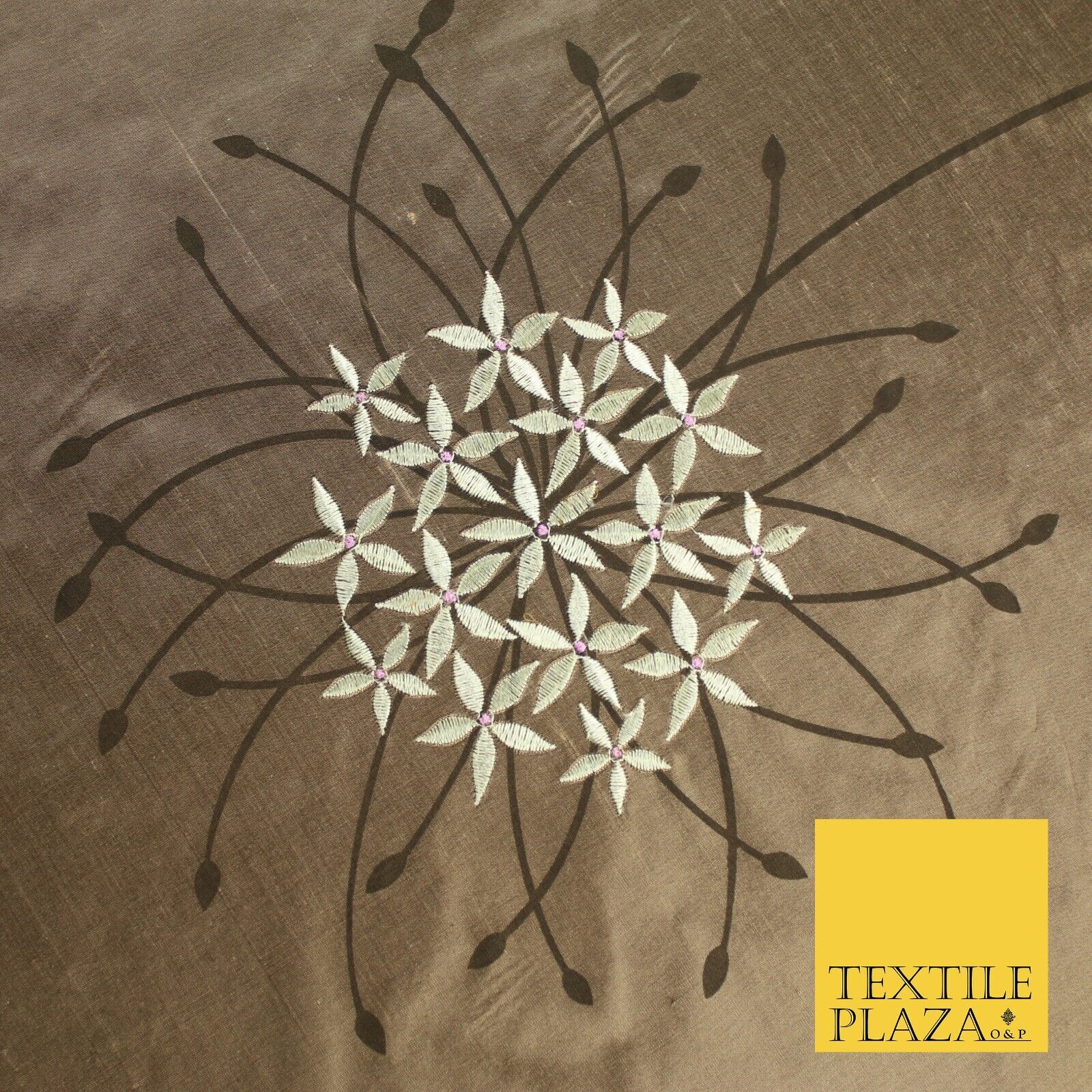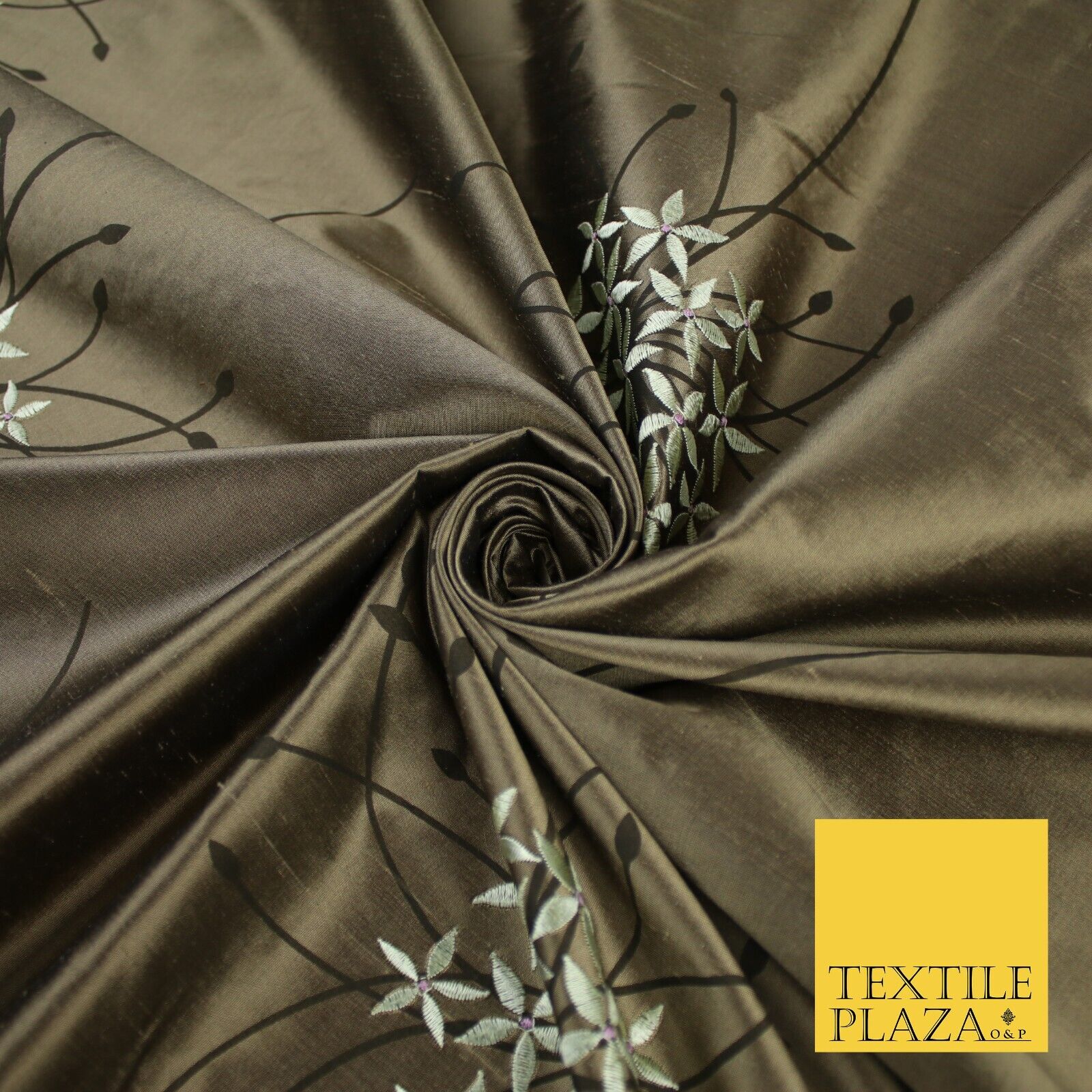 8 COLOURS - Fryetts Luxury Oversized Dandelion Embroidered 100% PURE SILK Fabric