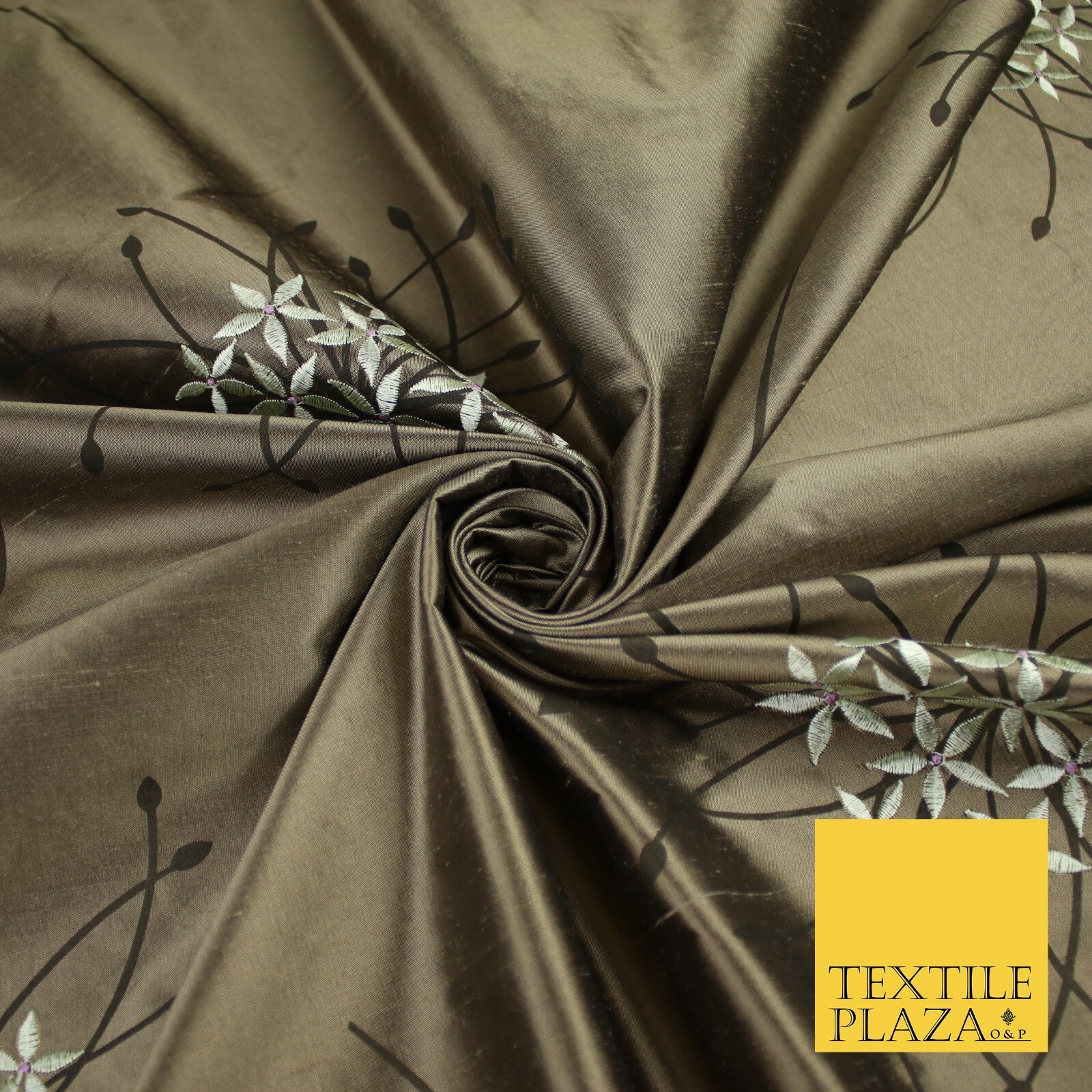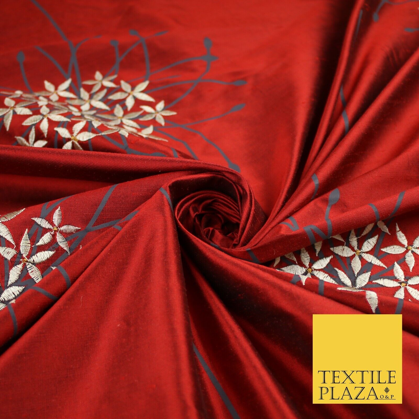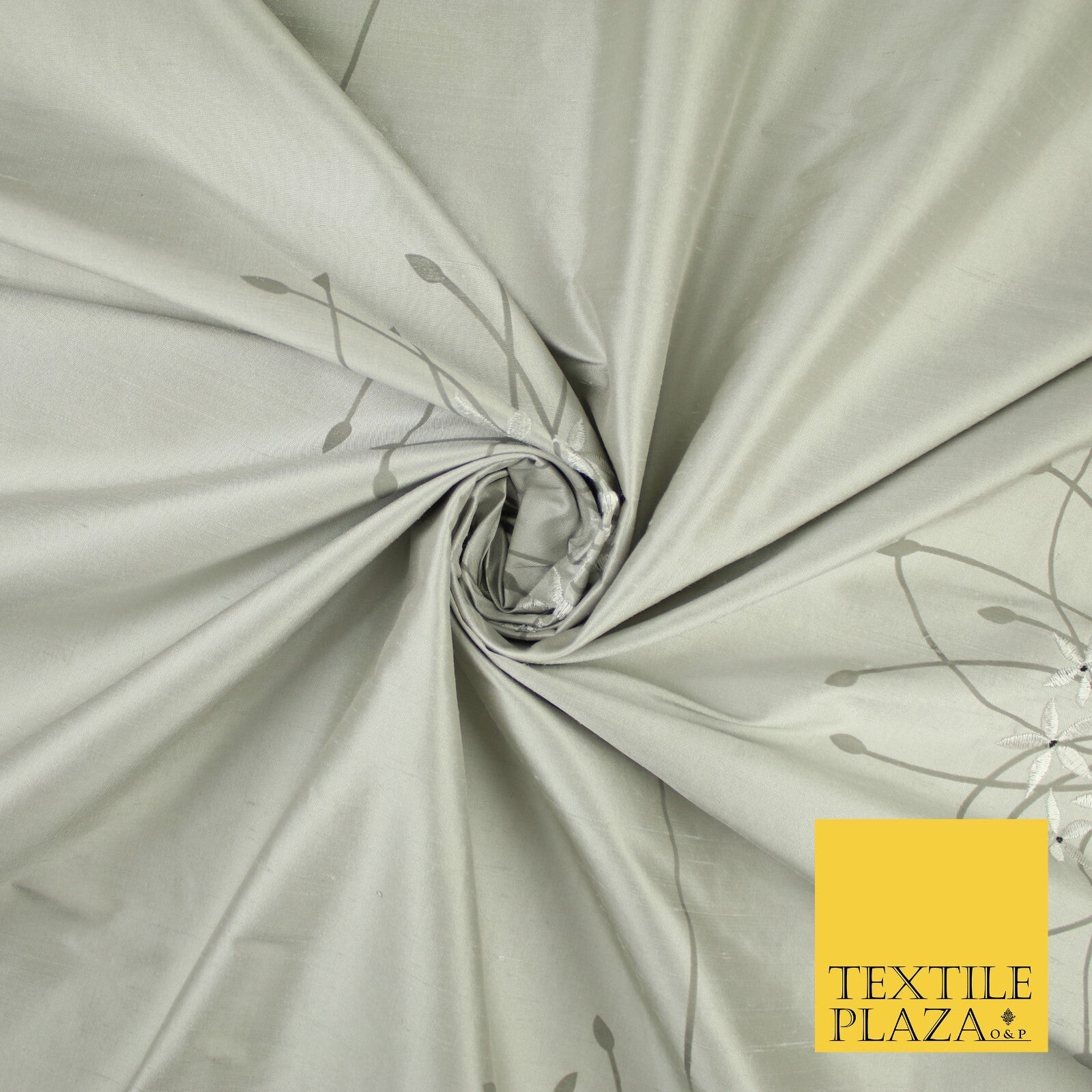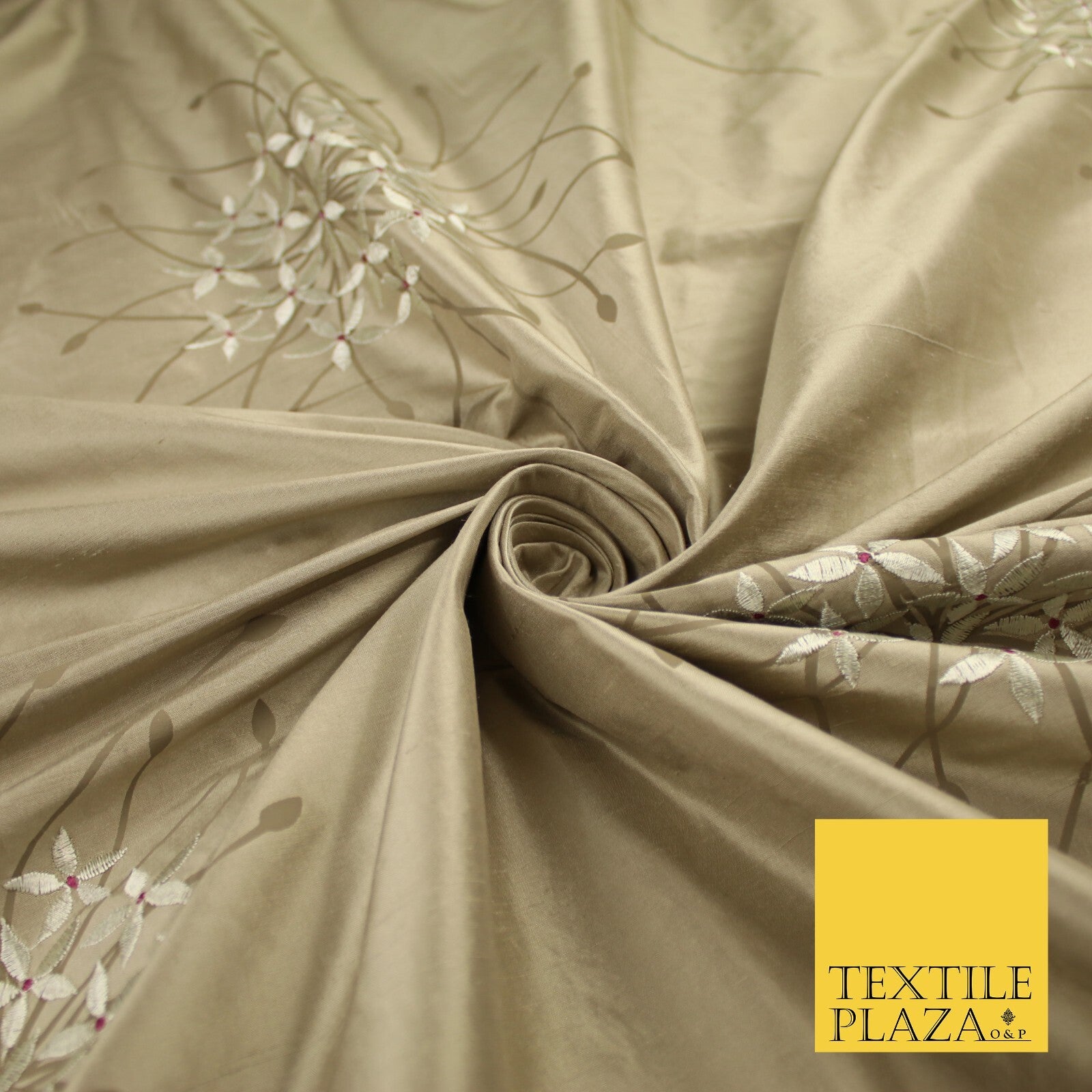 8 COLOURS - Fryetts Luxury Oversized Dandelion Embroidered 100% PURE SILK Fabric