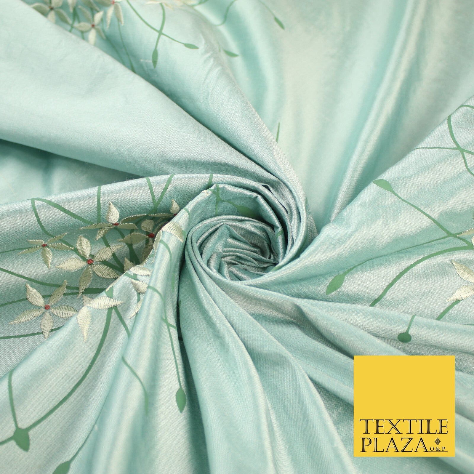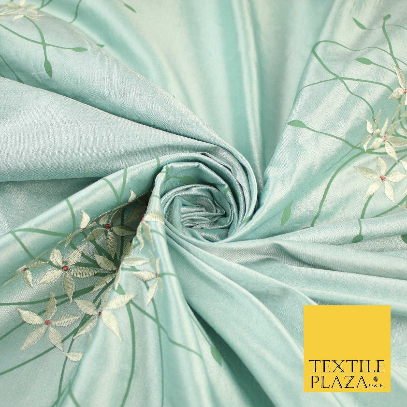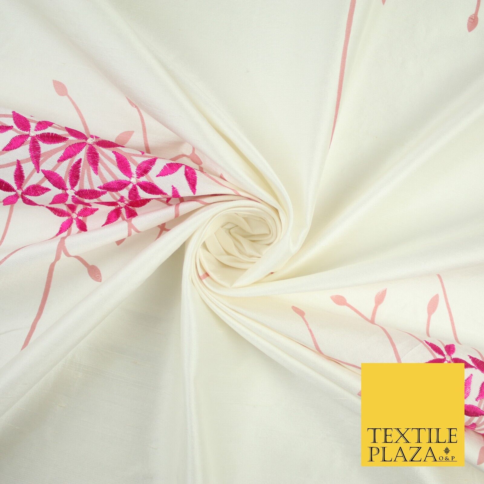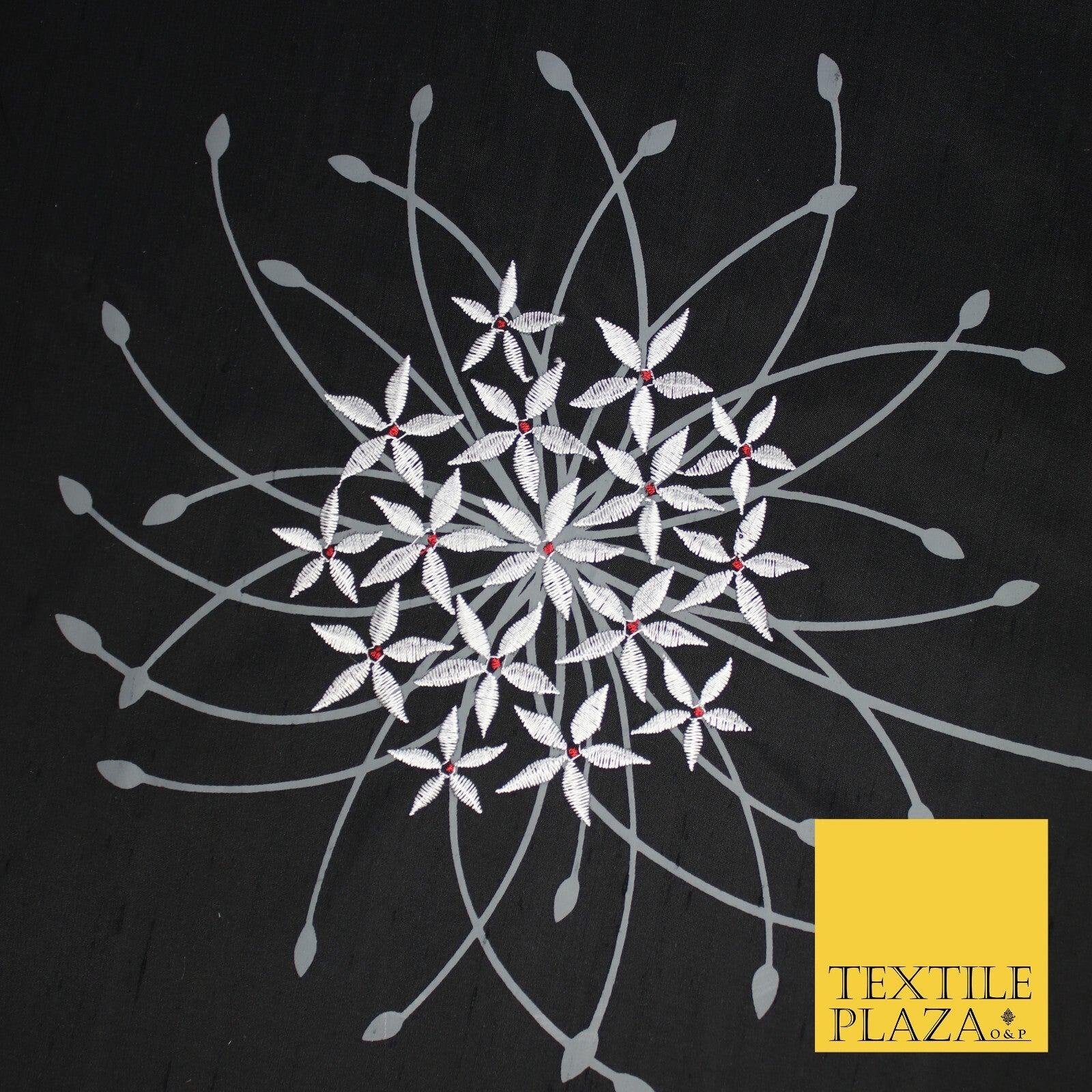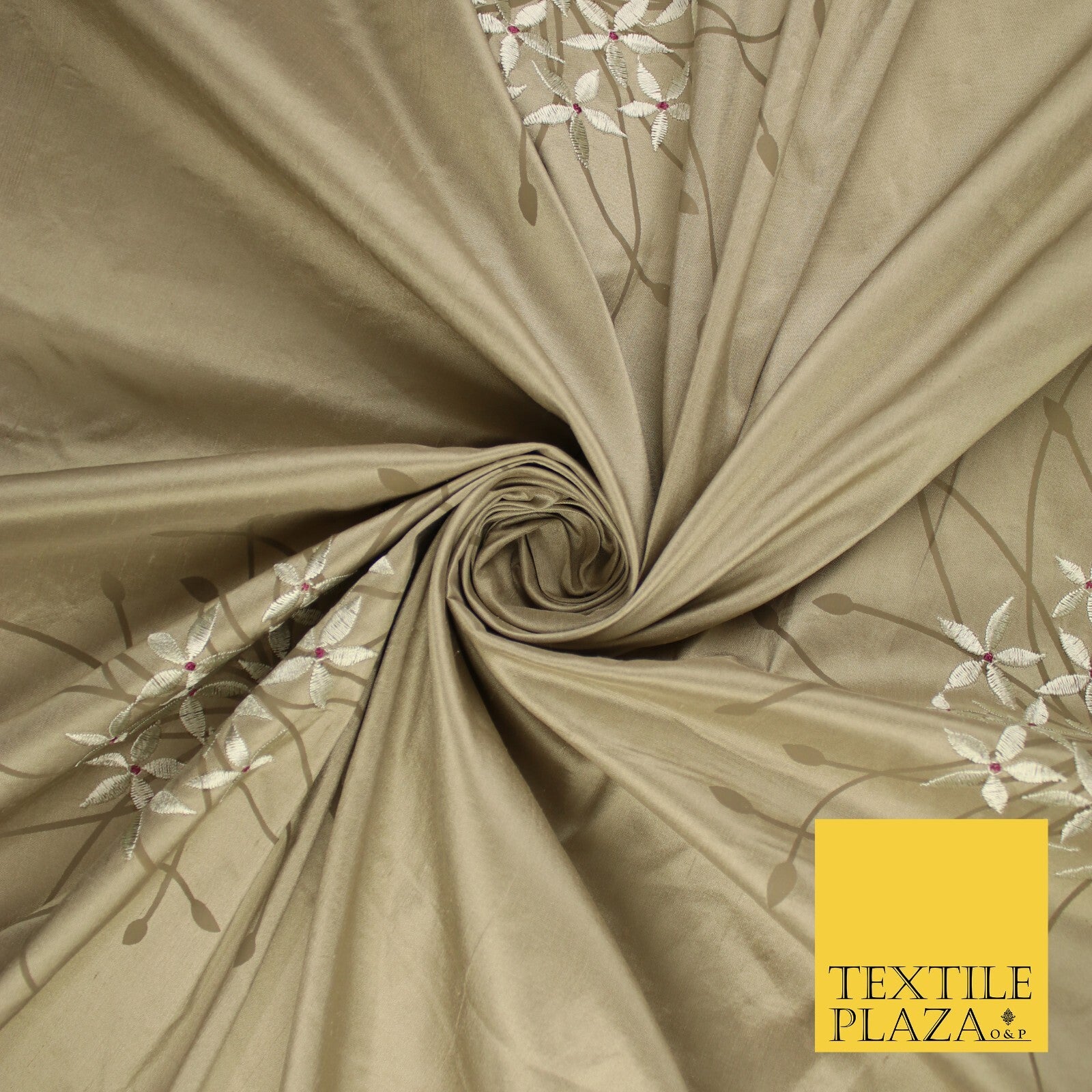 8 COLOURS - Fryetts Luxury Oversized Dandelion Embroidered 100% PURE SILK Fabric