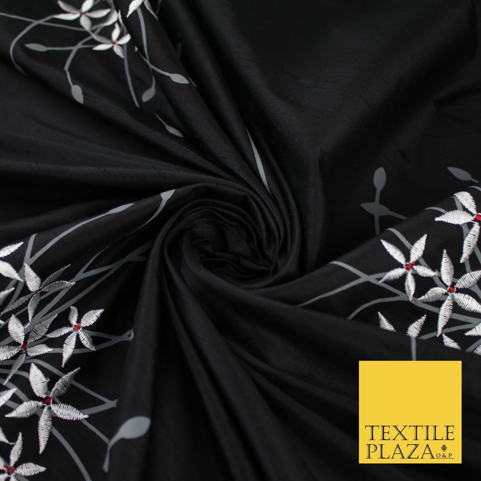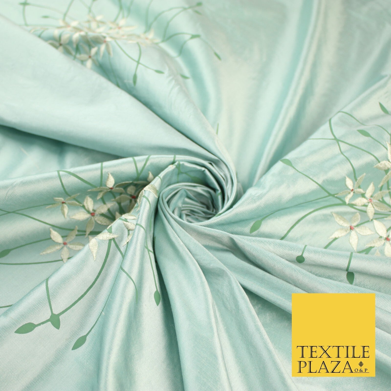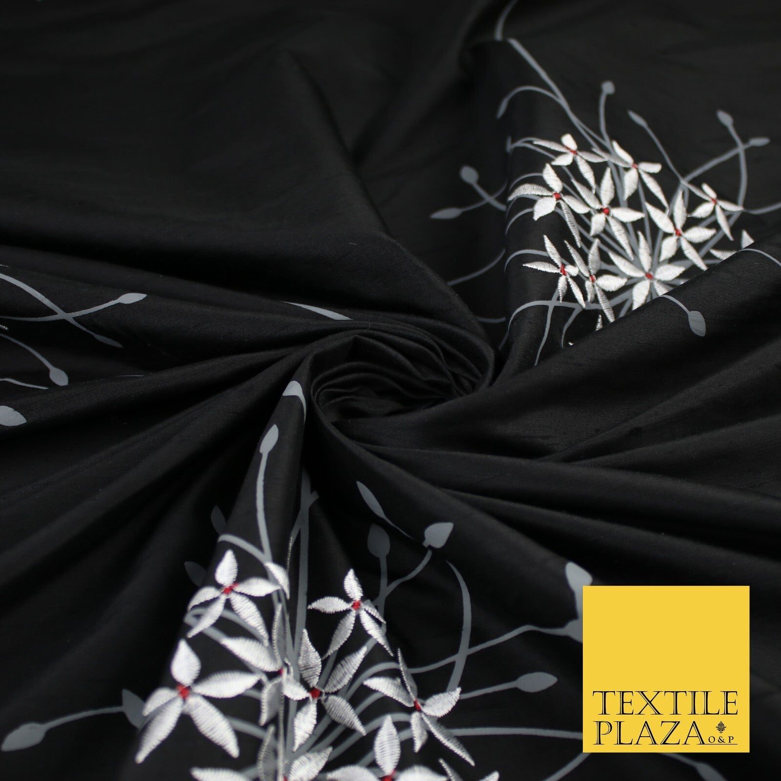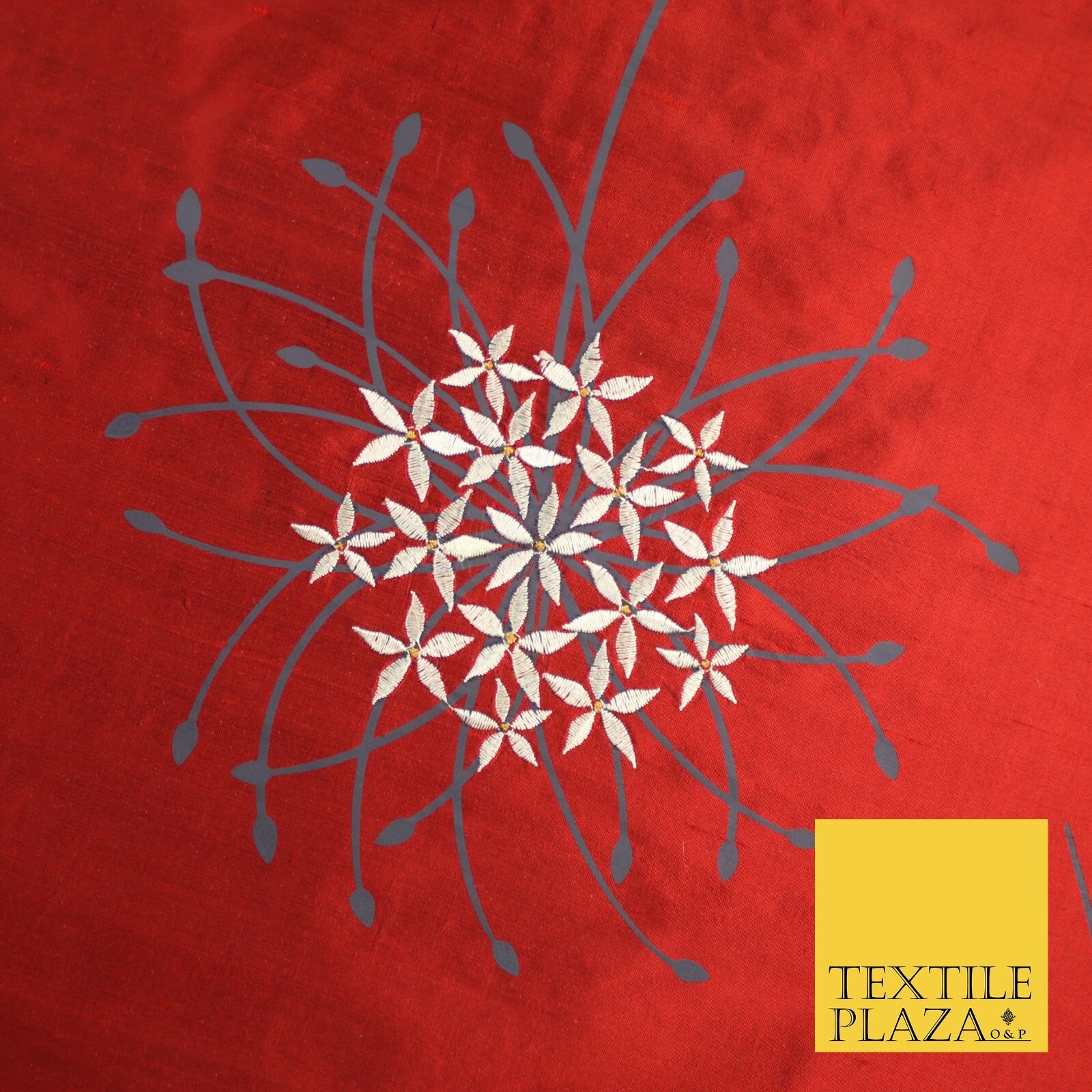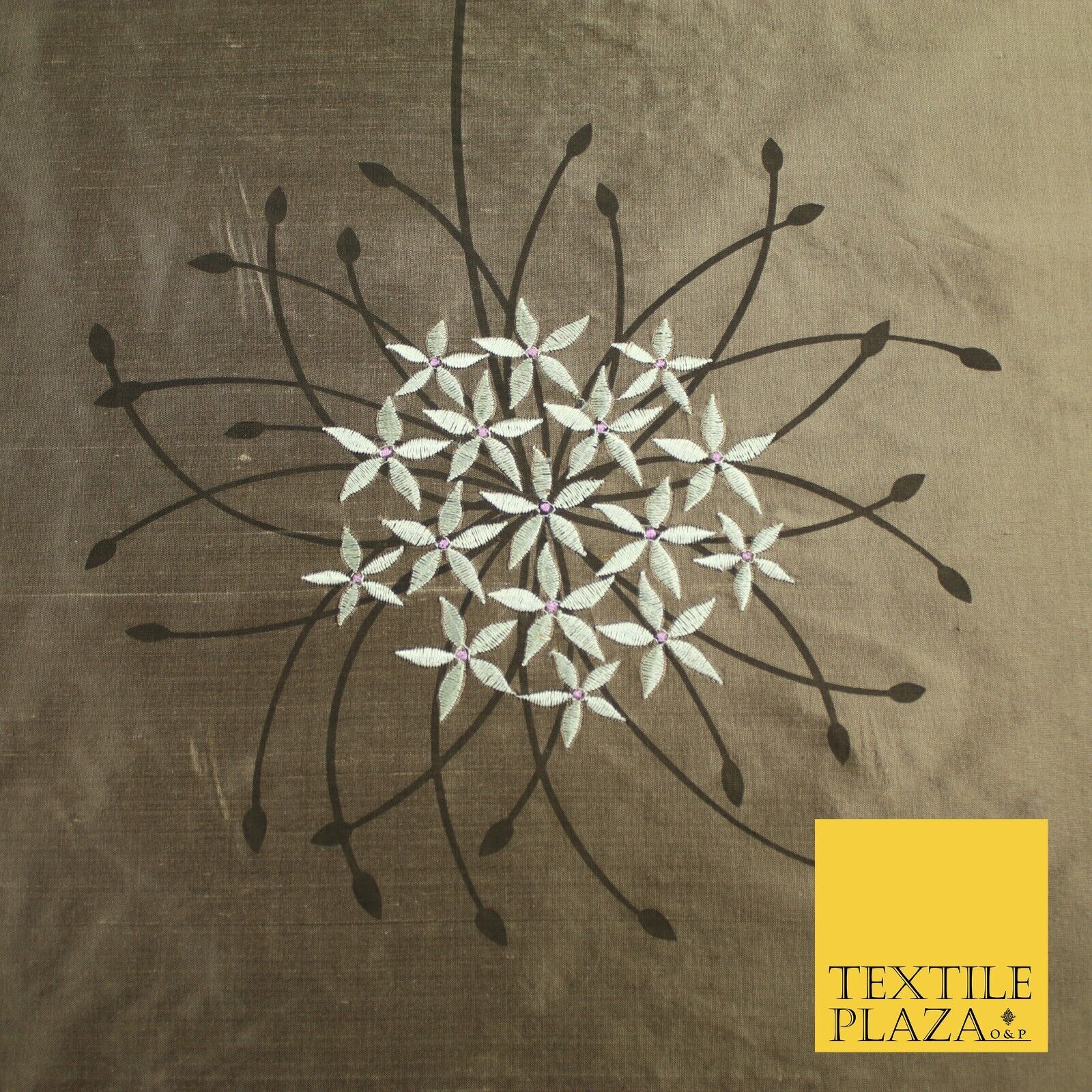 8 COLOURS - Fryetts Luxury Oversized Dandelion Embroidered 100% PURE SILK Fabric