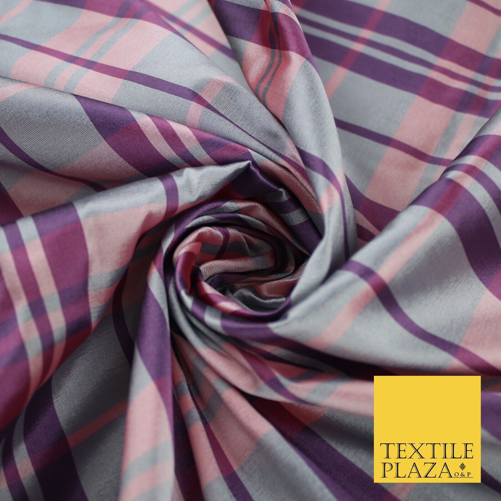 High Quality CHECK TARTAN Faux Silk Taffeta Dress Fabric