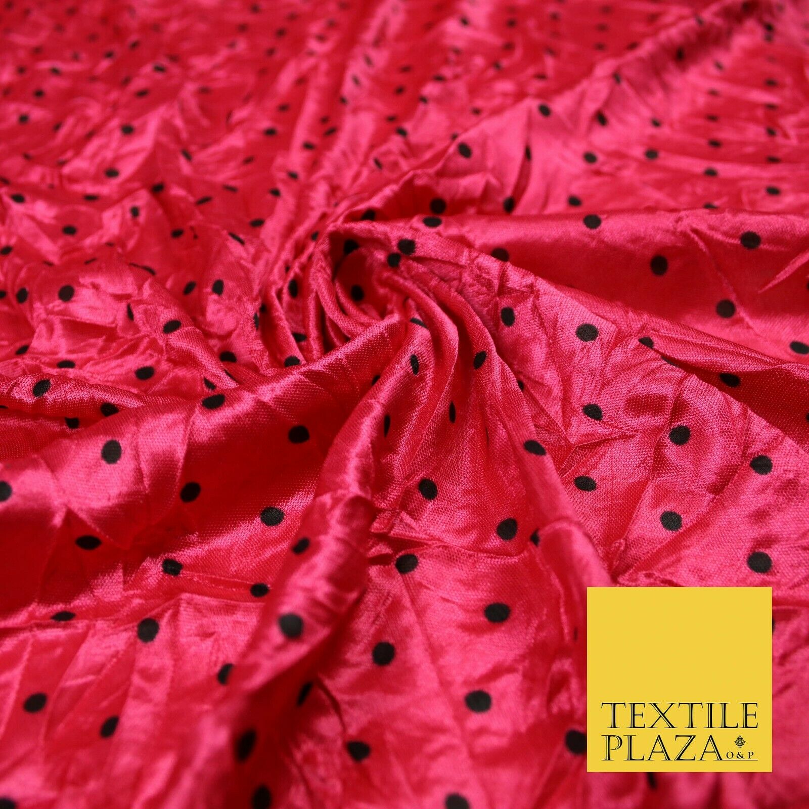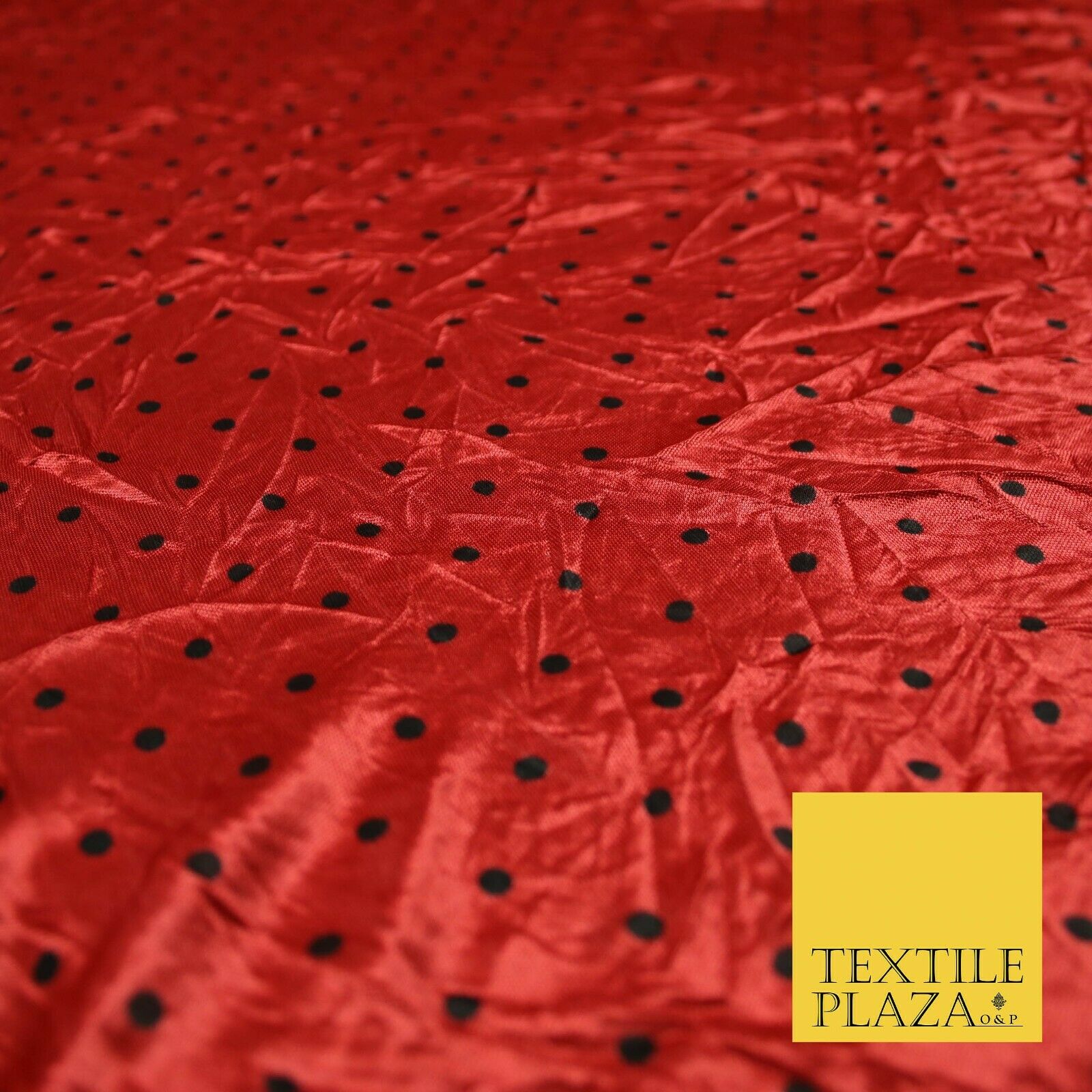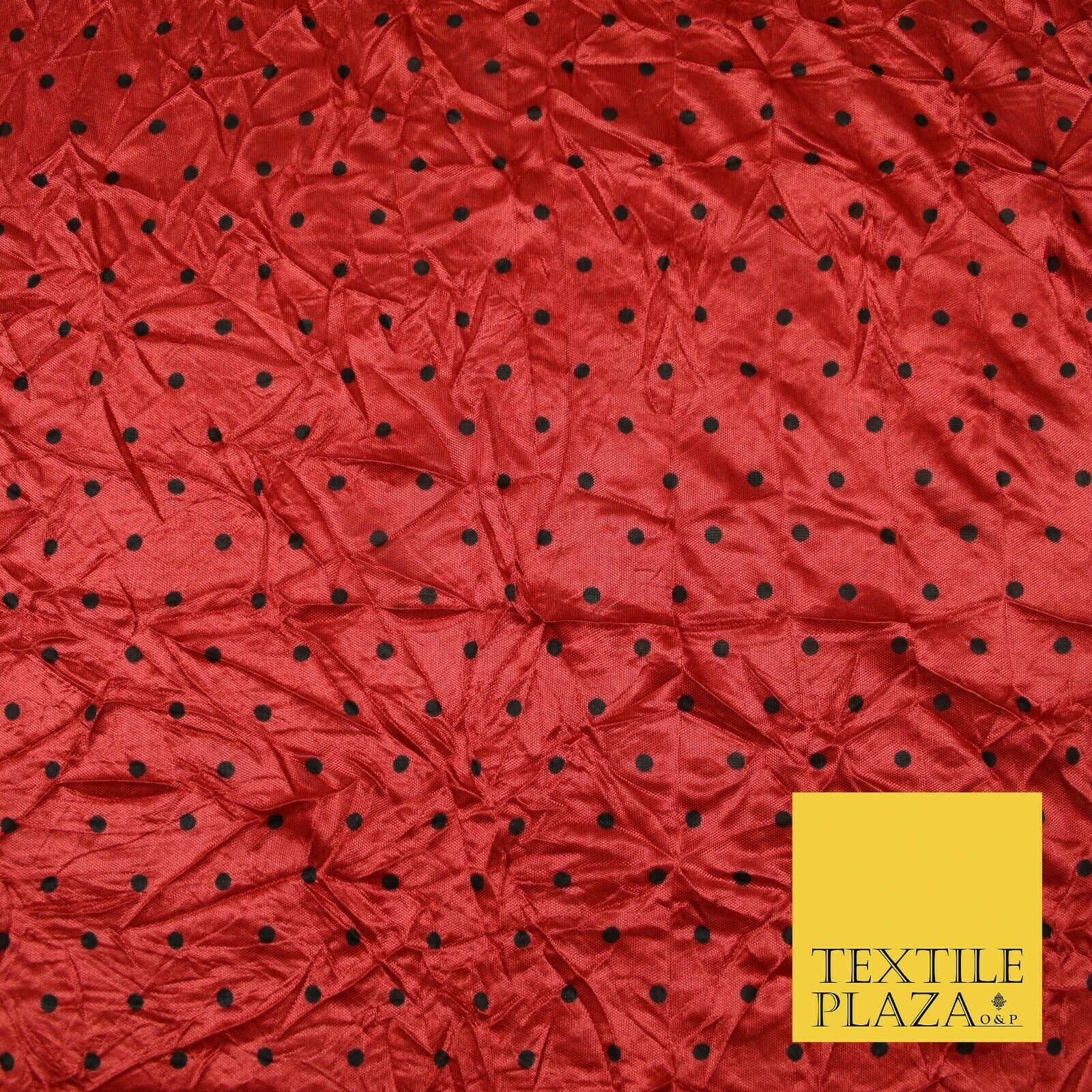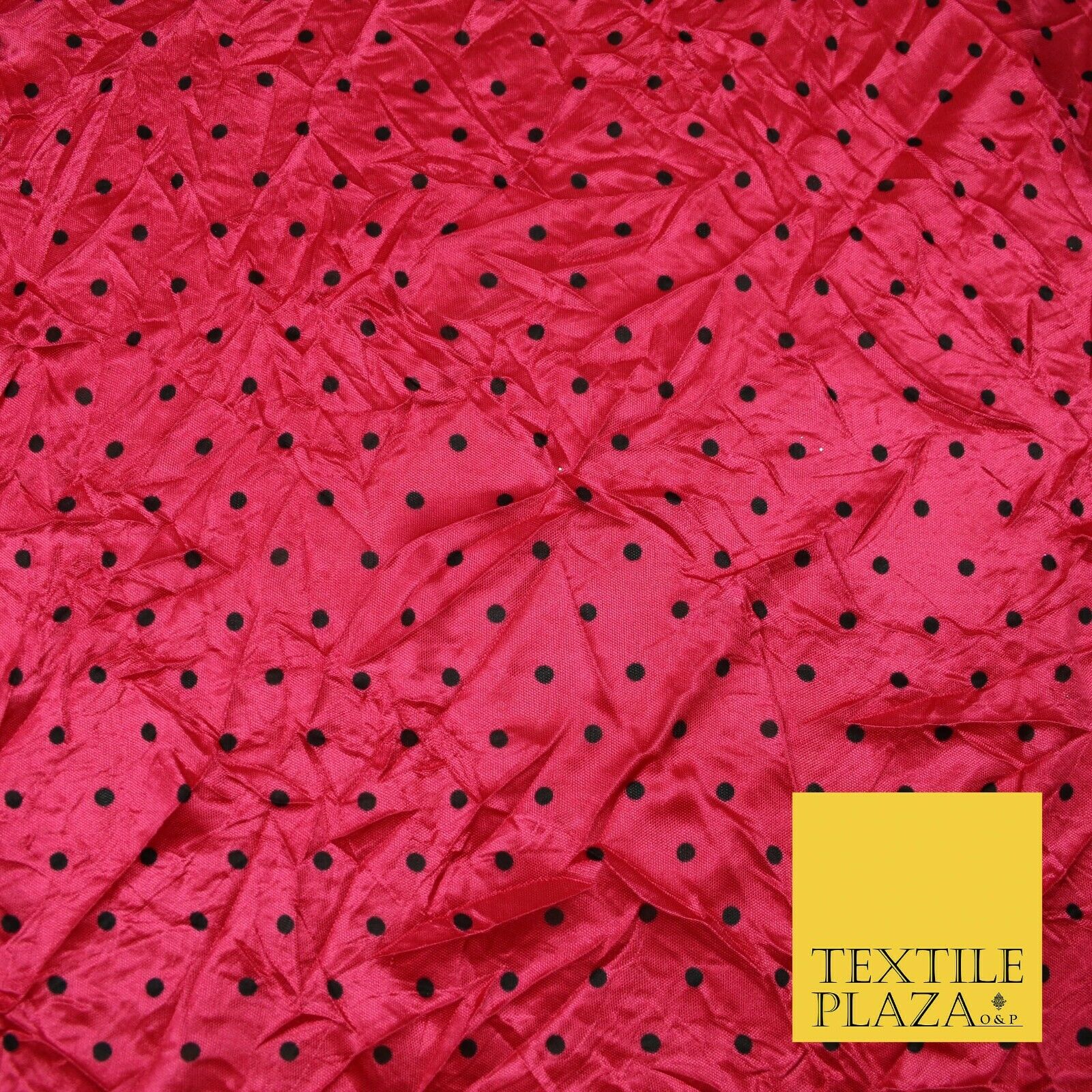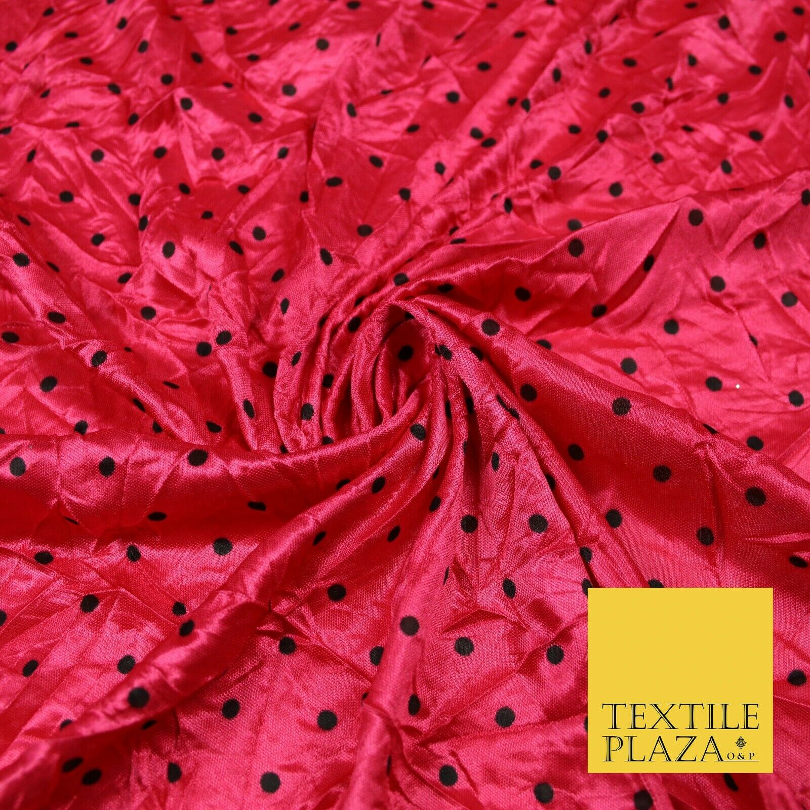 9 COLOURS - Crushed Creased 4mm Spotted Polka Dot Polyester Stretch Satin Fabric
