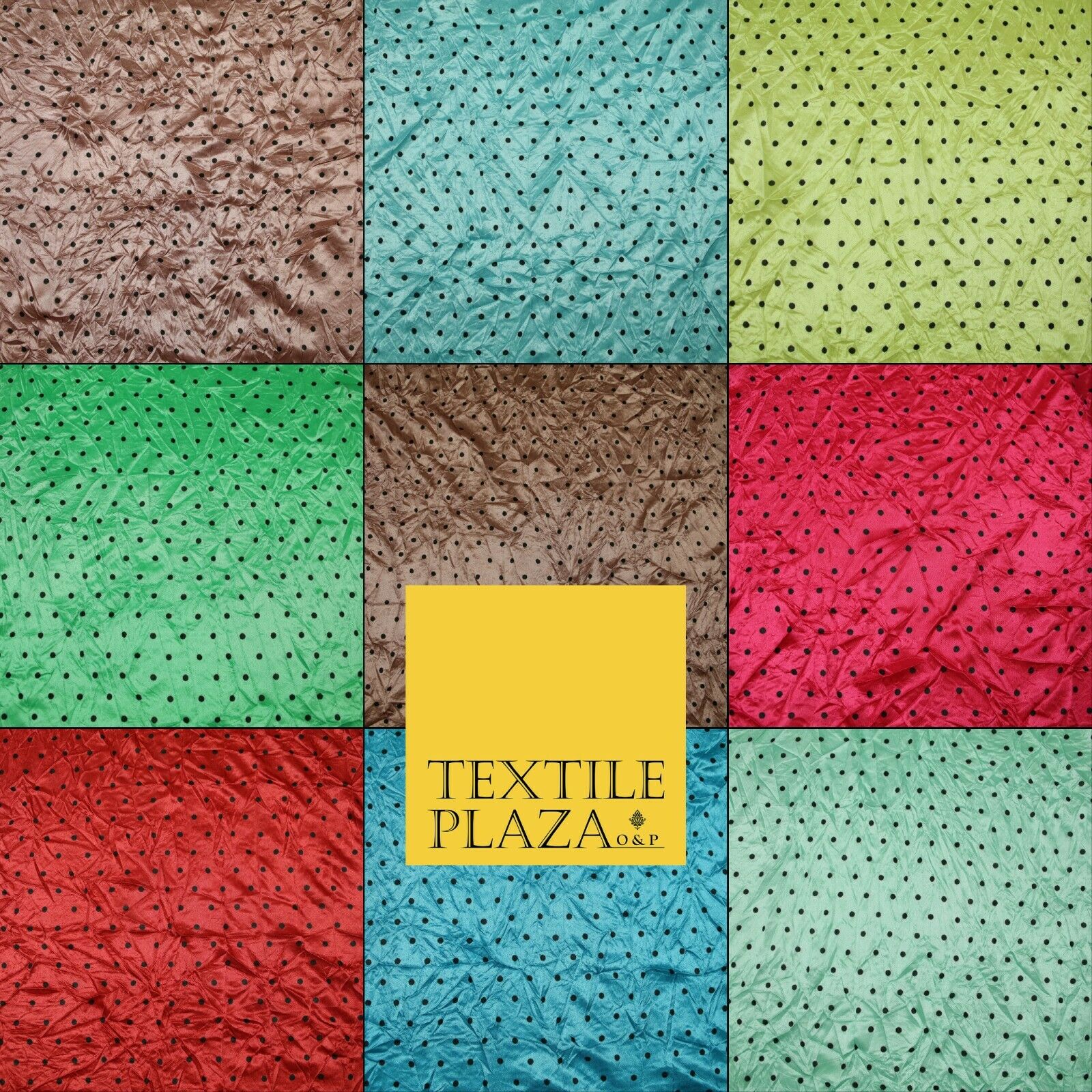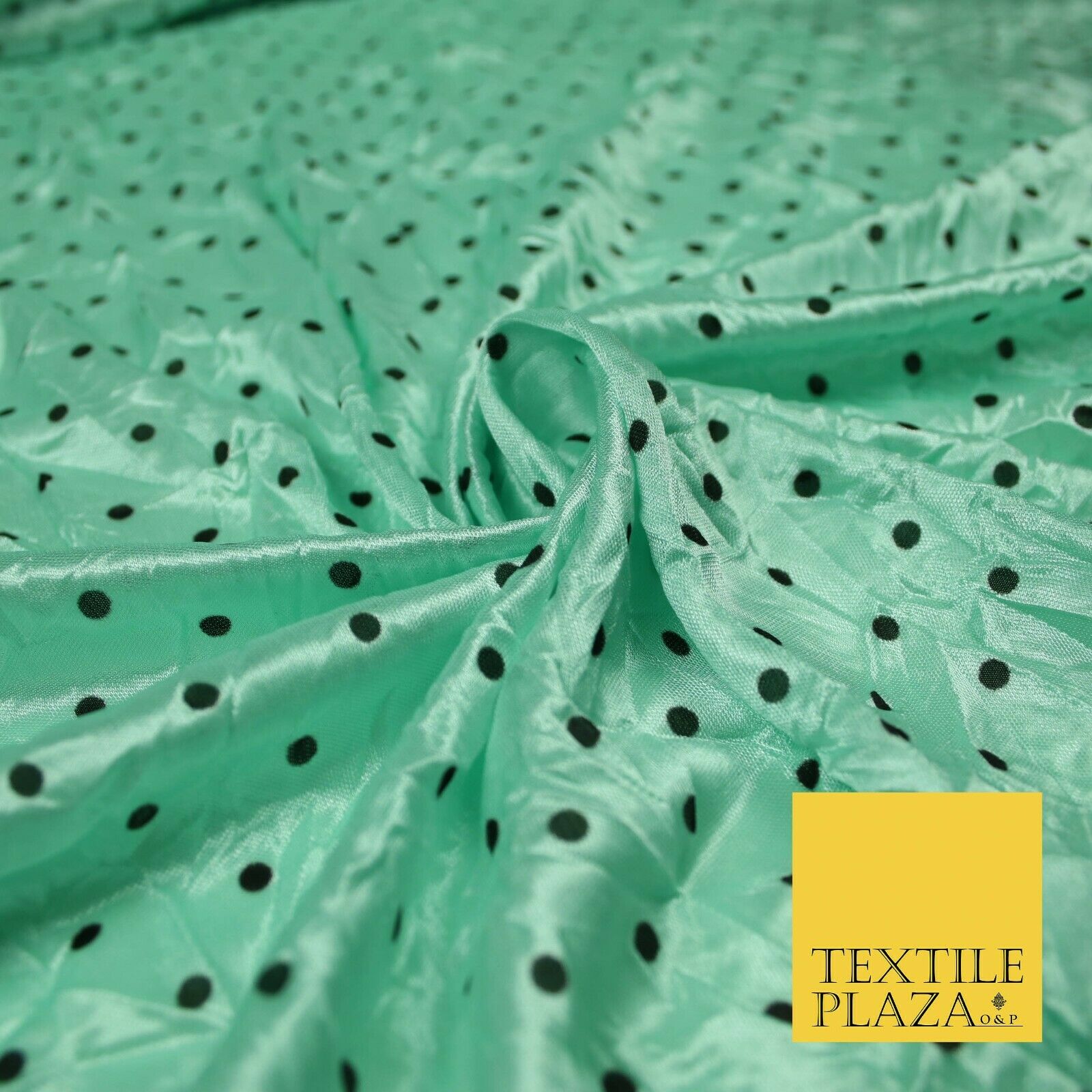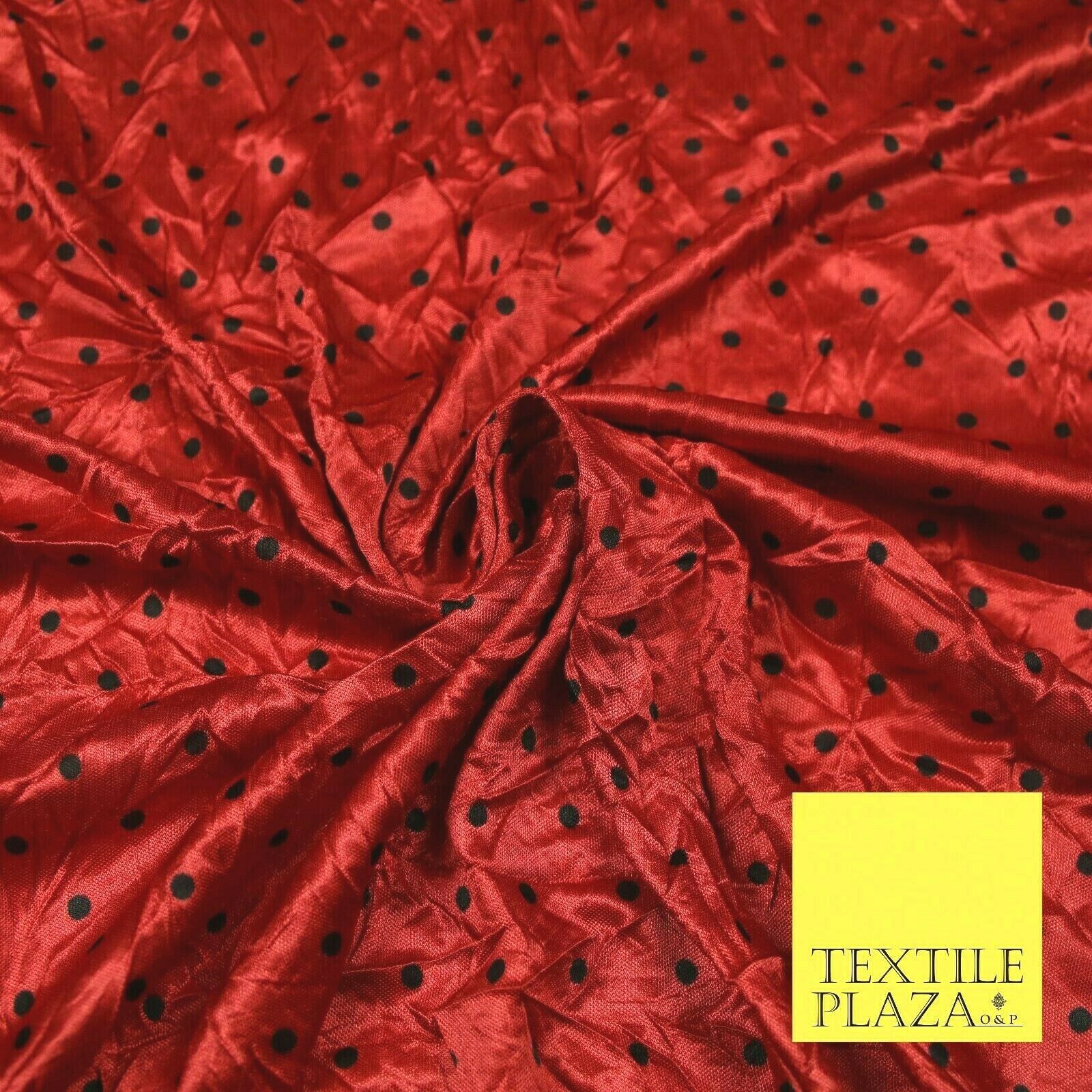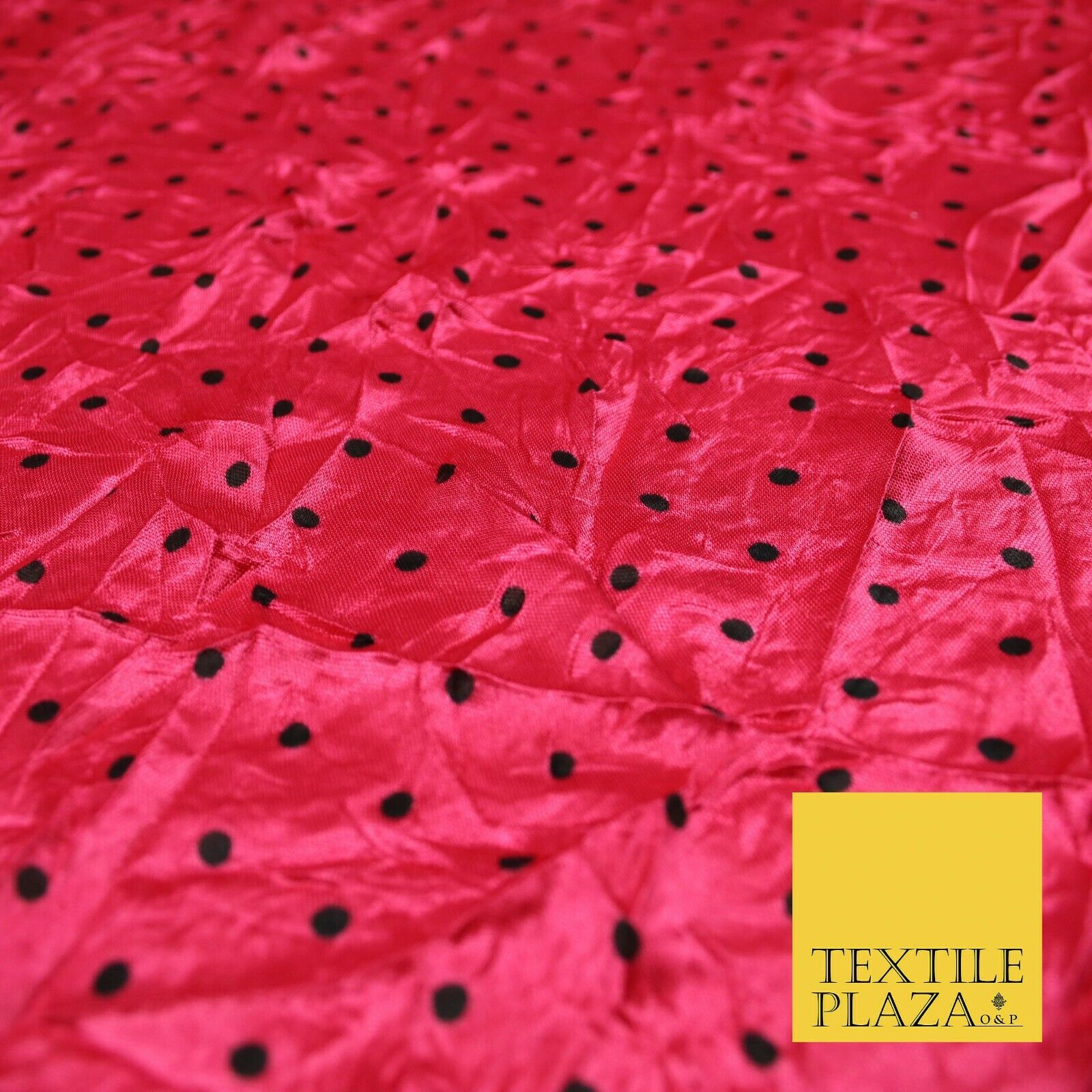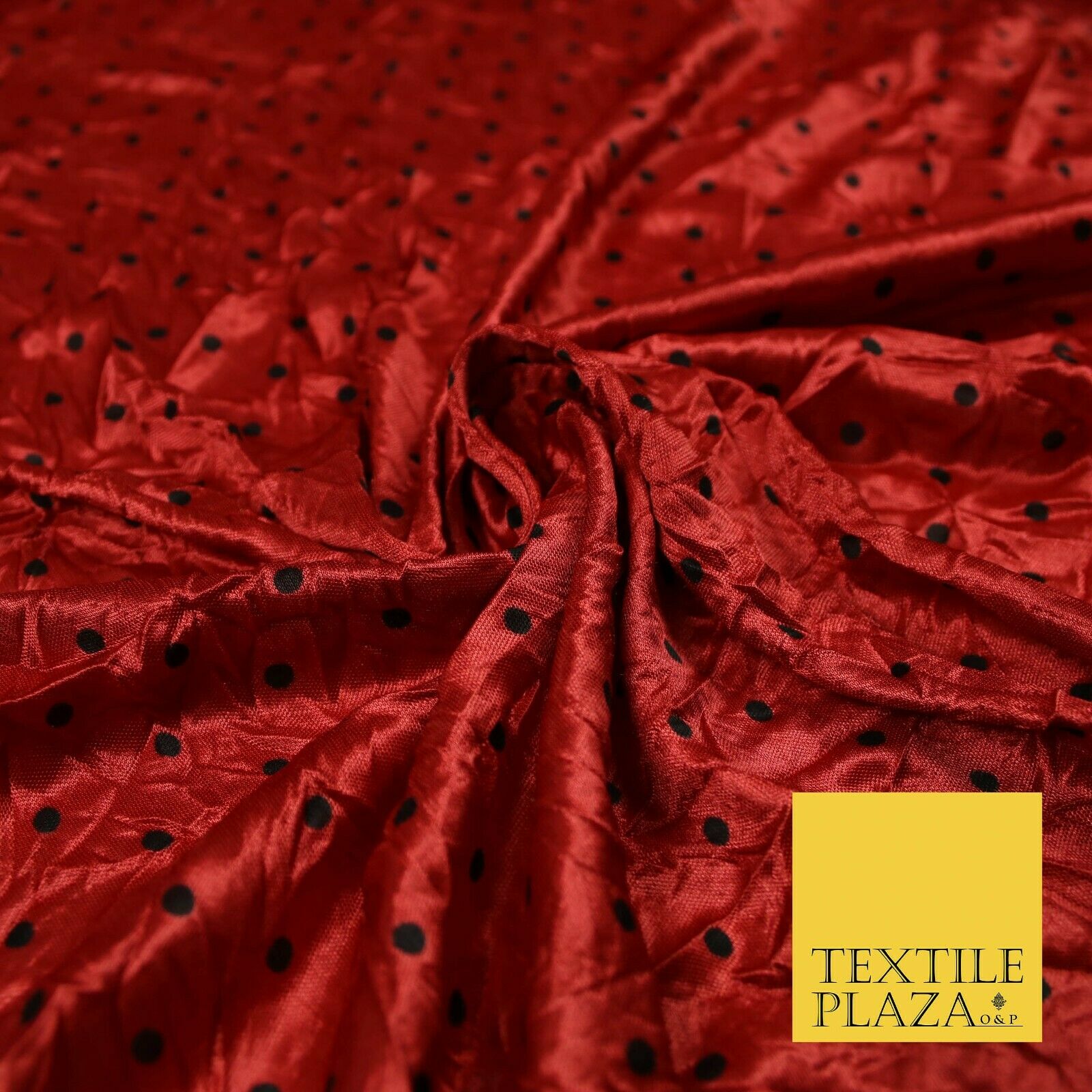 9 COLOURS - Crushed Creased 4mm Spotted Polka Dot Polyester Stretch Satin Fabric