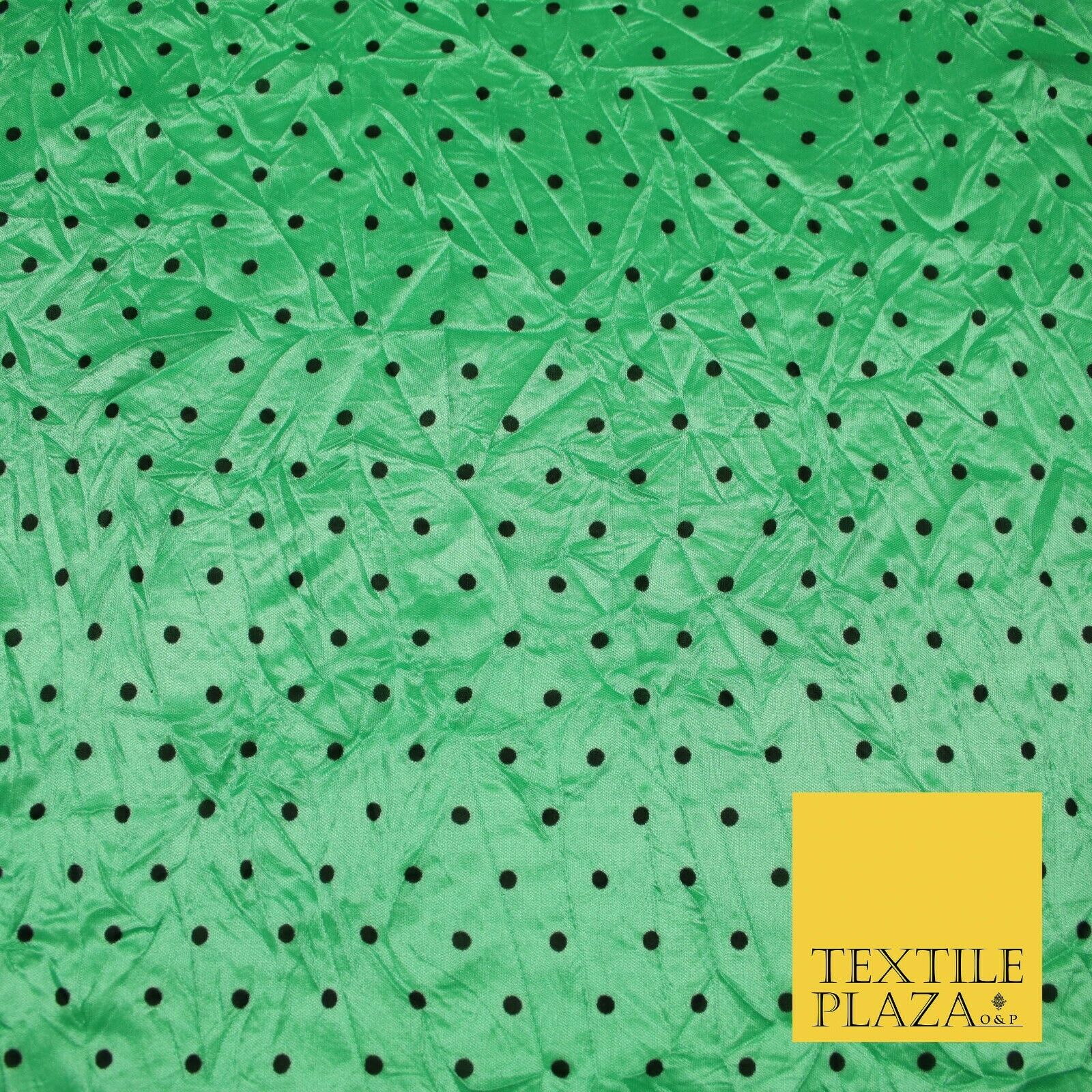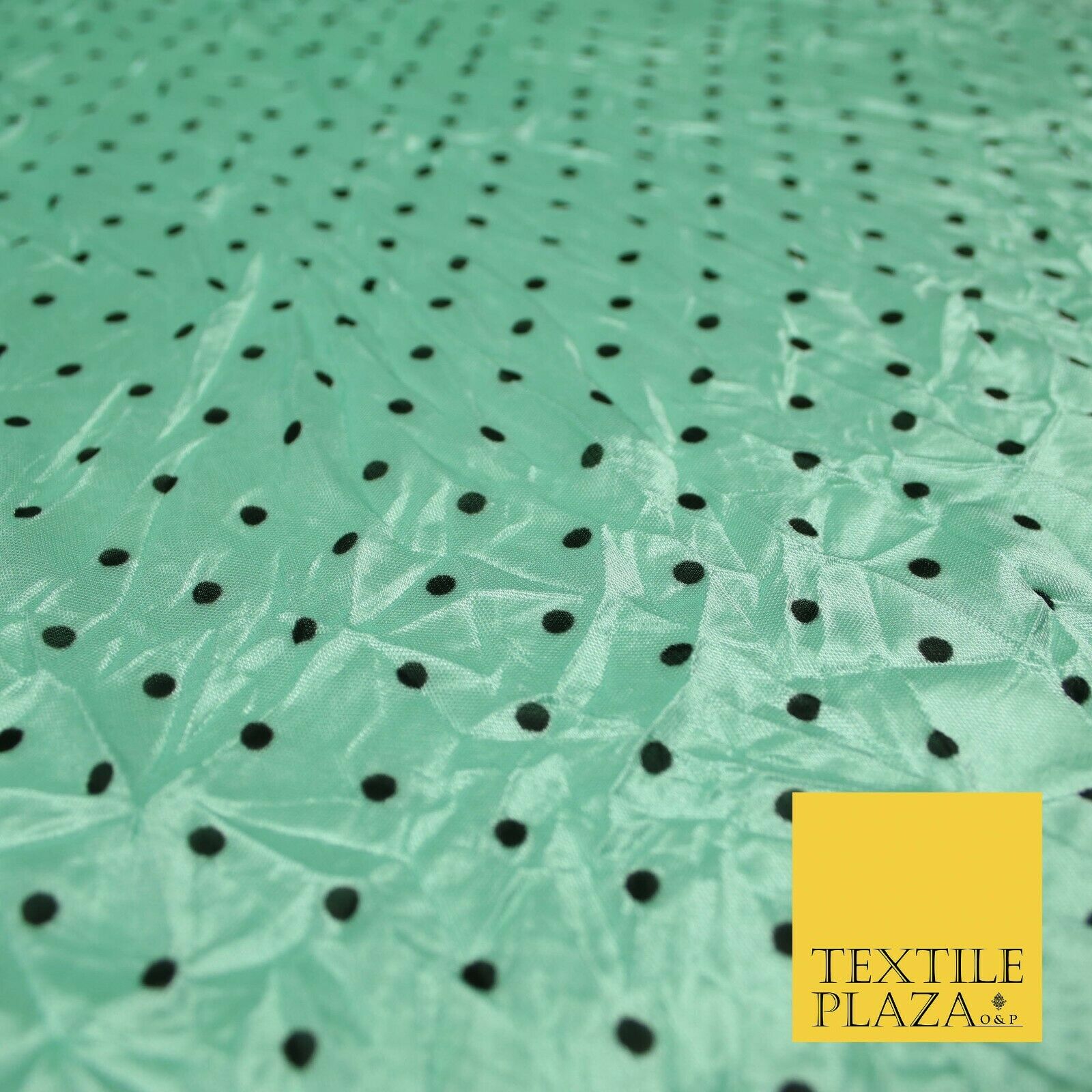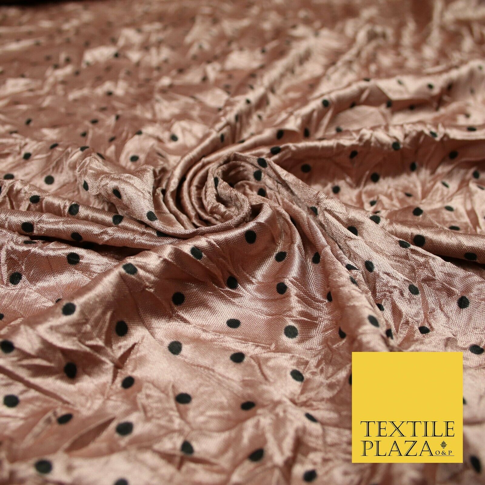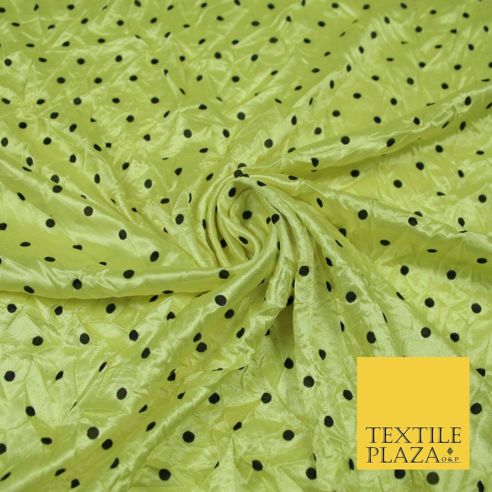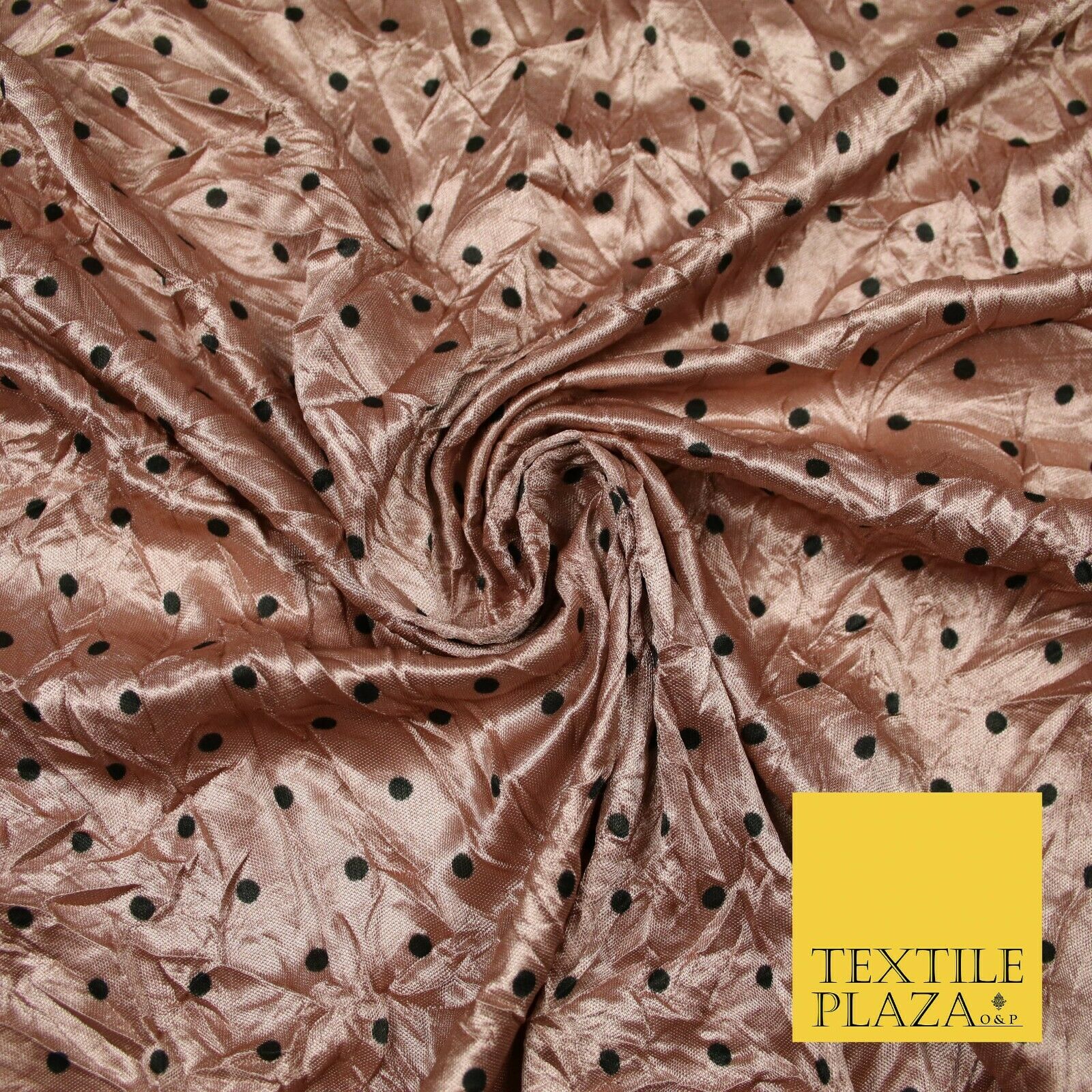 9 COLOURS - Crushed Creased 4mm Spotted Polka Dot Polyester Stretch Satin Fabric