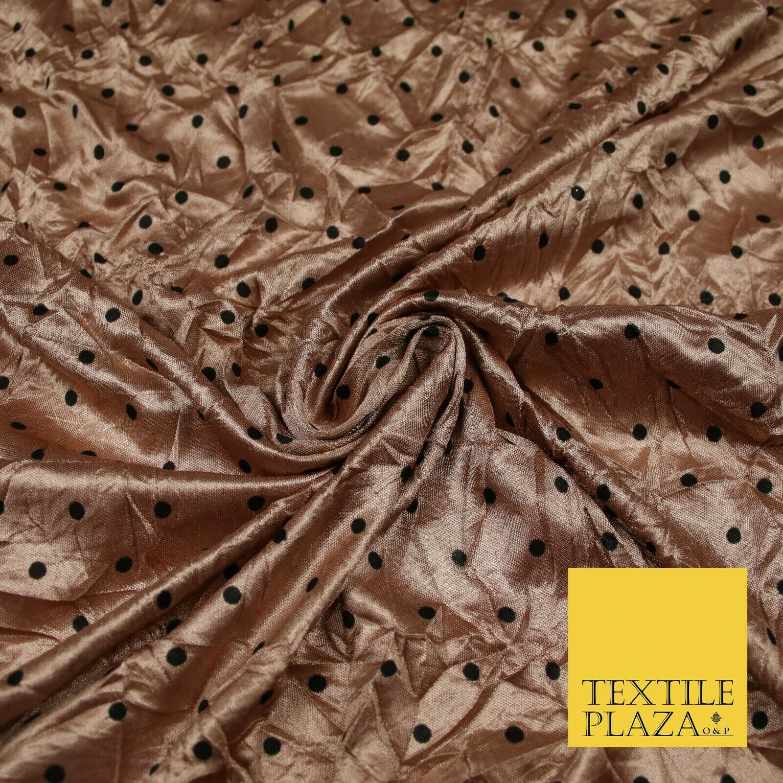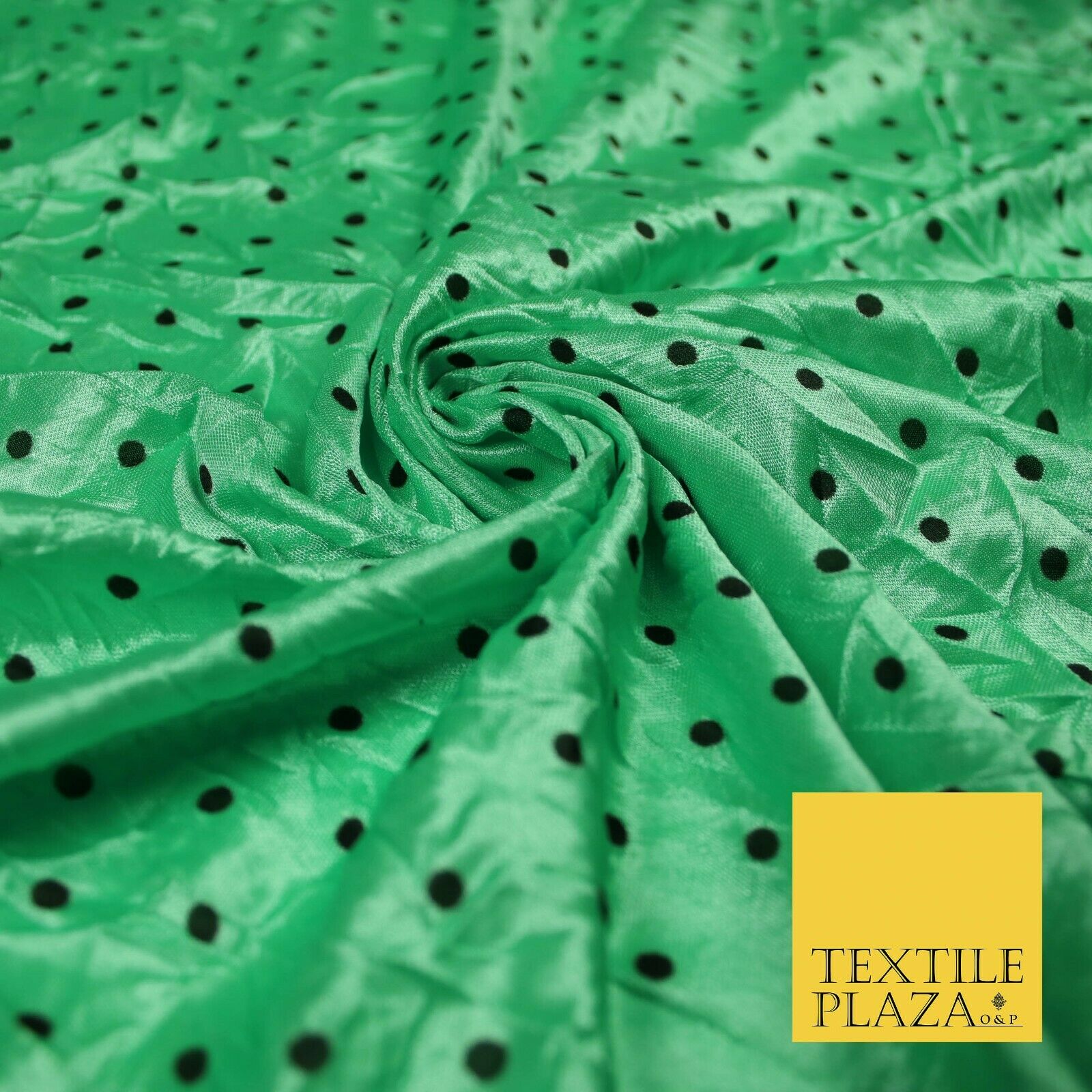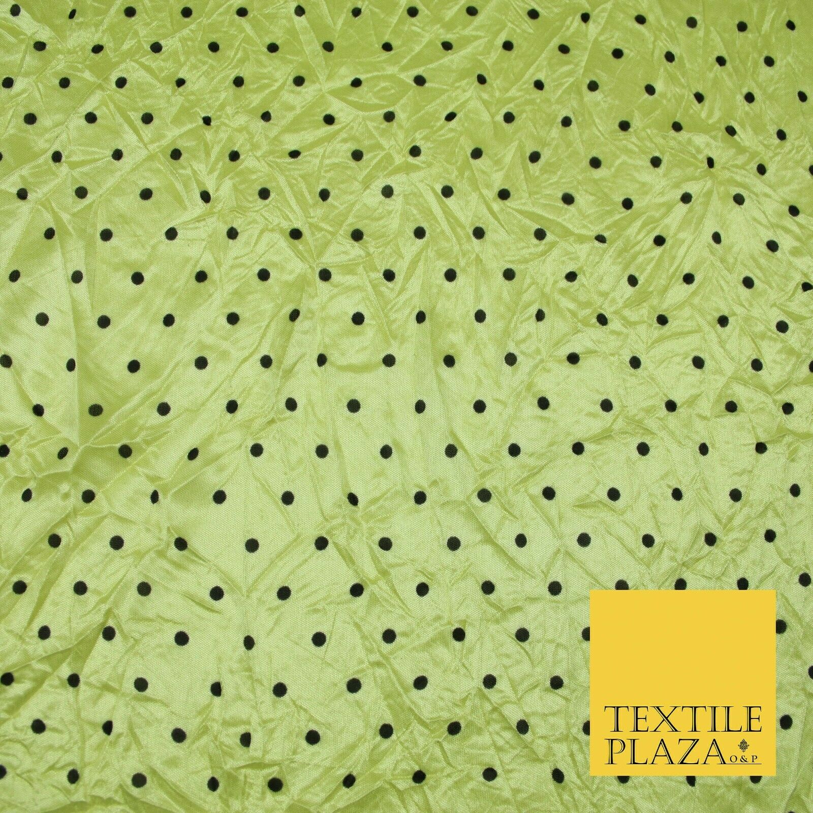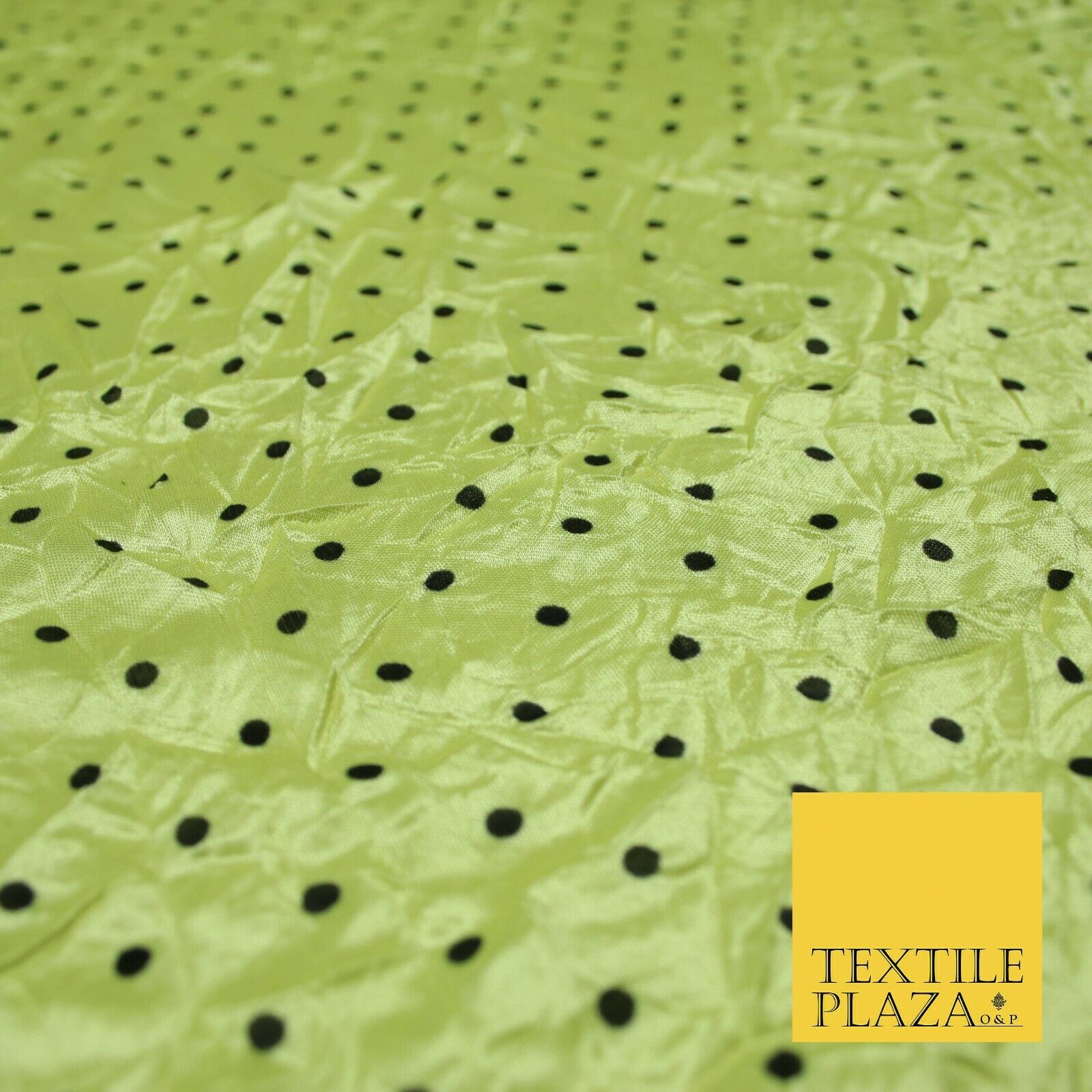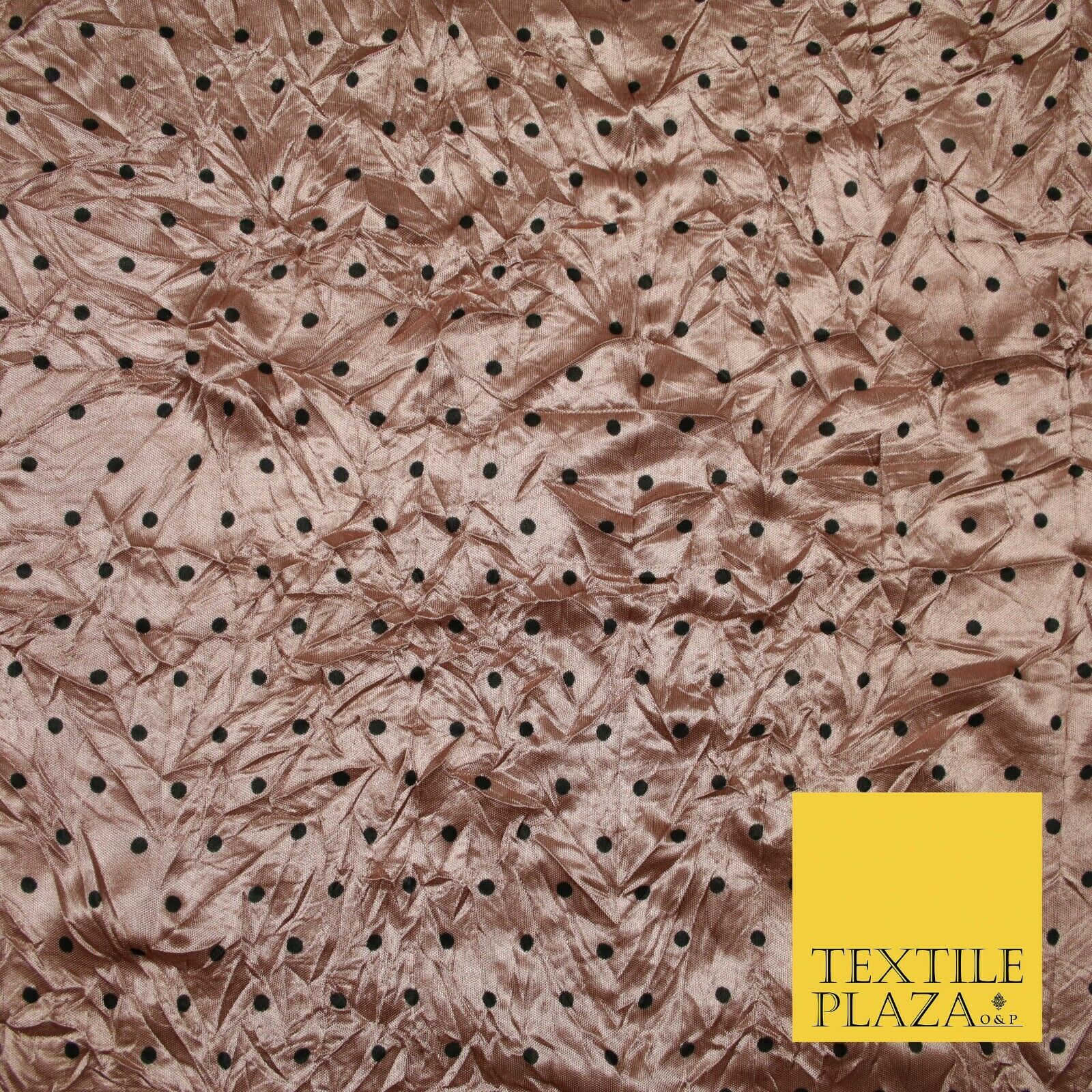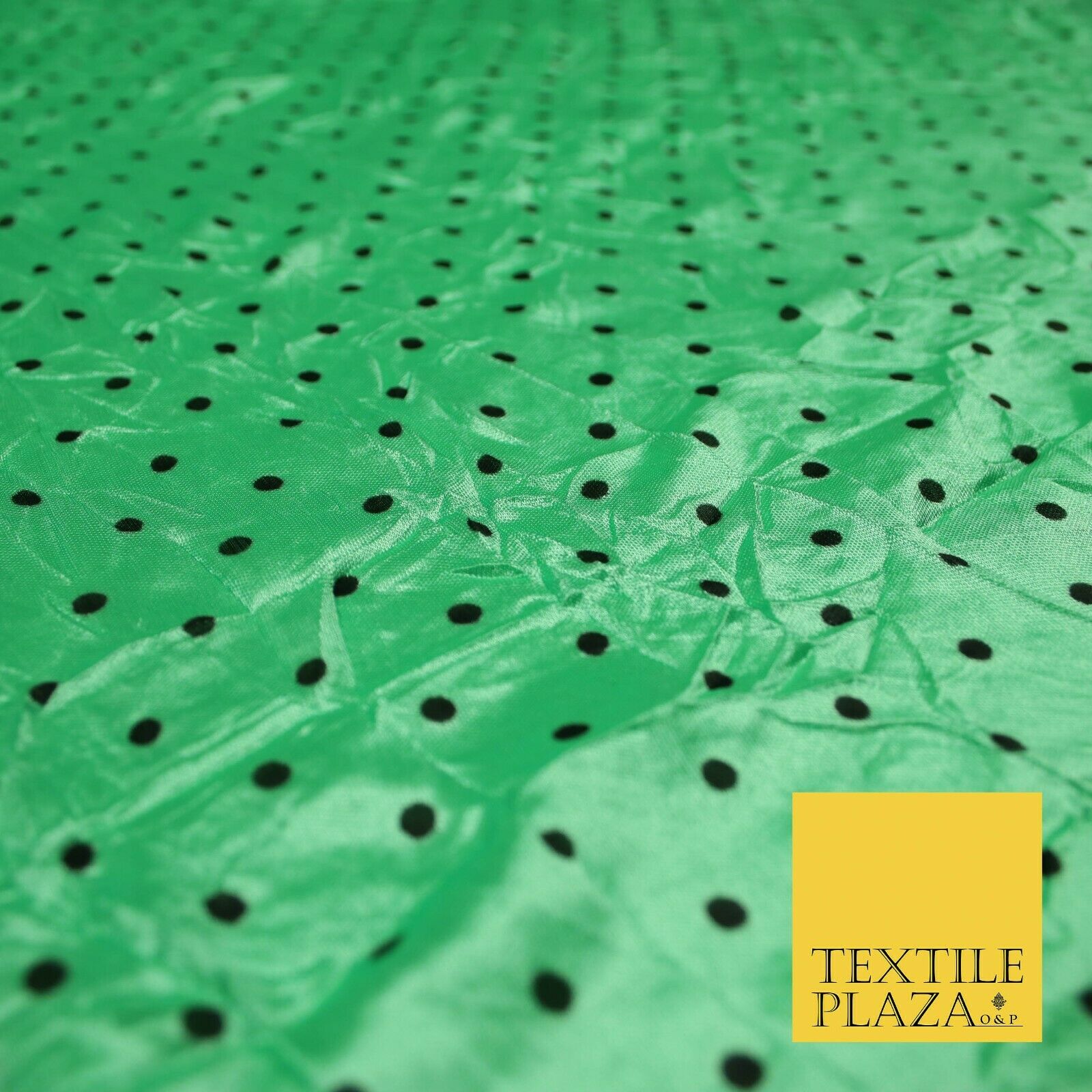 9 COLOURS - Crushed Creased 4mm Spotted Polka Dot Polyester Stretch Satin Fabric