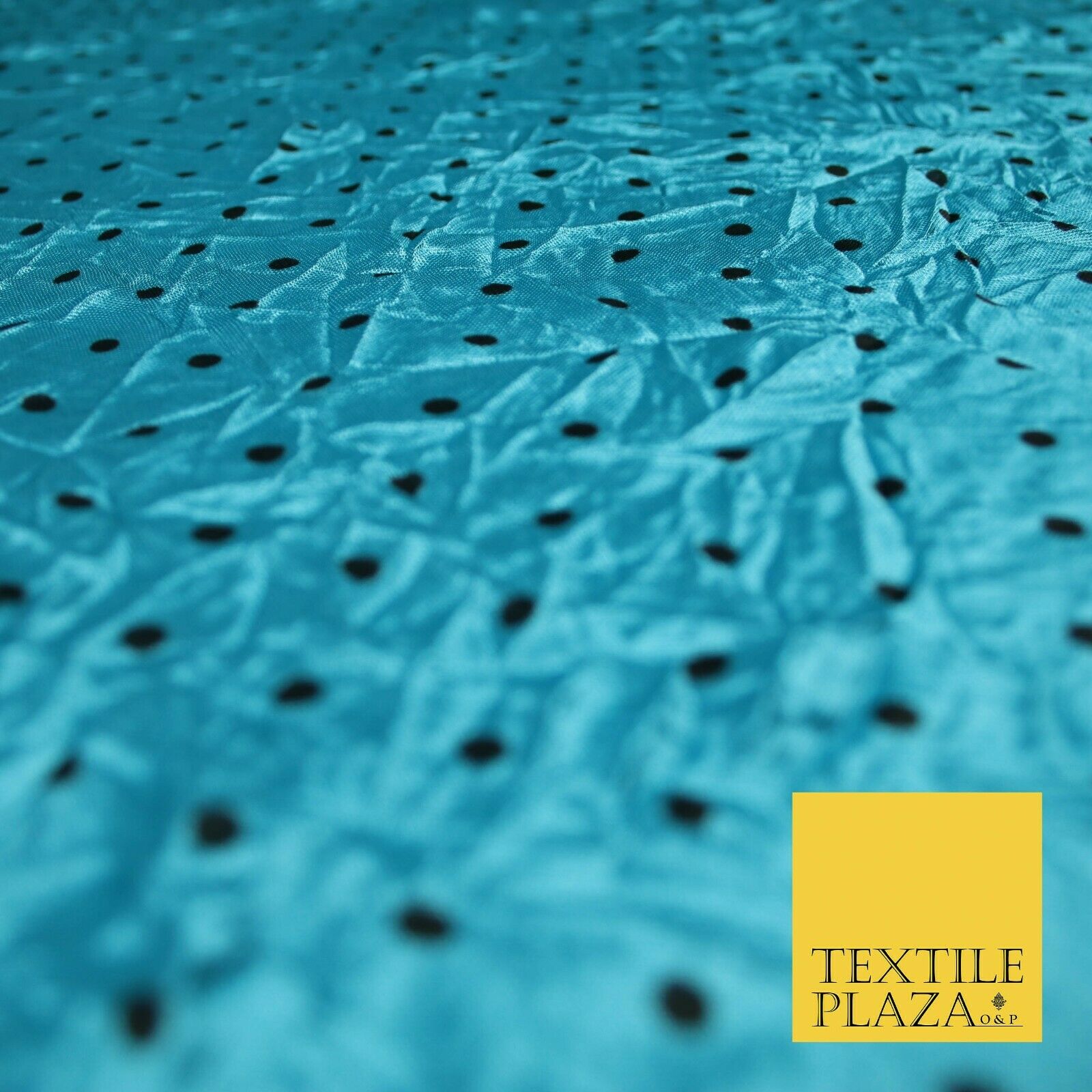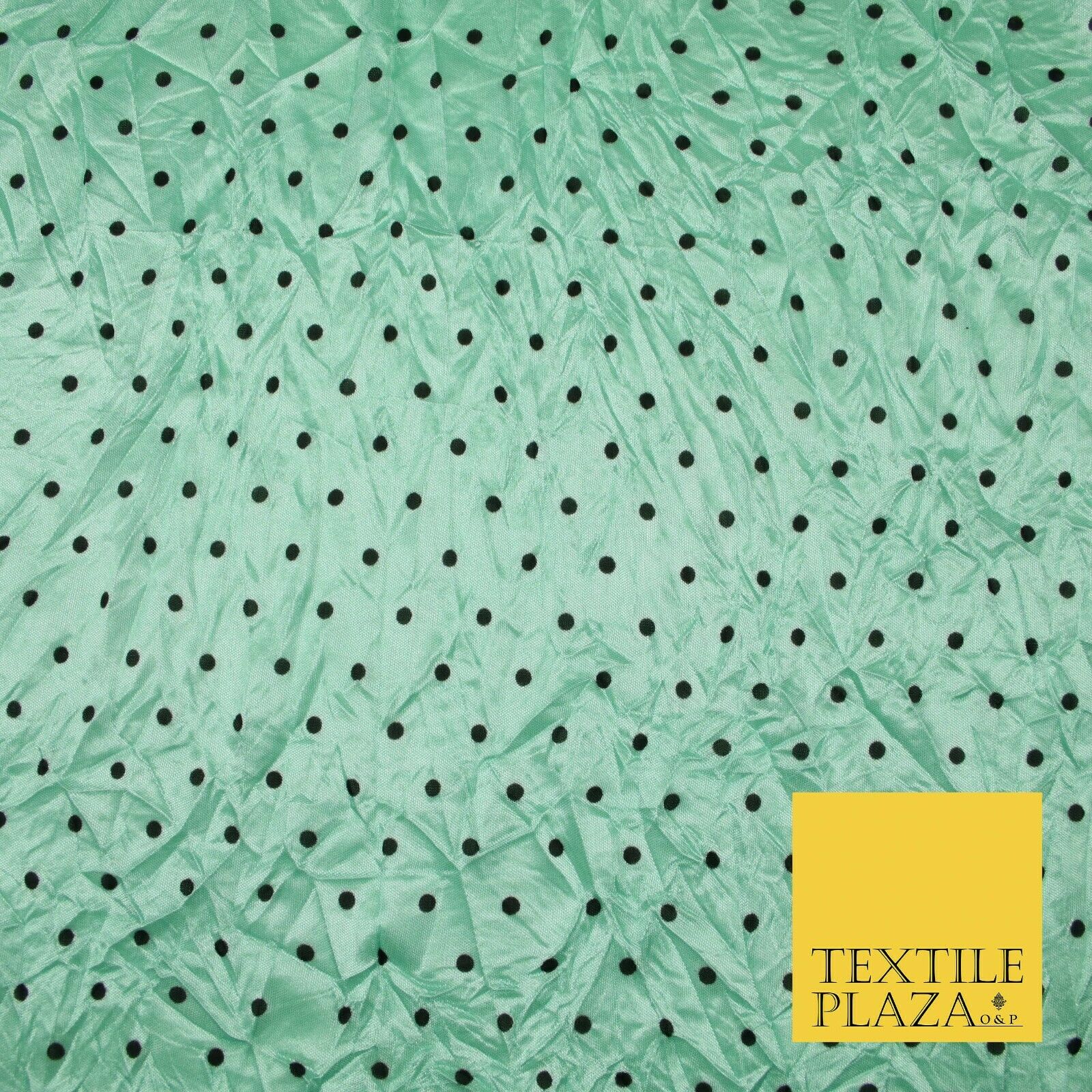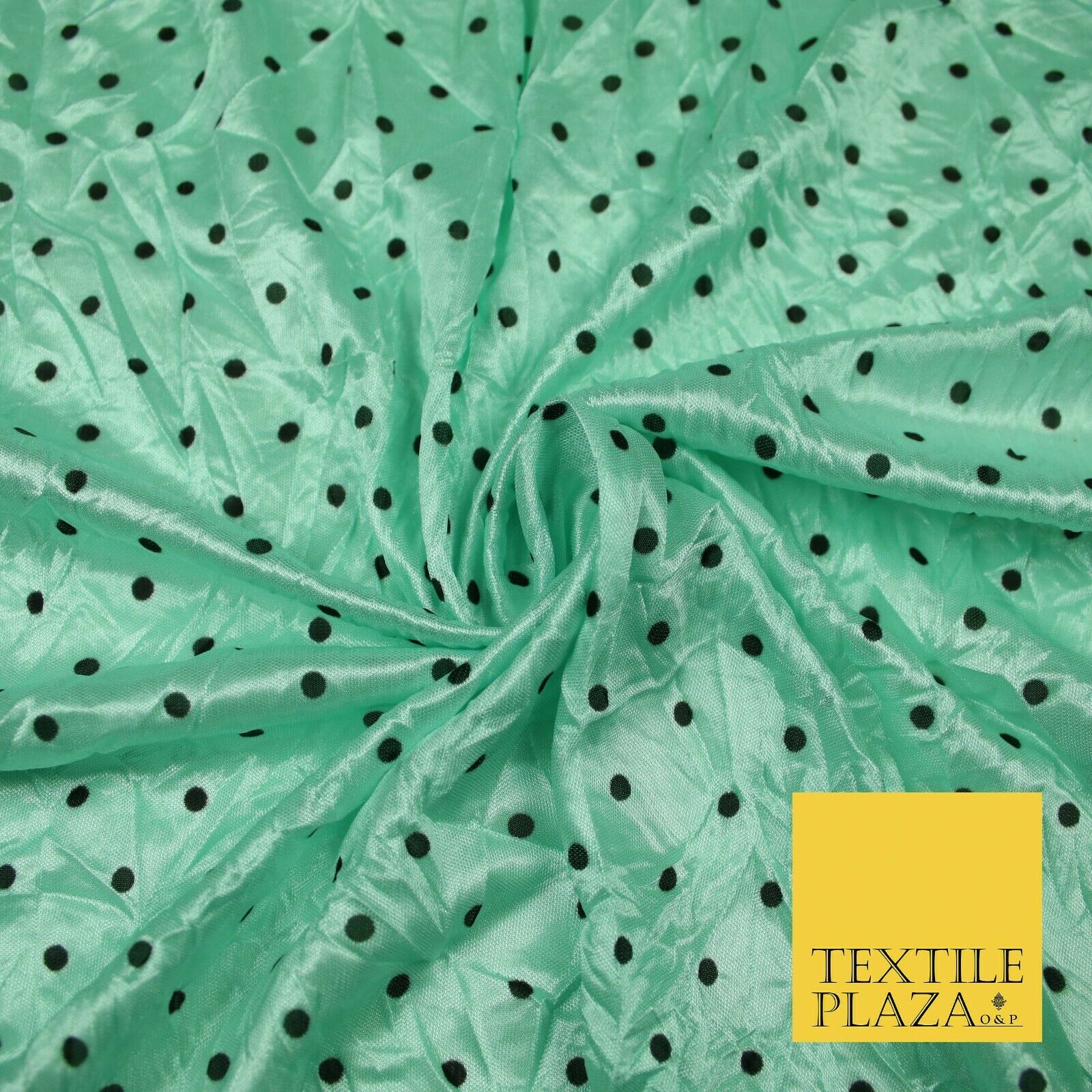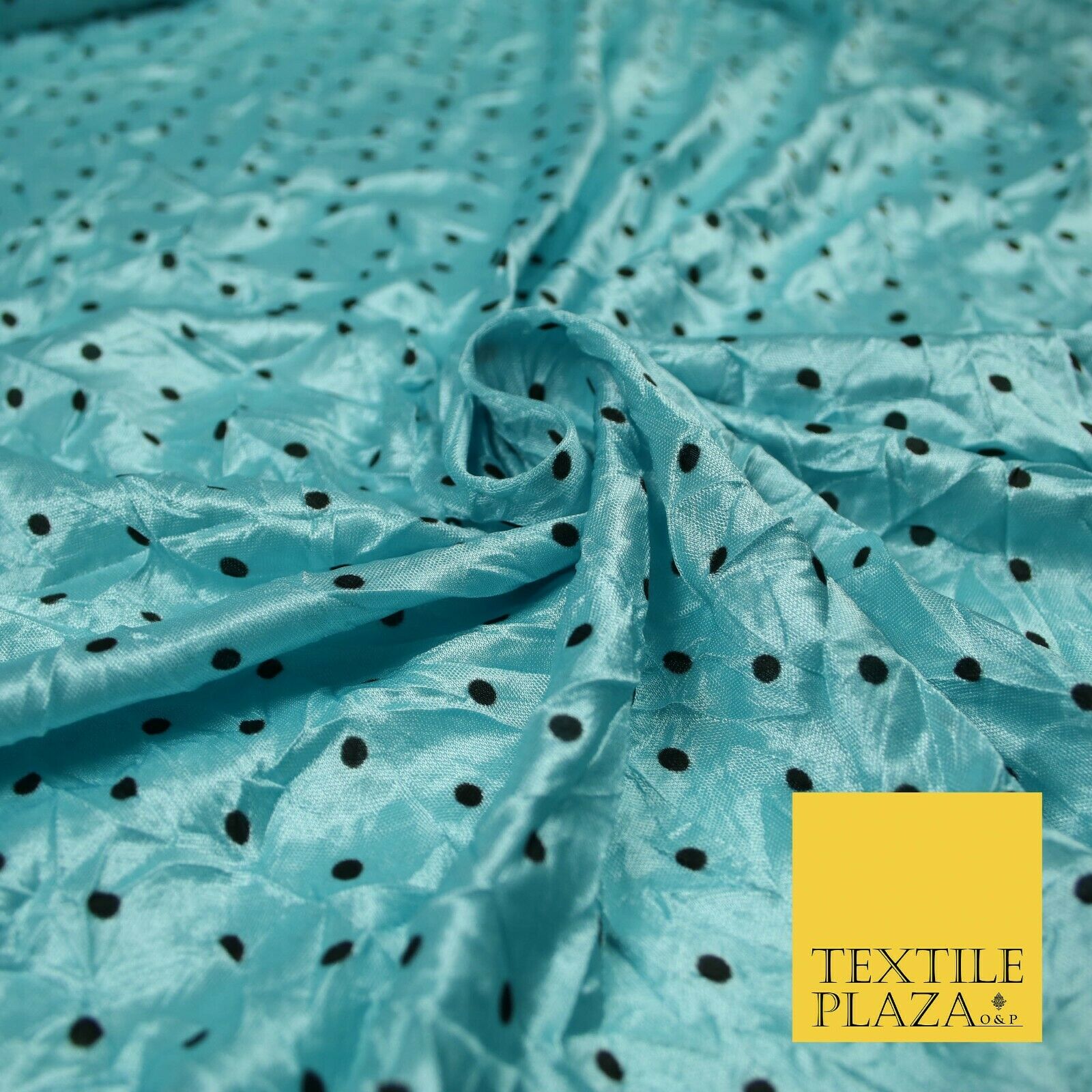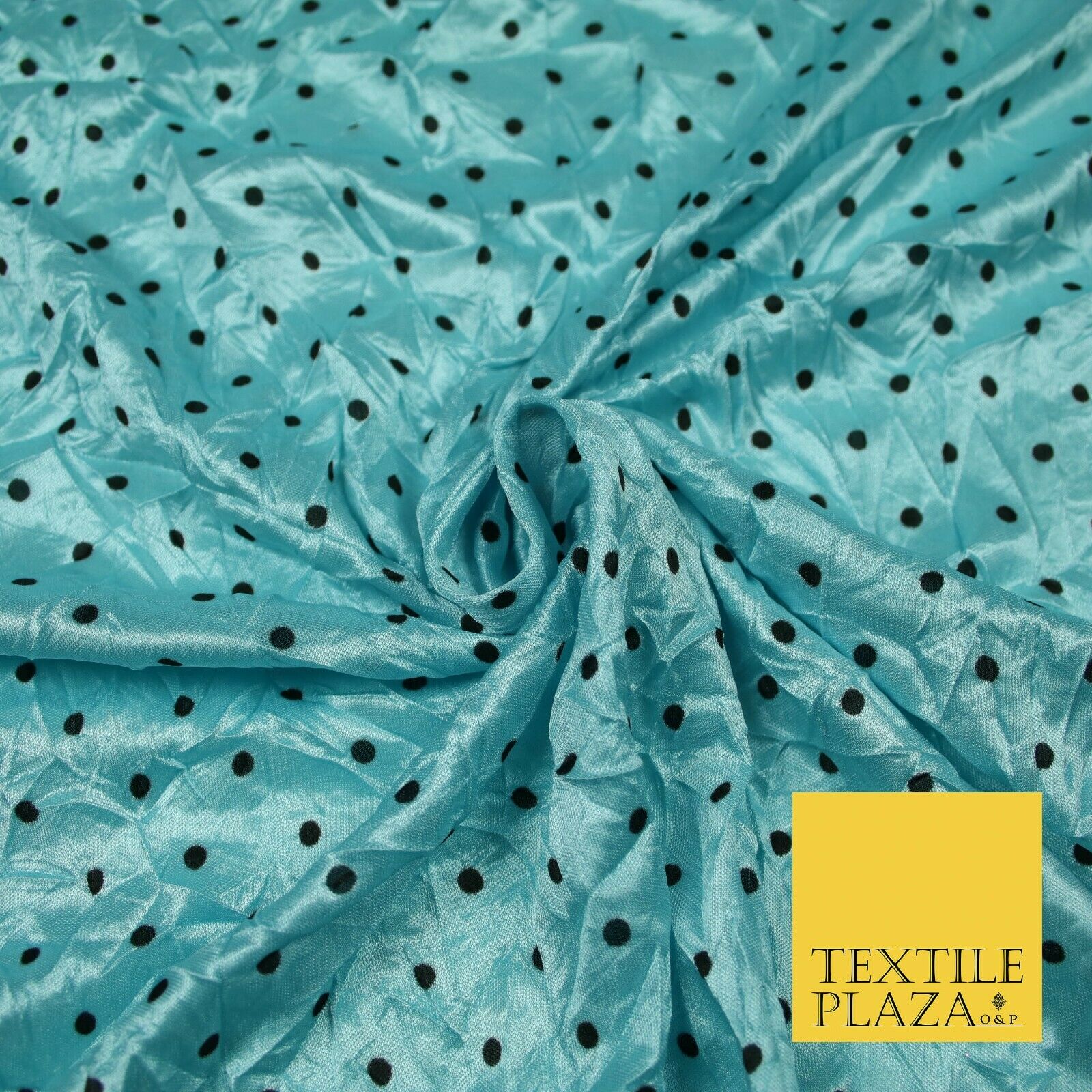 9 COLOURS - Crushed Creased 4mm Spotted Polka Dot Polyester Stretch Satin Fabric