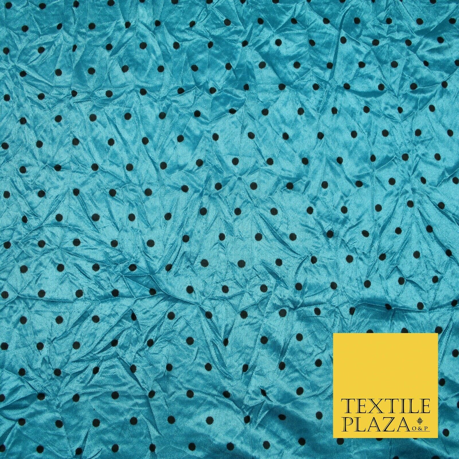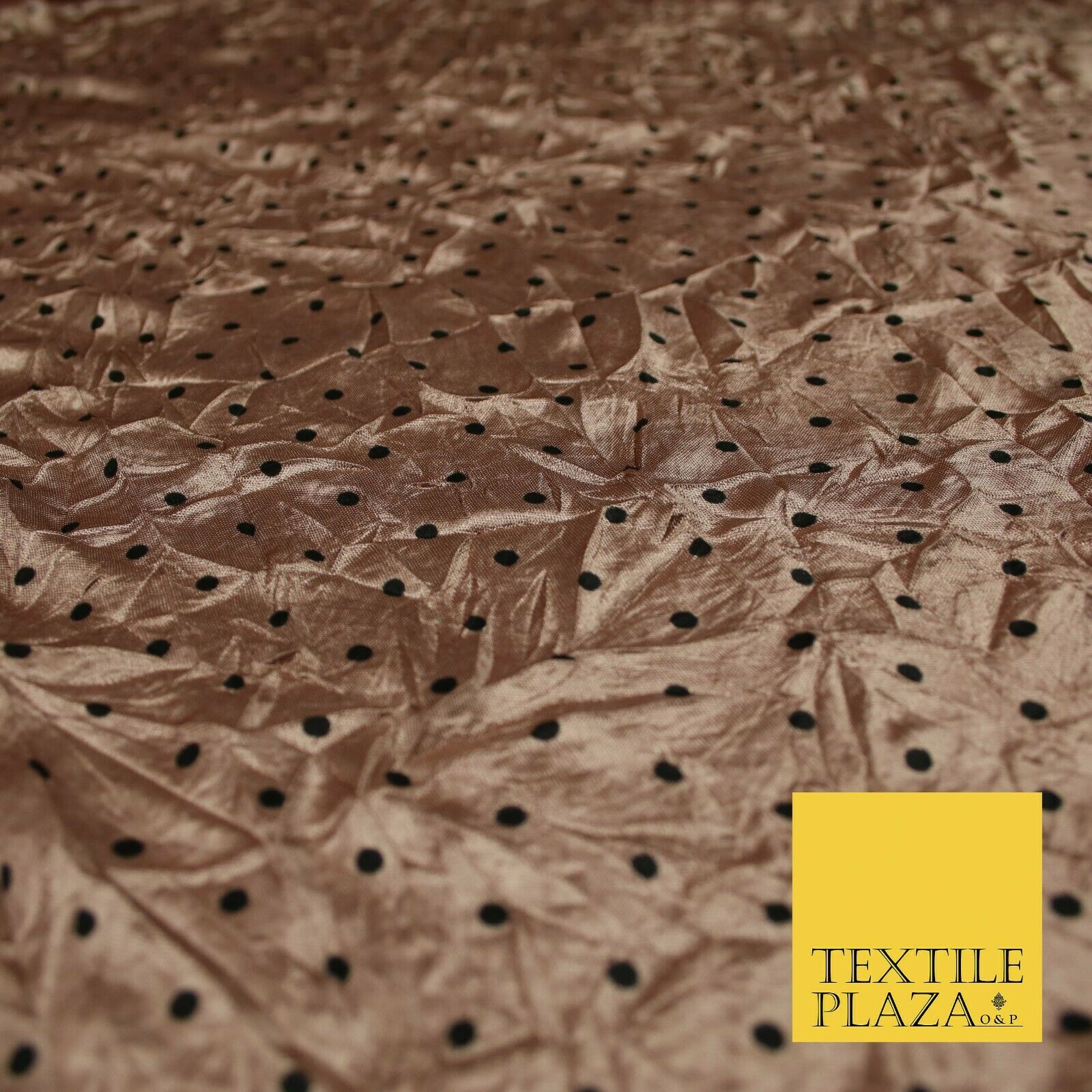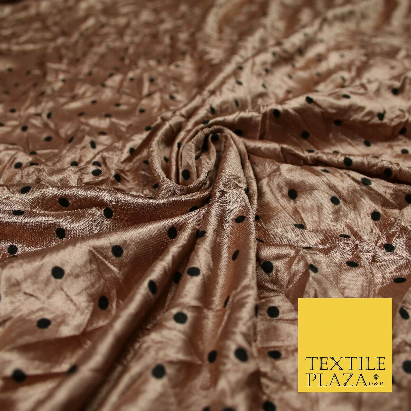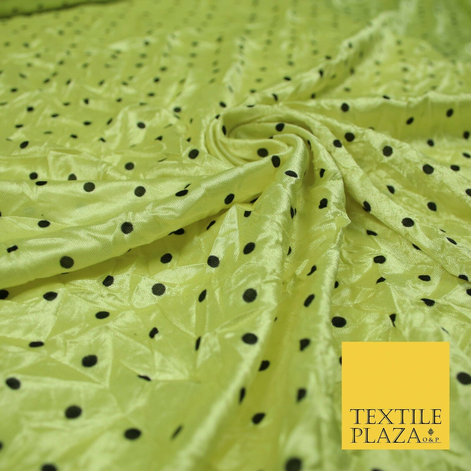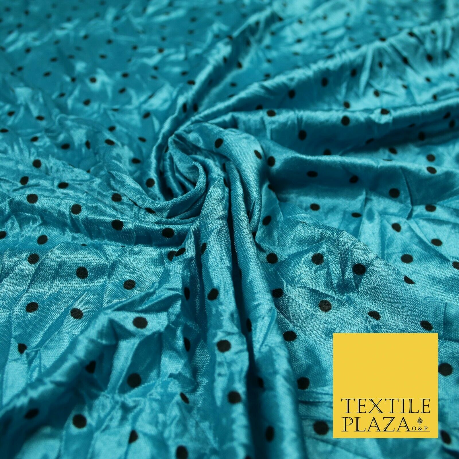 9 COLOURS - Crushed Creased 4mm Spotted Polka Dot Polyester Stretch Satin Fabric