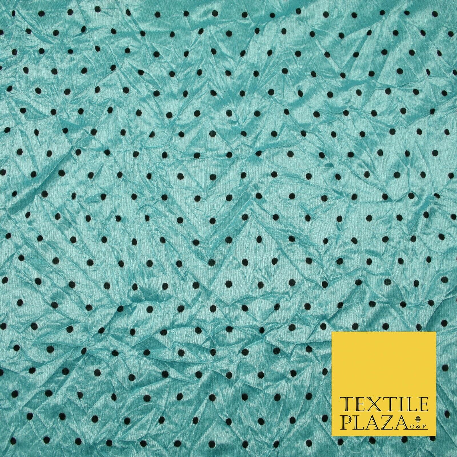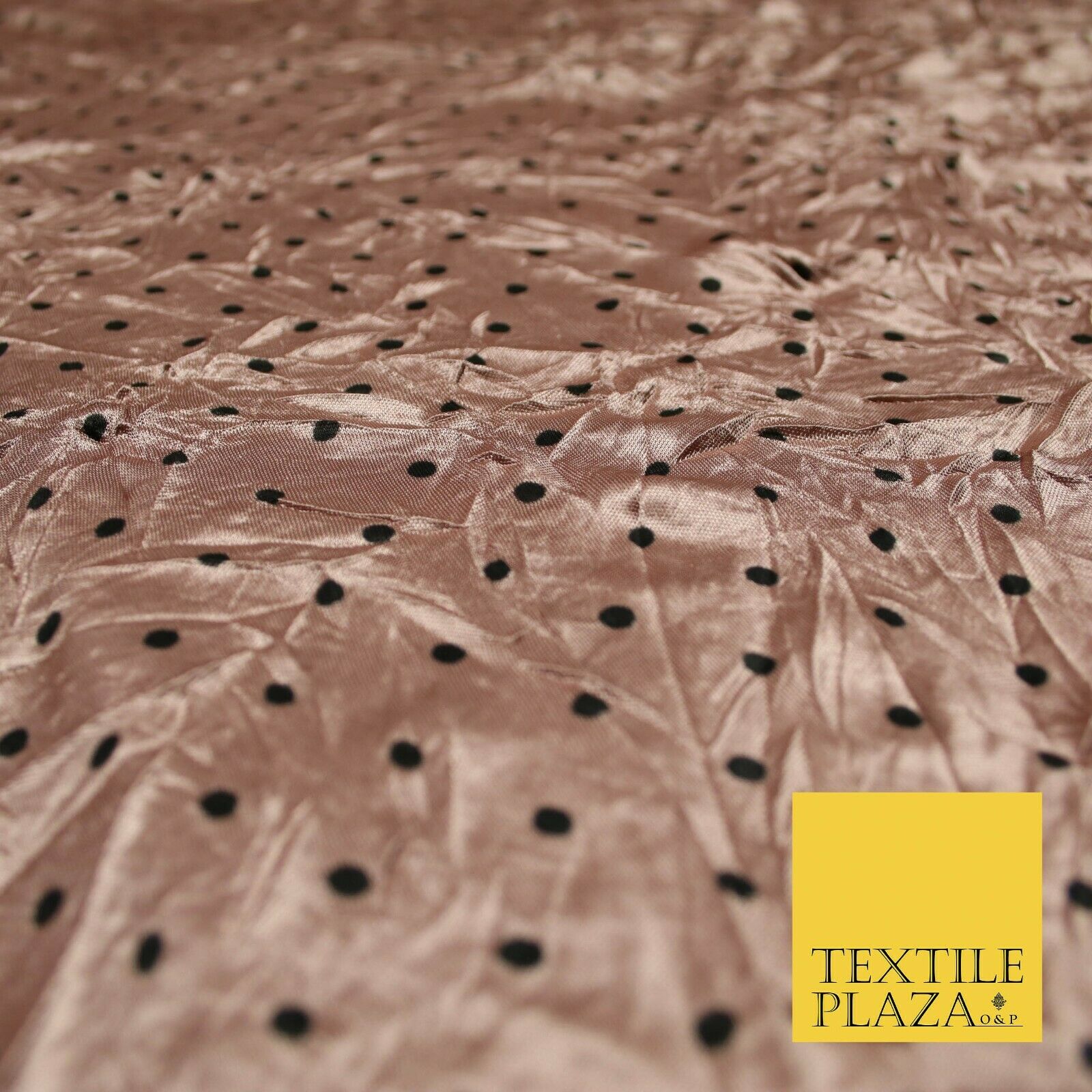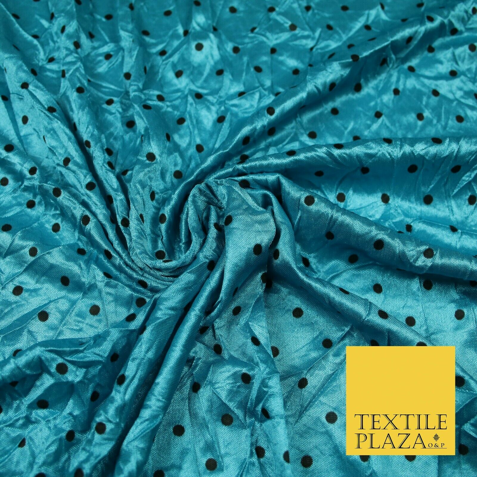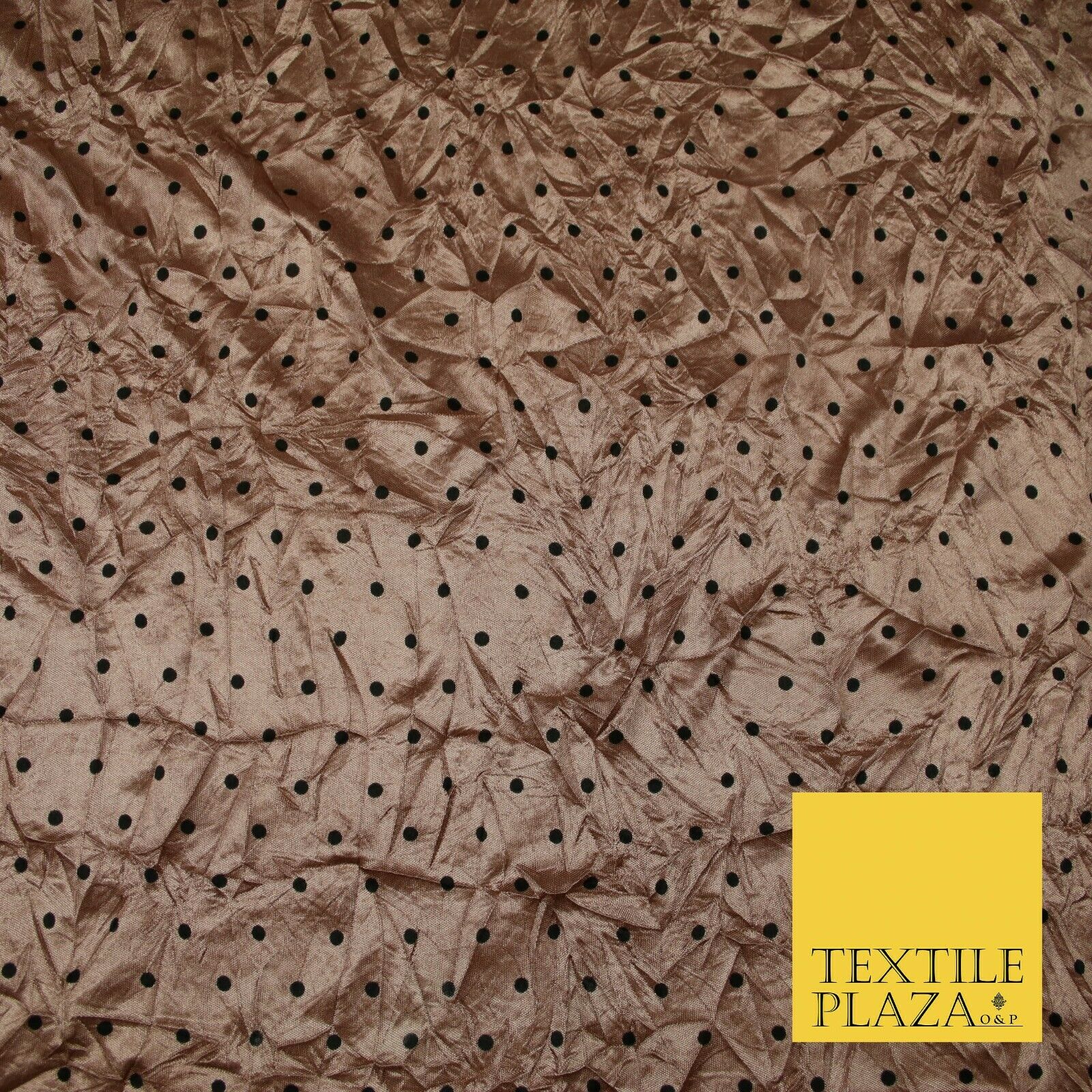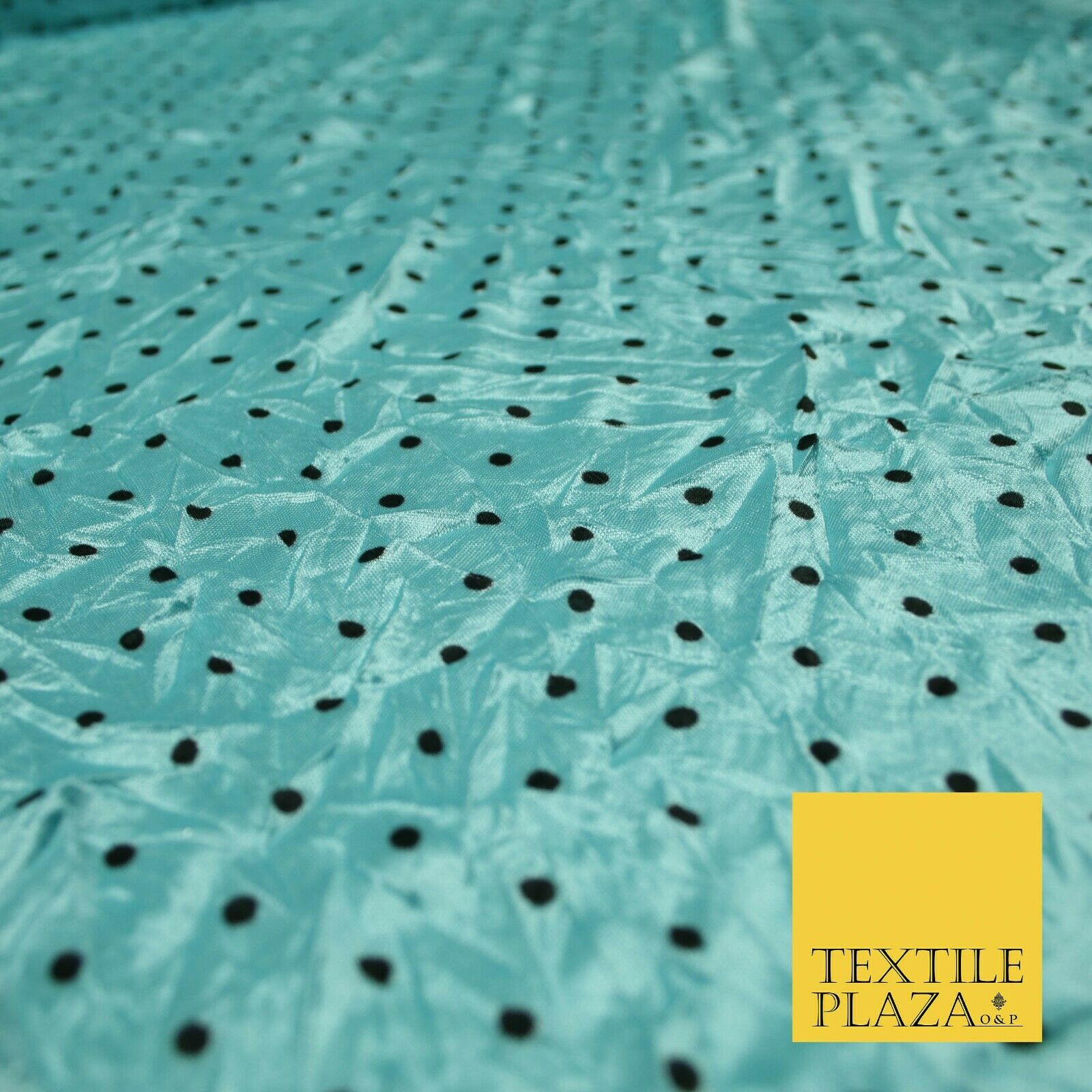 9 COLOURS - Crushed Creased 4mm Spotted Polka Dot Polyester Stretch Satin Fabric