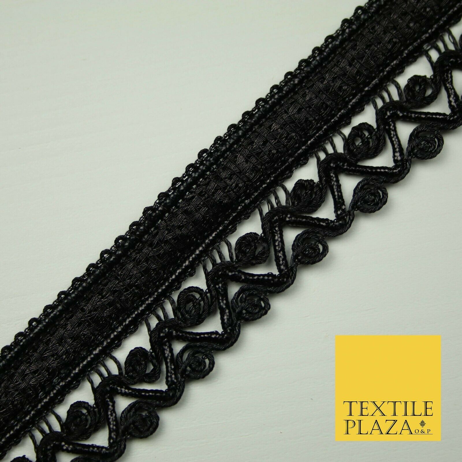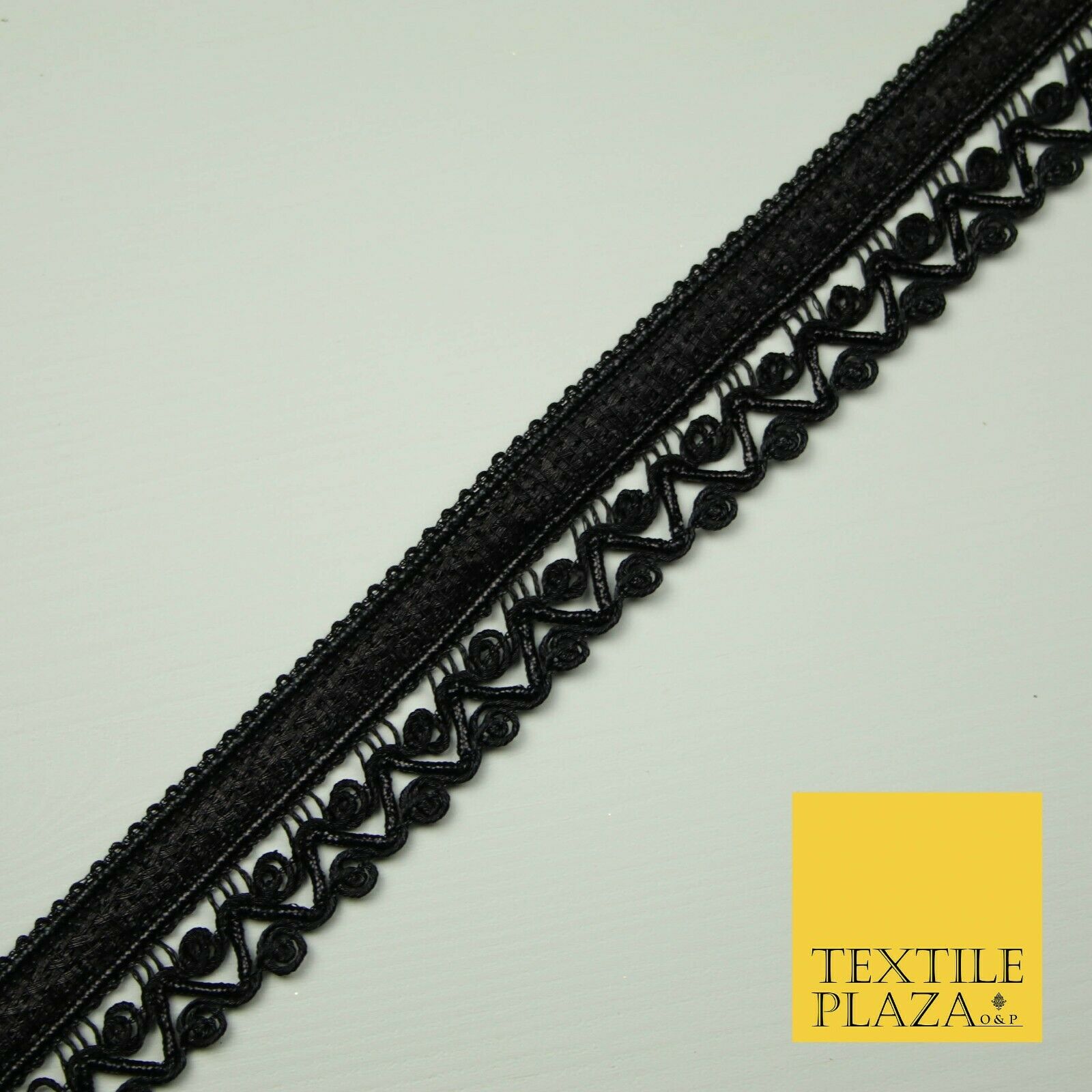 All Black 2.5cm Rope Ribbon Zig Zag Trimming Border Lace Gota Sewing Trim X401