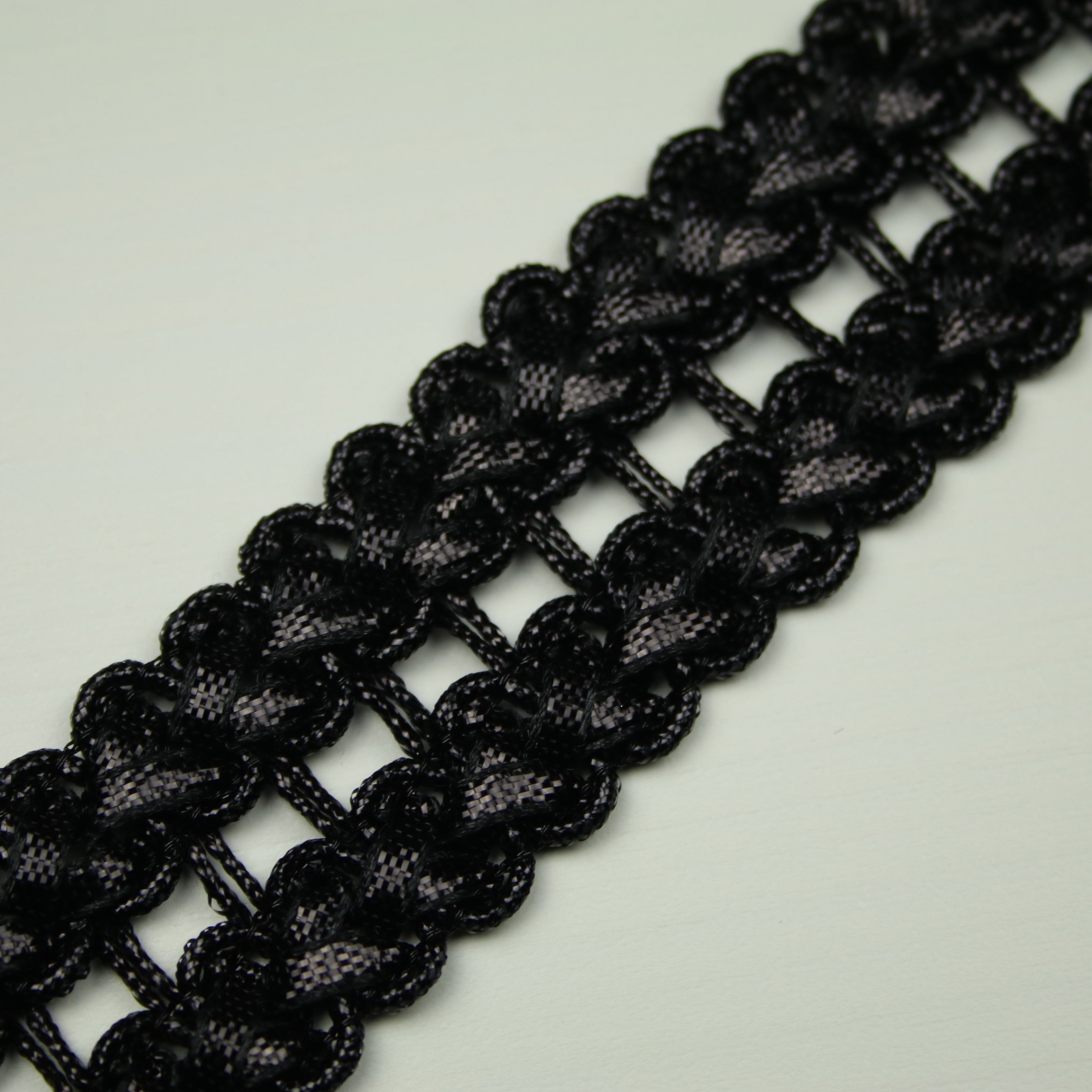 All Black Double Chevron Gloss Ribbon Braid Trimming Border Gota Trim X405