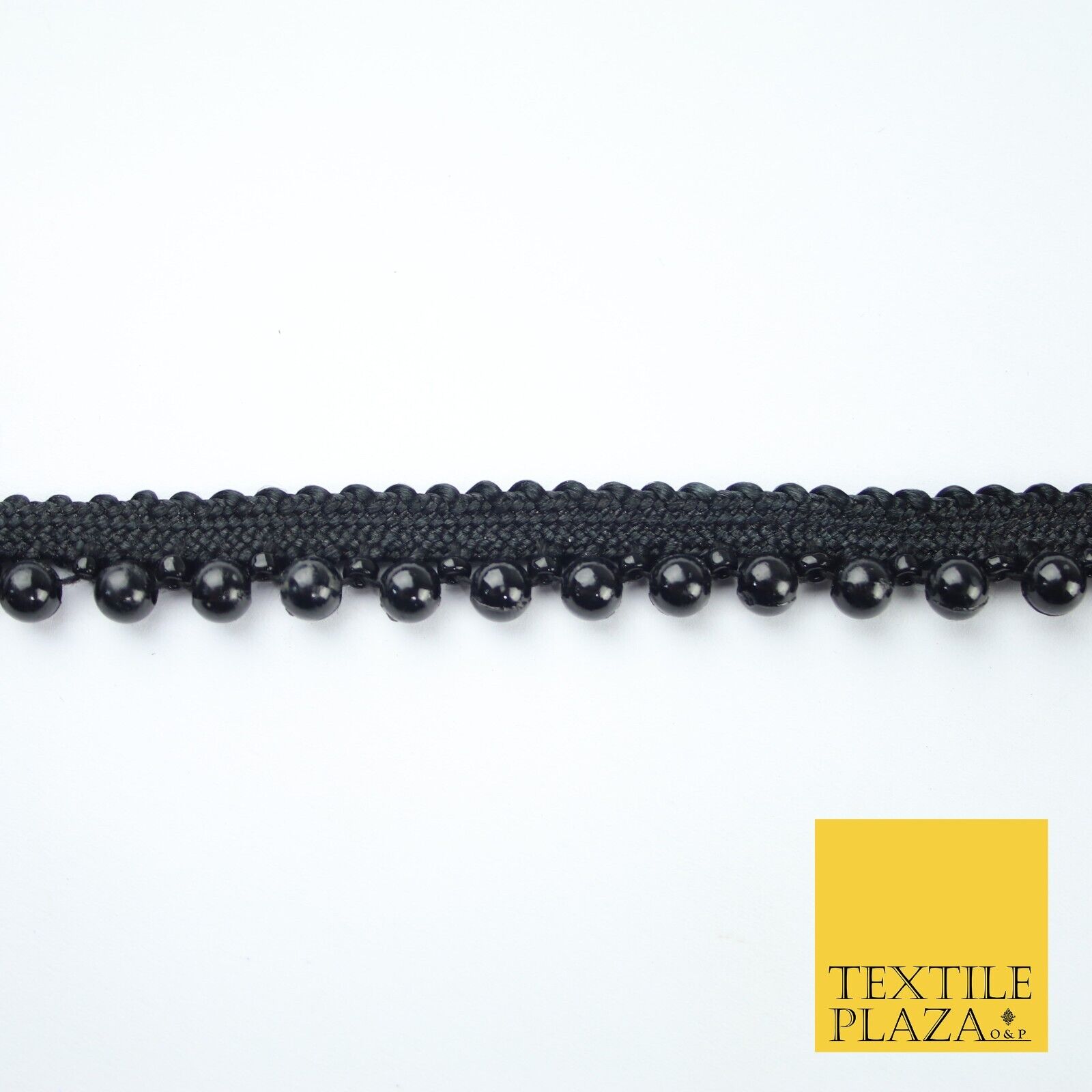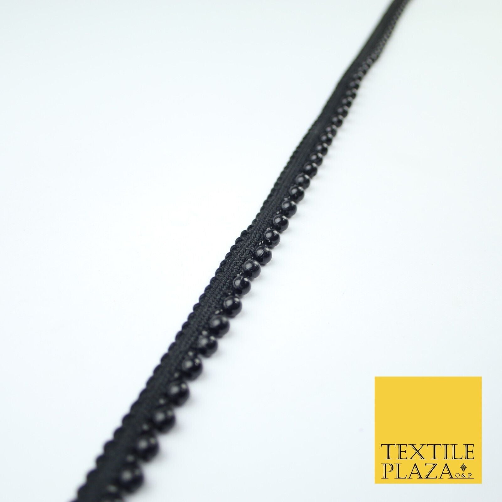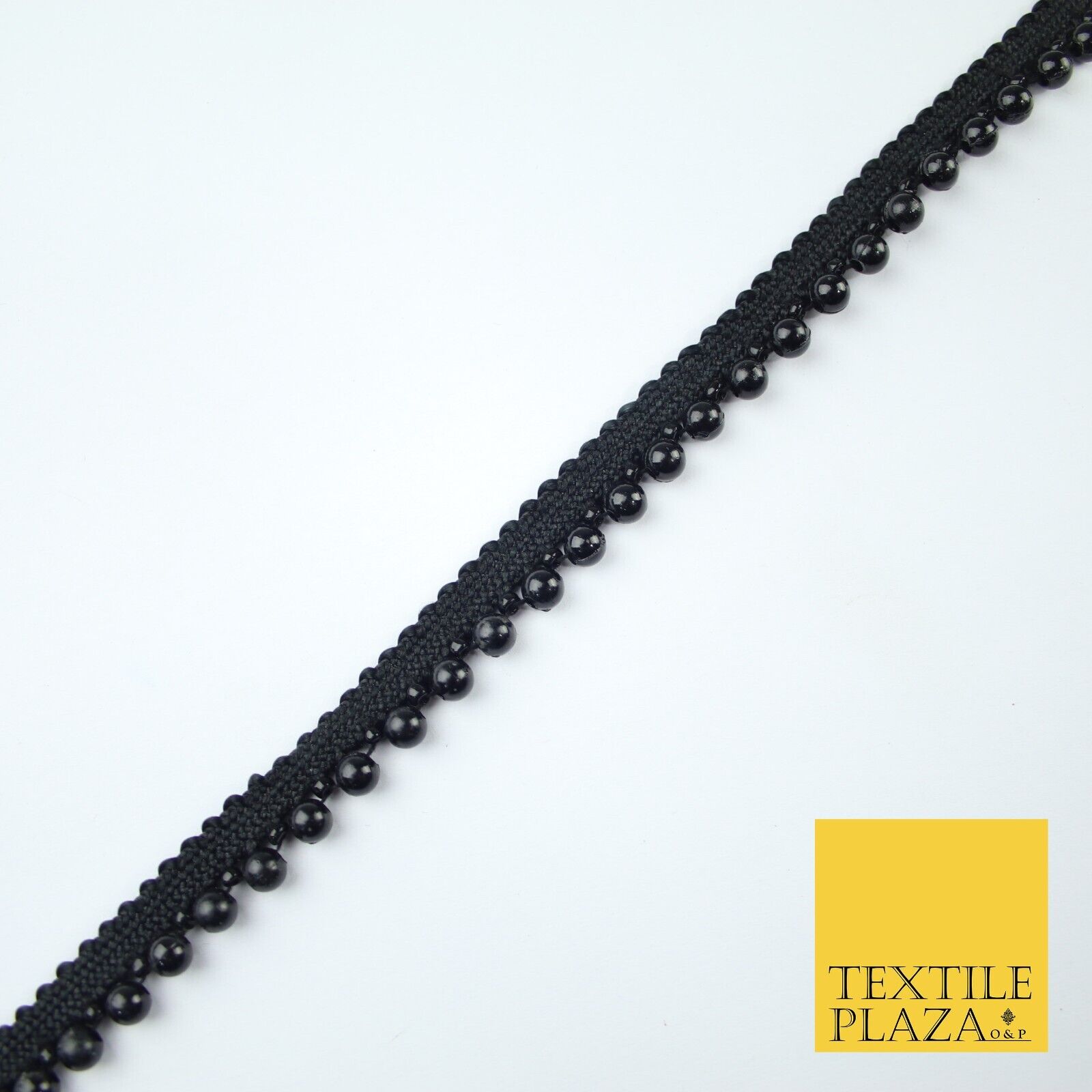 All Black Mini Pearl Beaded Ribbon Trim Border Indian Lace - 1.3cm Wide - X656
