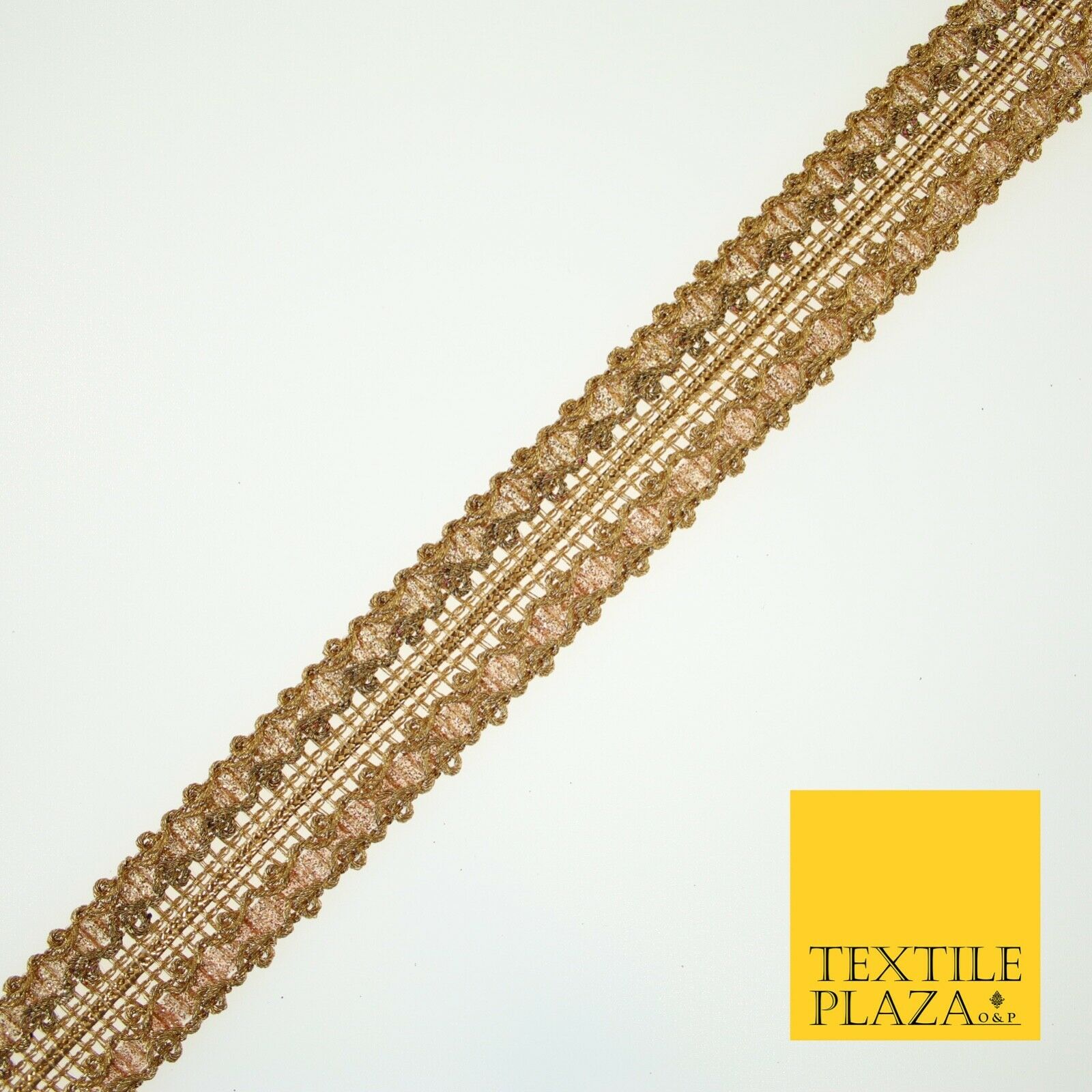 Antique Gold Double Glitter Braid Cord Ribbon Trimming Border Indian Lace X583