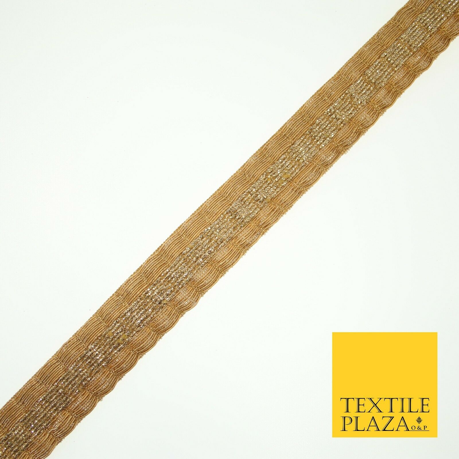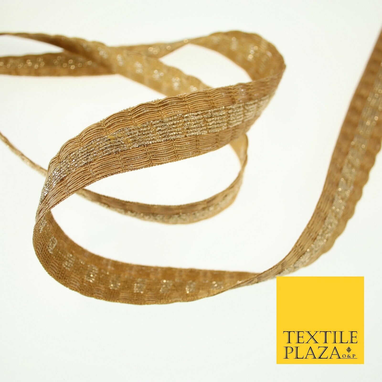Antique Gold Metallic Triple Row Fancy Trim Border Ribbon Lace 2cm Wide X600