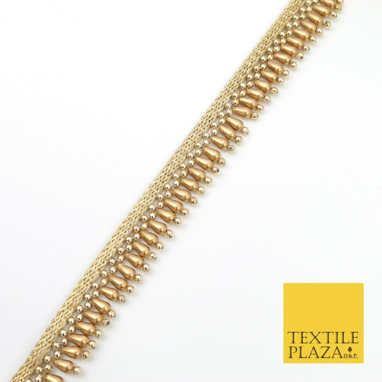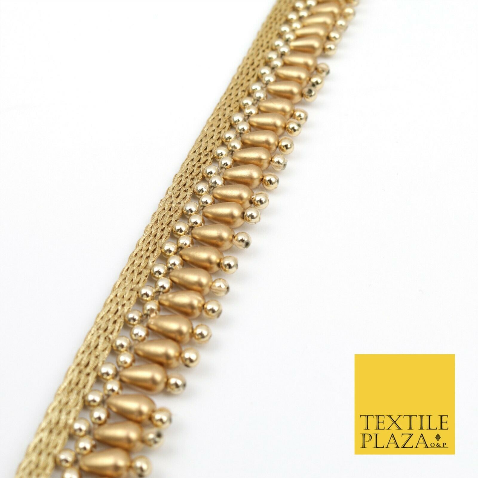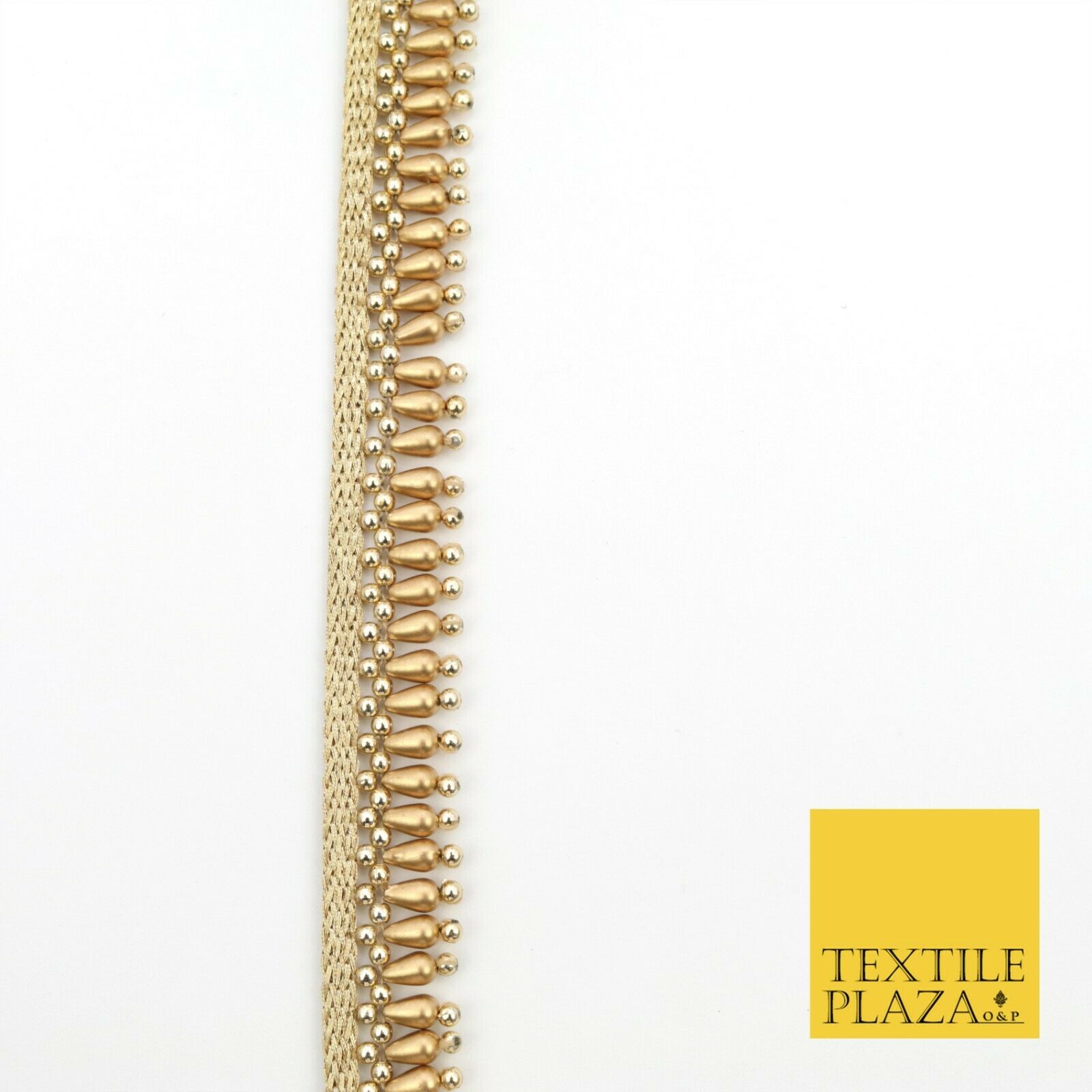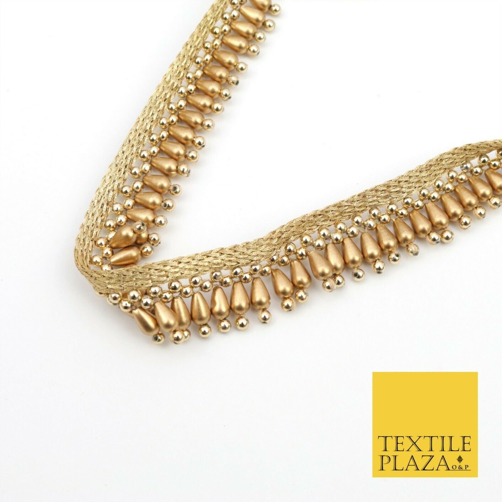 Antique Gold Pearl Teardrop Beaded Ribbon Trim Border Indian Ethnic (X185)