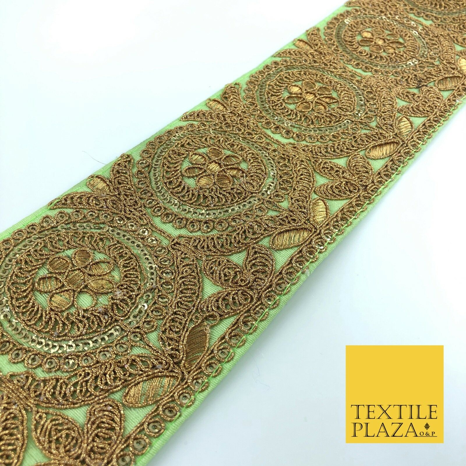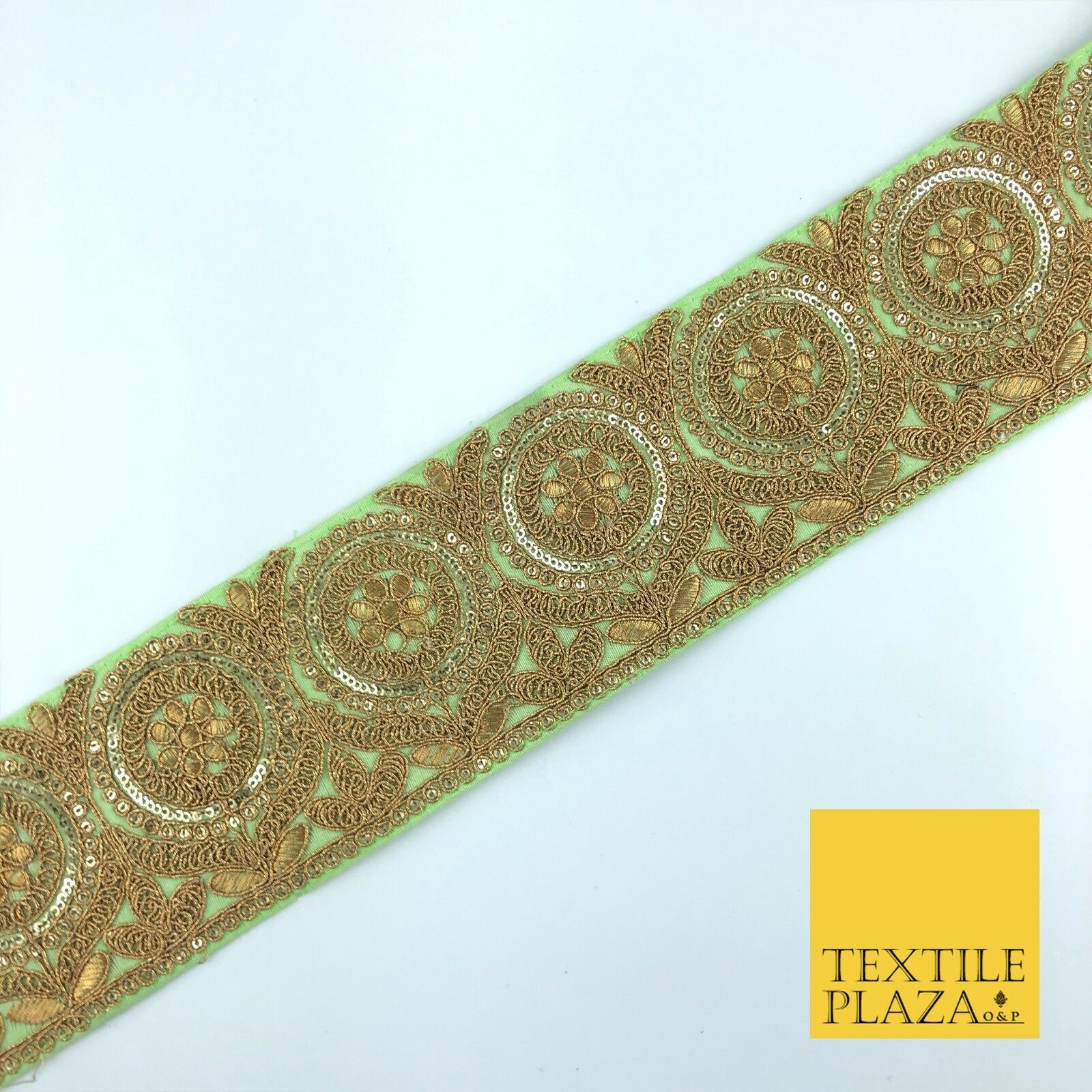 Apple Green Ornate Fancy Flower Zari Sequin Trimming Border Indian Ethnic (X57)