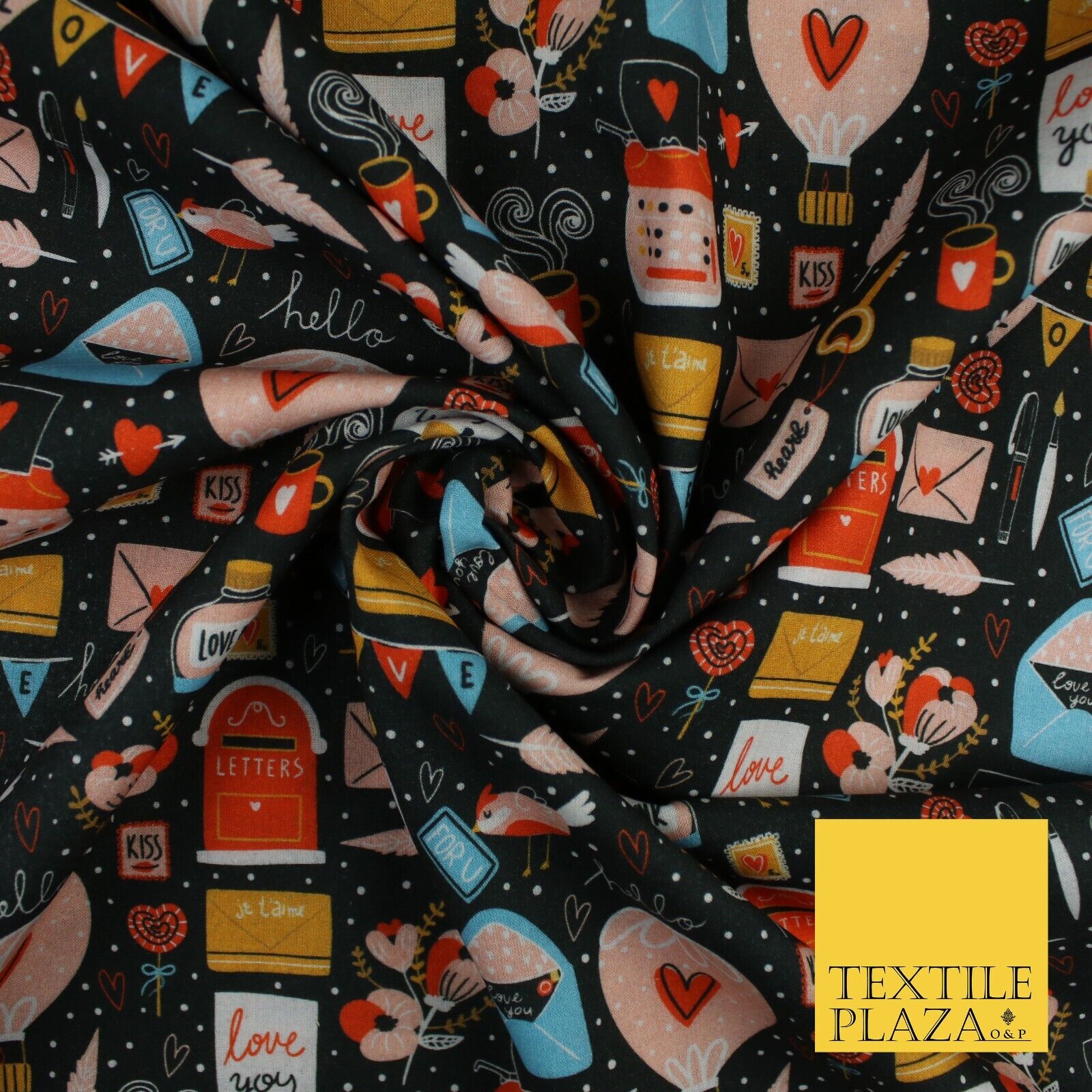 Artsy Love Messages Valentines Anniversary 100% Cotton Printed Fabric 58" 10207