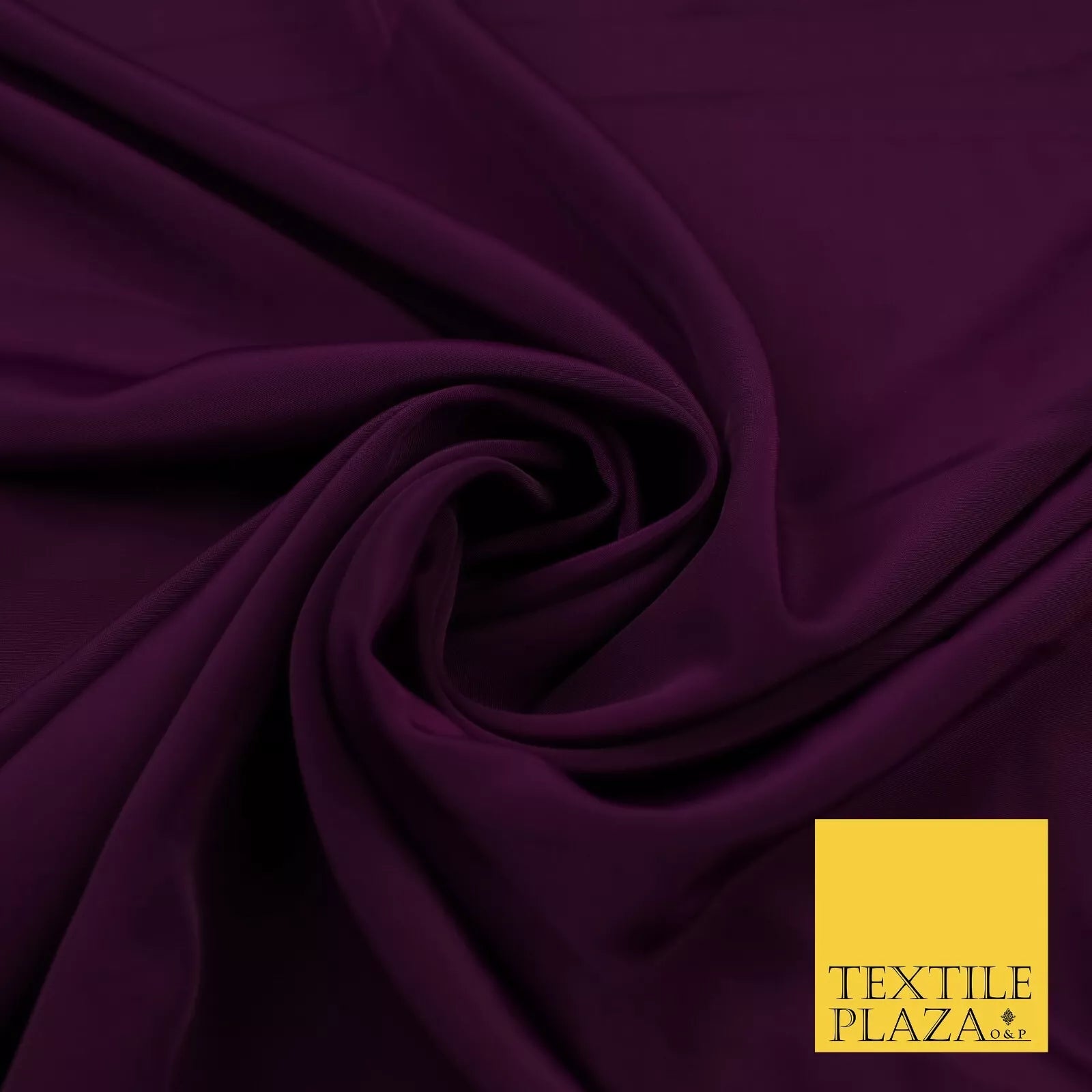 AUBERGINE PURPLE Plain Dyed Silky French Crepe de Chine Fabric Material Dress 44" 9040