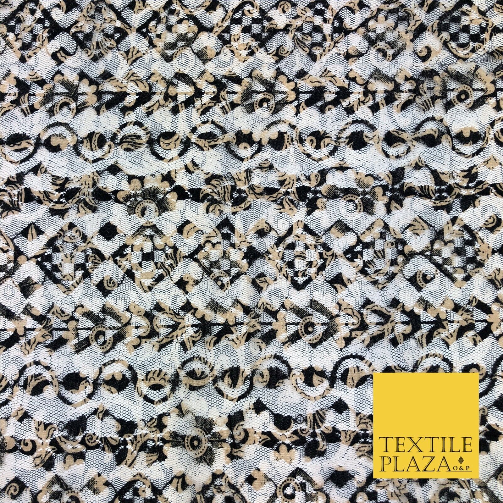 Aztec Geometric Mix Black & Gold Net Lace Fabric Trendy Dress Fashion 45" GE826