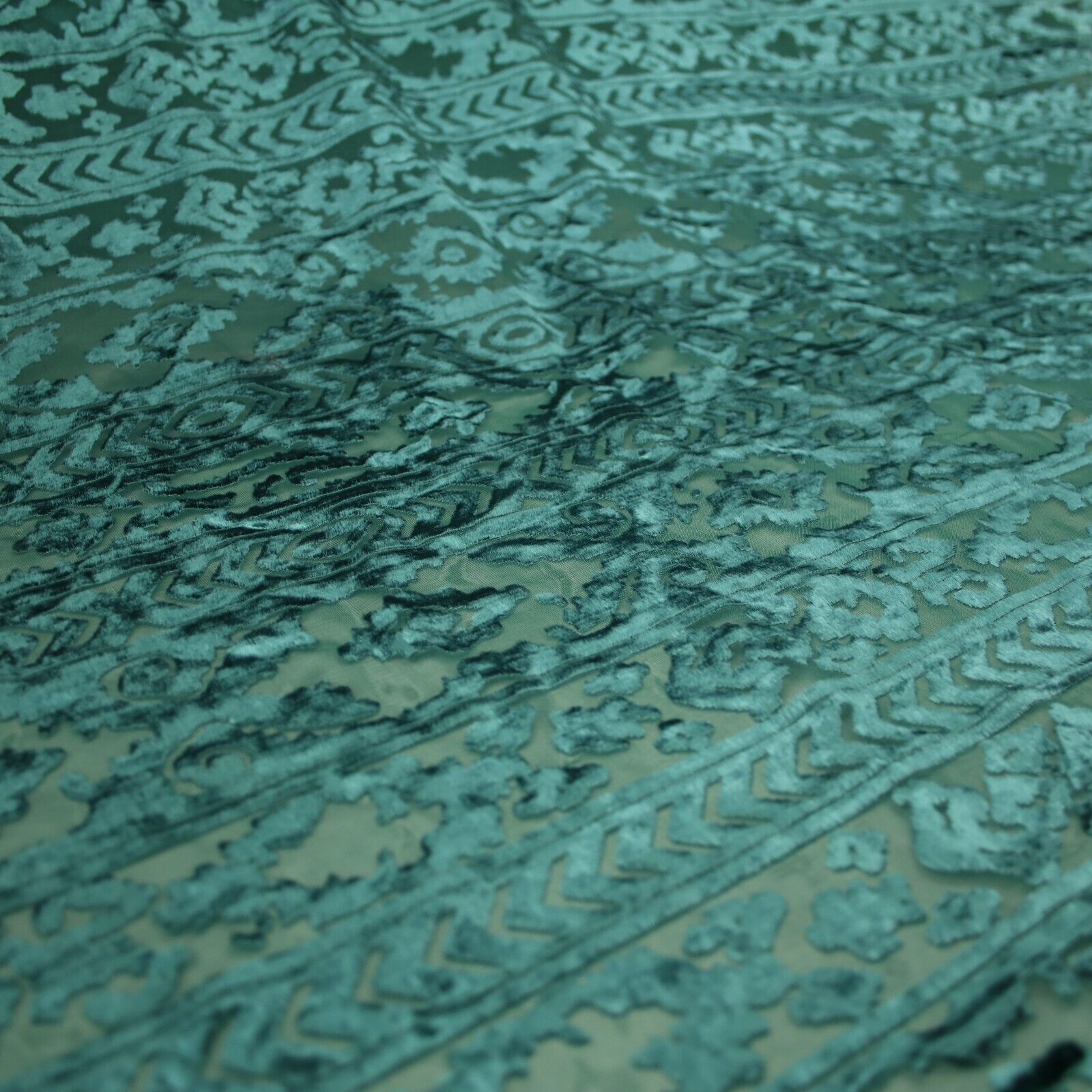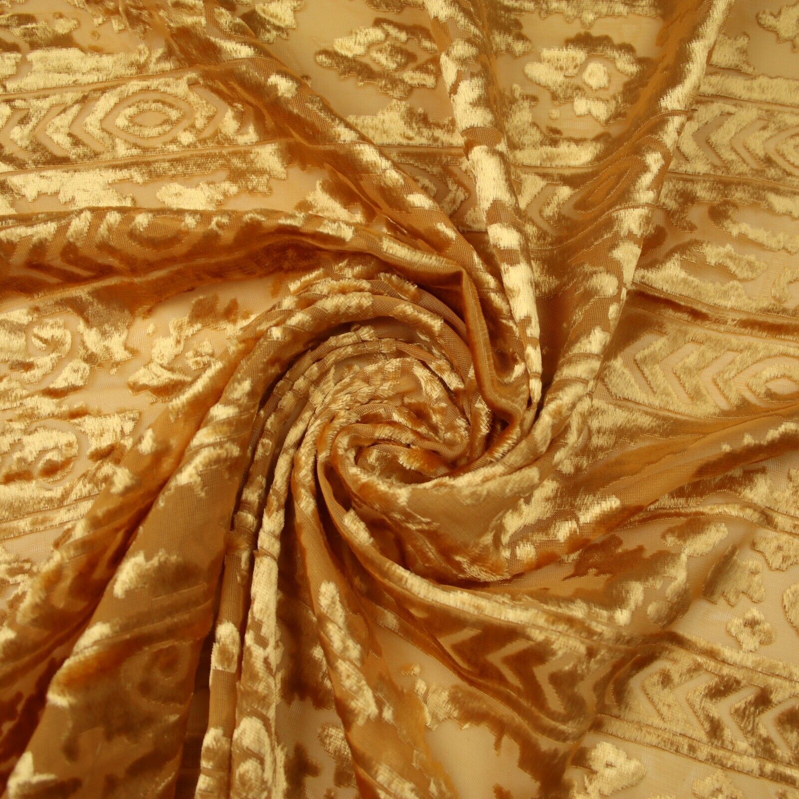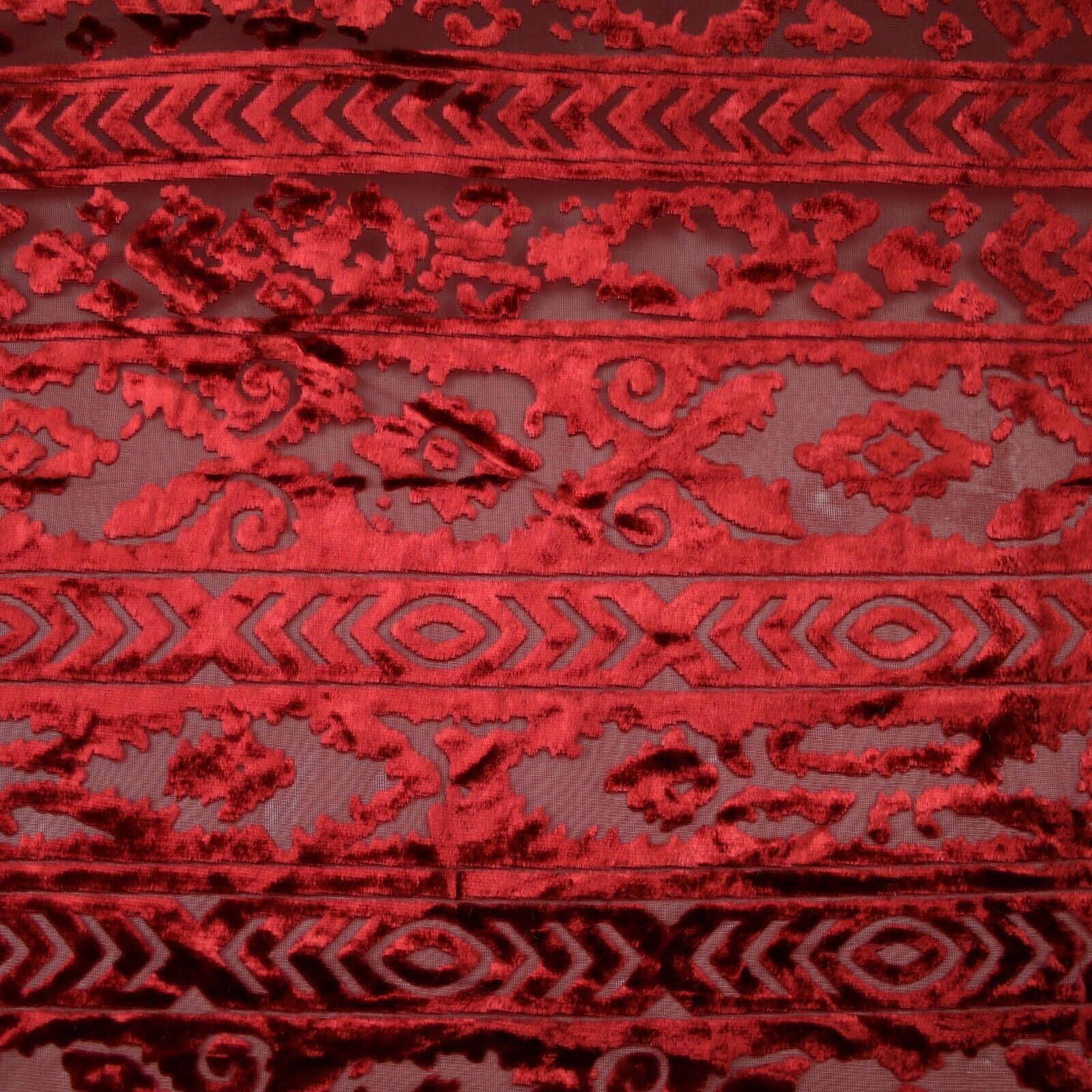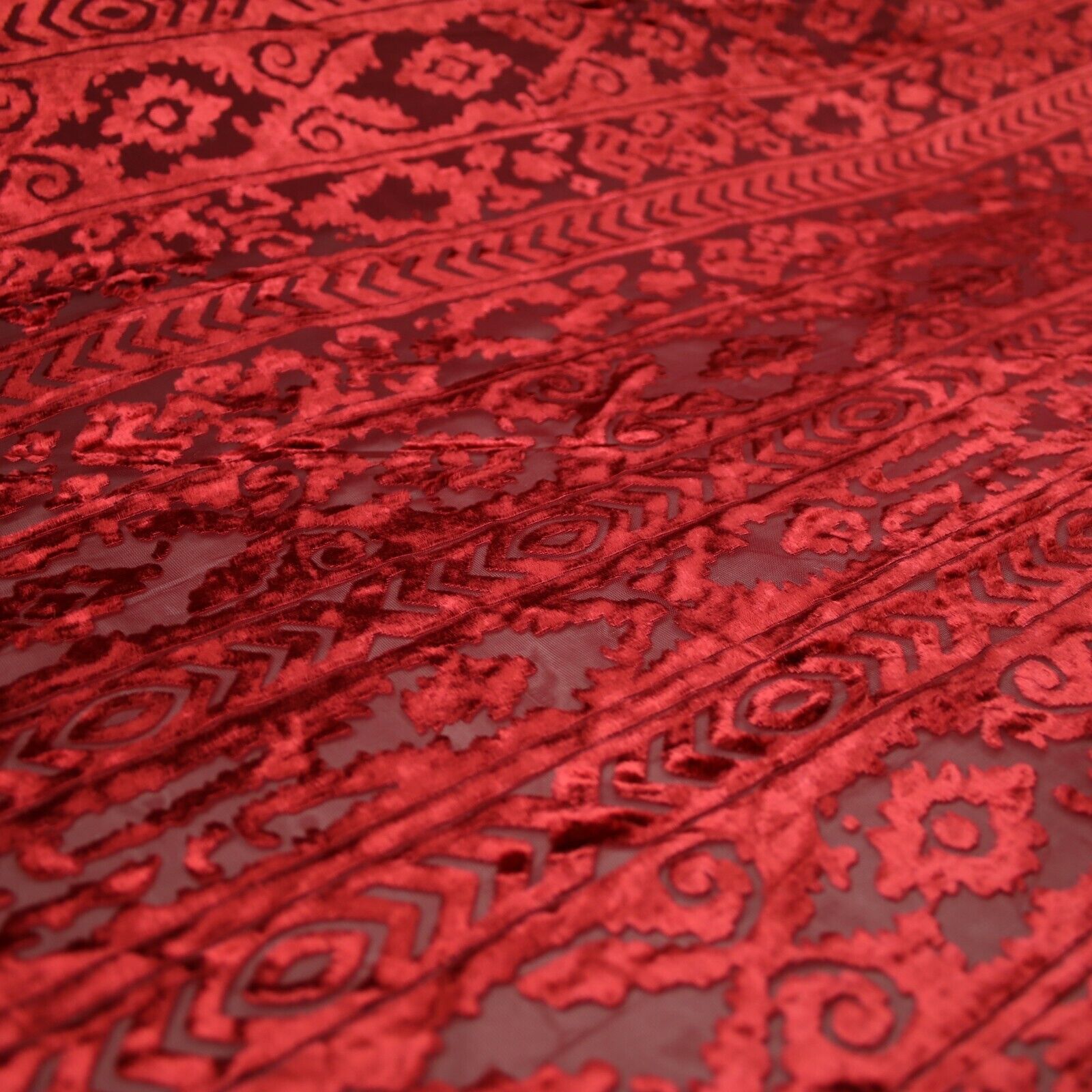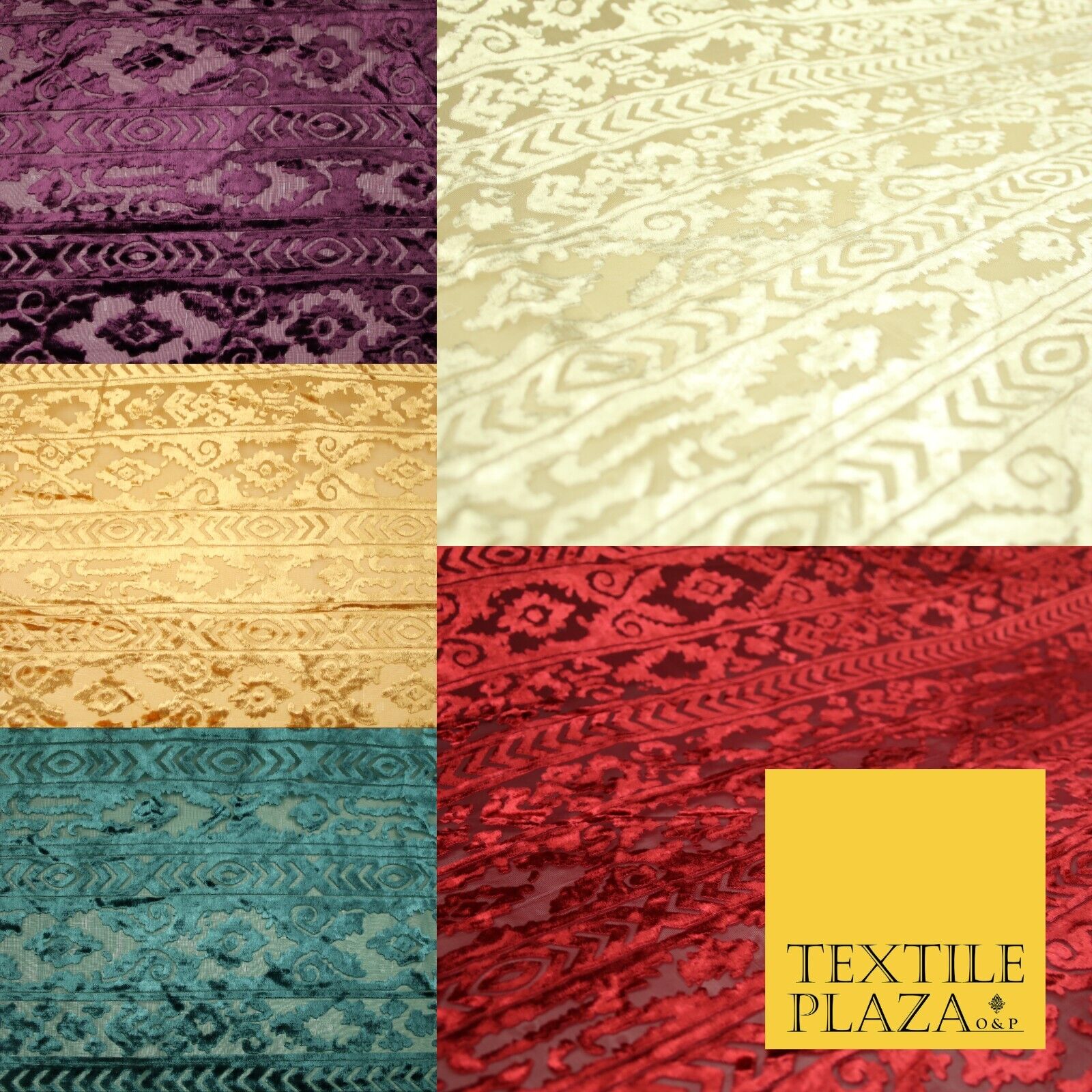 Aztec Tribal Ornate Striped Velvet Burnout Brasso Devore Dress Fabric 5 COLOURS