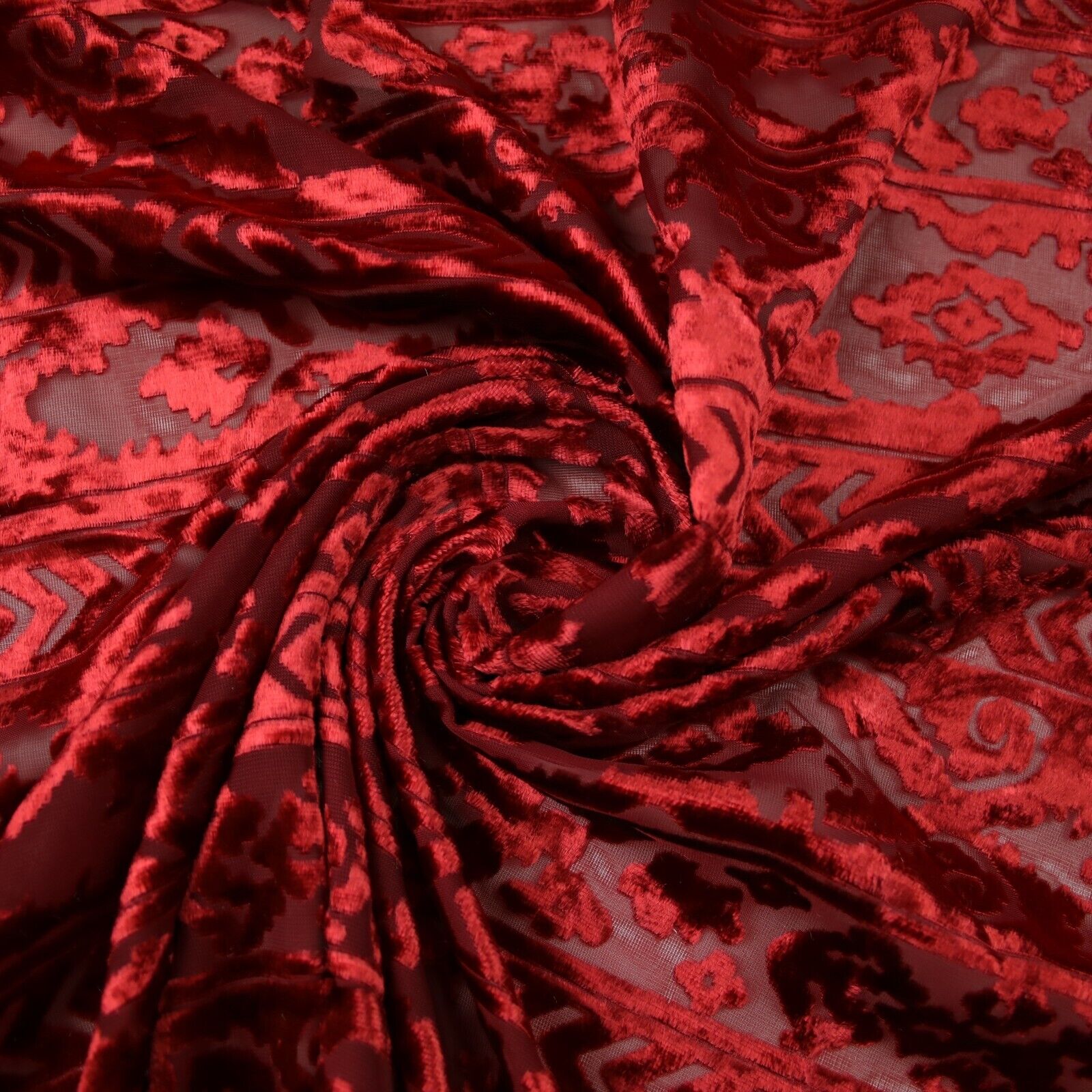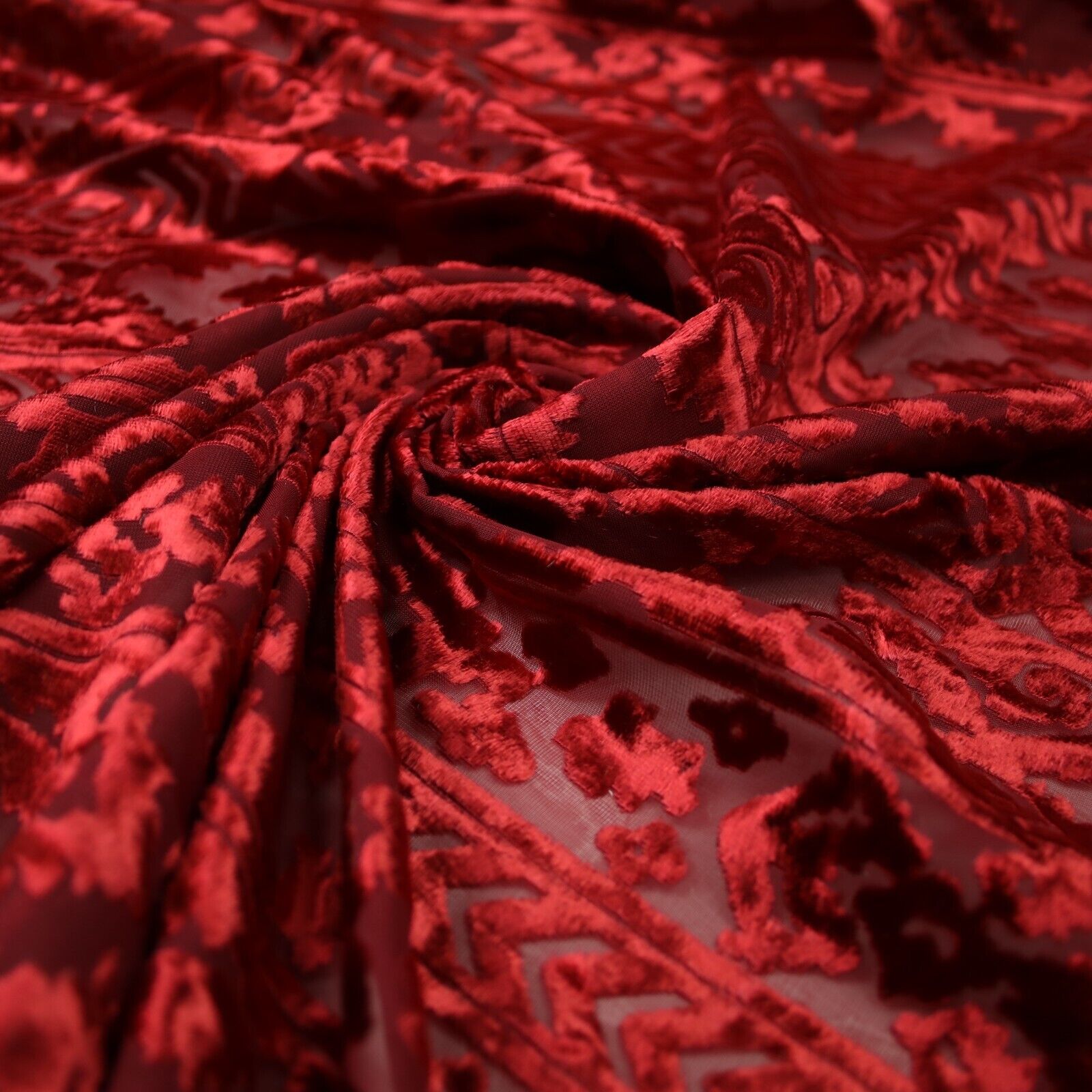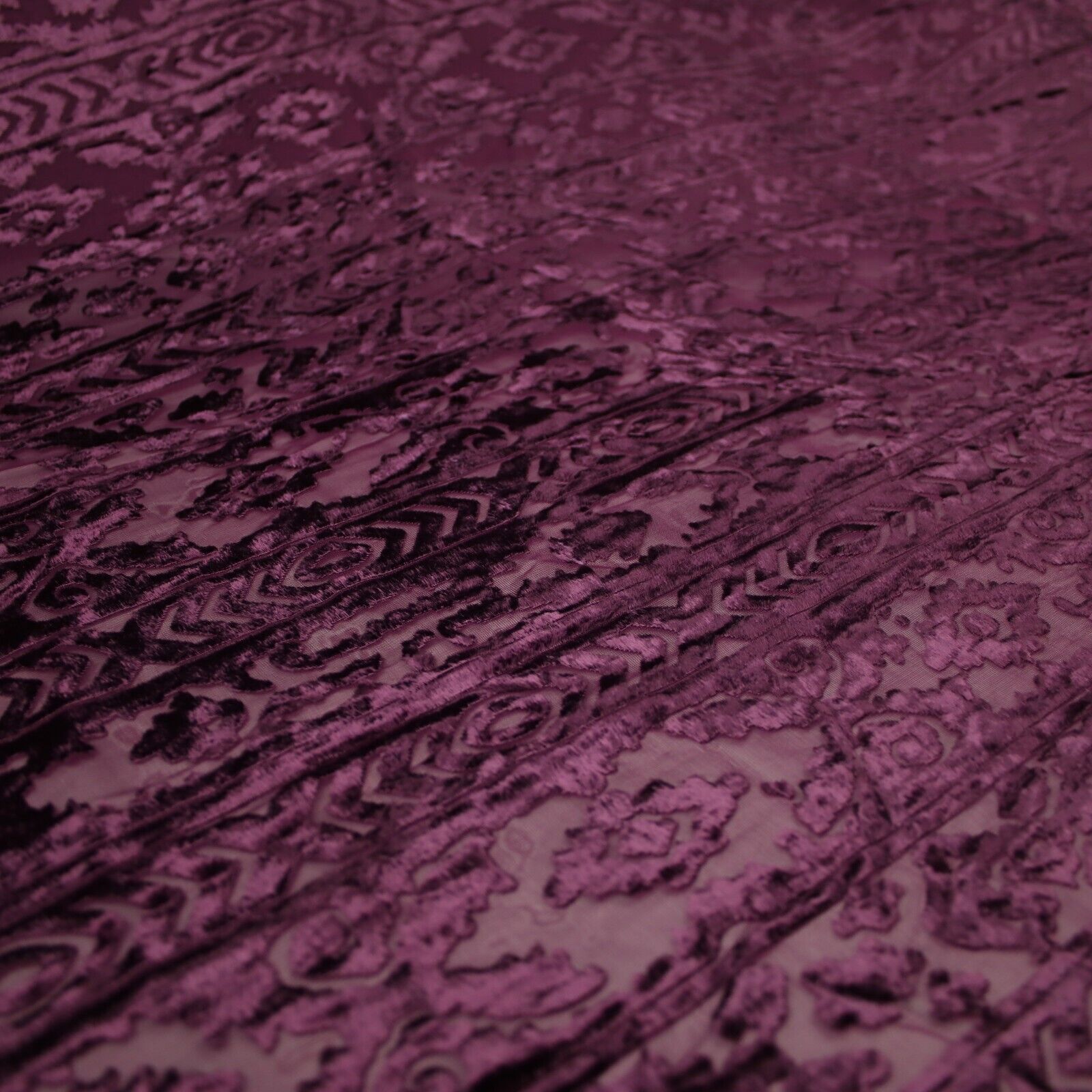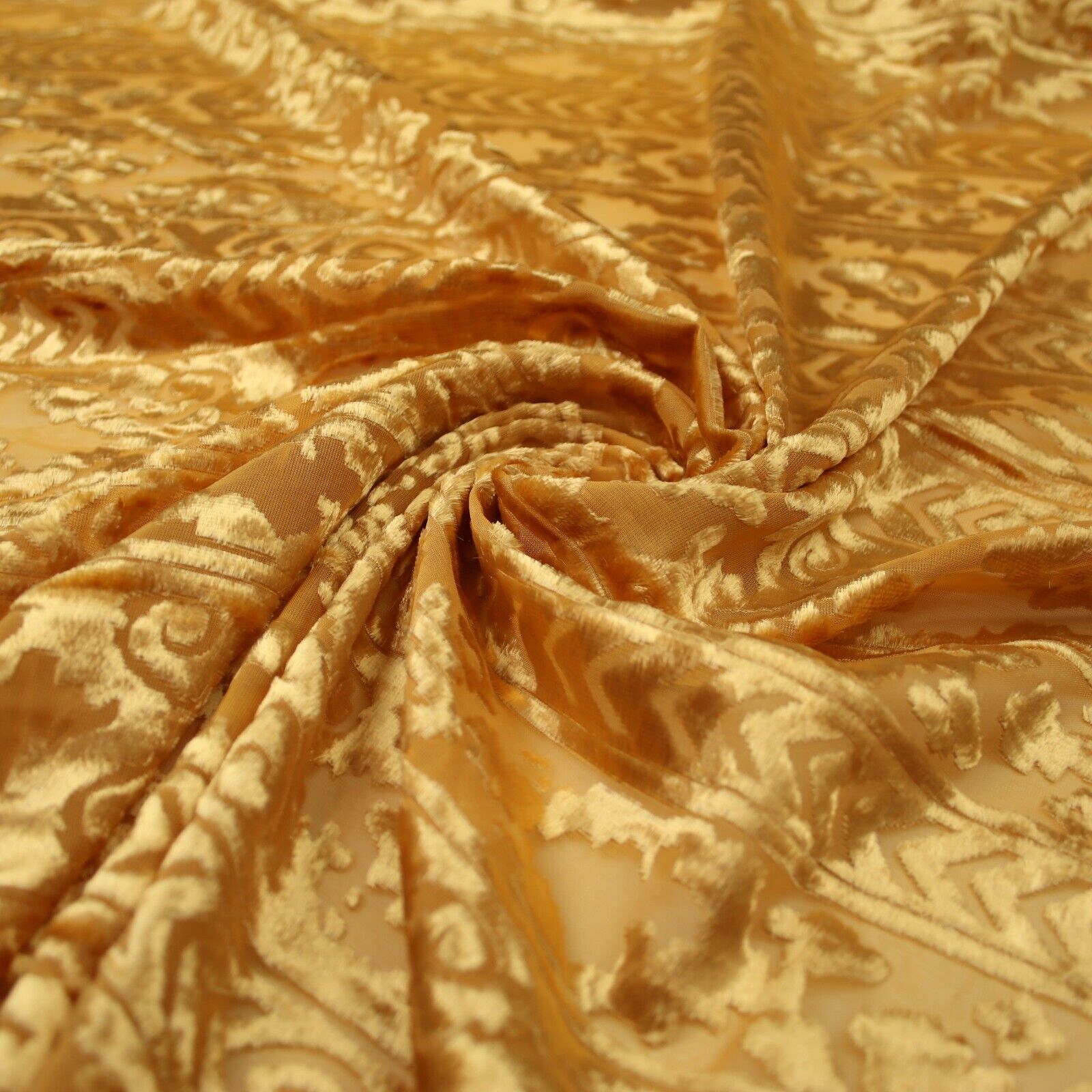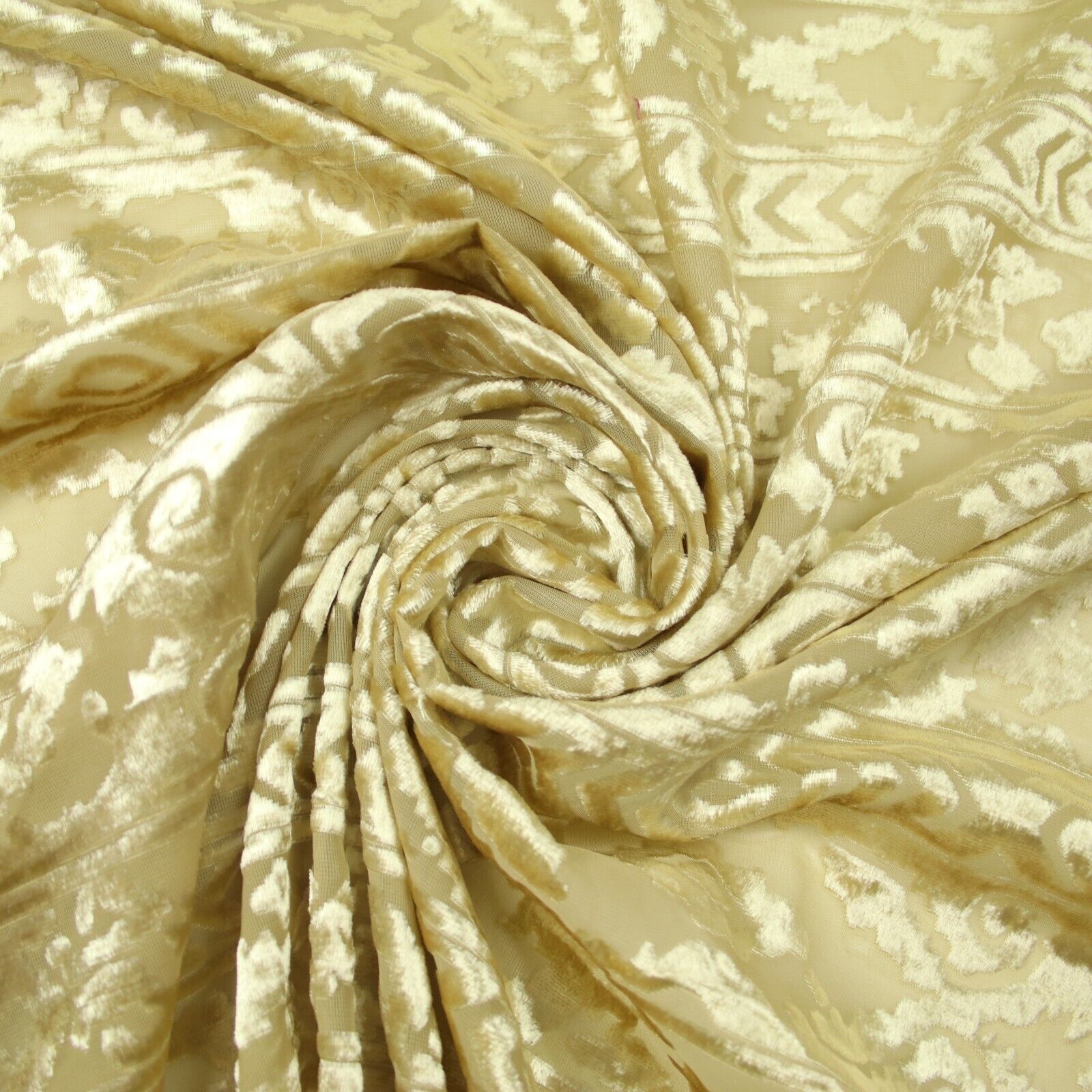 Aztec Tribal Ornate Striped Velvet Burnout Brasso Devore Dress Fabric 5 COLOURS