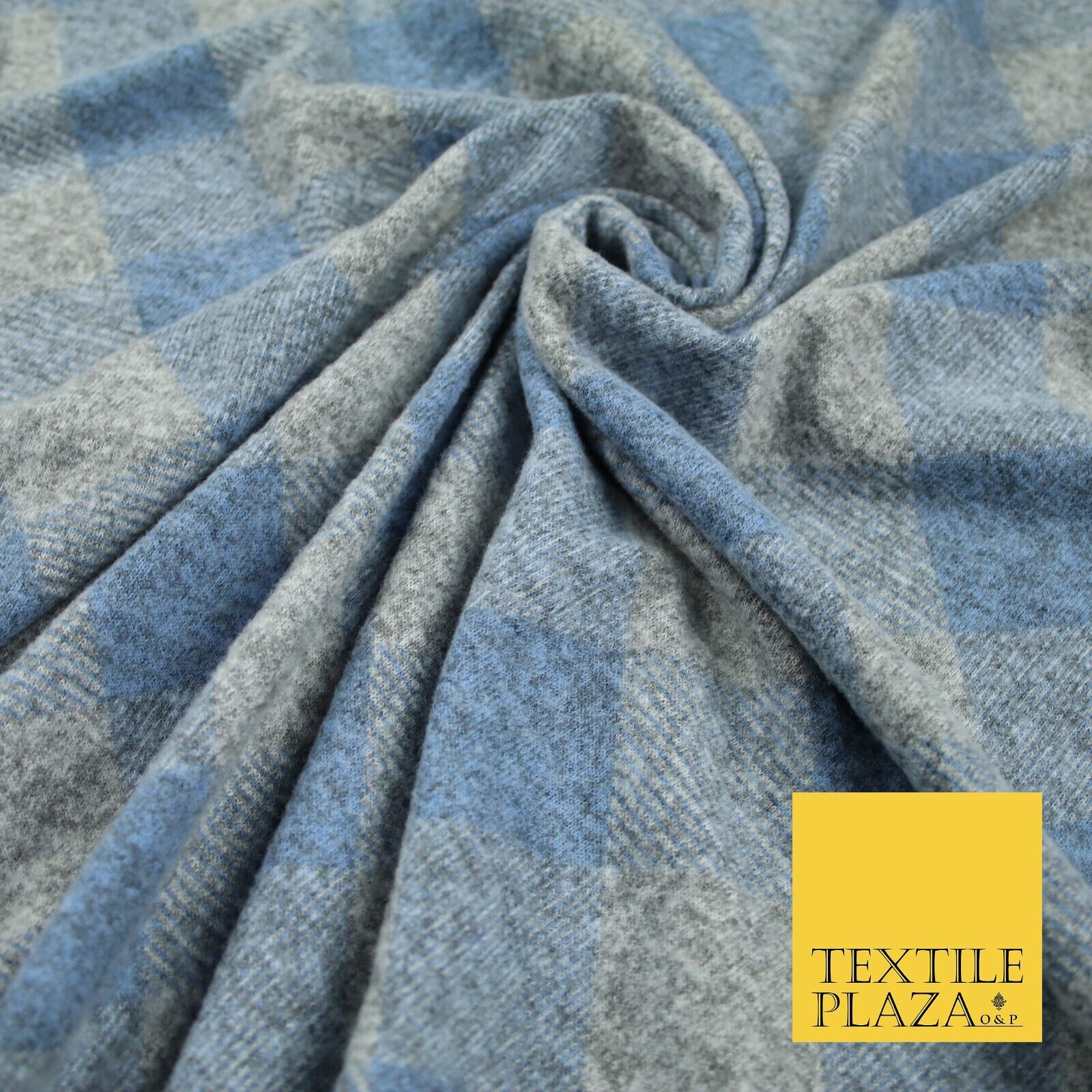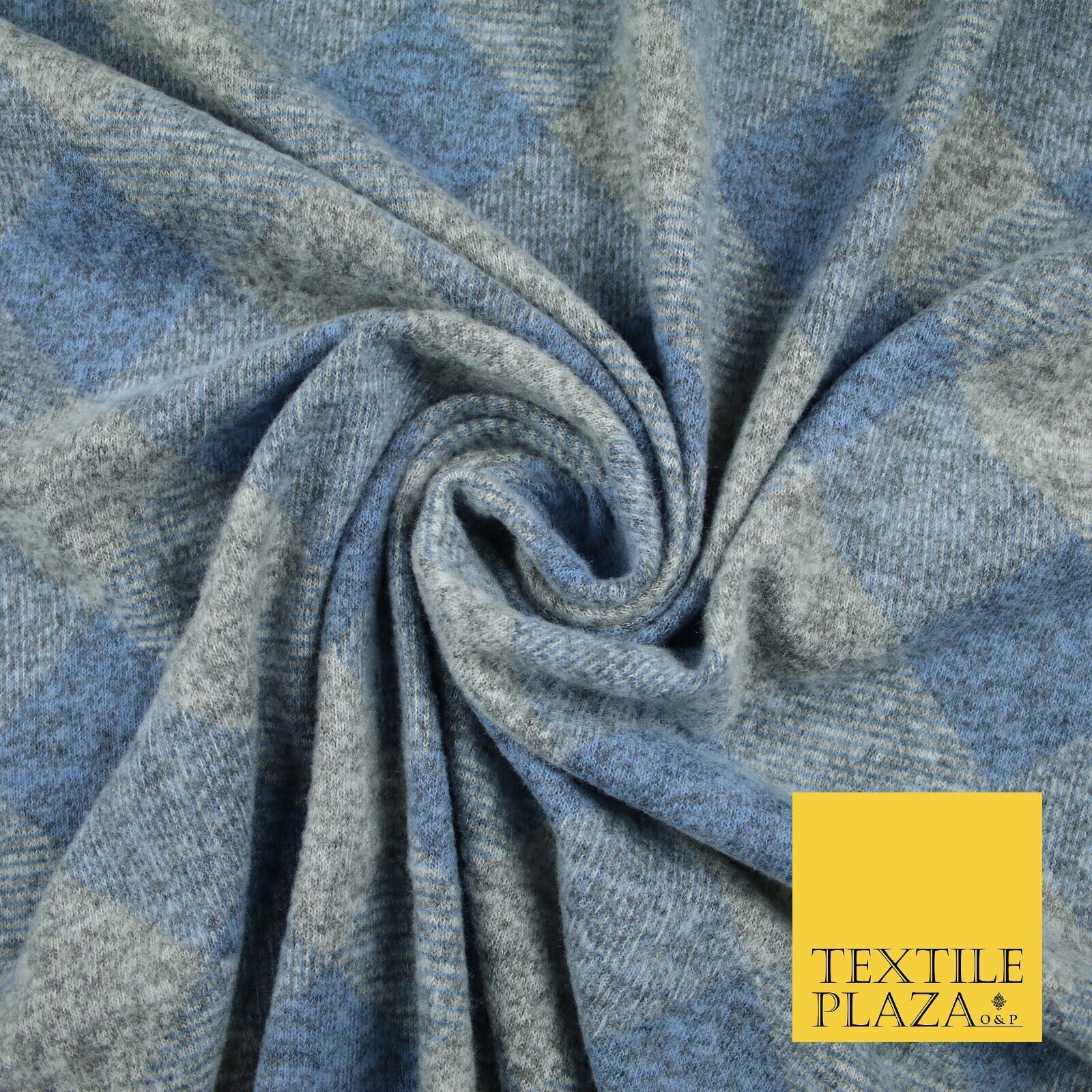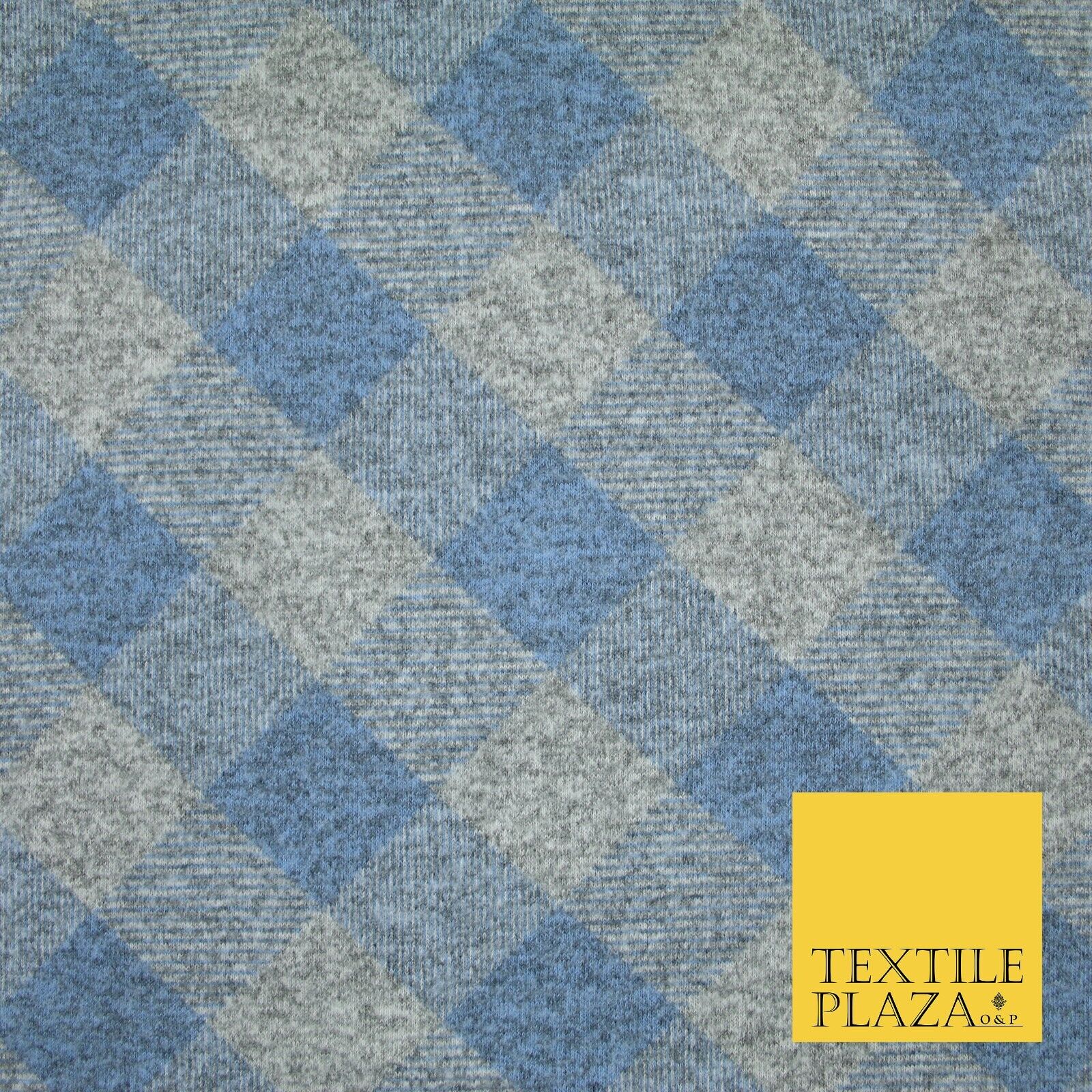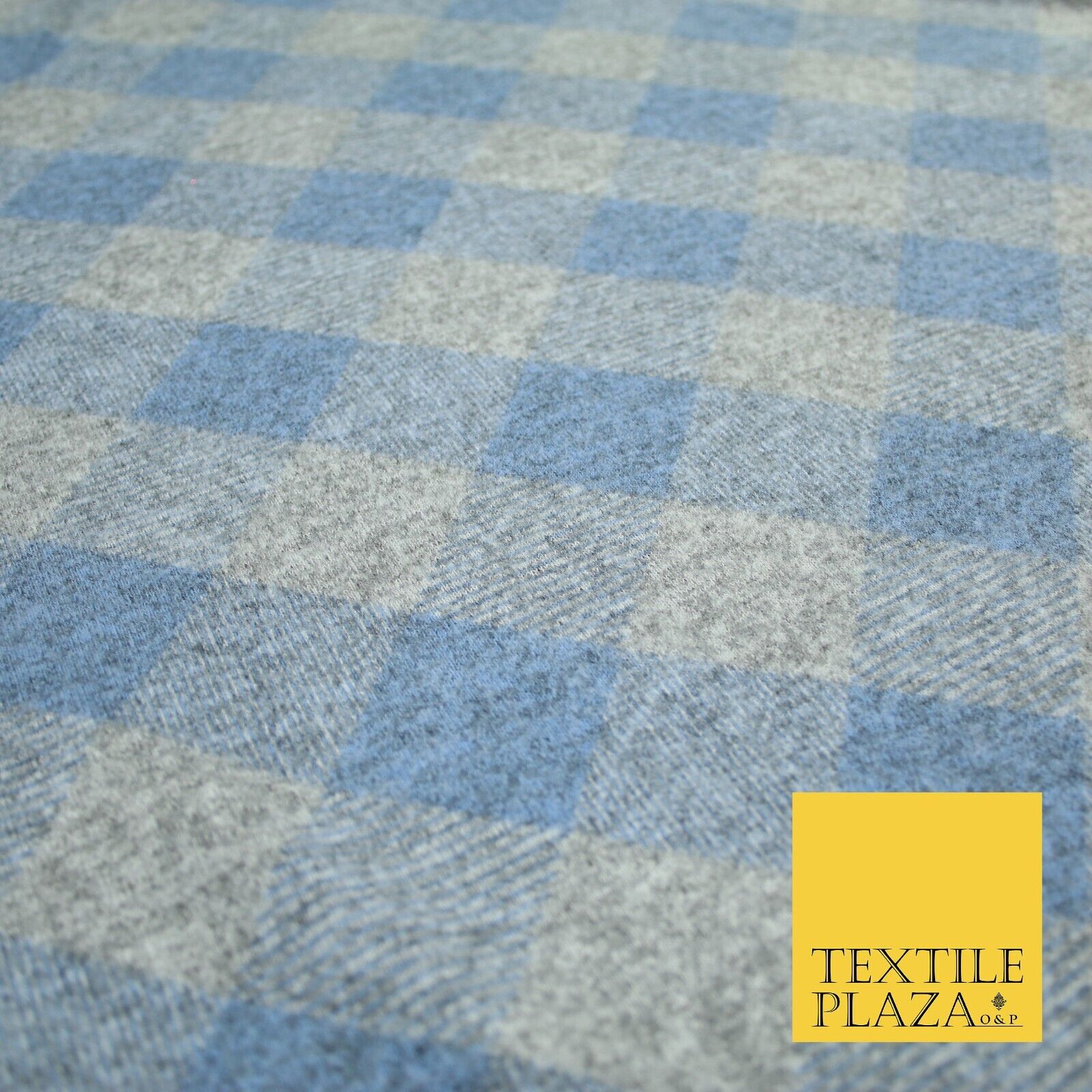 Baby Blue & Grey Marl Check Print Soft Touch Stretch Jersey Fabric 56" 6620