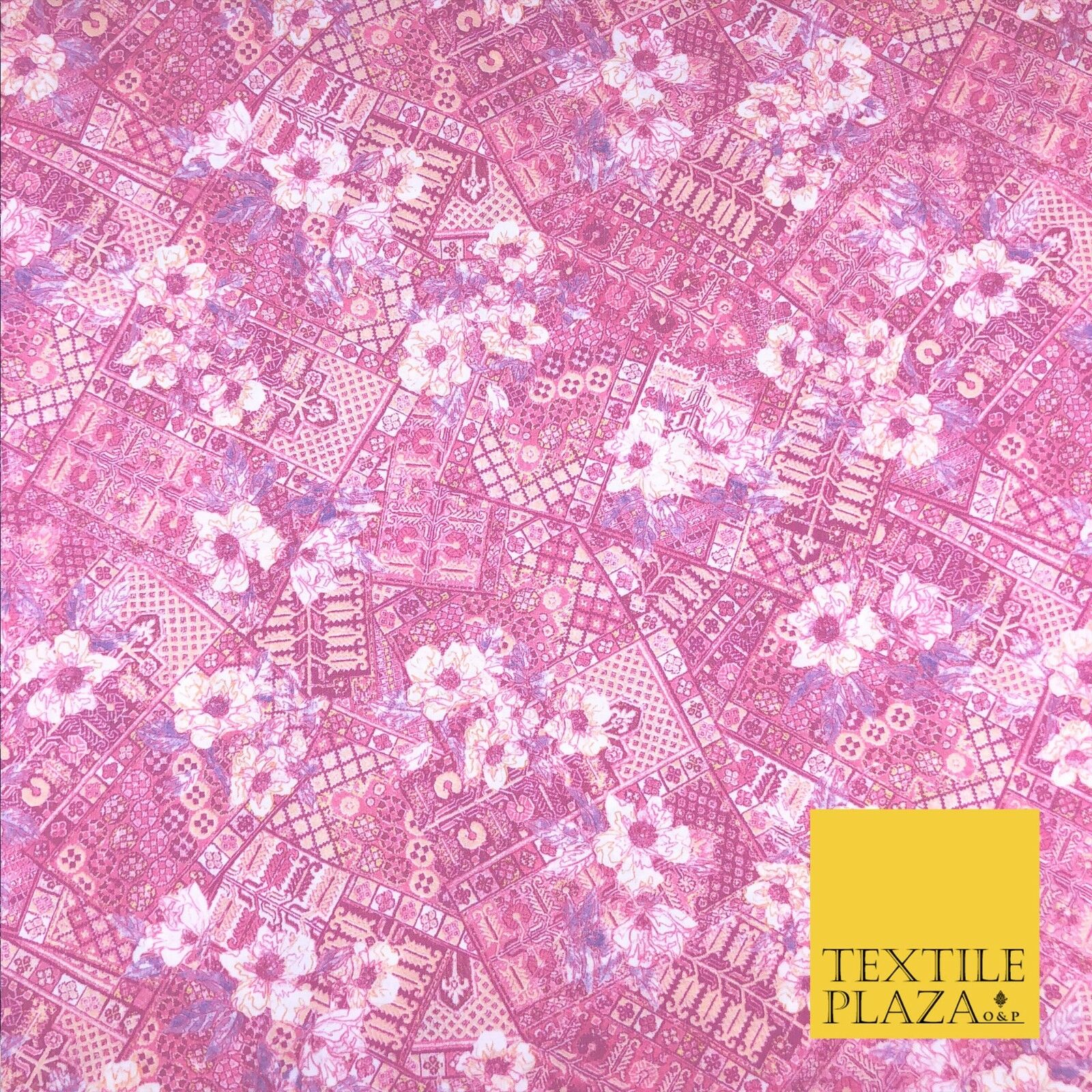 Baby Pink Floral Aztec Lattice Cotton Print Fabric Summer Dress Craft 60" FD784