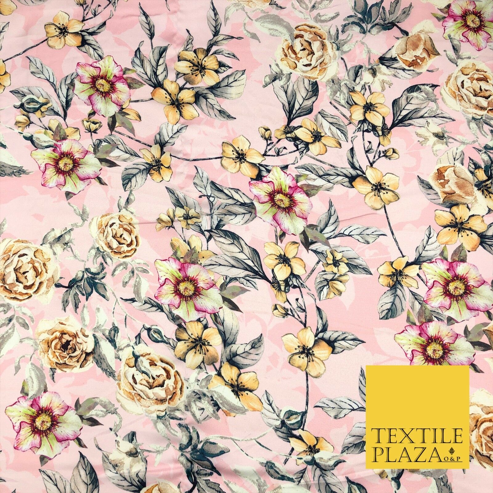 Baby Pink Floral Silky Digital Print Satin Crepe Dress Fabric Trendy Style I1072