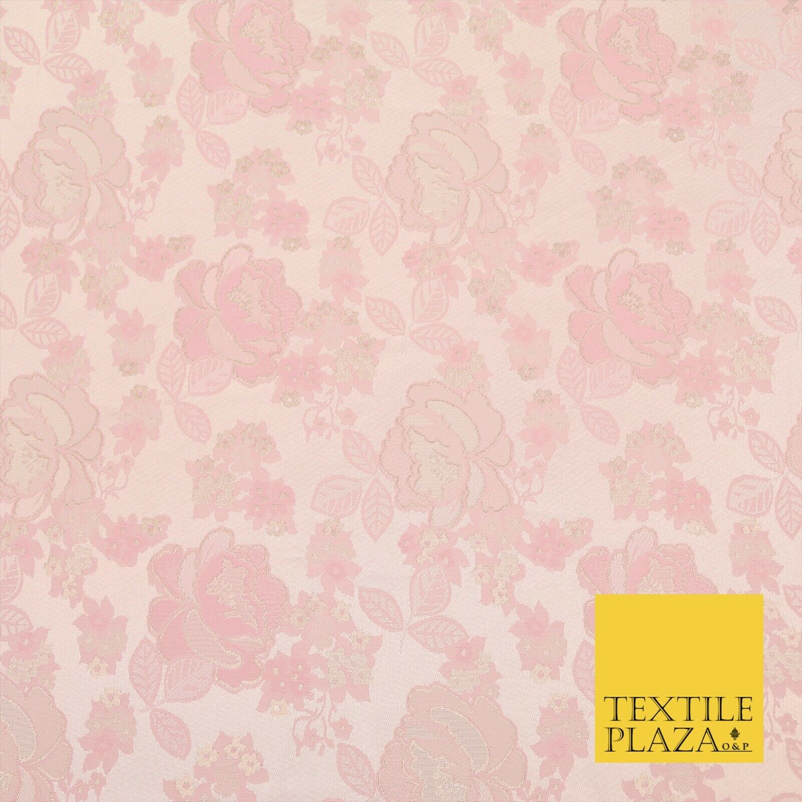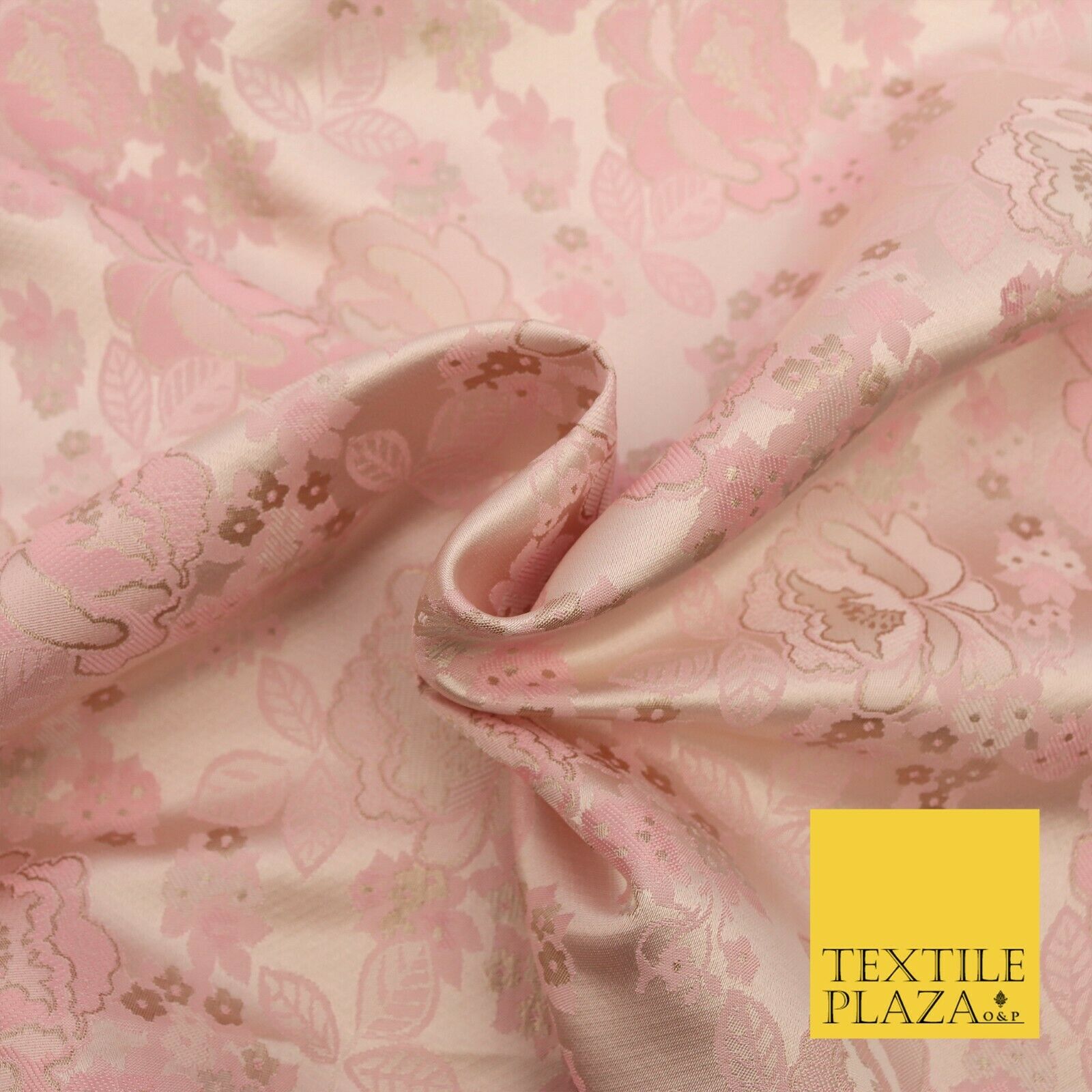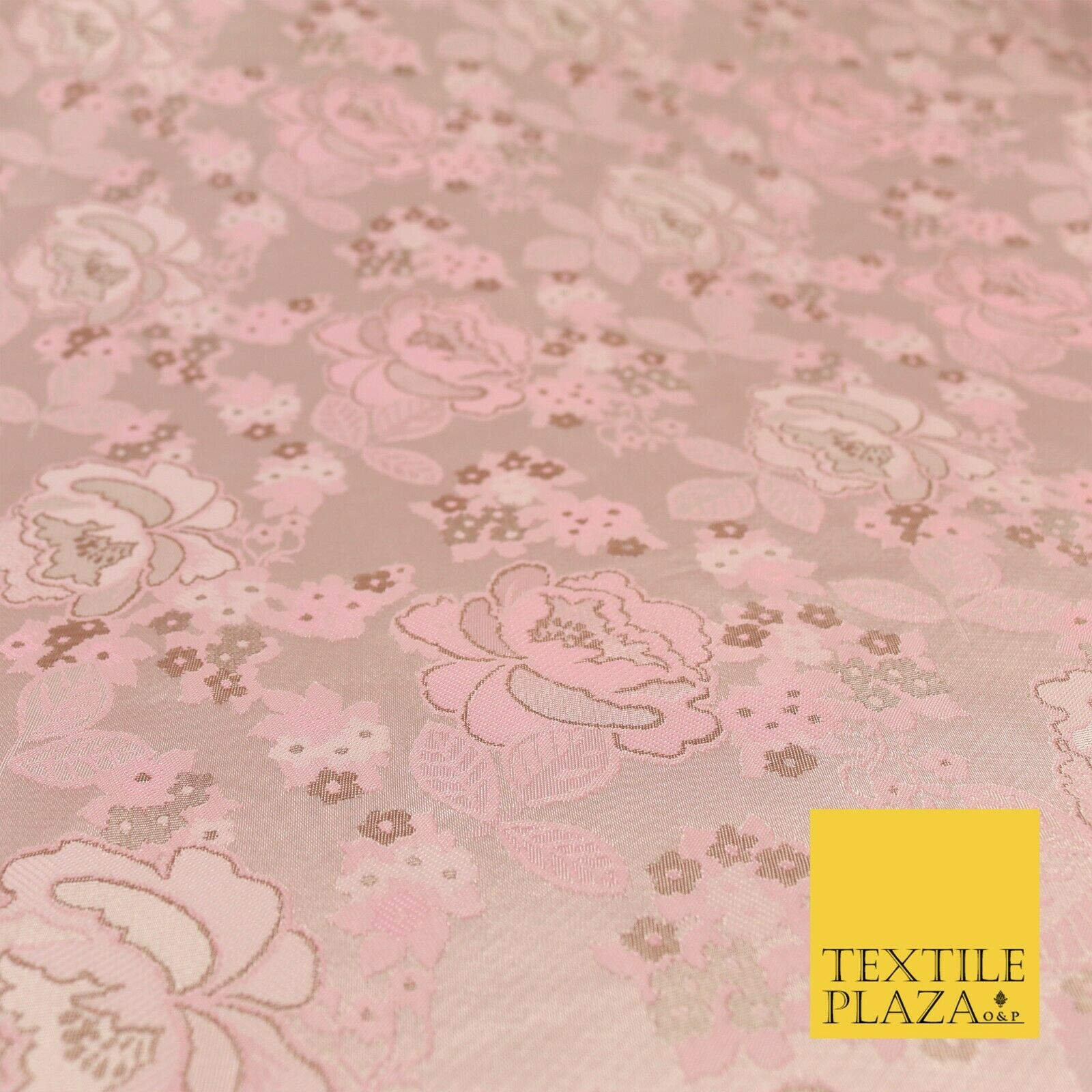 Baby Pink Premium Floral Carnation Satin Brocade Jacquard Dress Fabric 1697